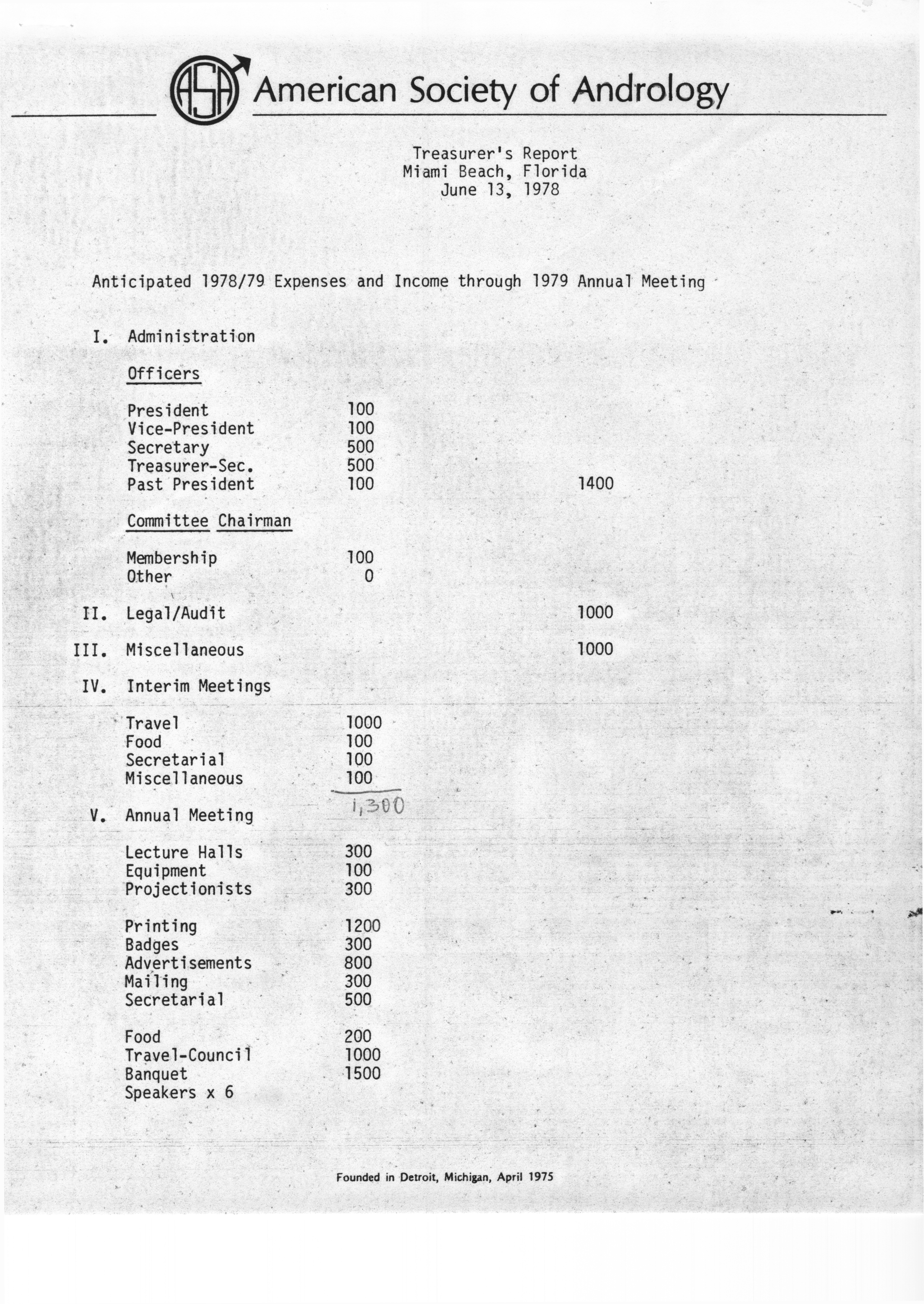Executive Council Meetings of the American Society of Andrology, 1978 Item Info