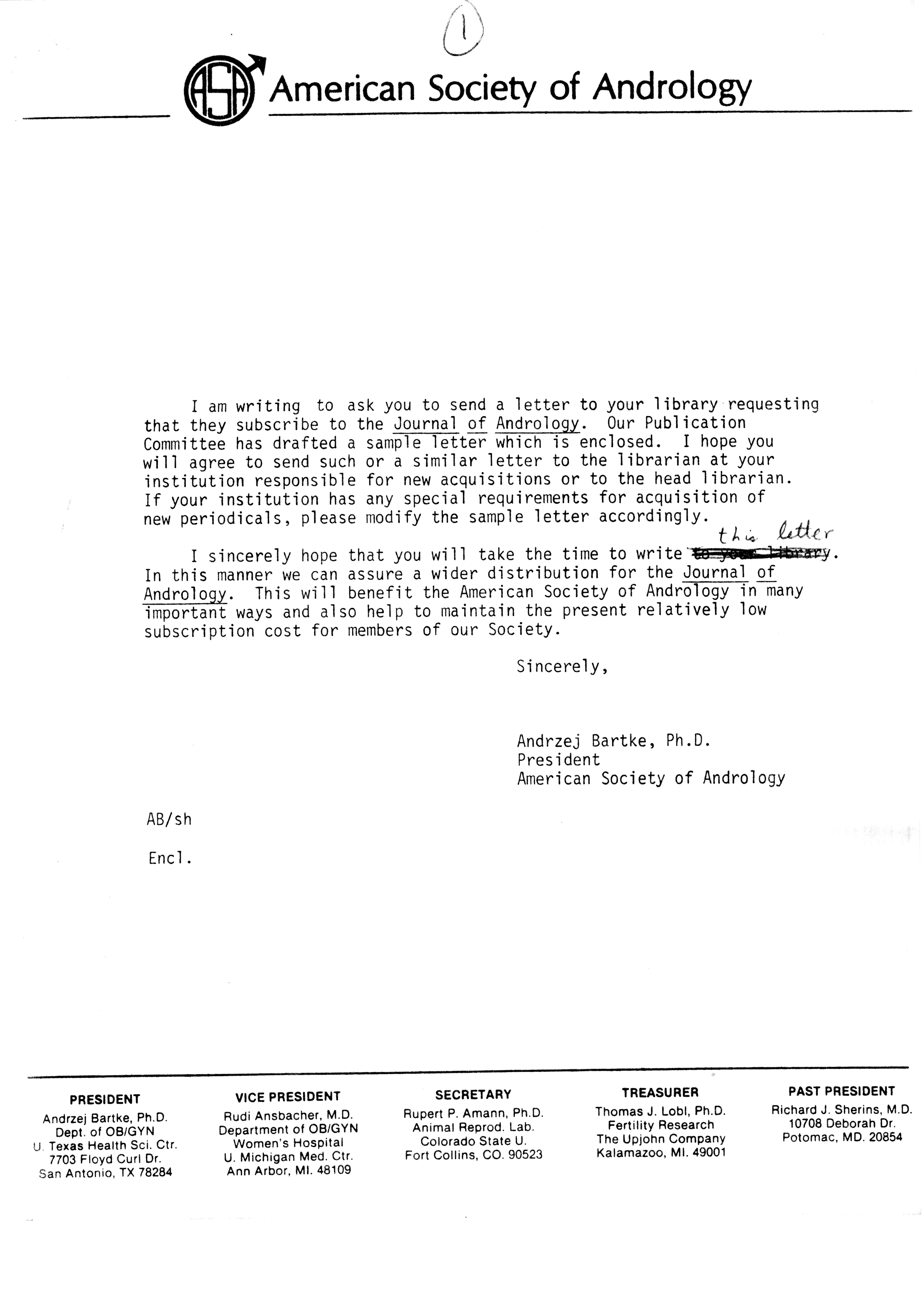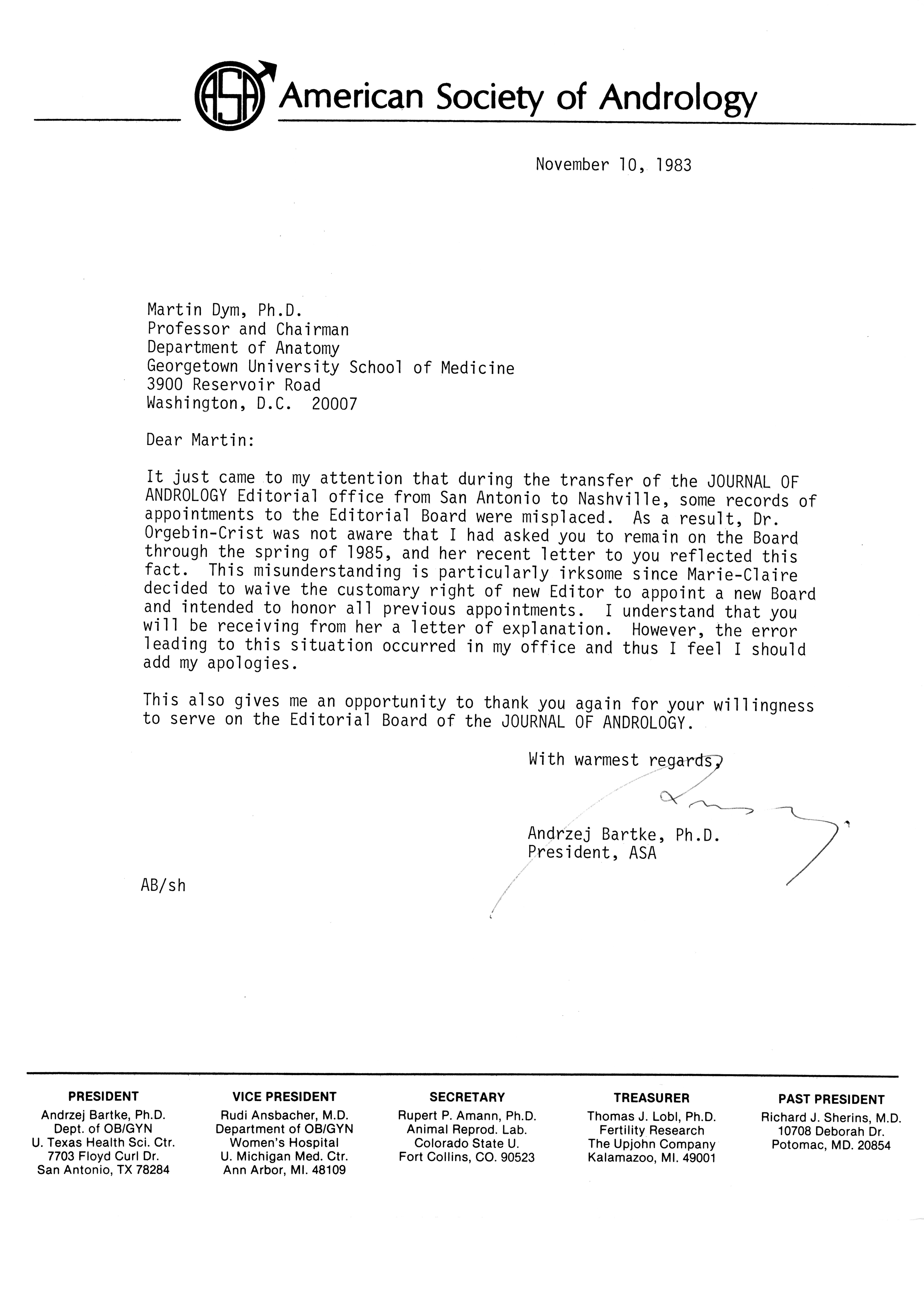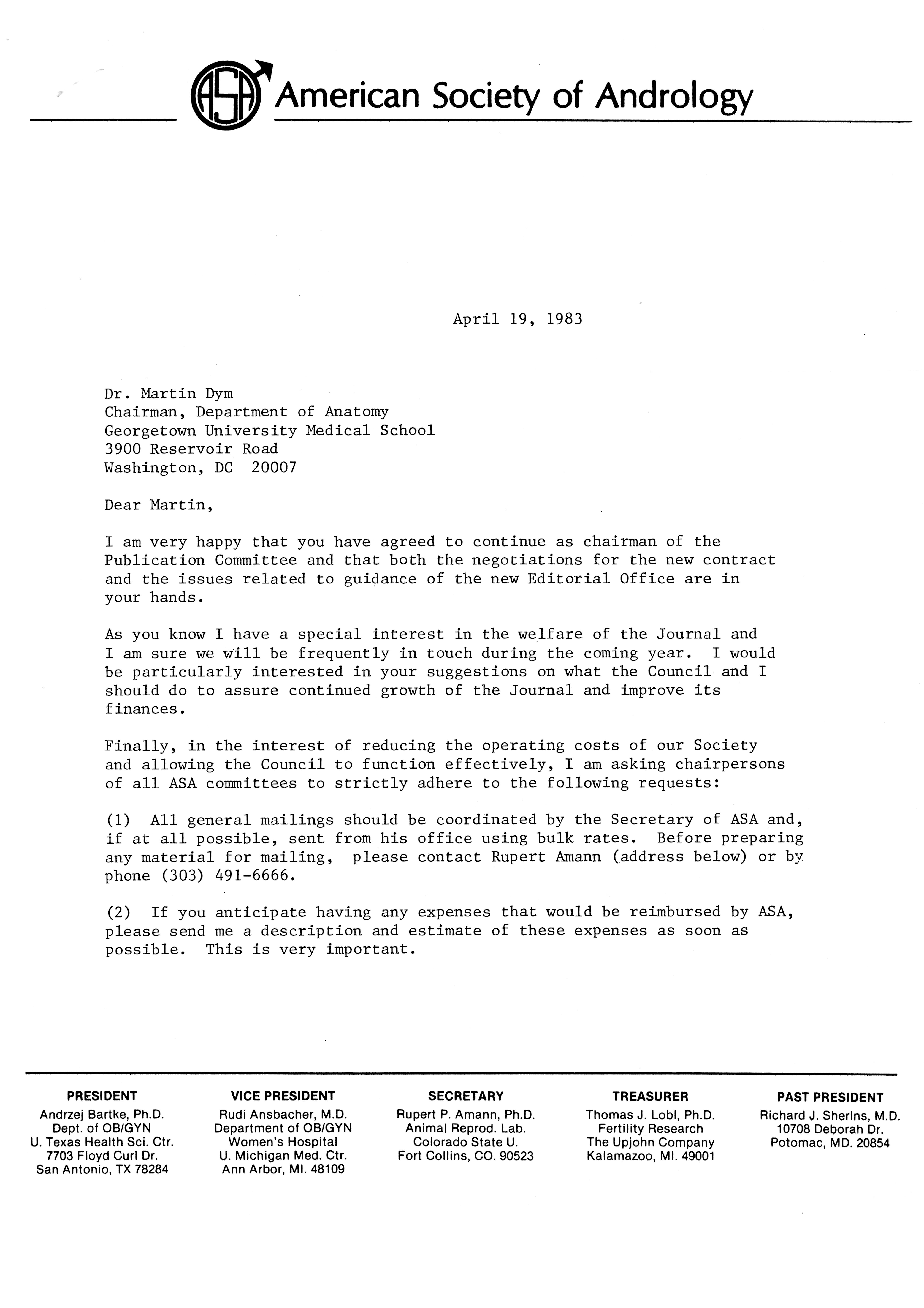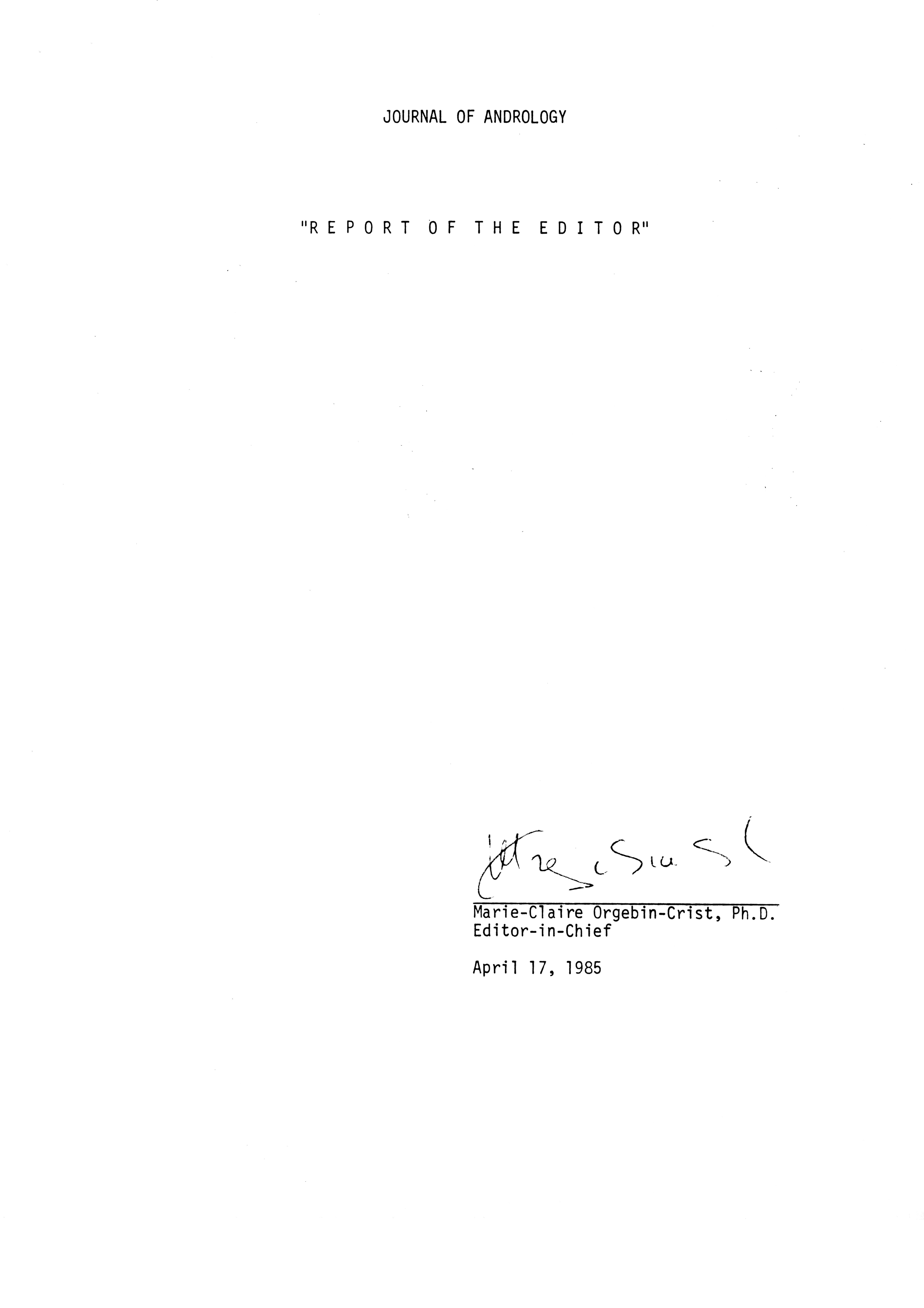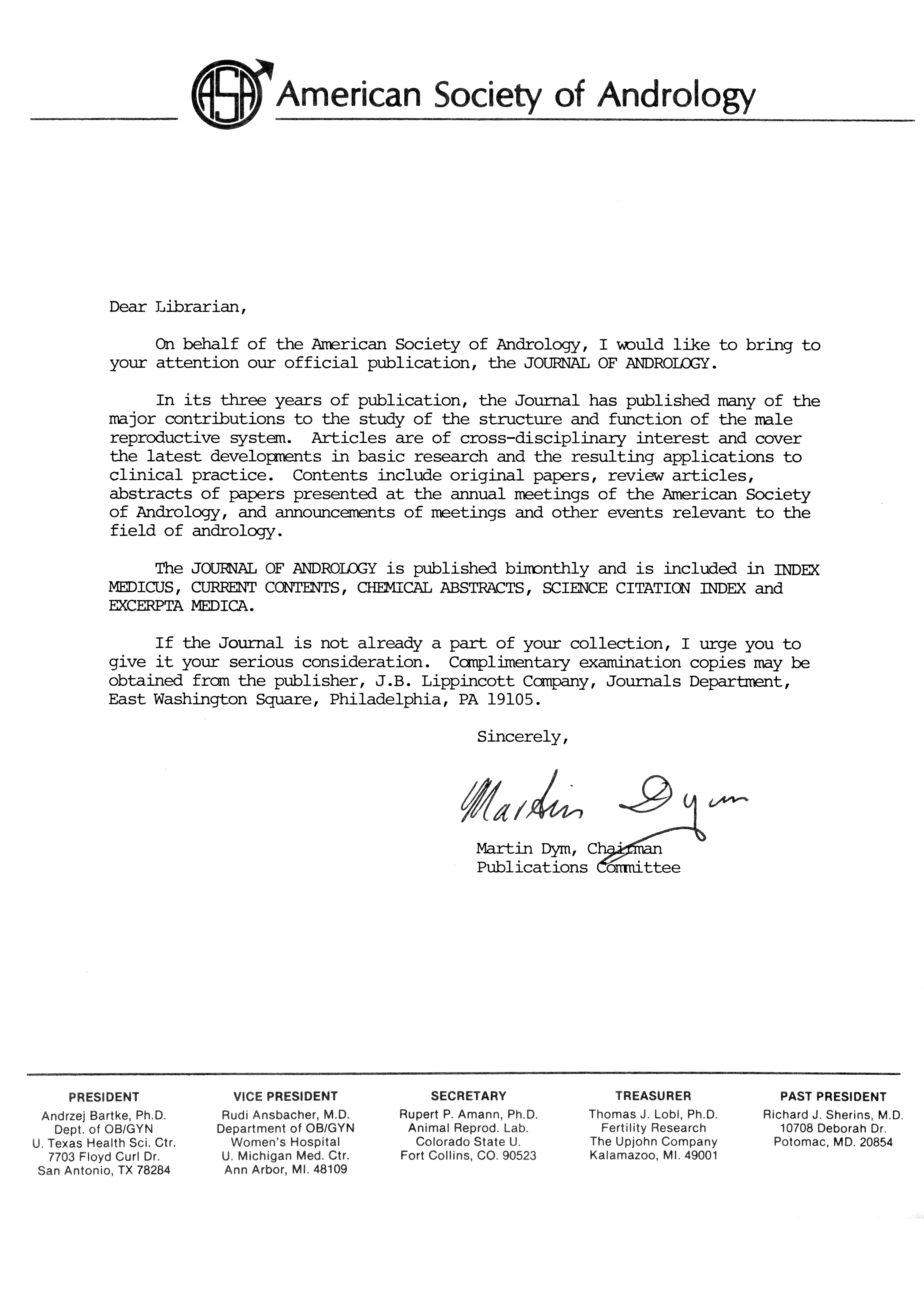 - "Publications Committee--Journal of Andrology, 1982-86", American Society of Andrology Collection, Iowa State University Library Digital Collections