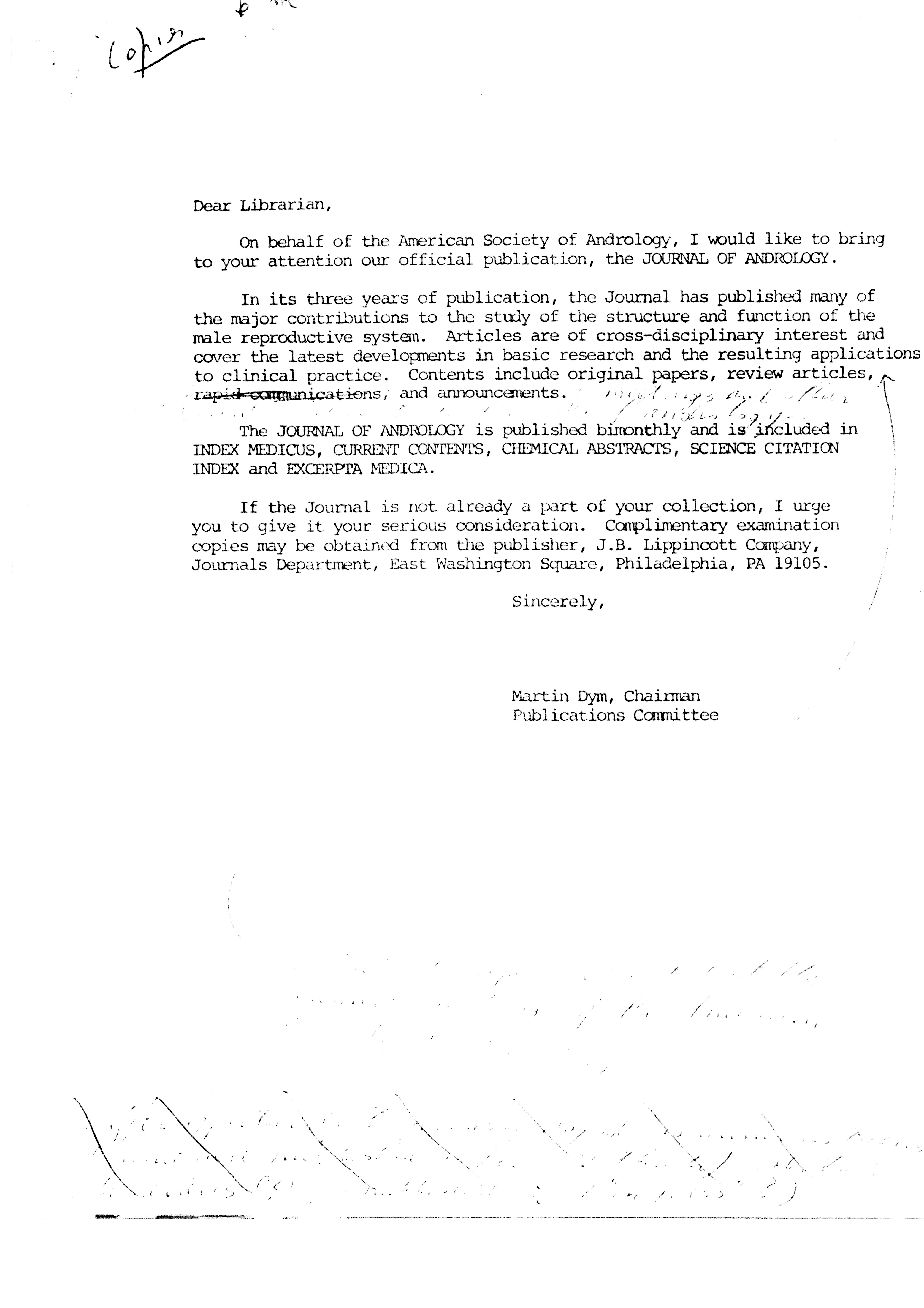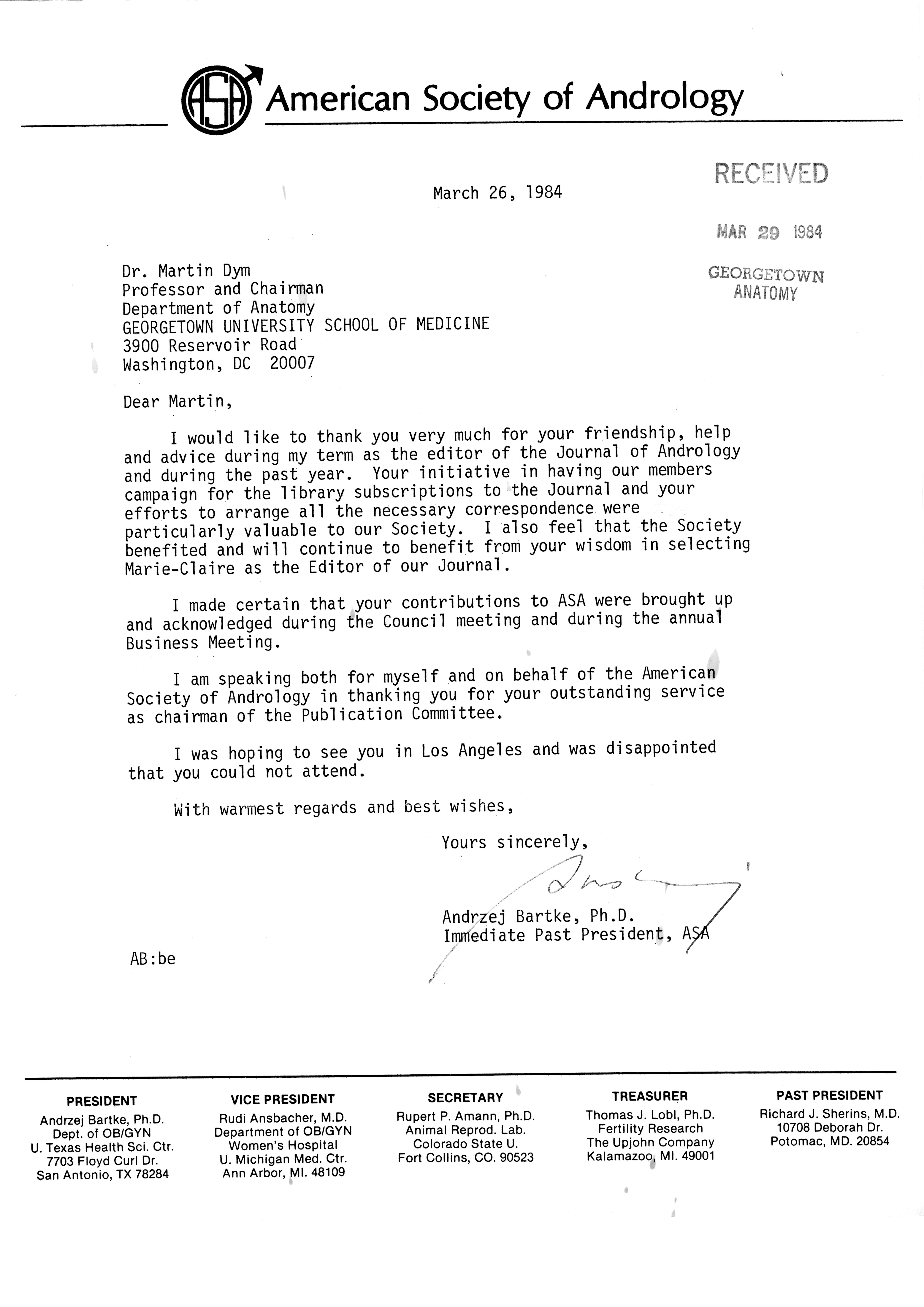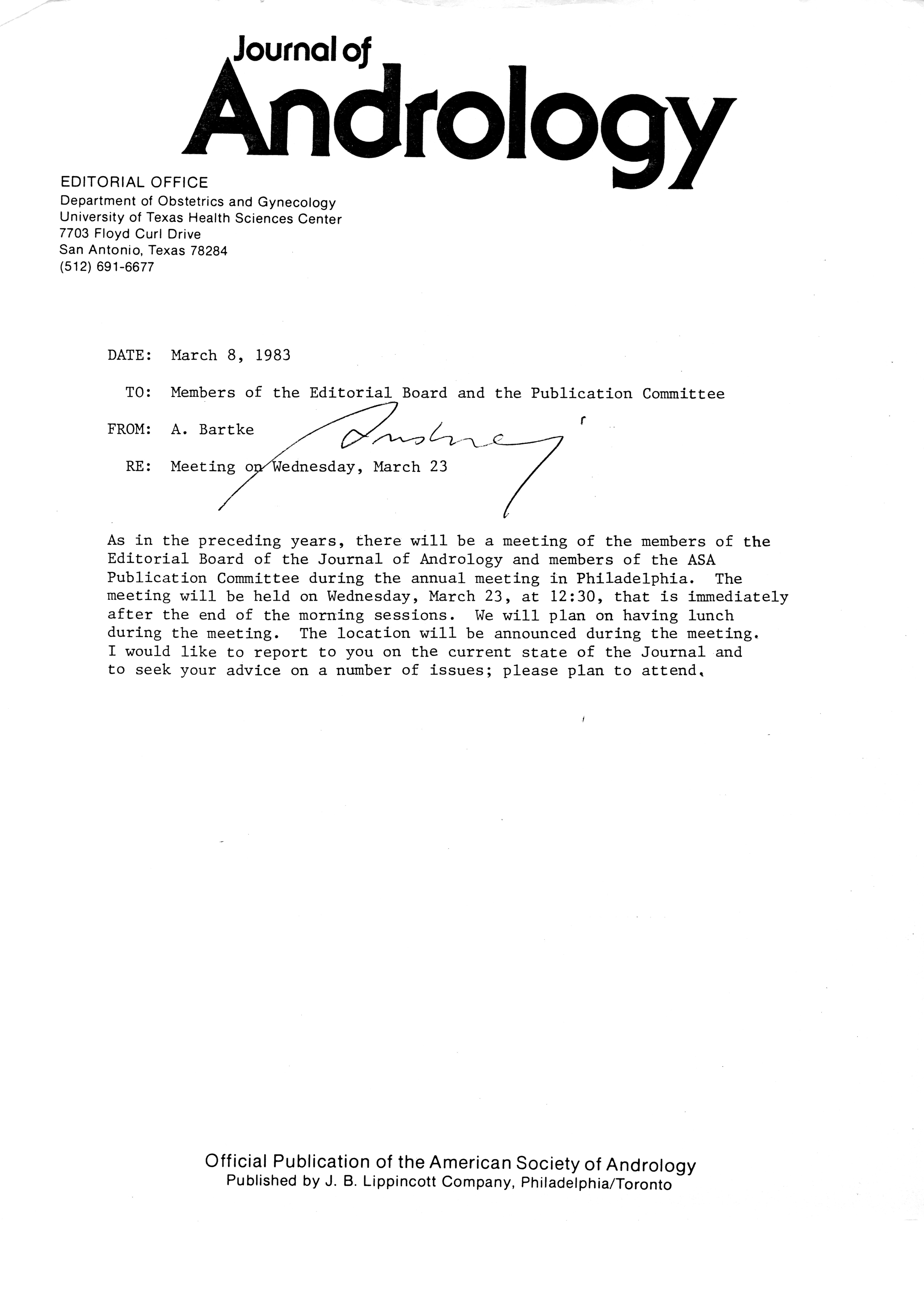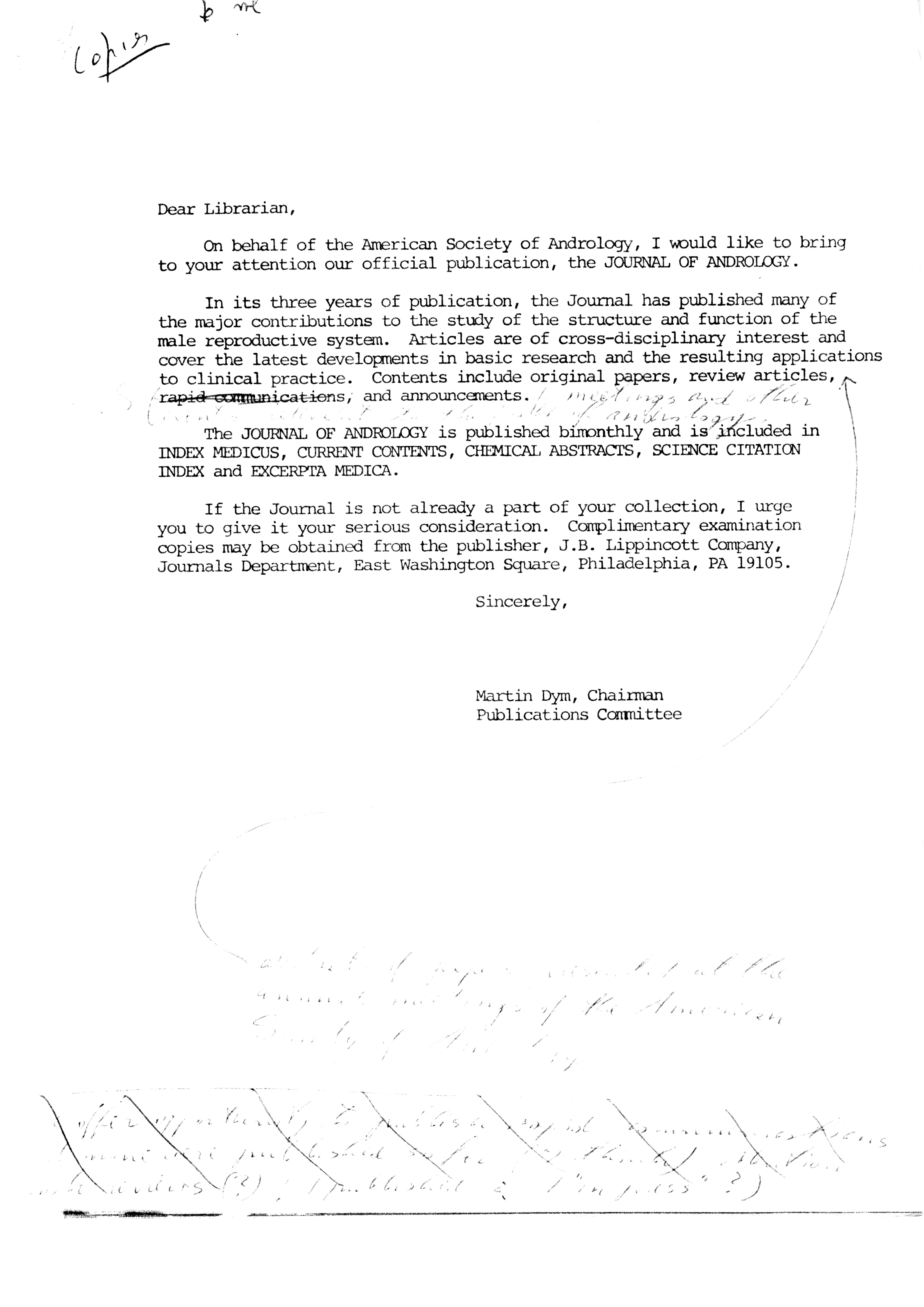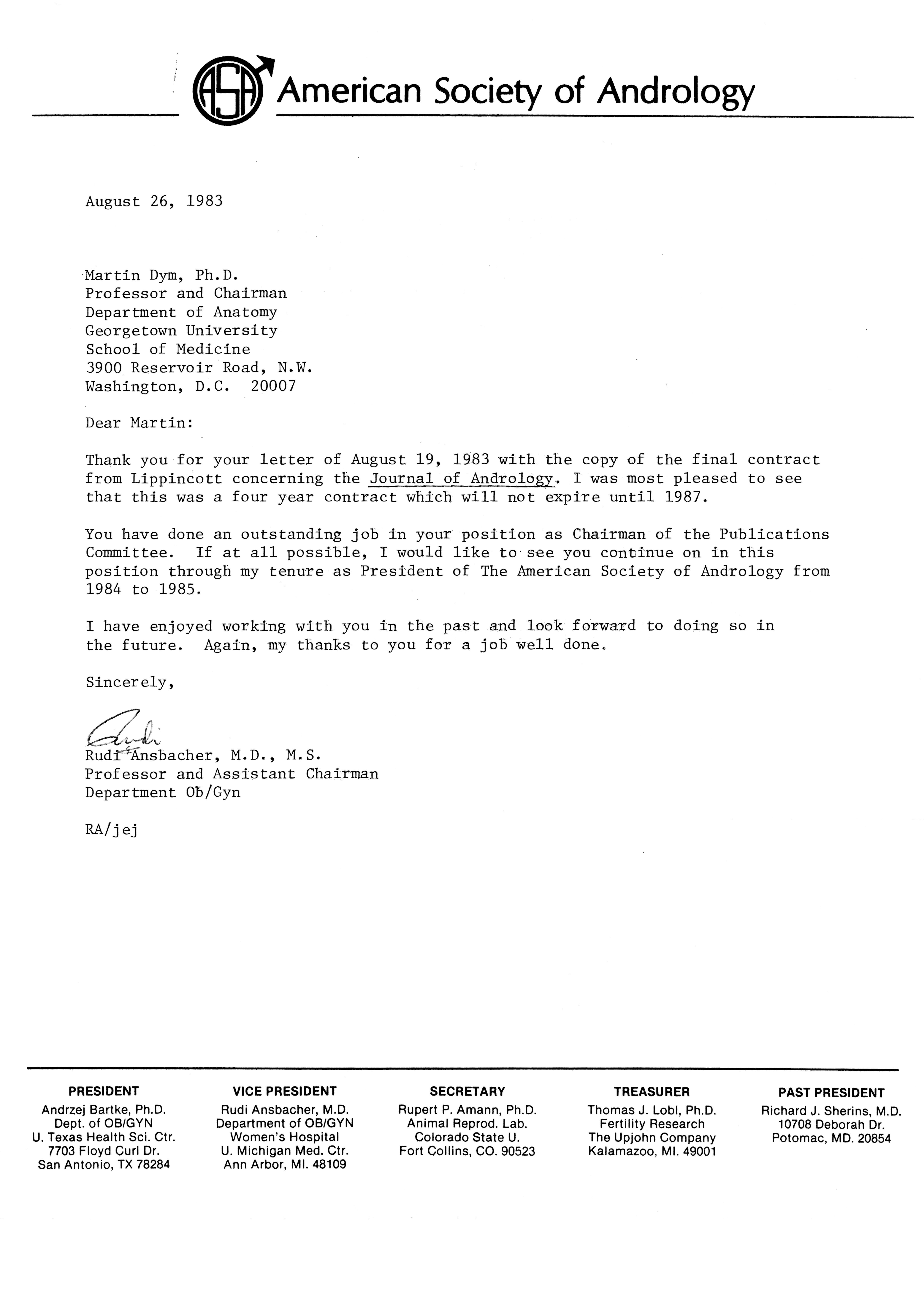- "Publications Committee--Journal of Andrology, 1982-86", American Society of Andrology Collection, Iowa State University Library Digital Collections