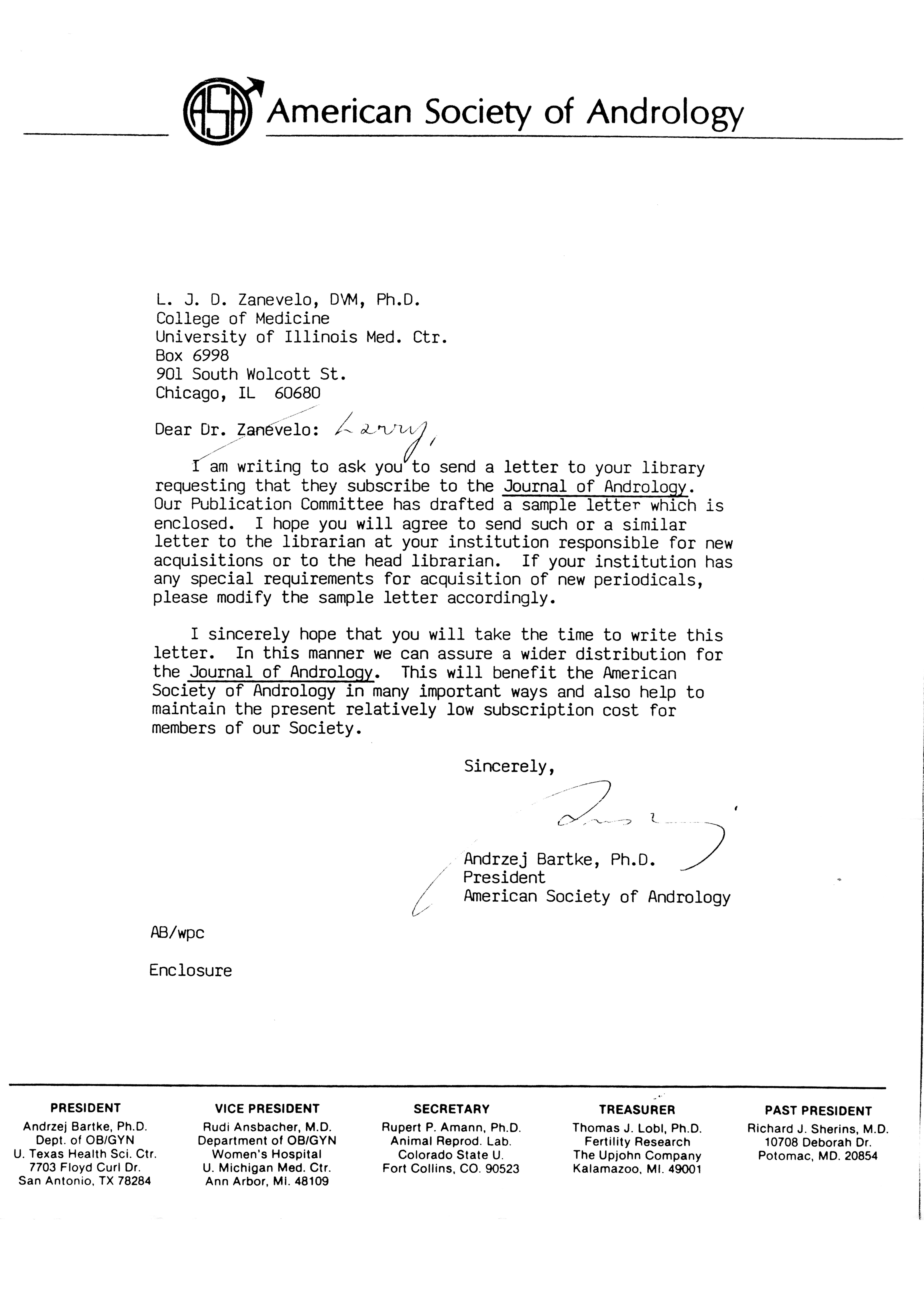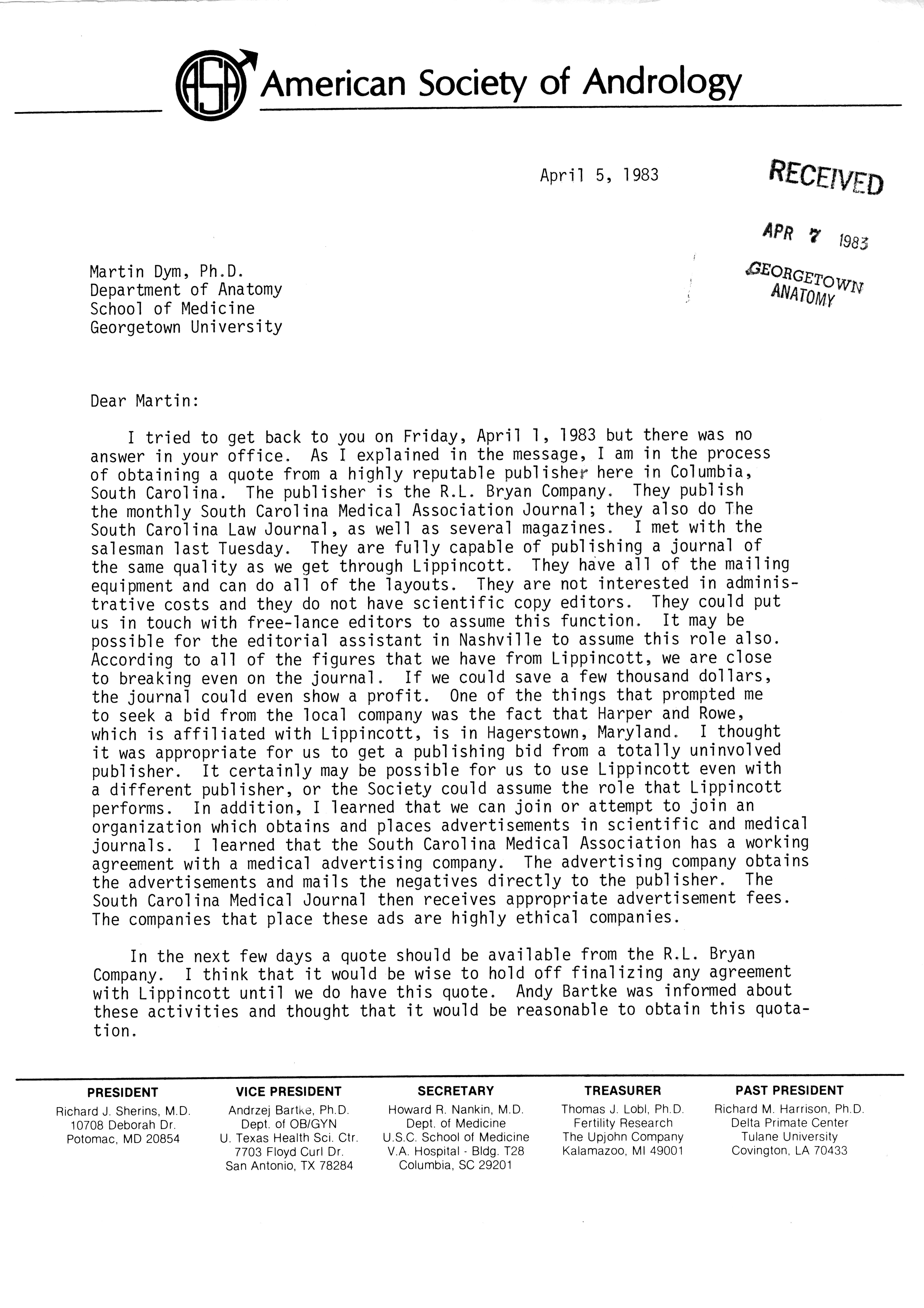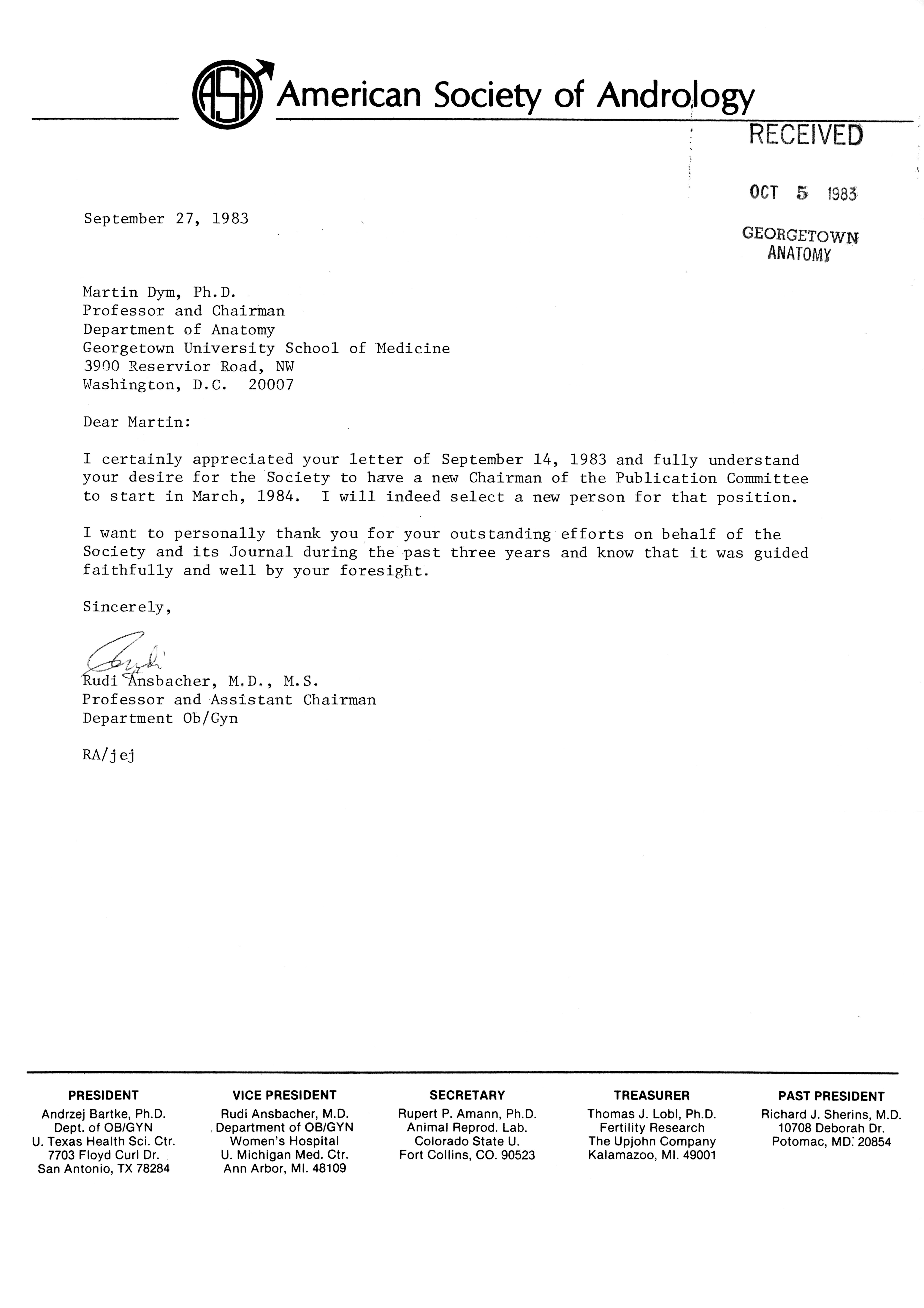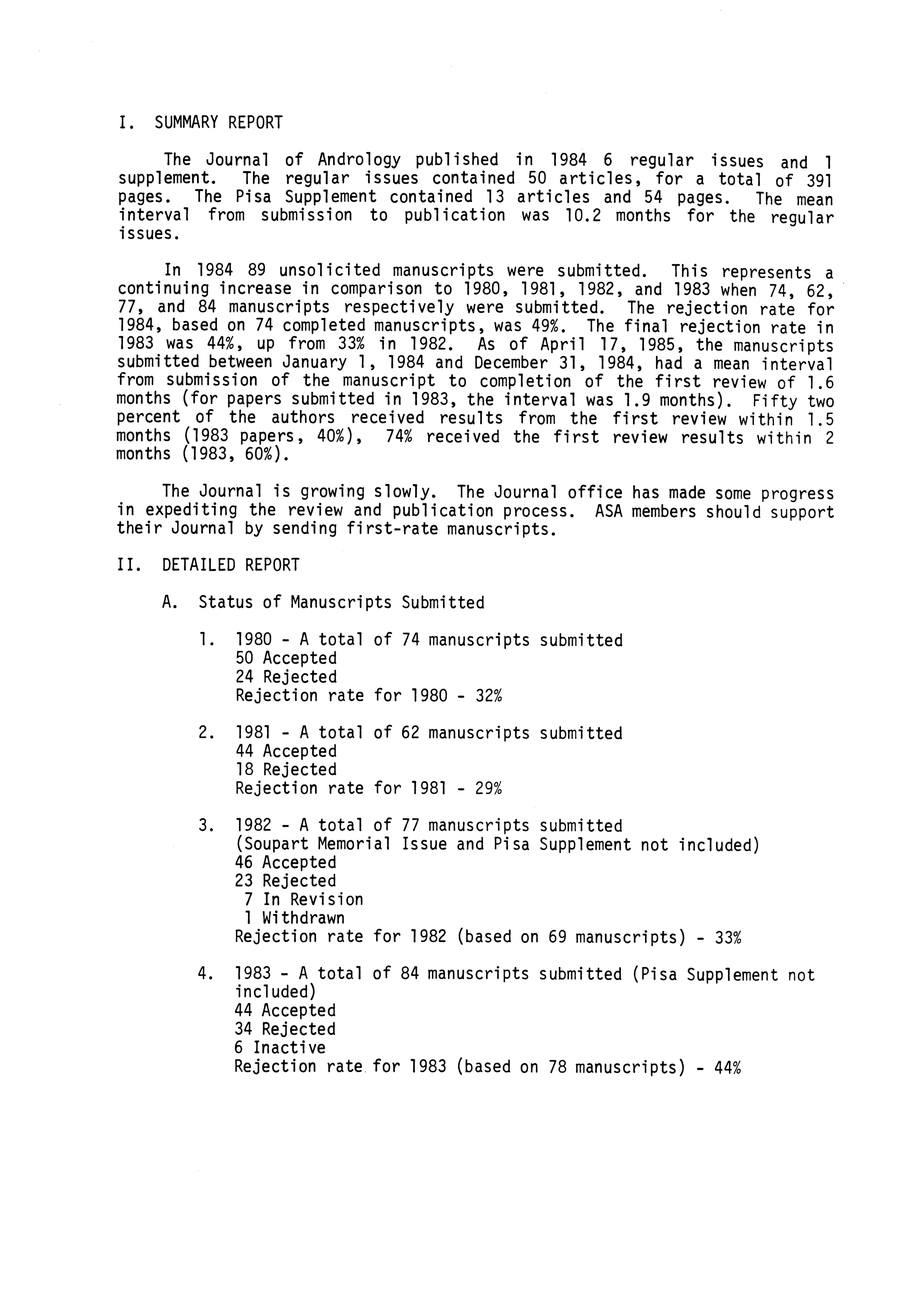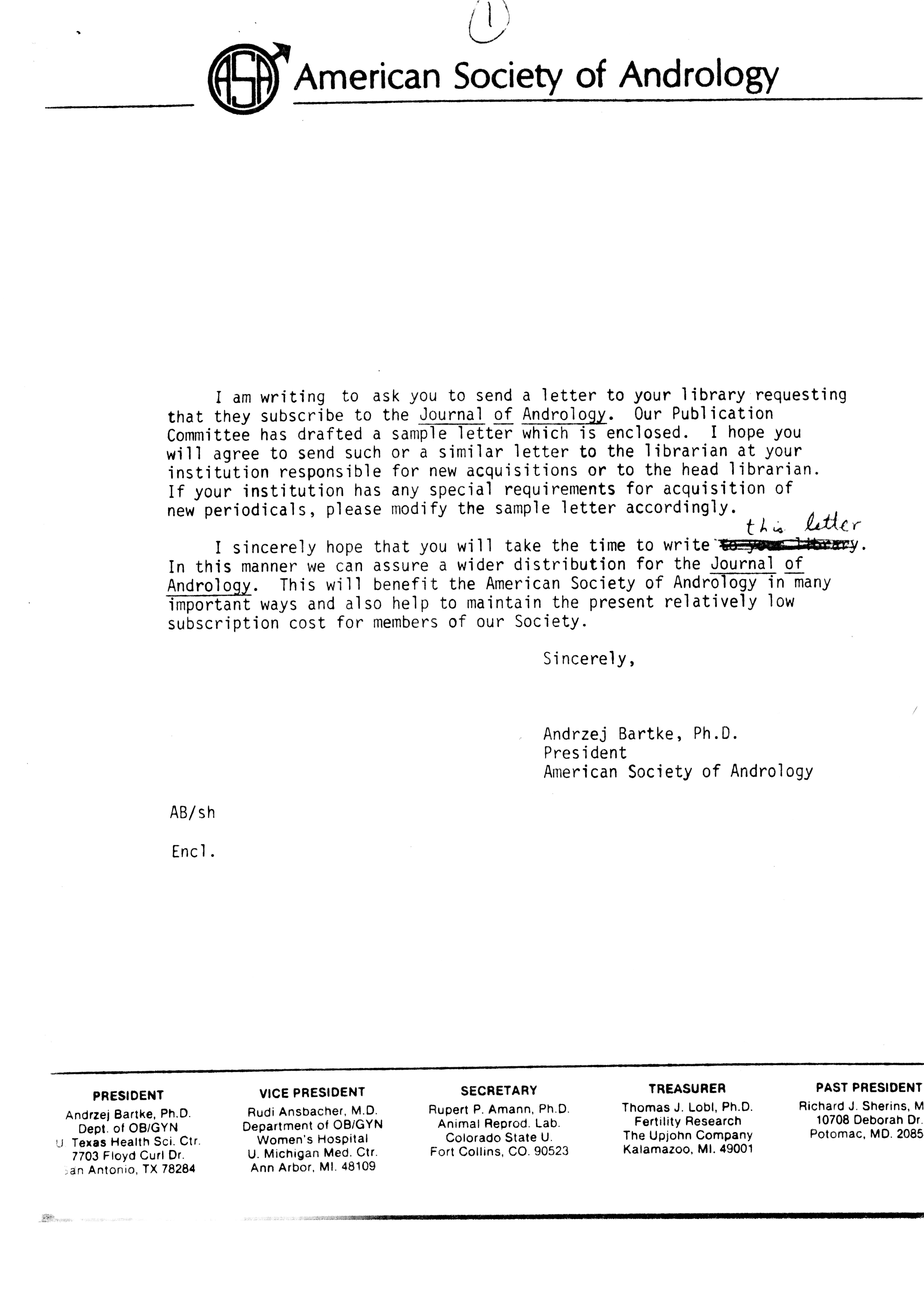 - "Publications Committee--Journal of Andrology, 1982-86", American Society of Andrology Collection, Iowa State University Library Digital Collections
