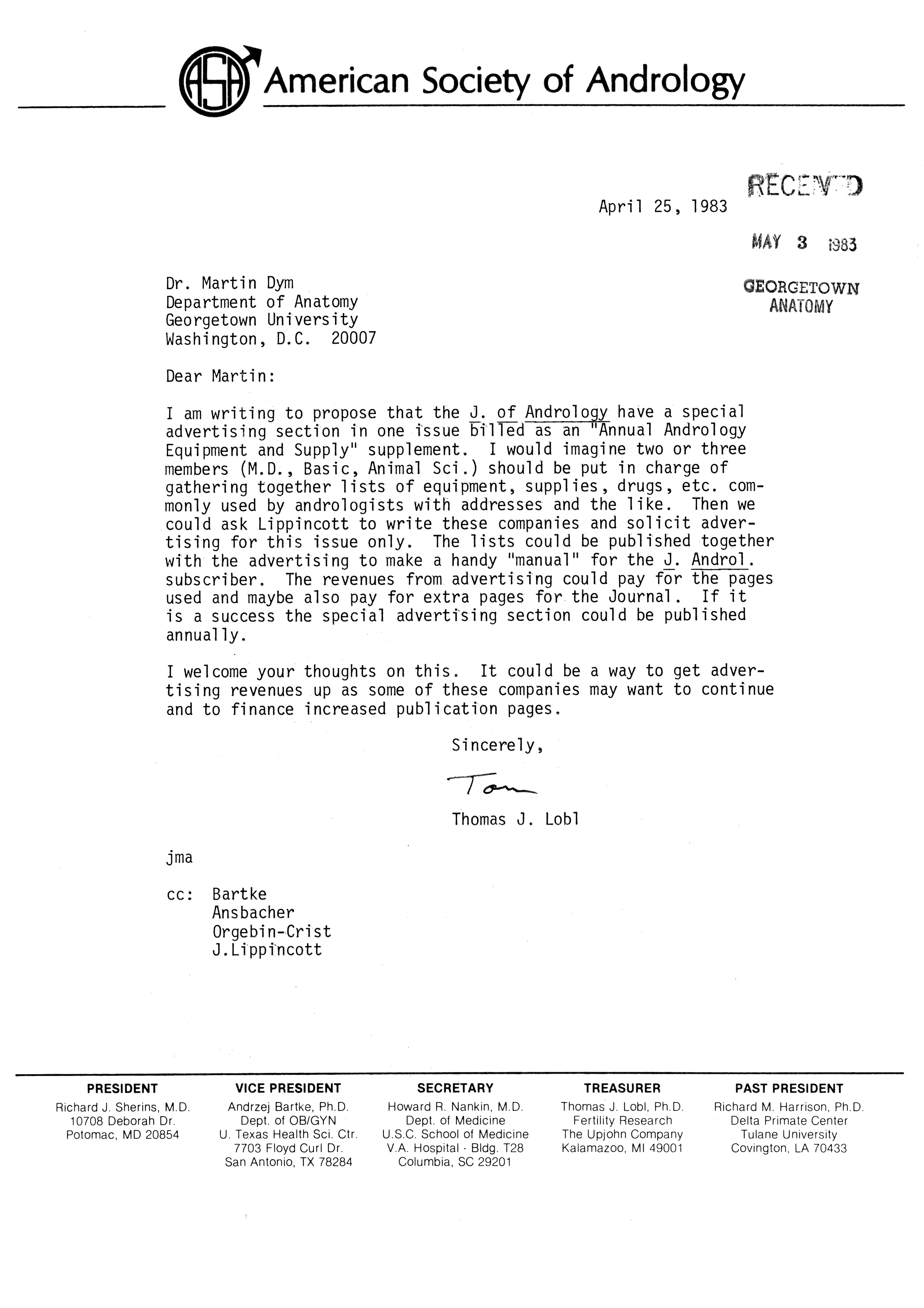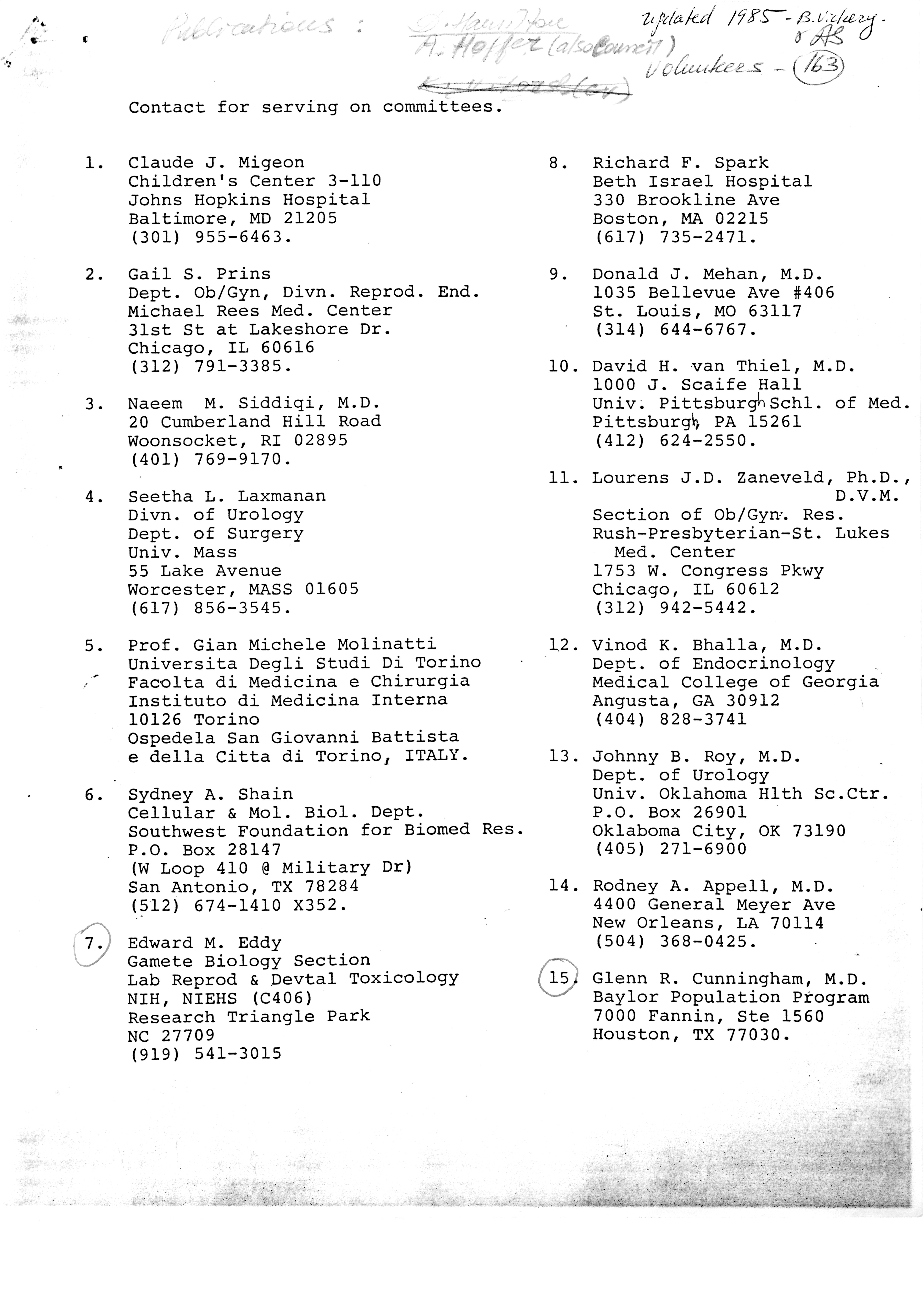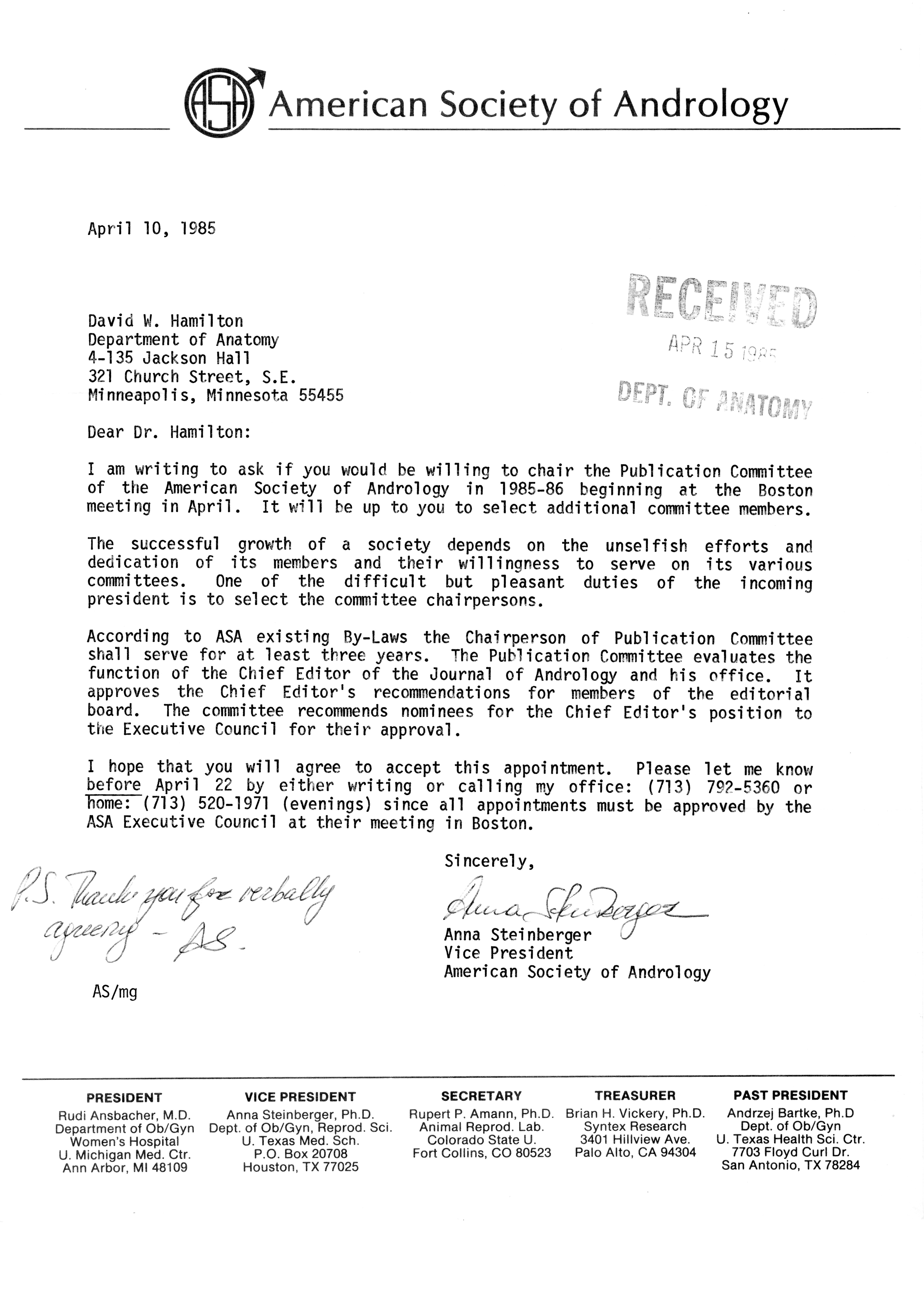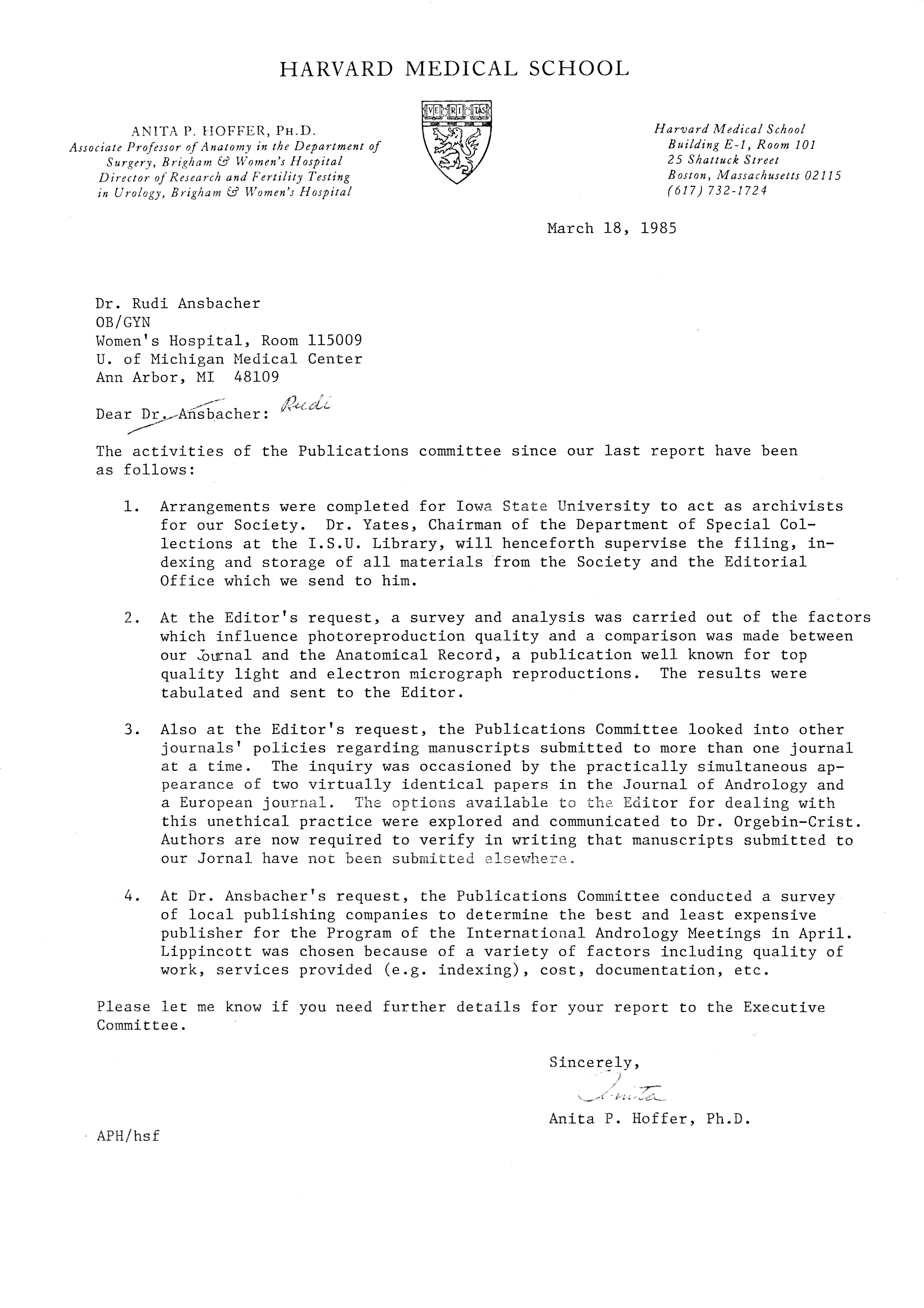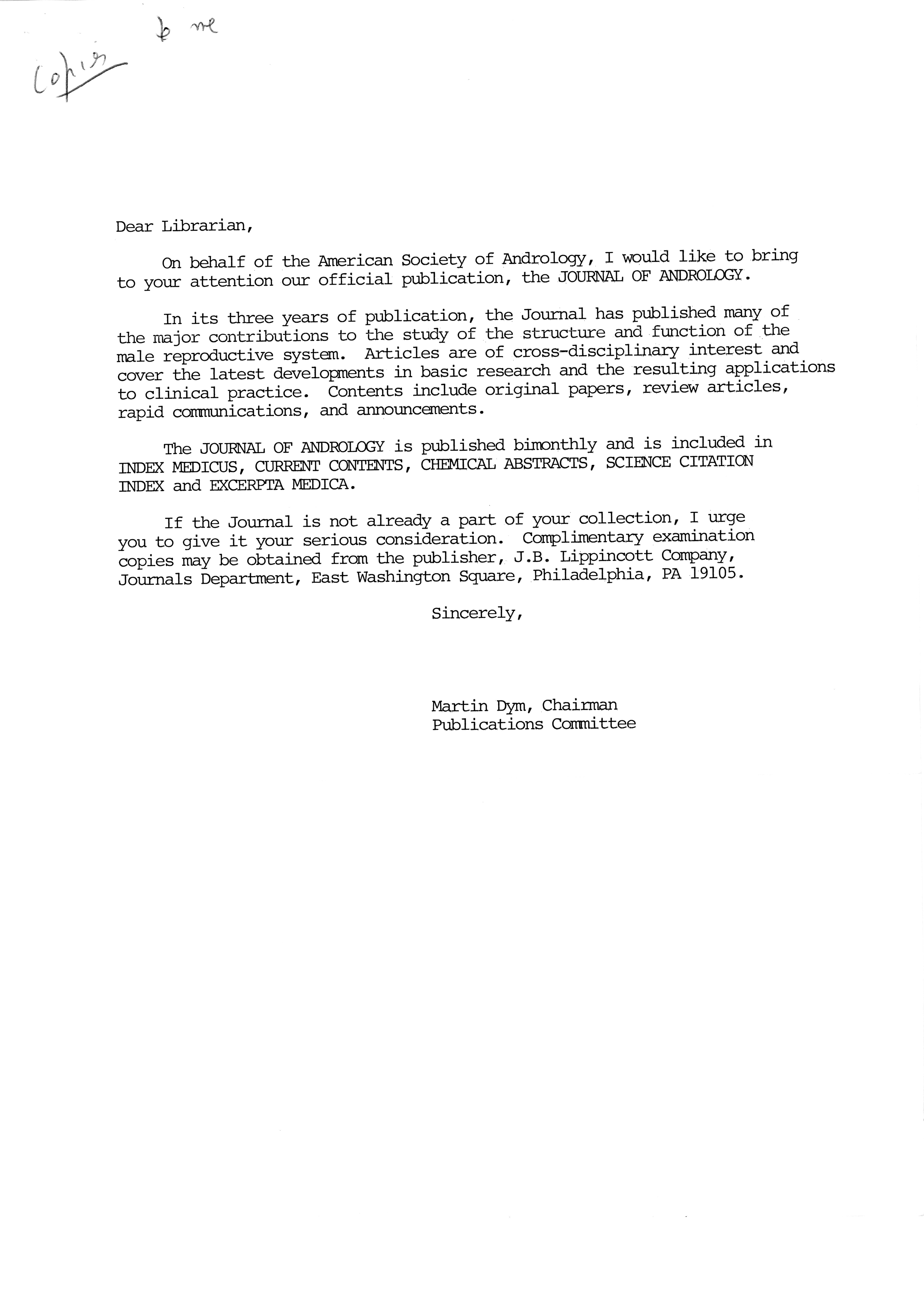 - "Publications Committee--Journal of Andrology, 1982-86", American Society of Andrology Collection, Iowa State University Library Digital Collections