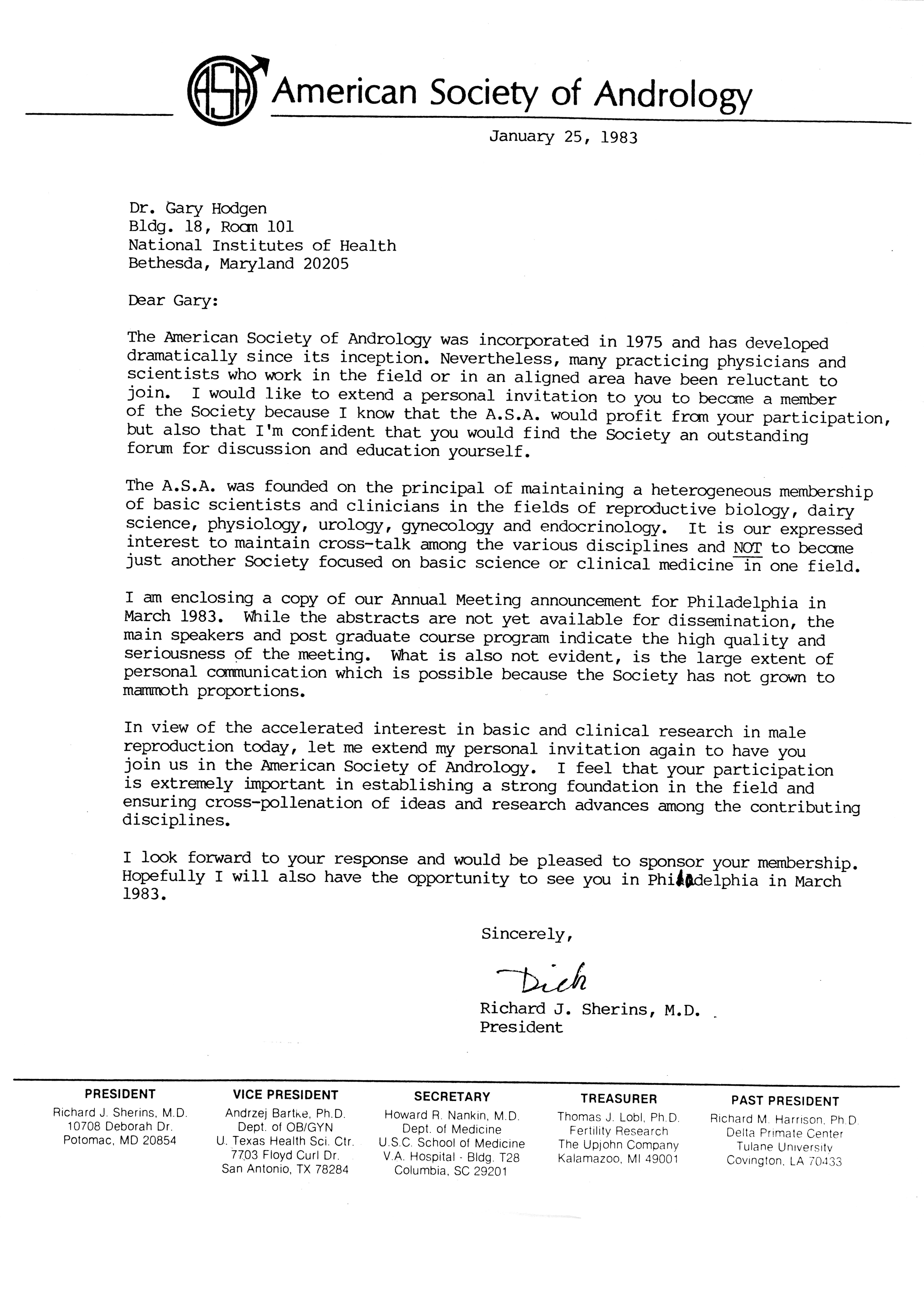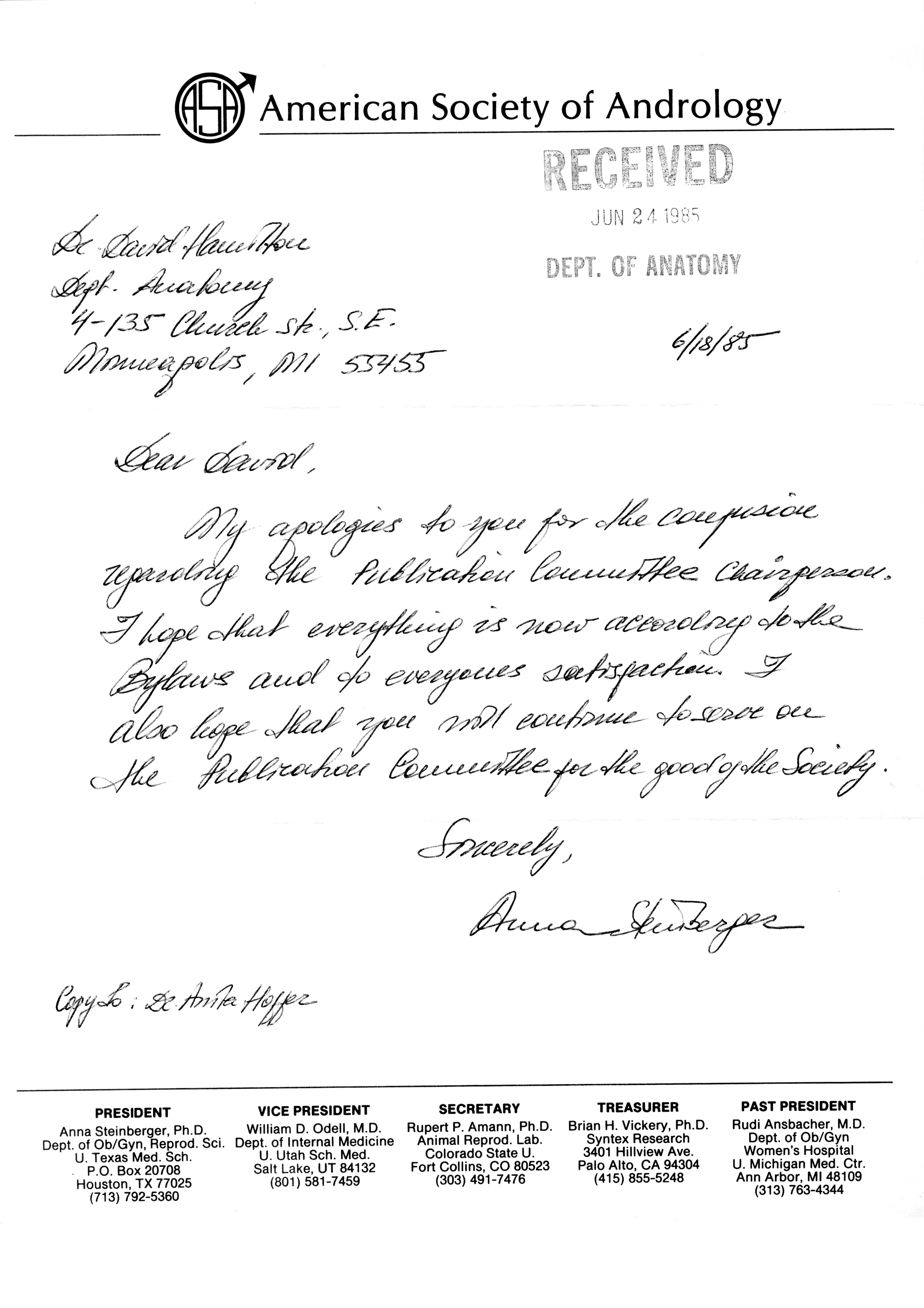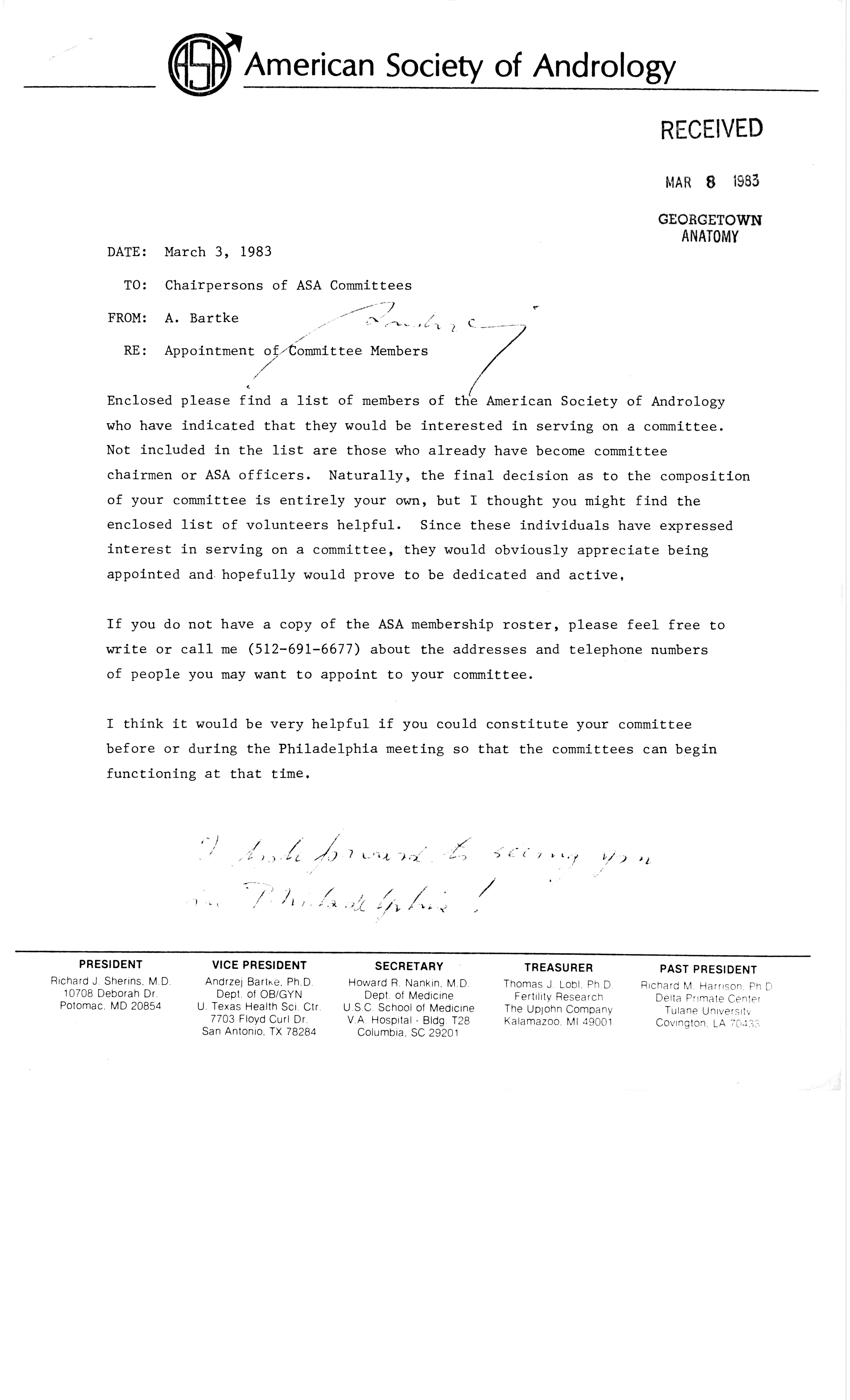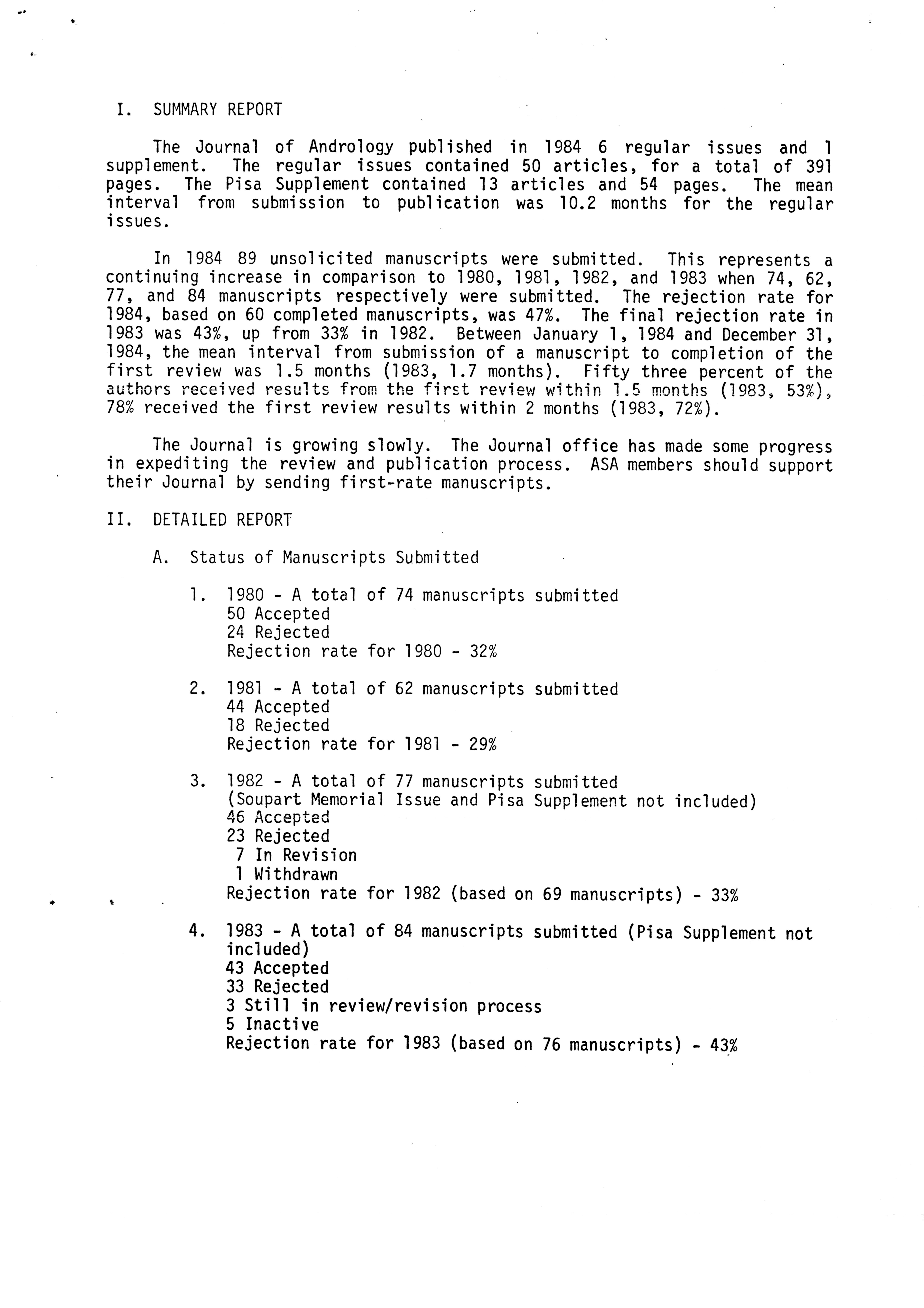 - "Publications Committee--Journal of Andrology, 1982-86", American Society of Andrology Collection, Iowa State University Library Digital Collections