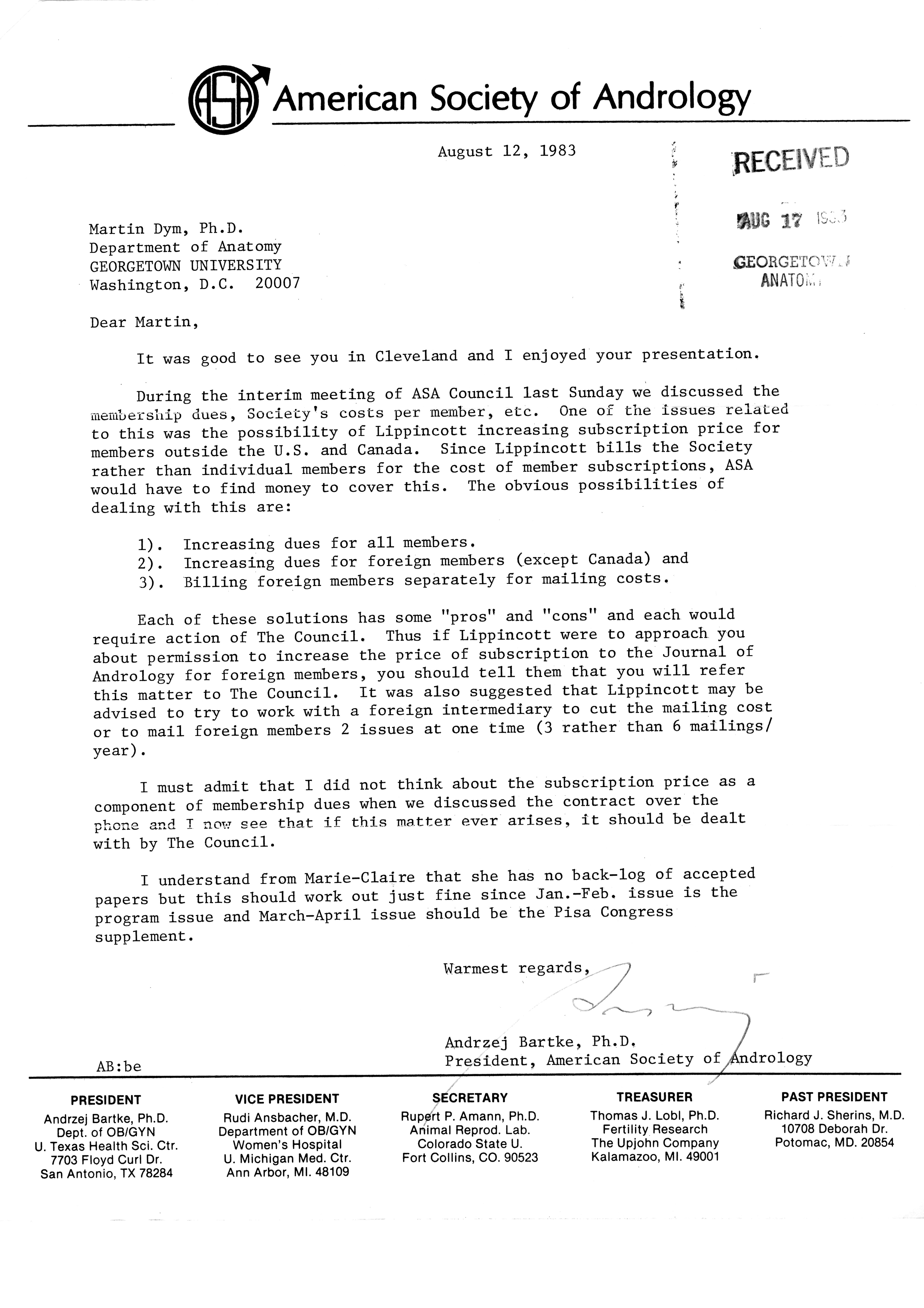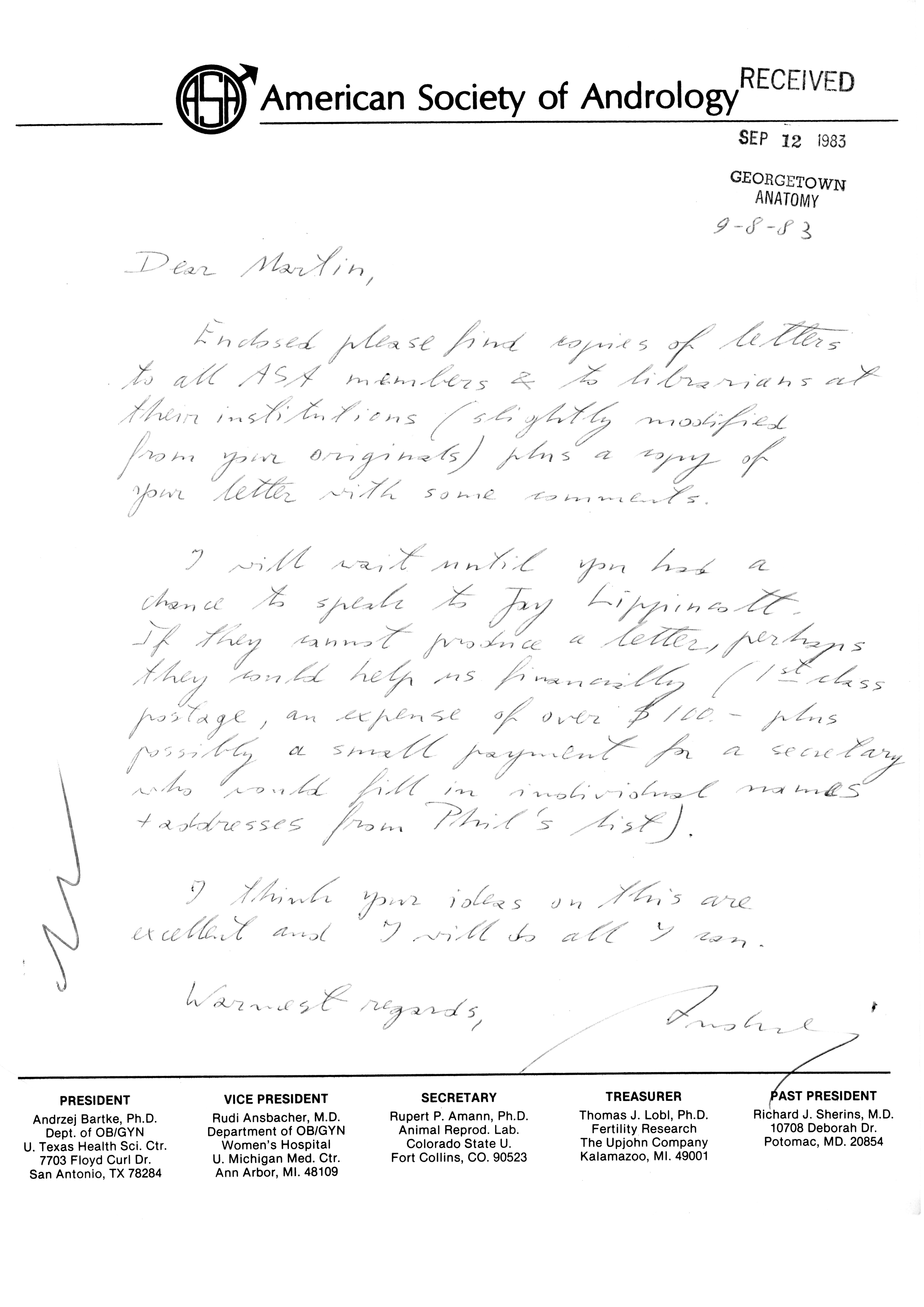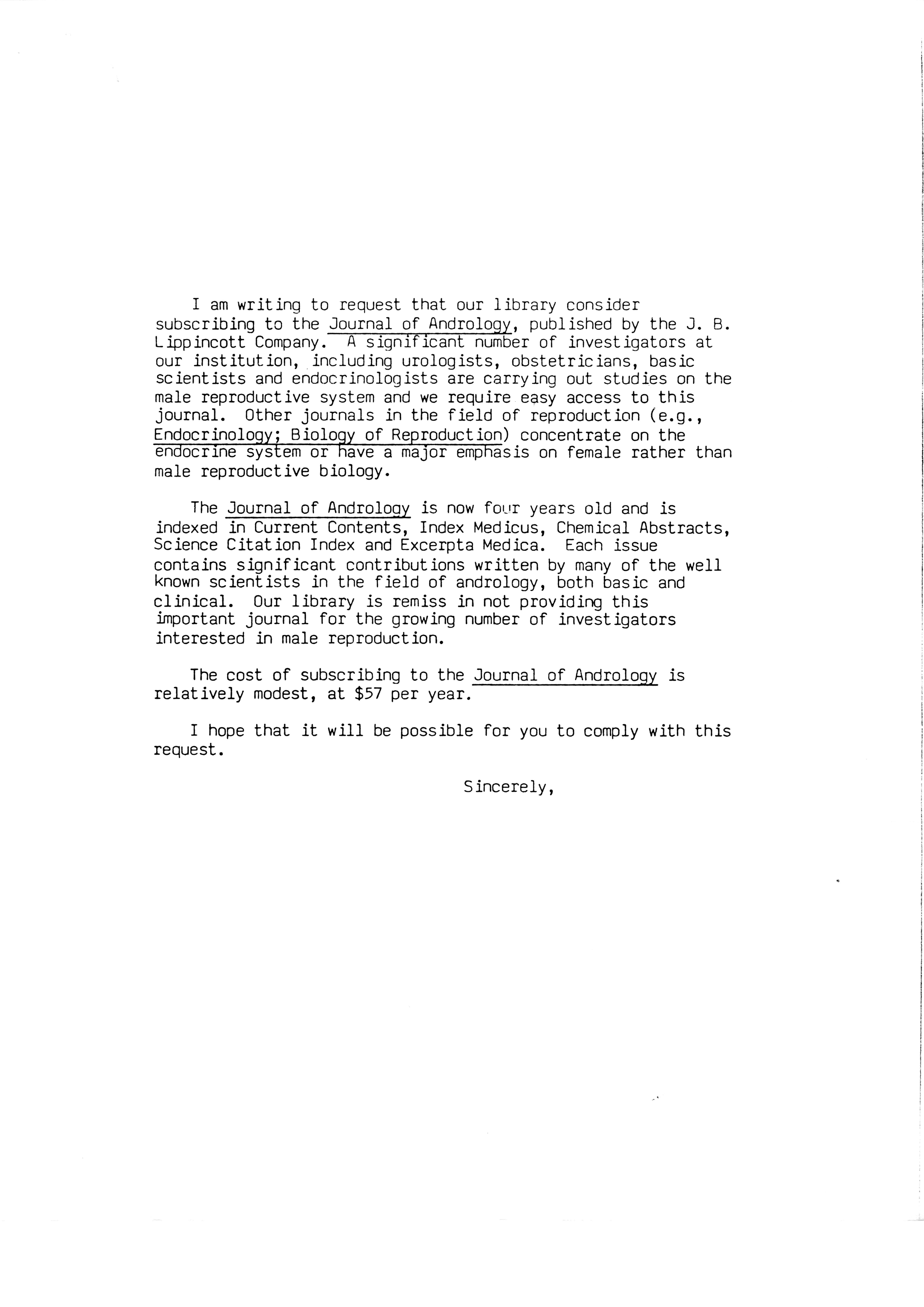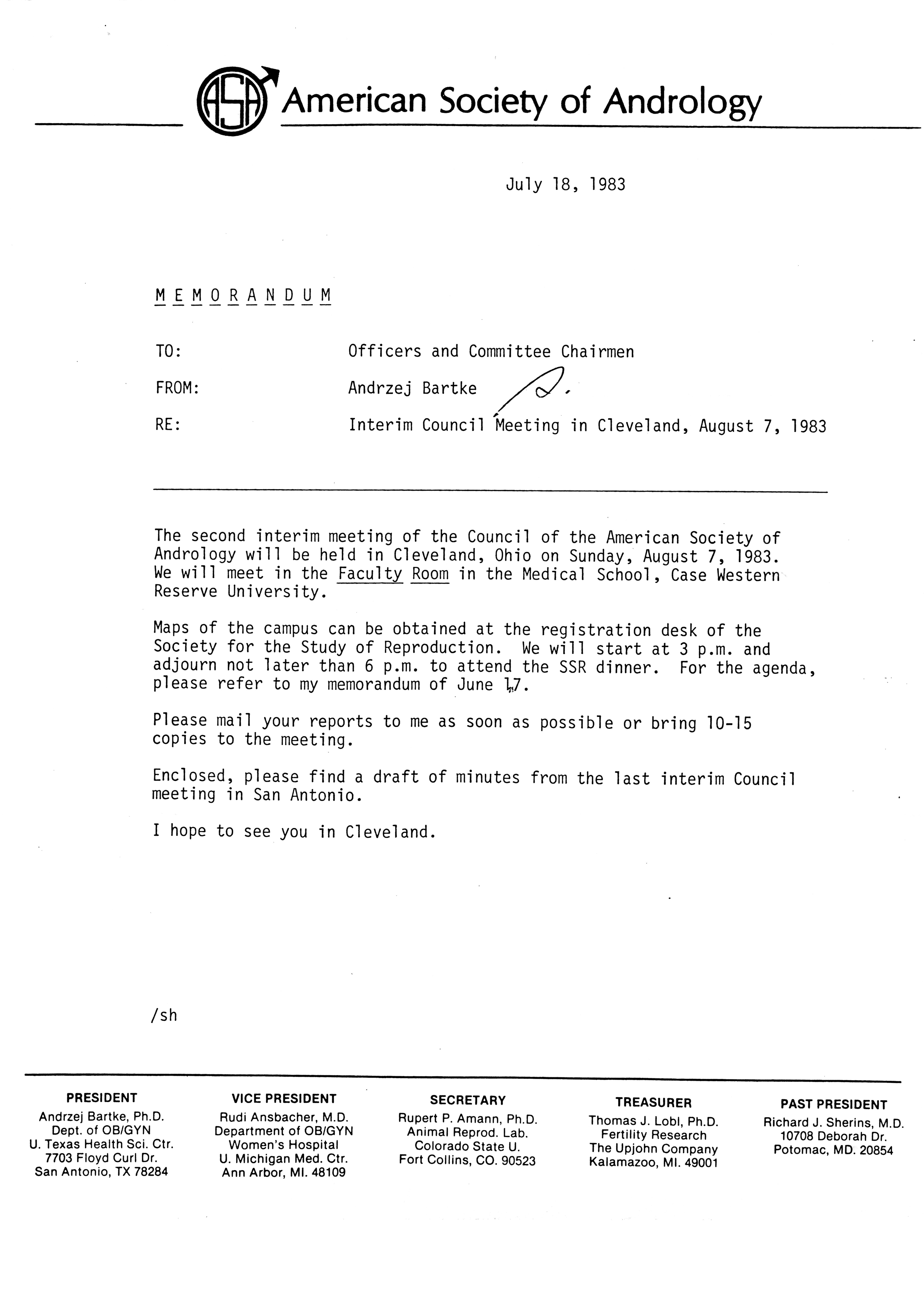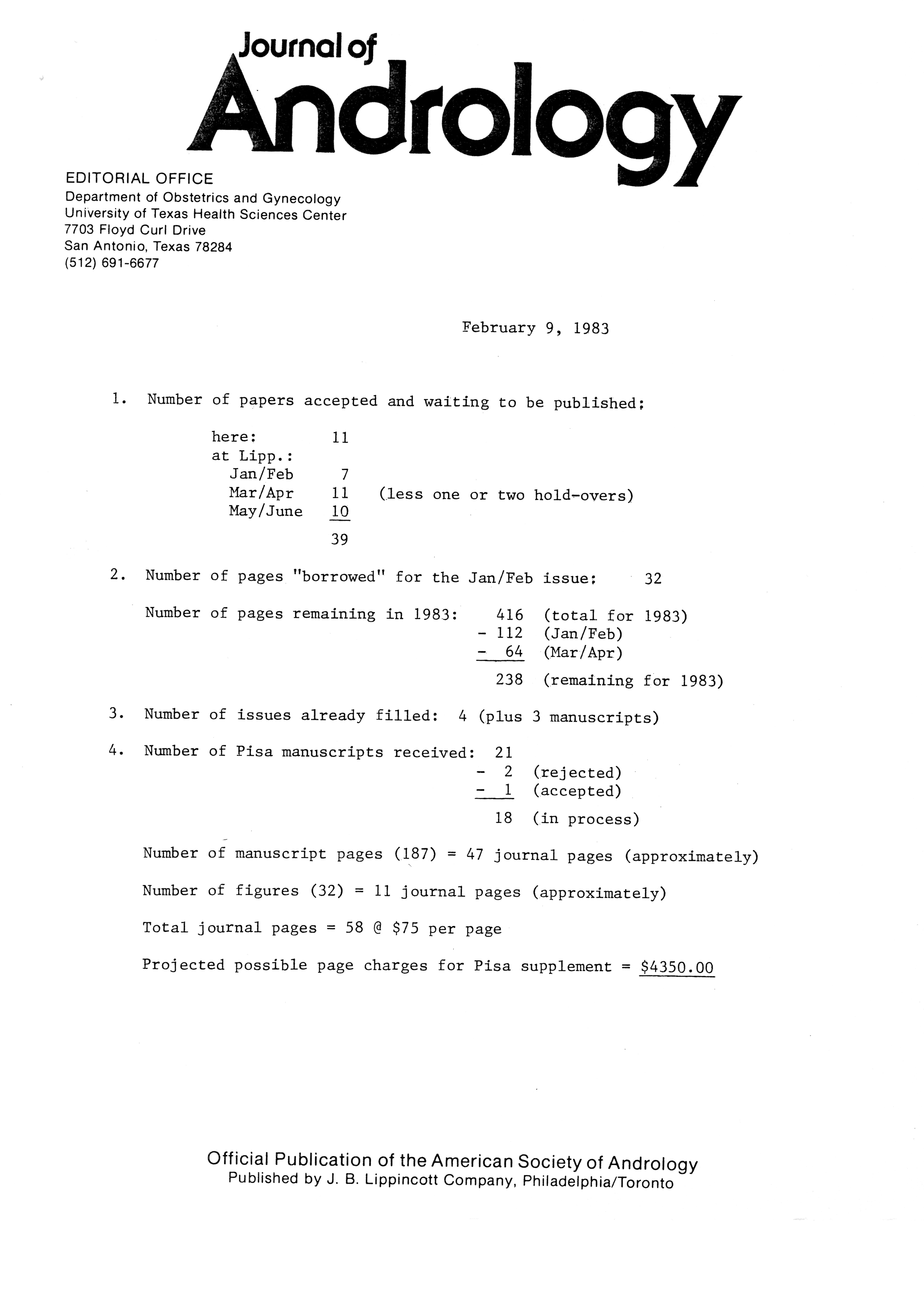 - "Publications Committee--Journal of Andrology, 1982-86", American Society of Andrology Collection, Iowa State University Library Digital Collections