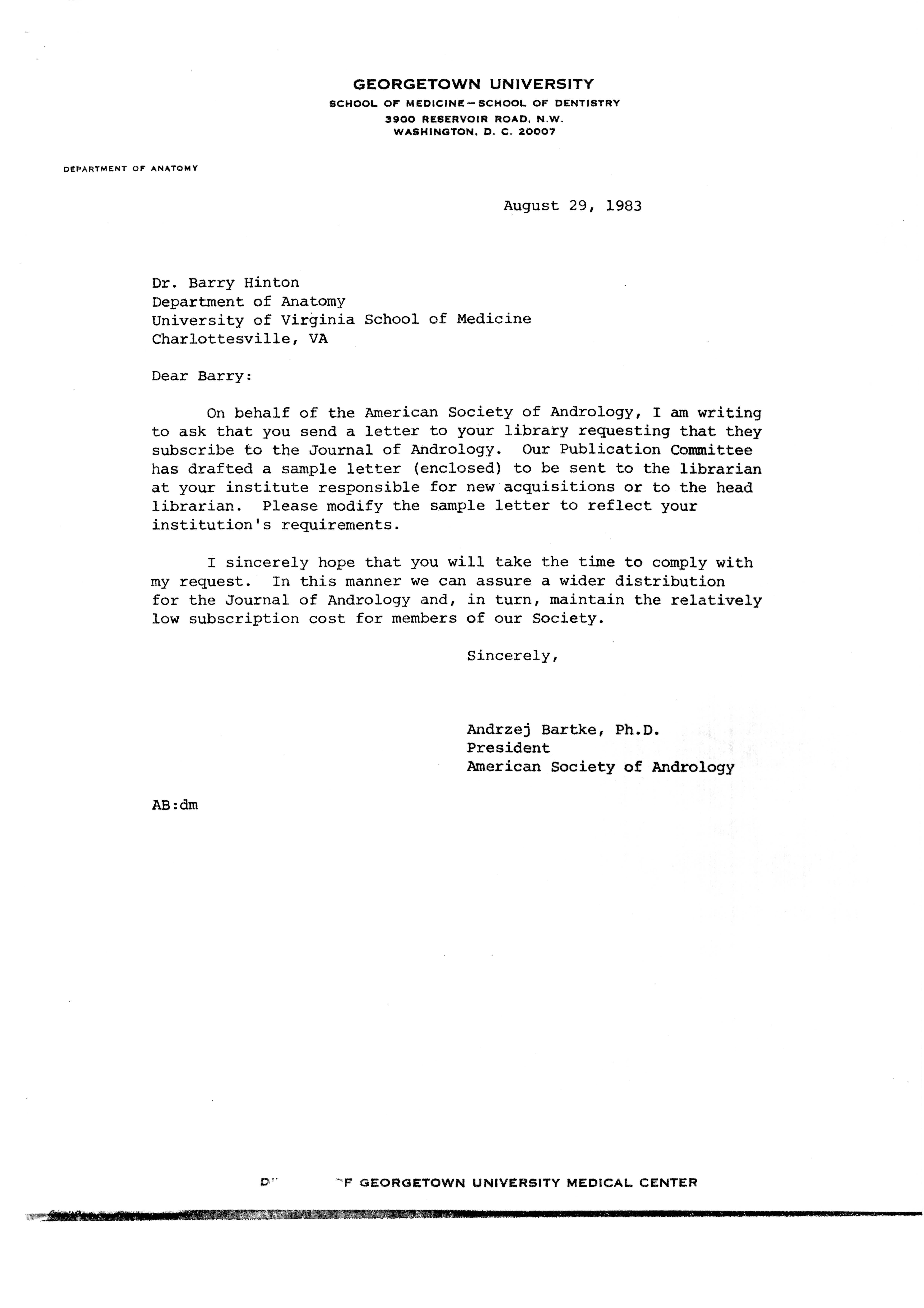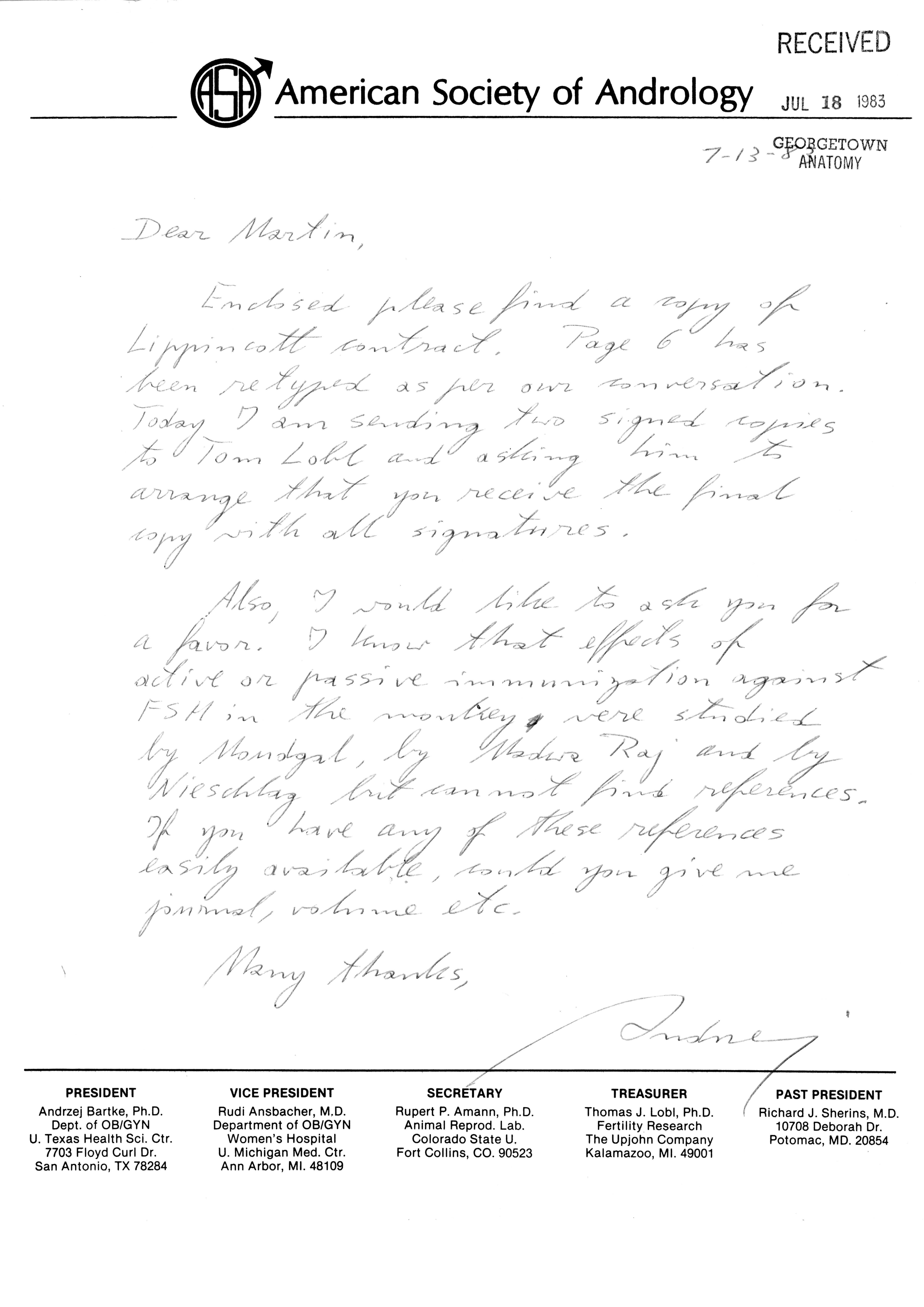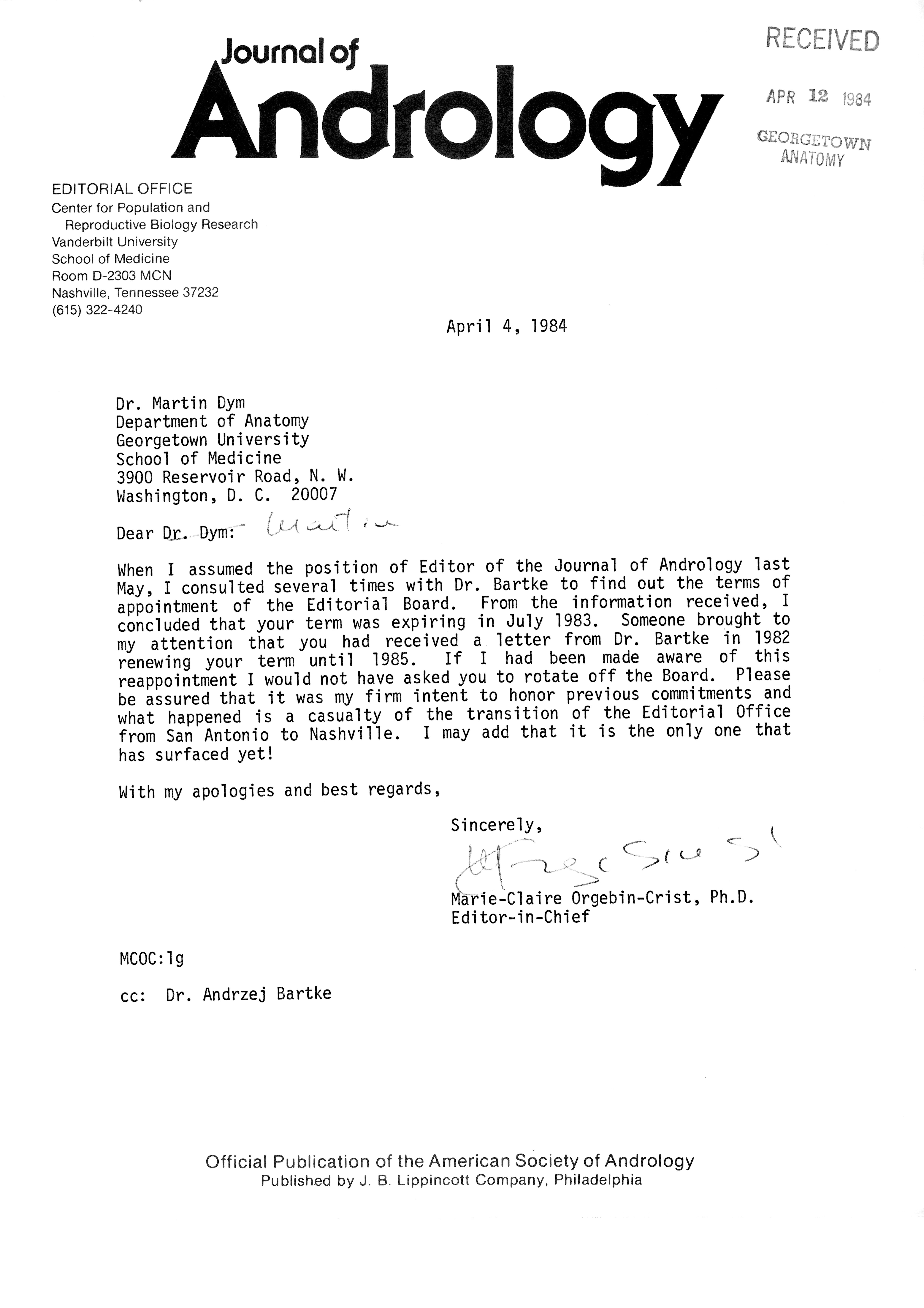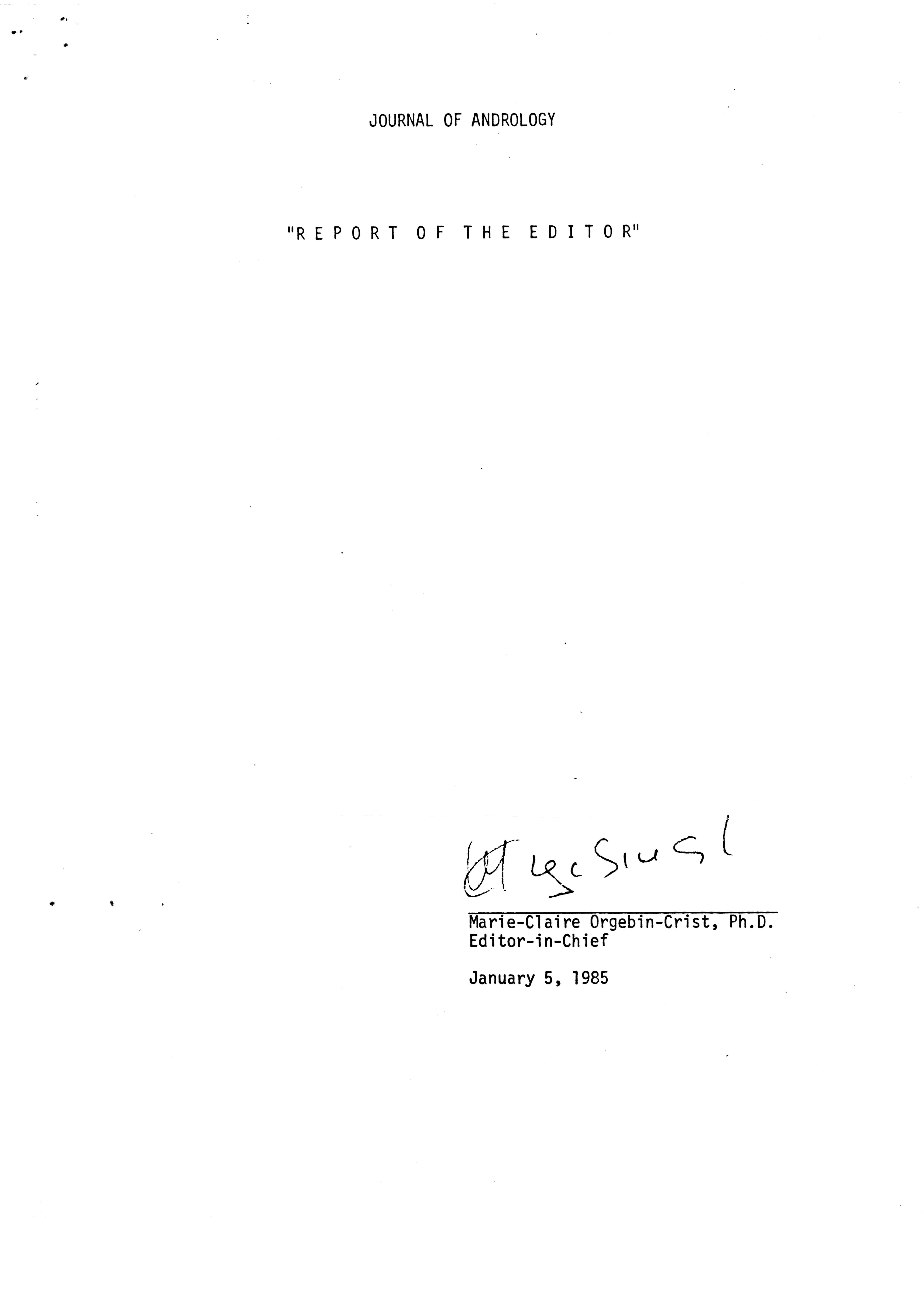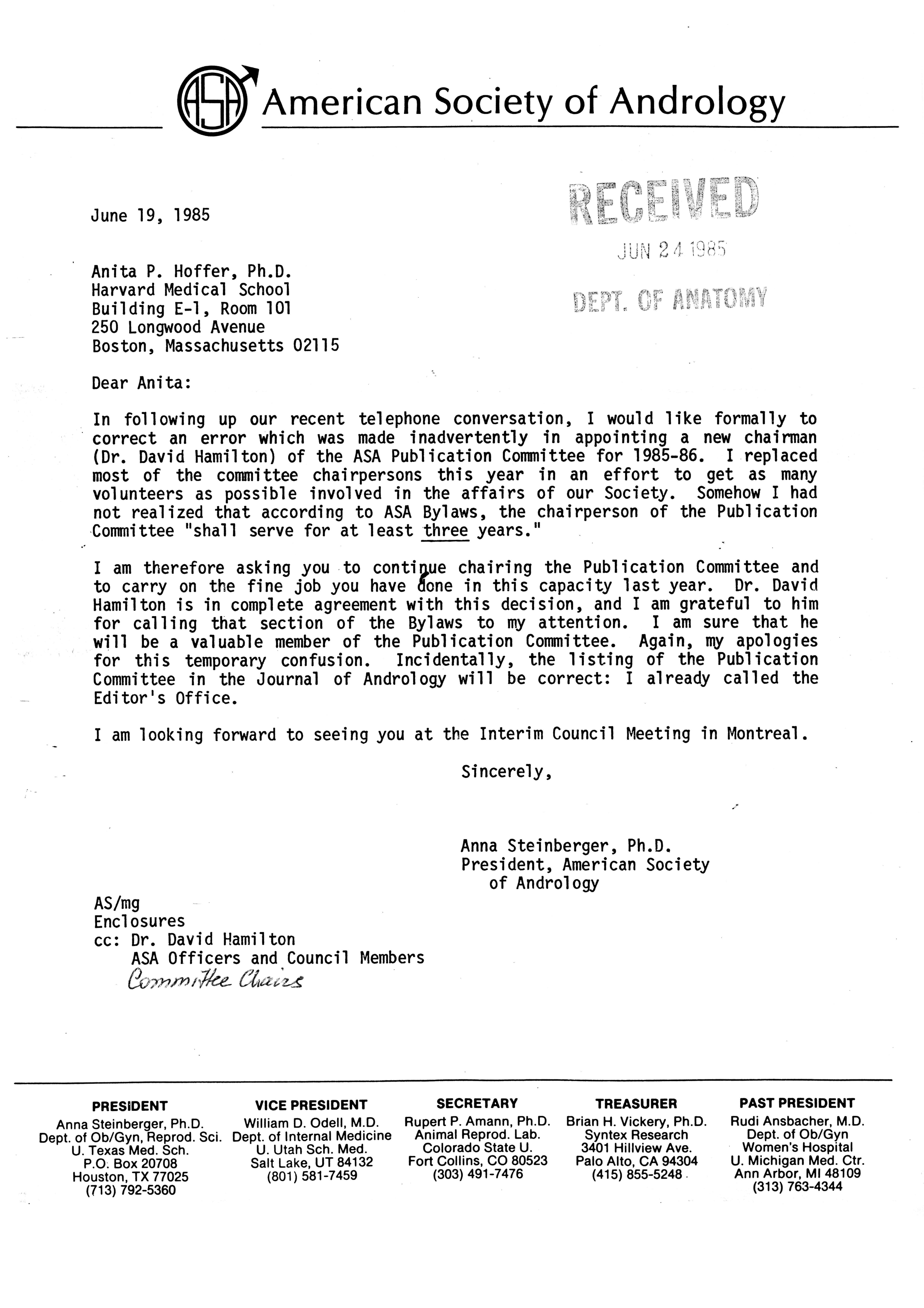 - "Publications Committee--Journal of Andrology, 1982-86", American Society of Andrology Collection, Iowa State University Library Digital Collections
