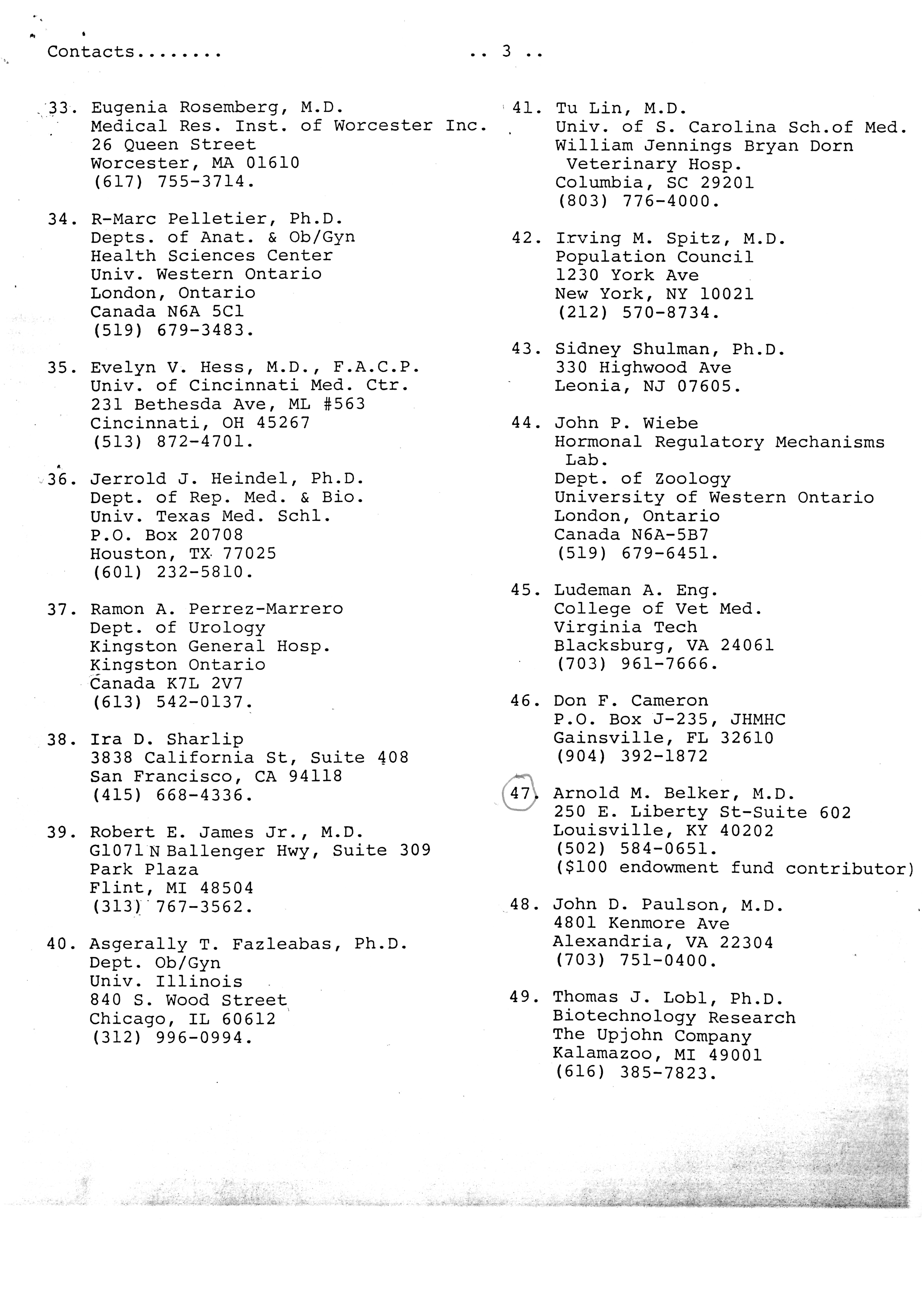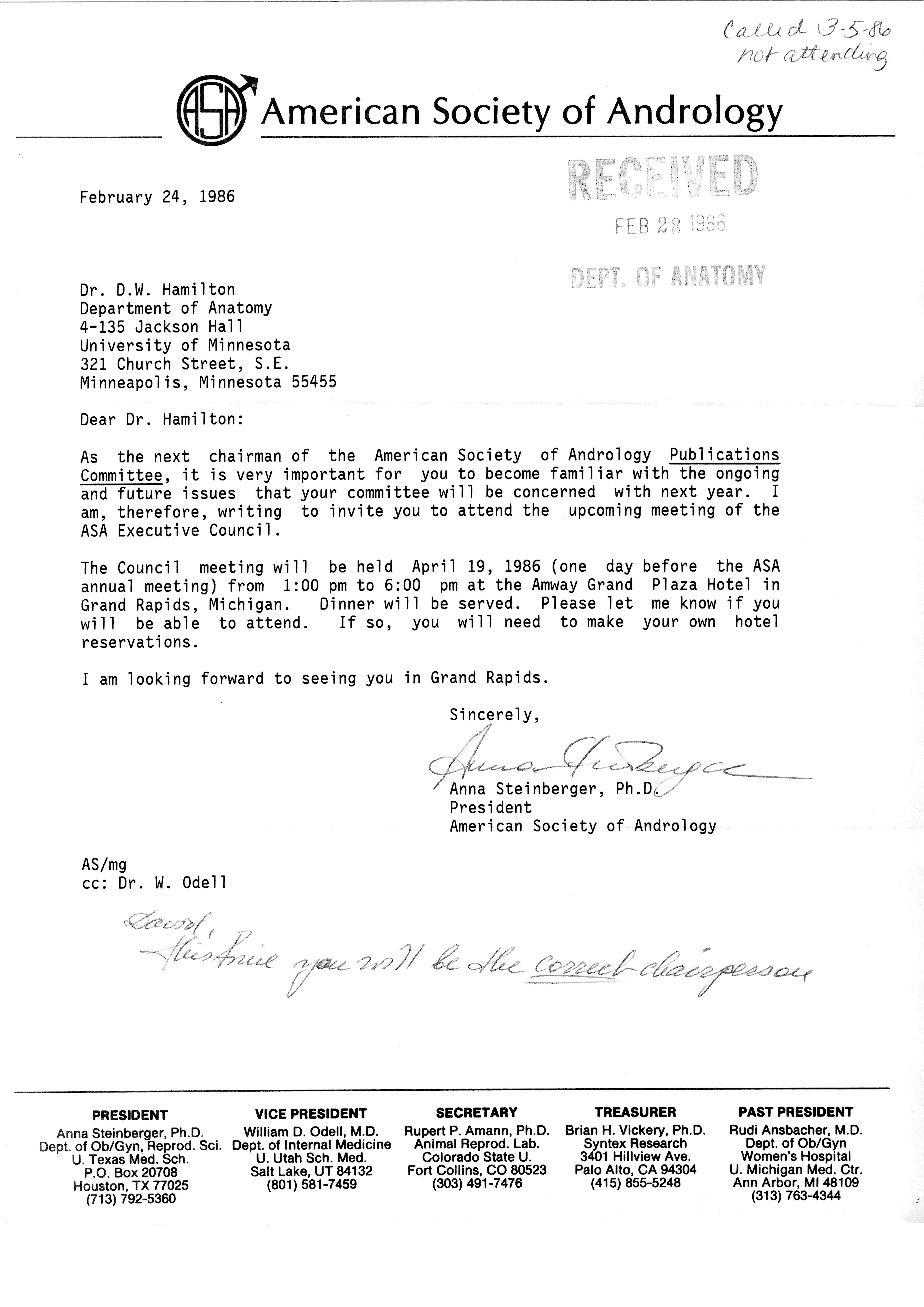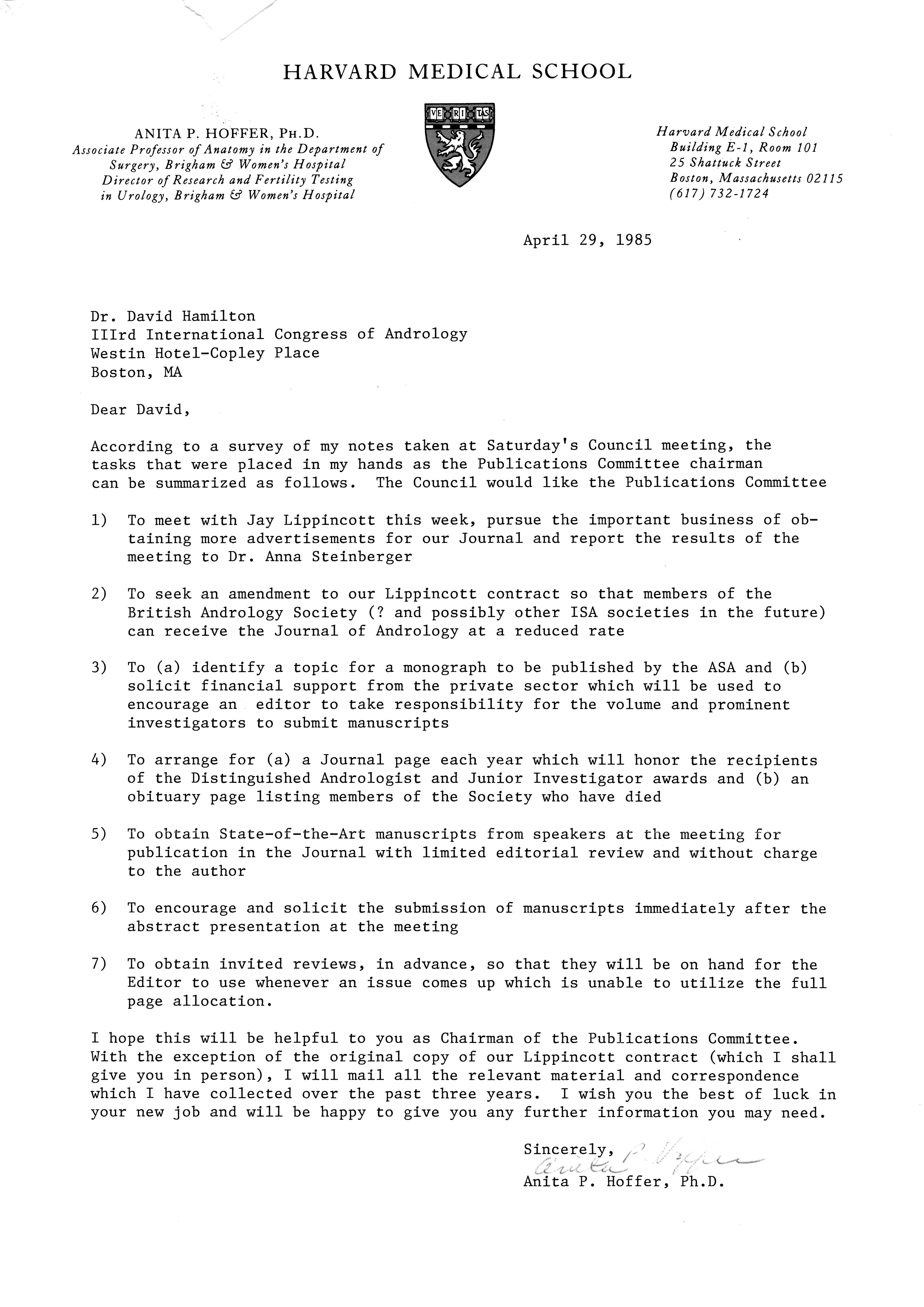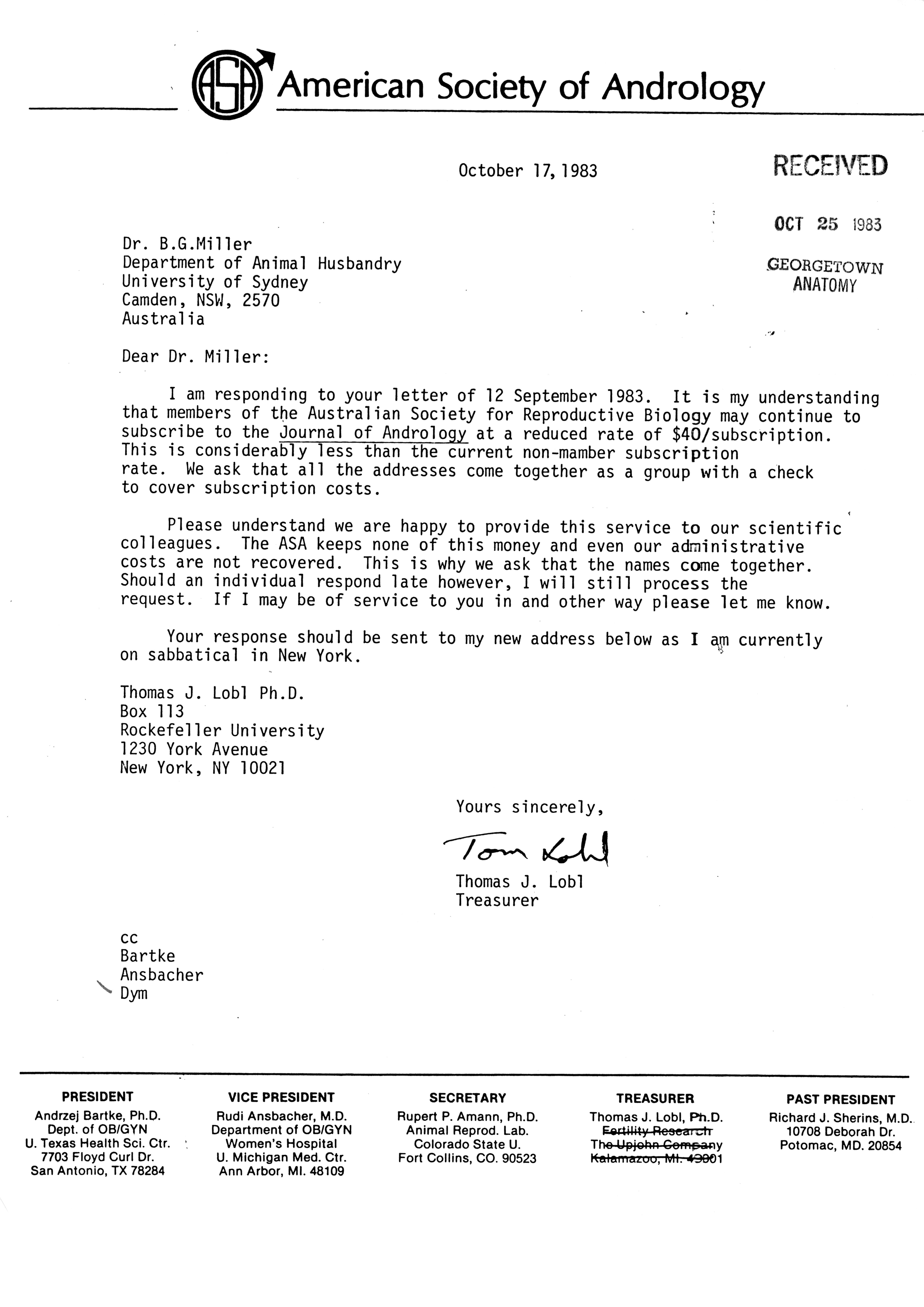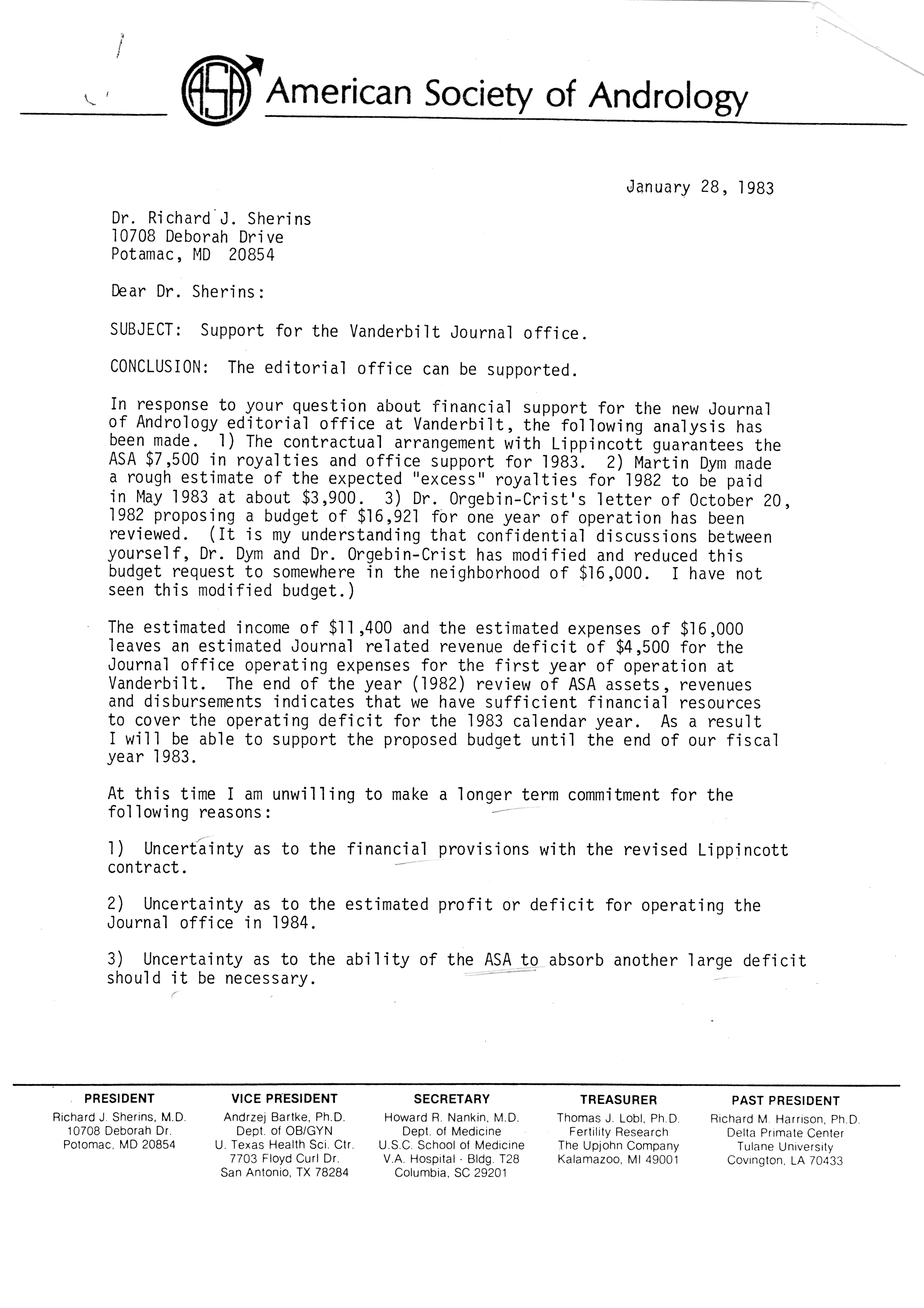 - "Publications Committee--Journal of Andrology, 1982-86", American Society of Andrology Collection, Iowa State University Library Digital Collections