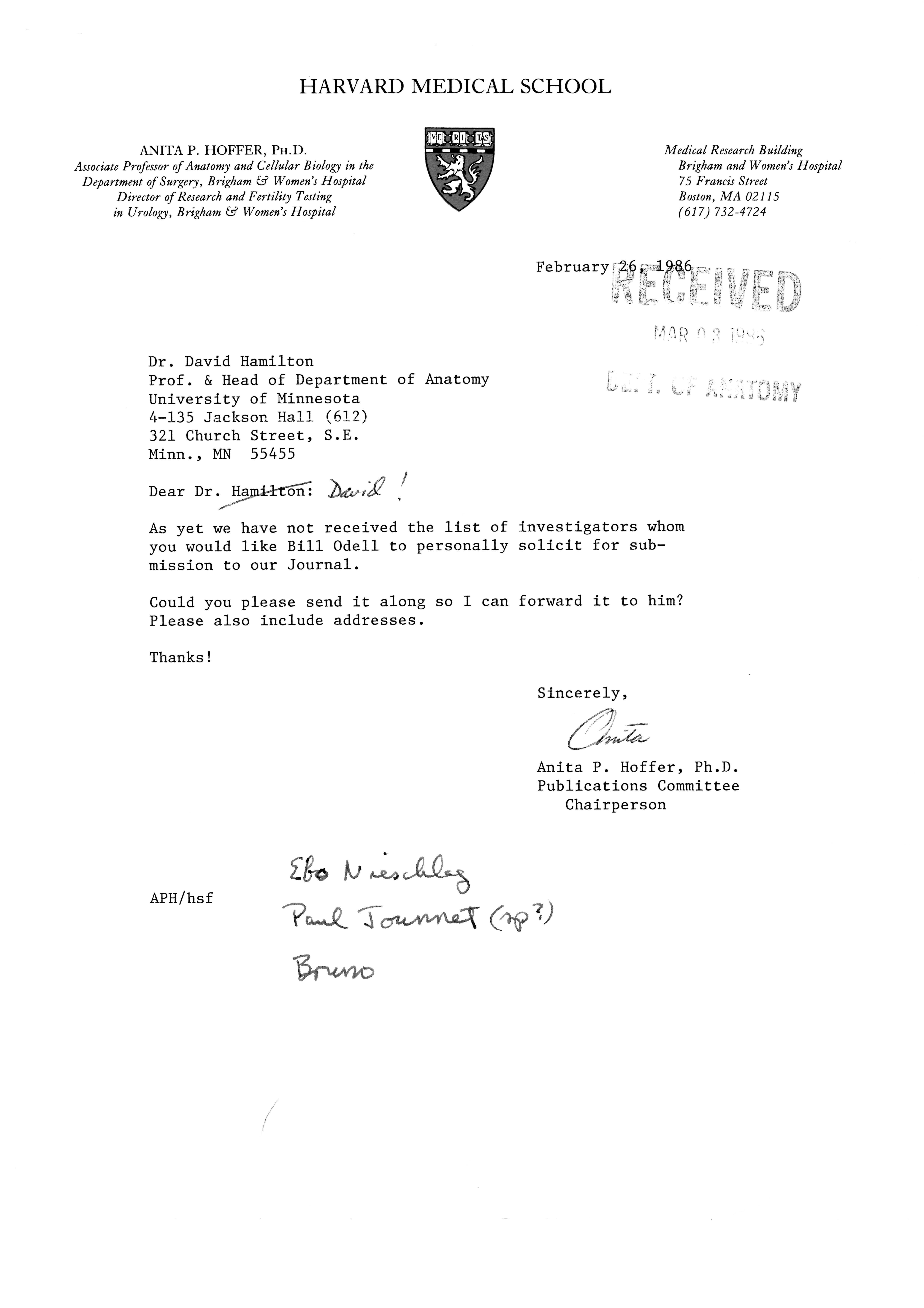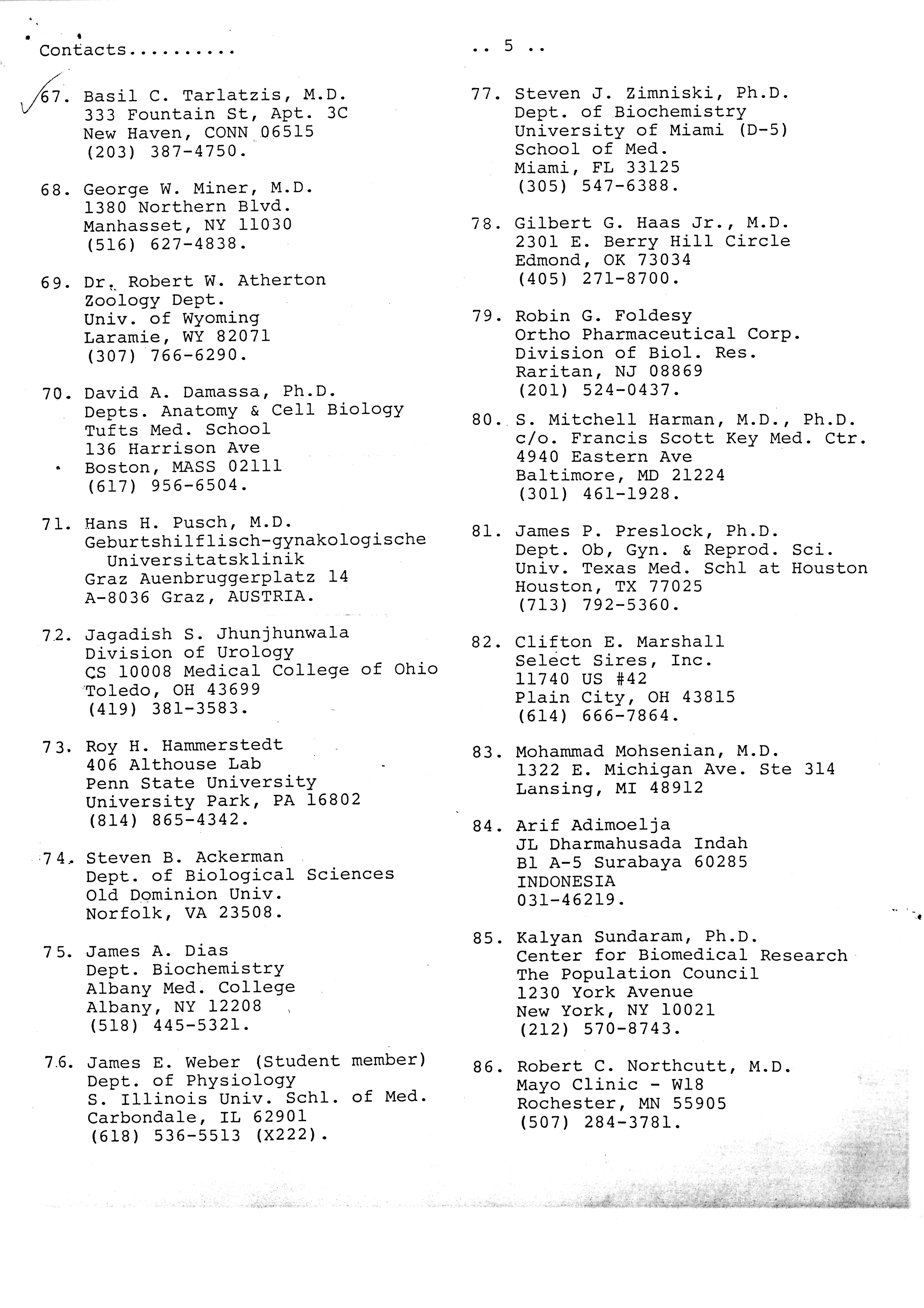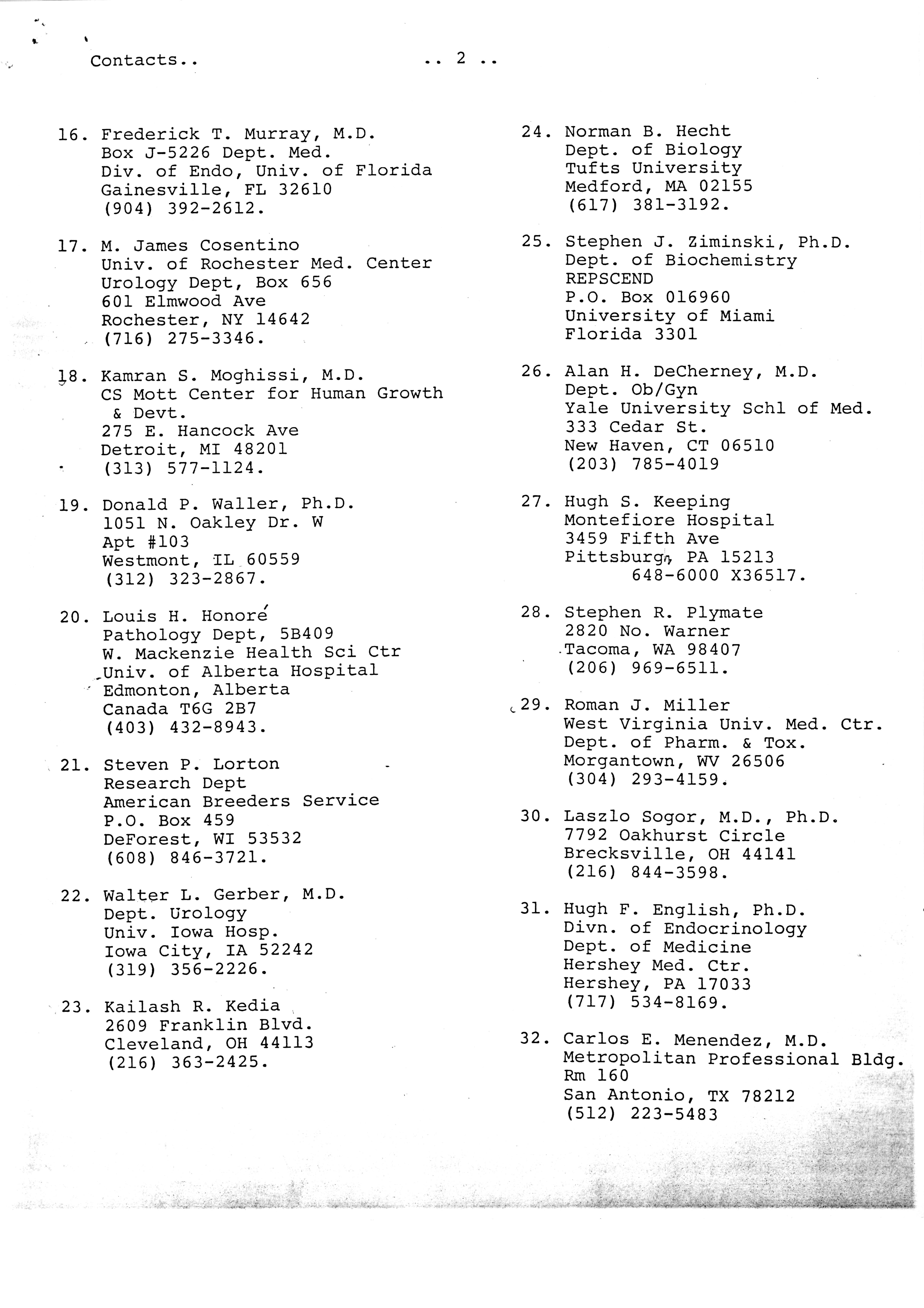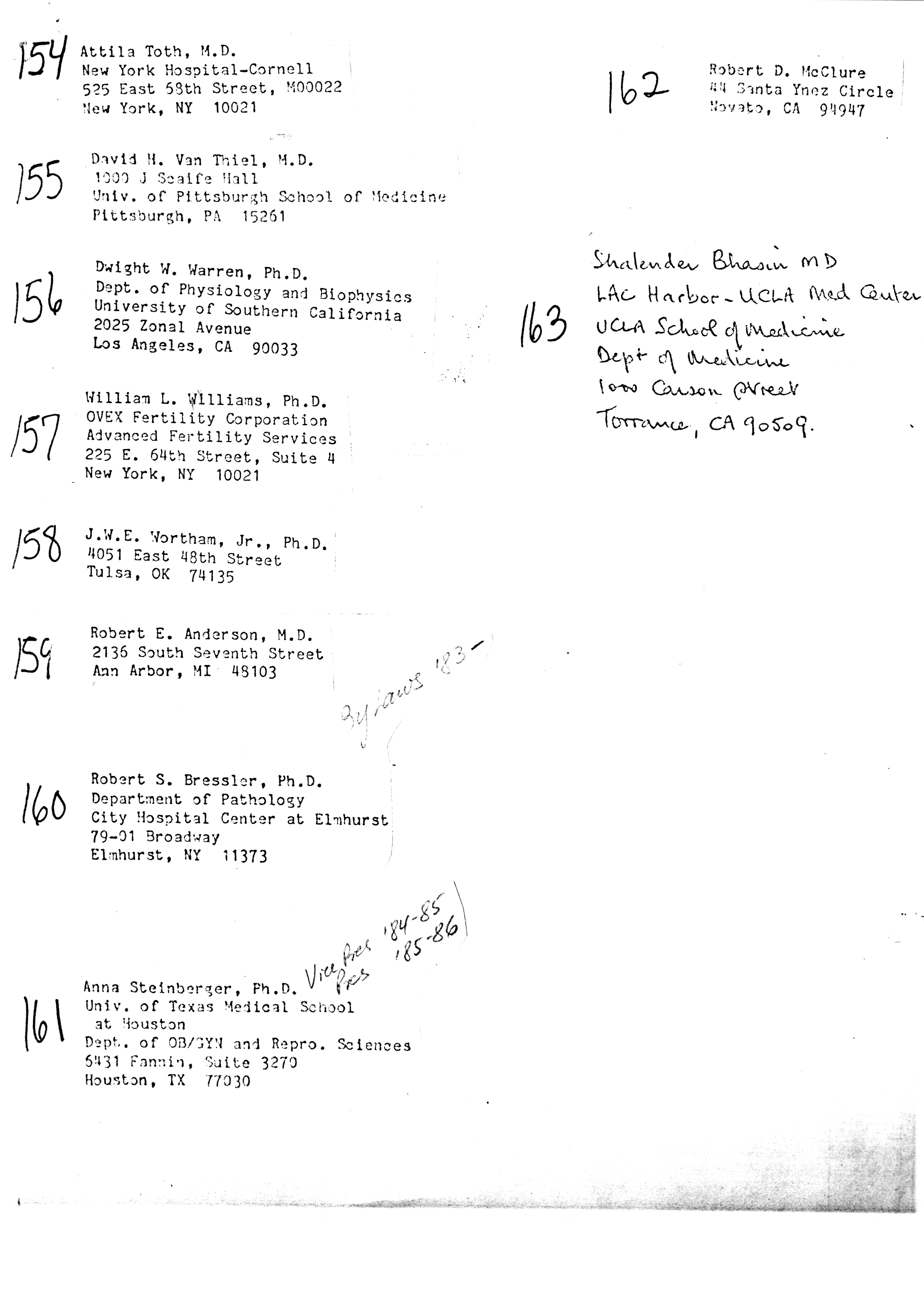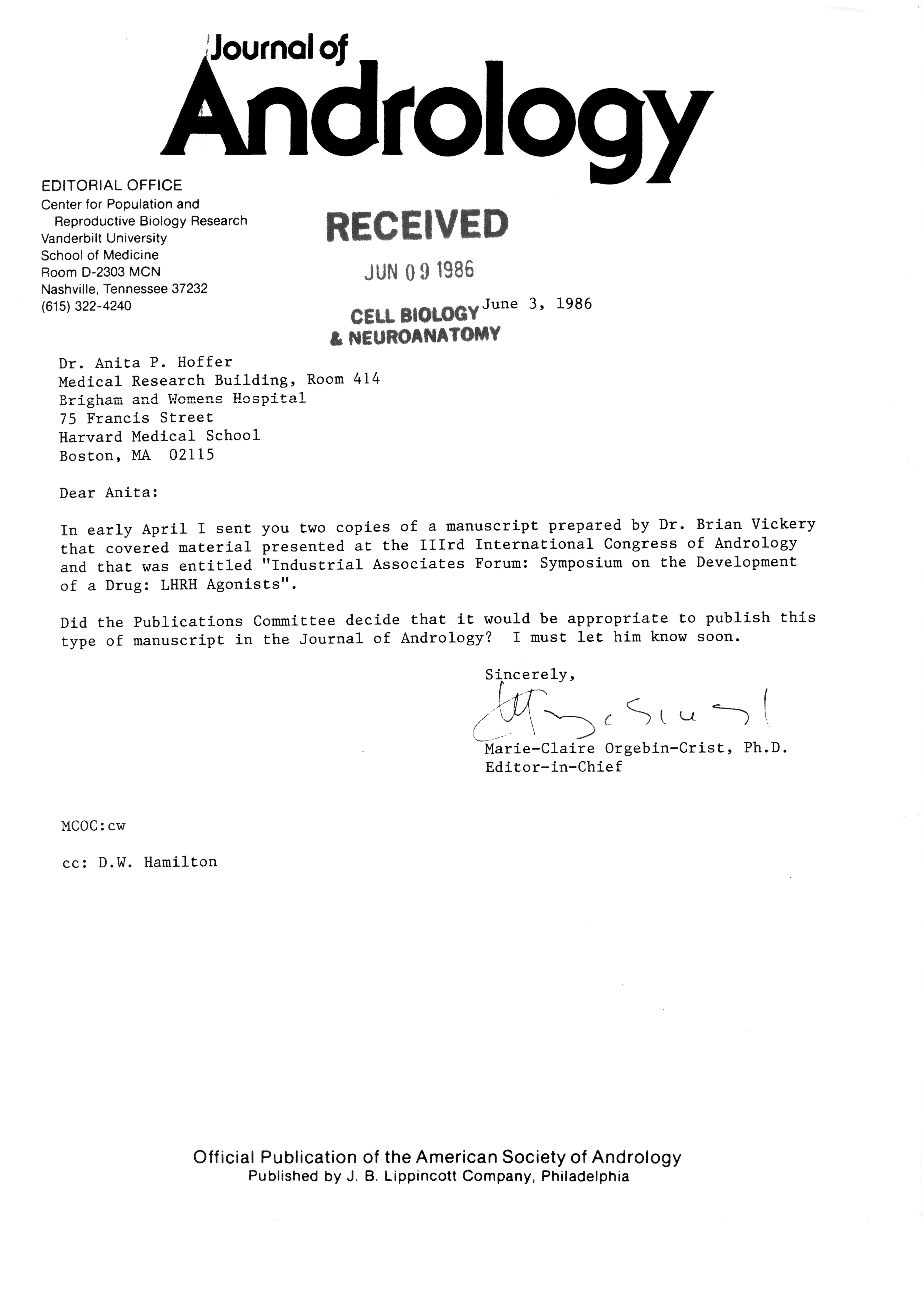 - "Publications Committee--Journal of Andrology, 1982-86", American Society of Andrology Collection, Iowa State University Library Digital Collections