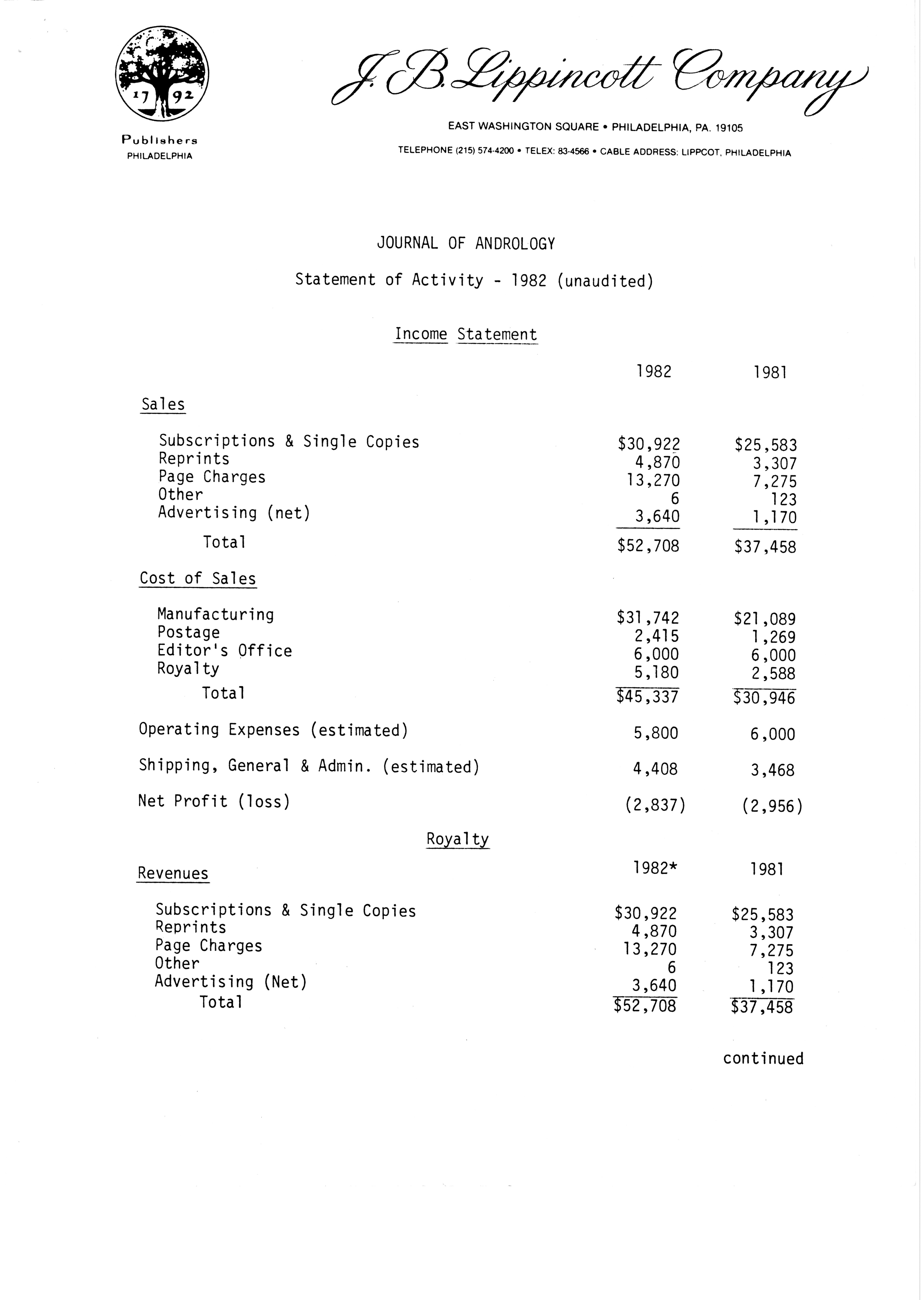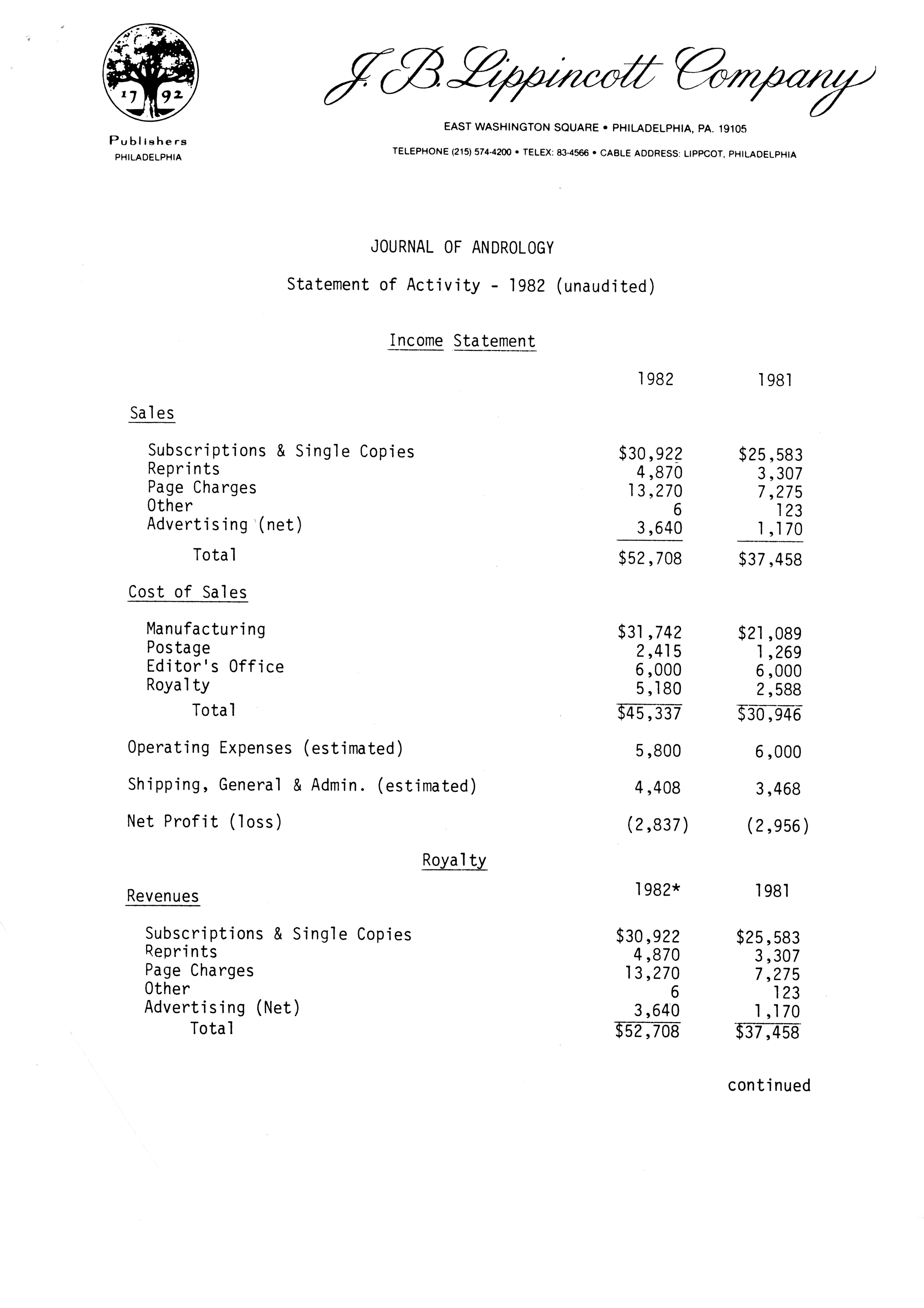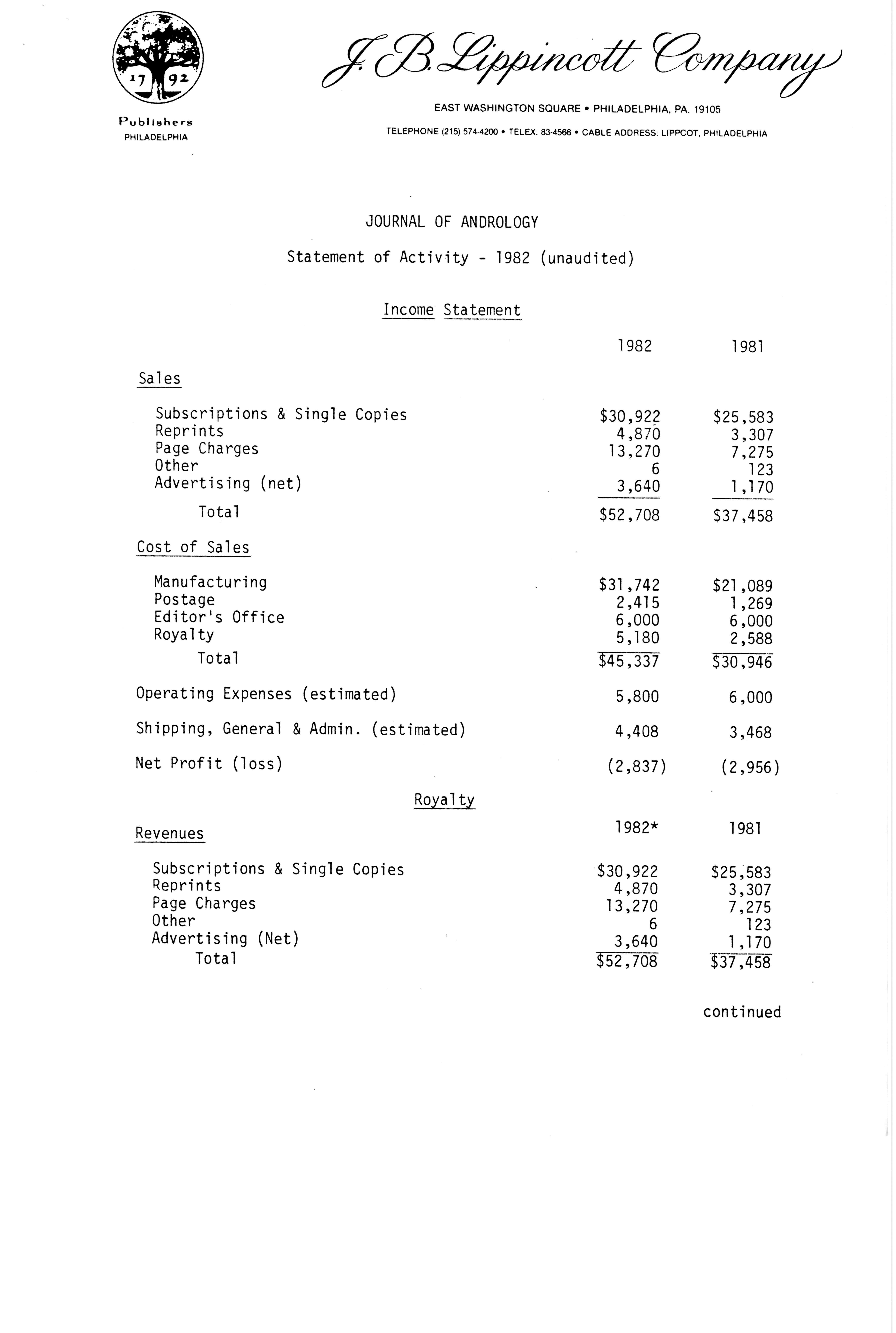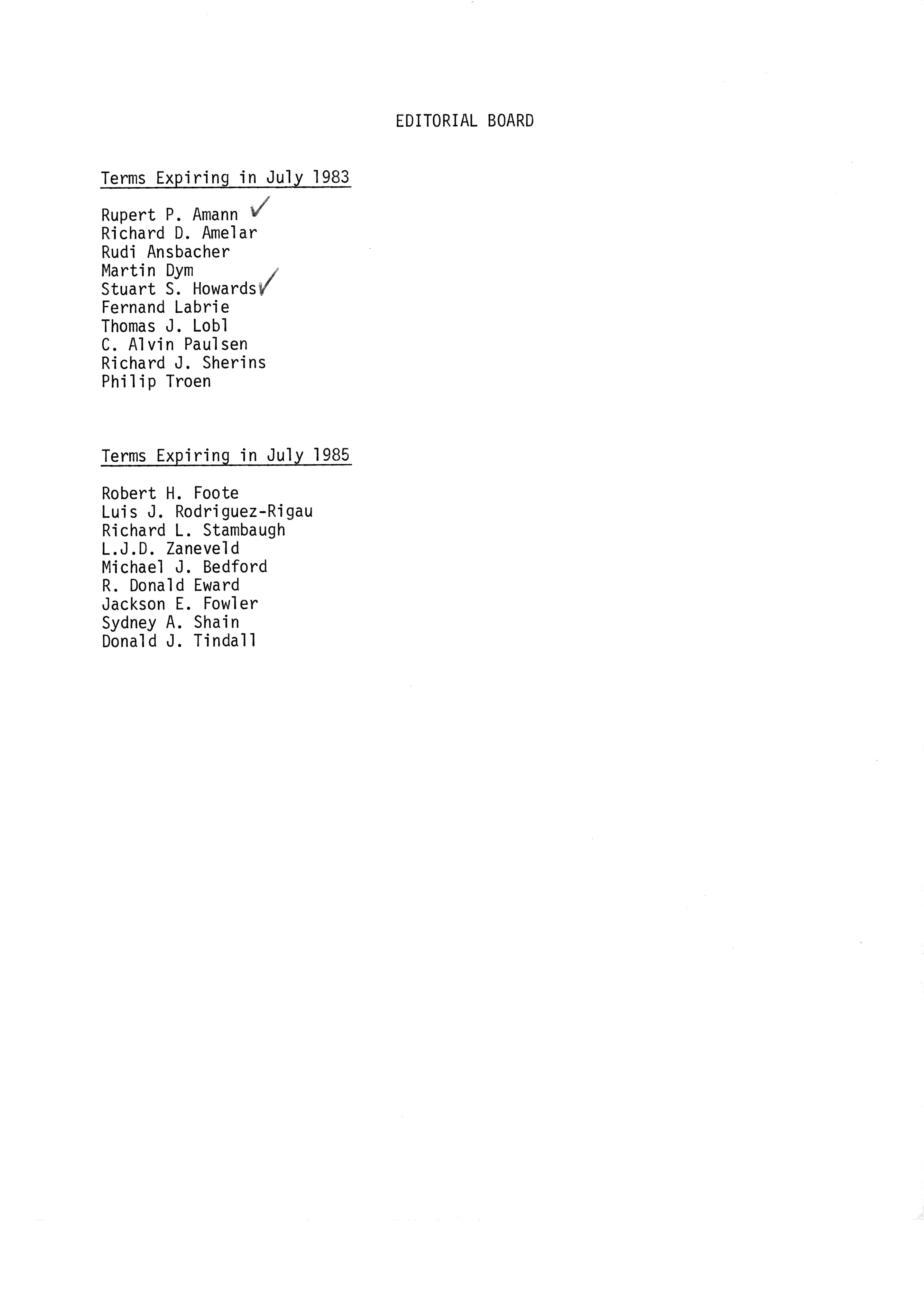 Publications Committee--Journal of Andrology, 1982-86