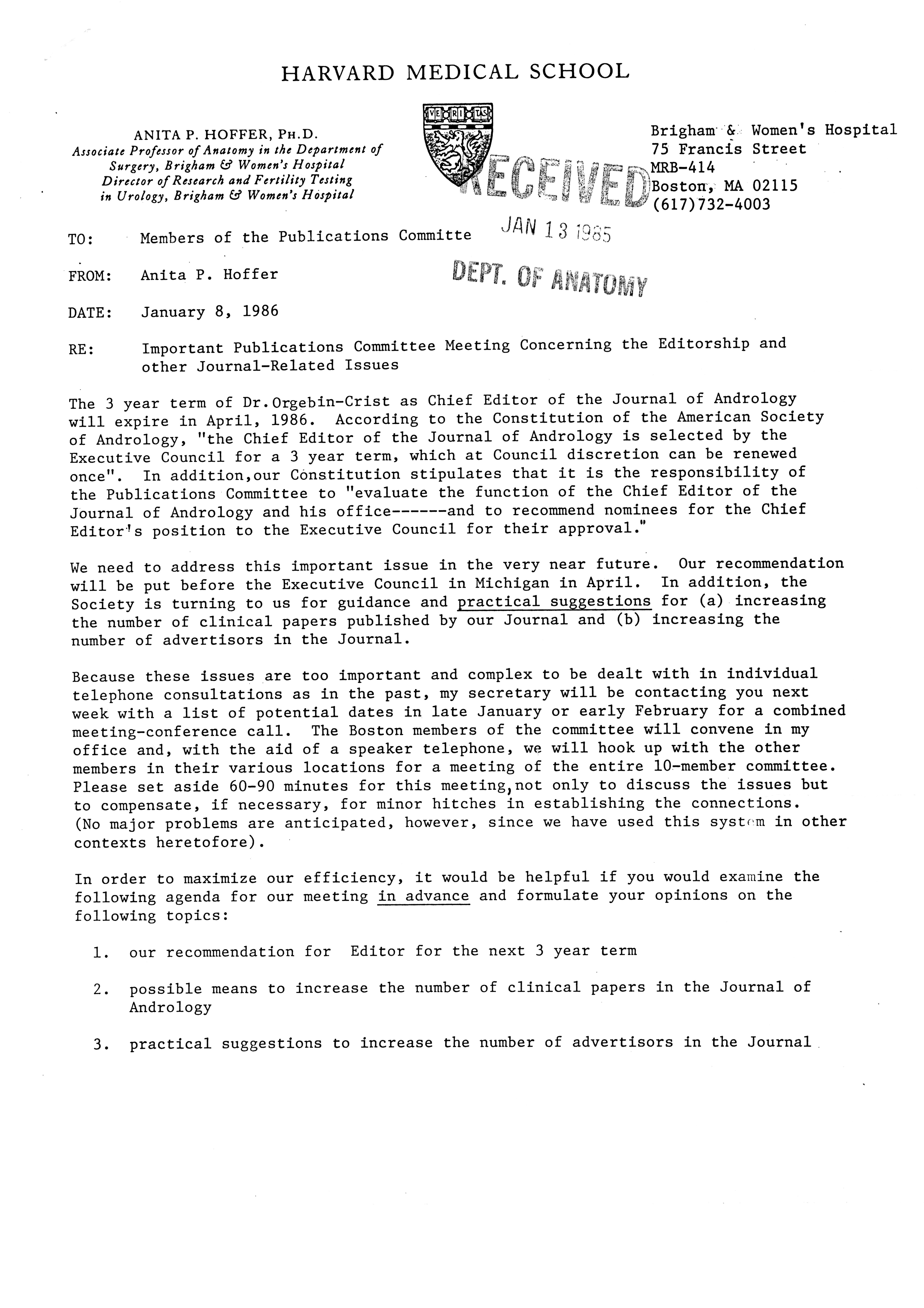 Publications Committee--Journal of Andrology, 1982-86 Item Info