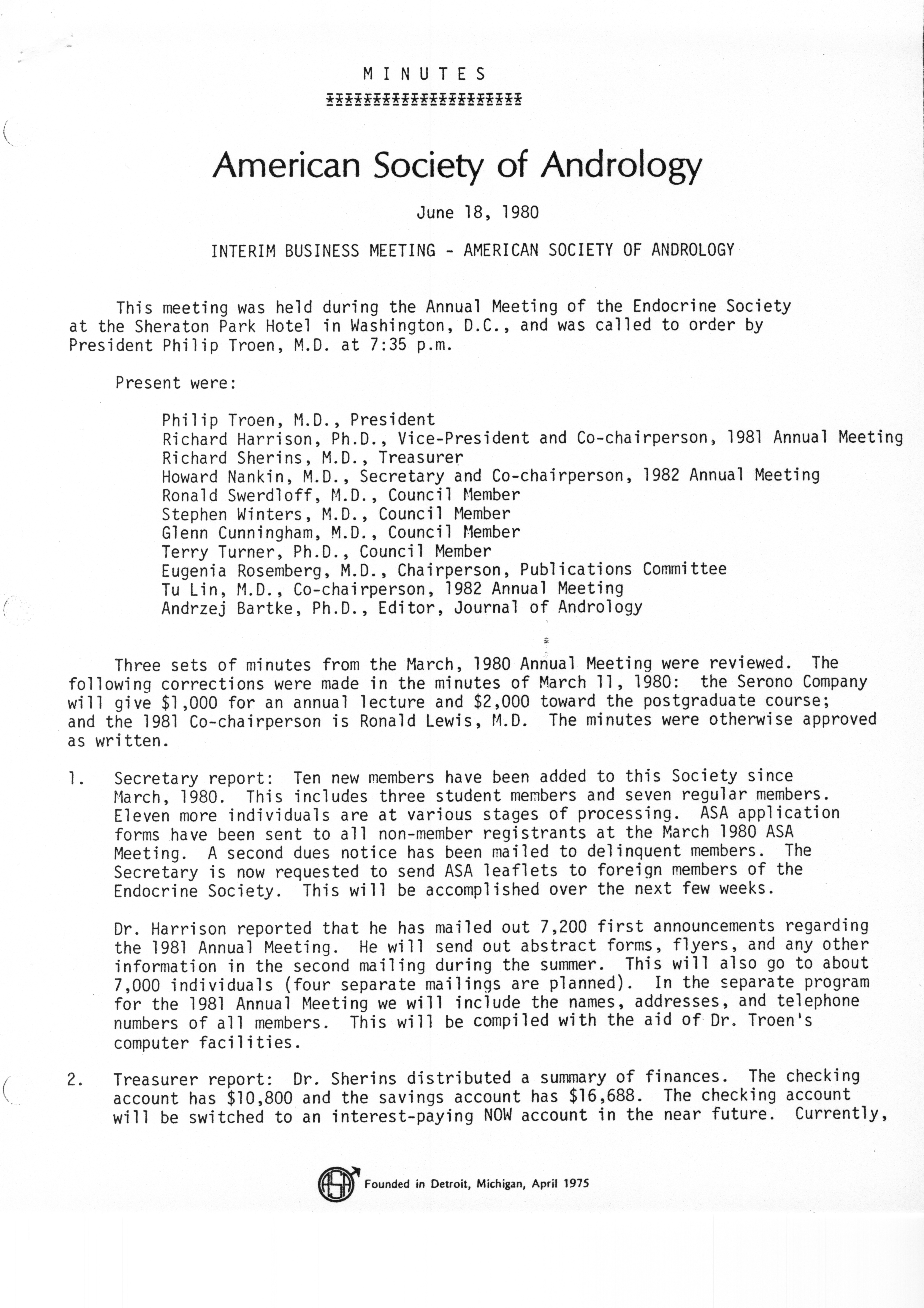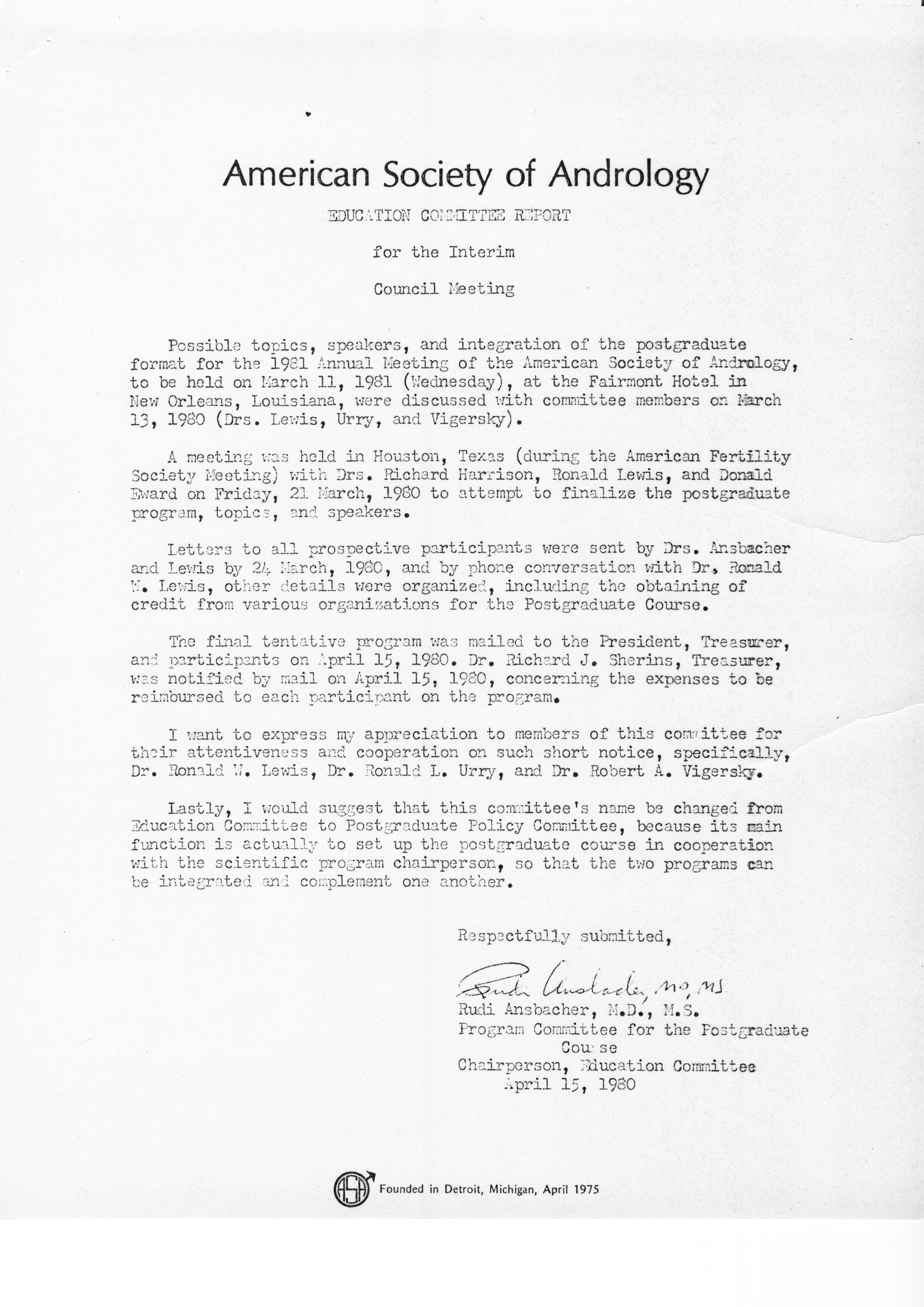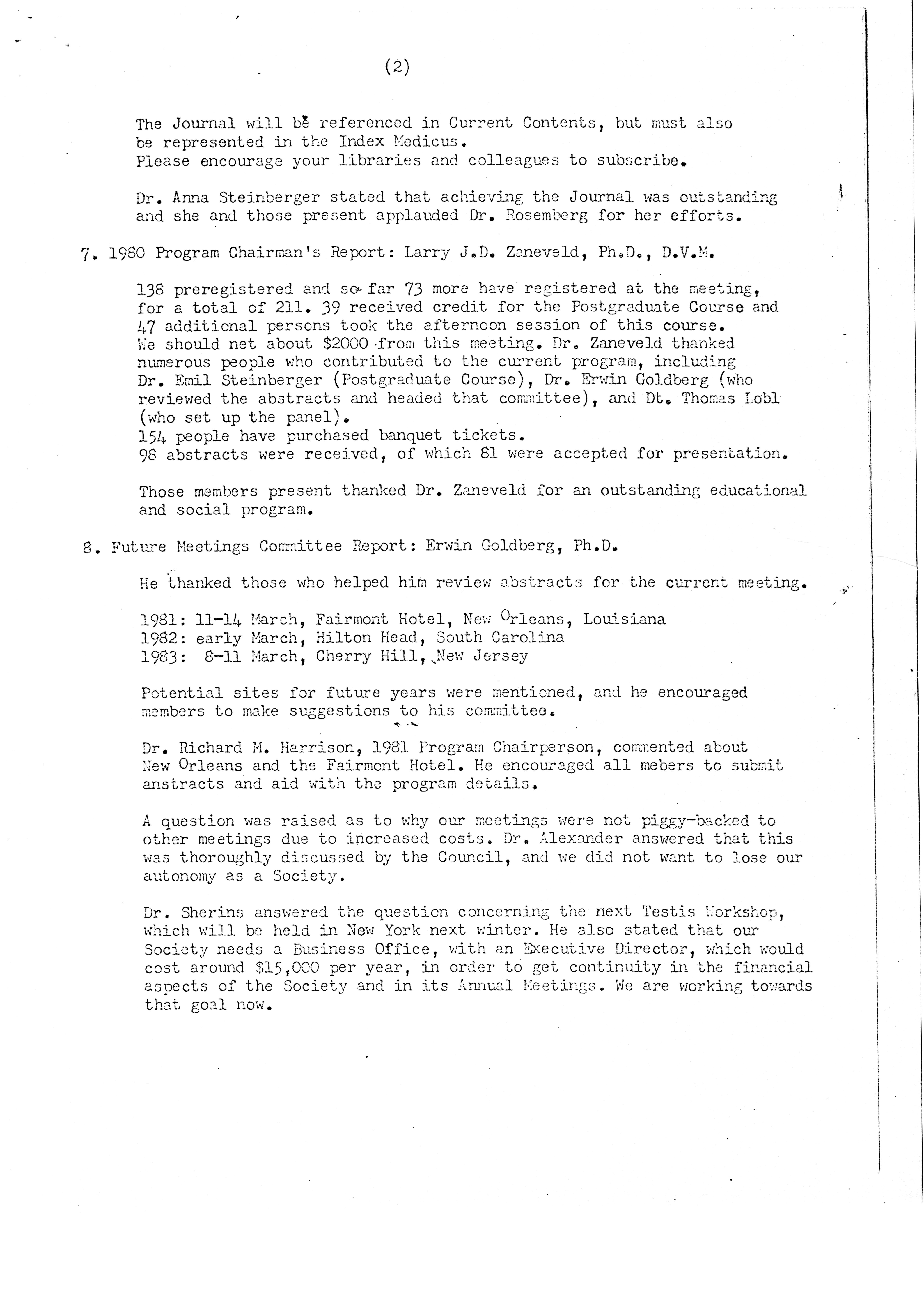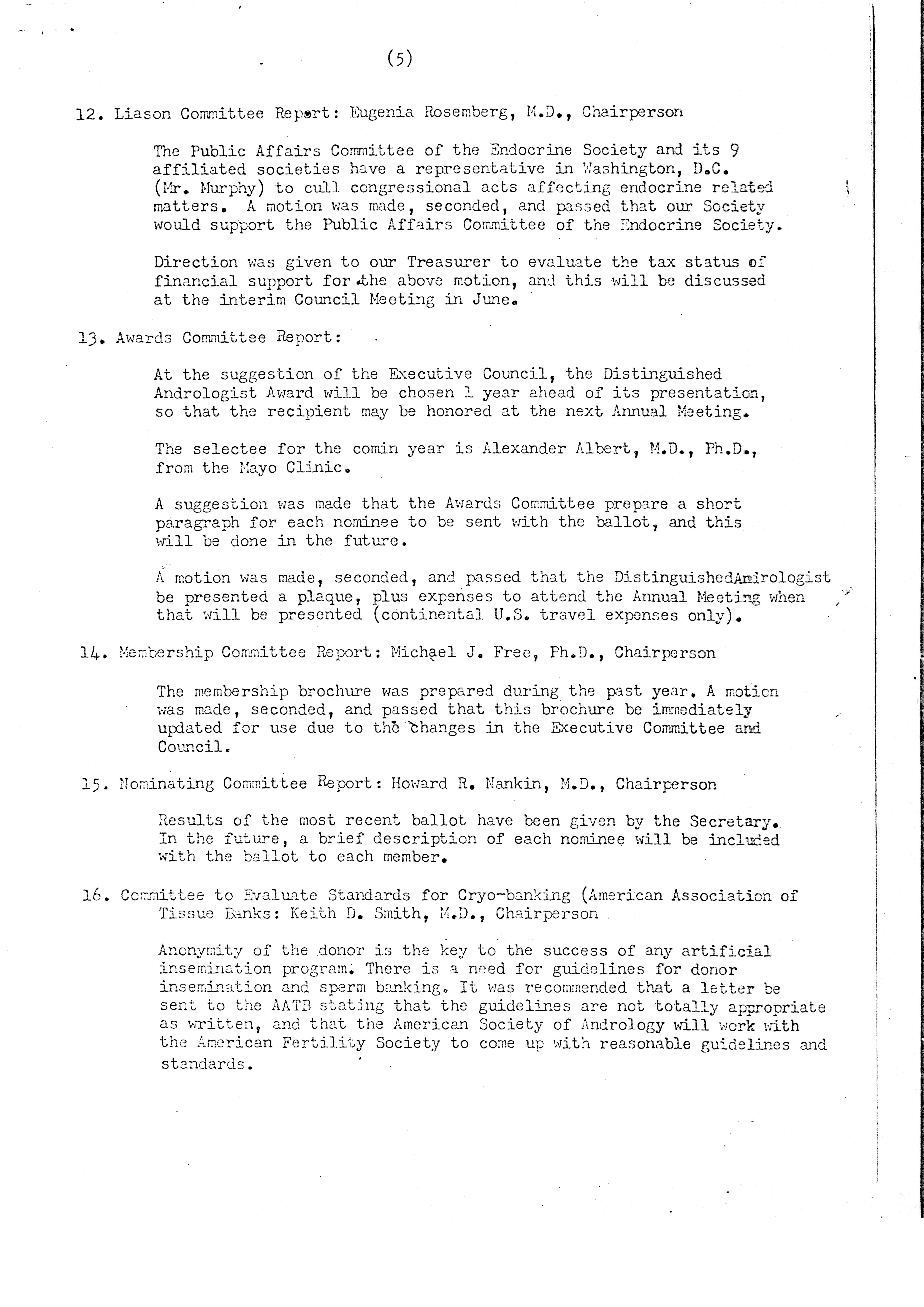 - "Executive Council Meetings of the American Society of Andrology, 1980", American Society of Andrology Collection, Iowa State University Library Digital Collections