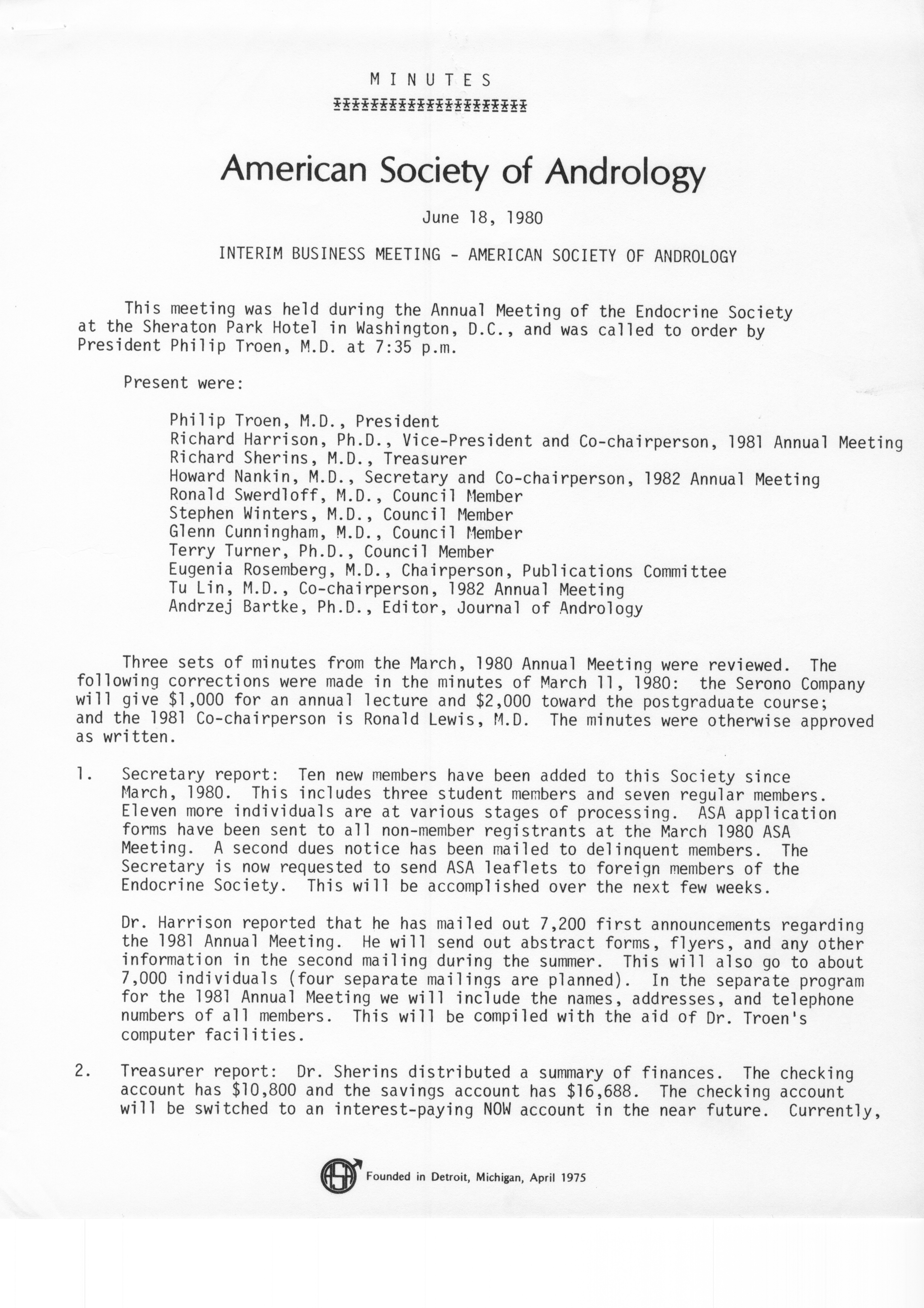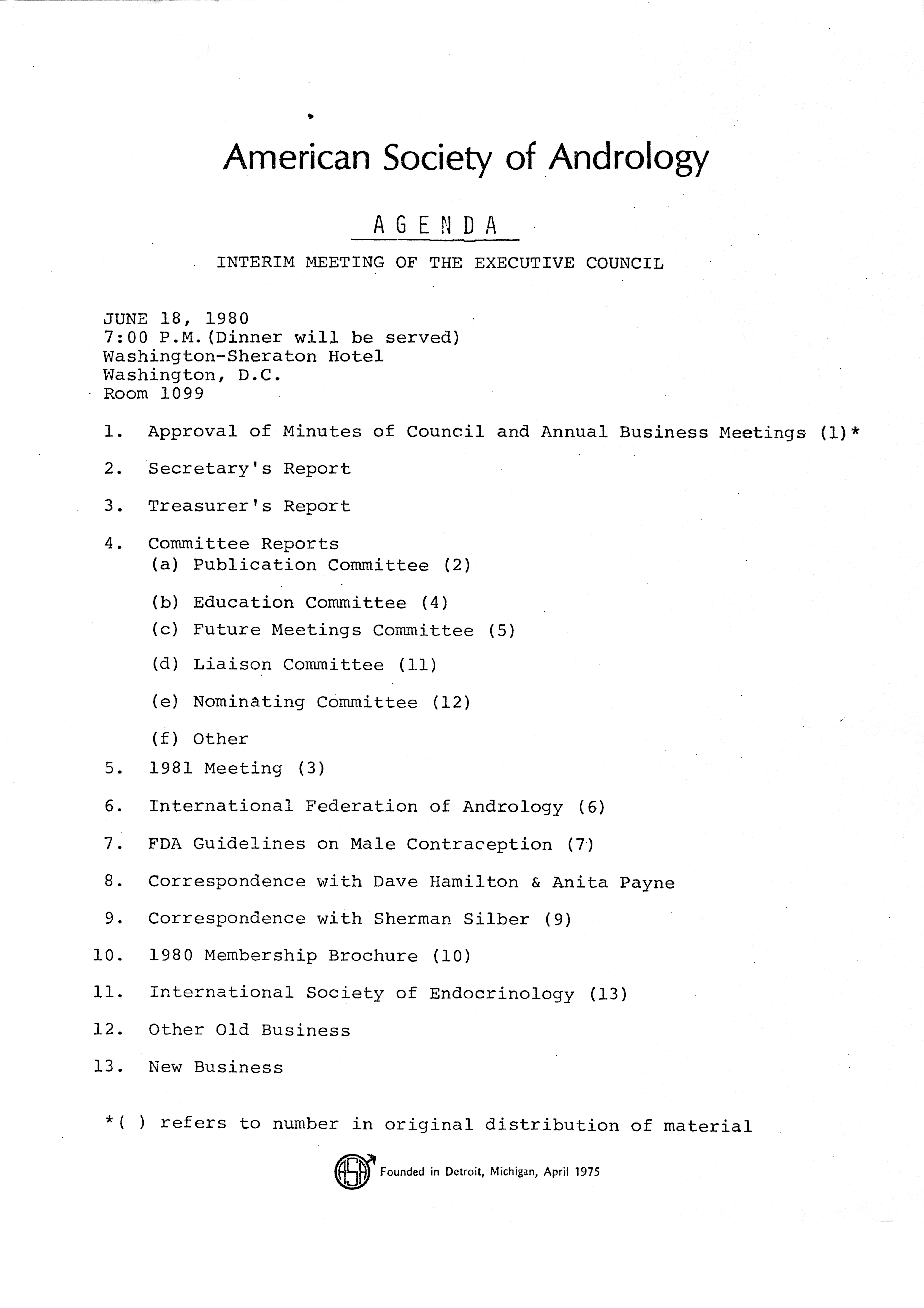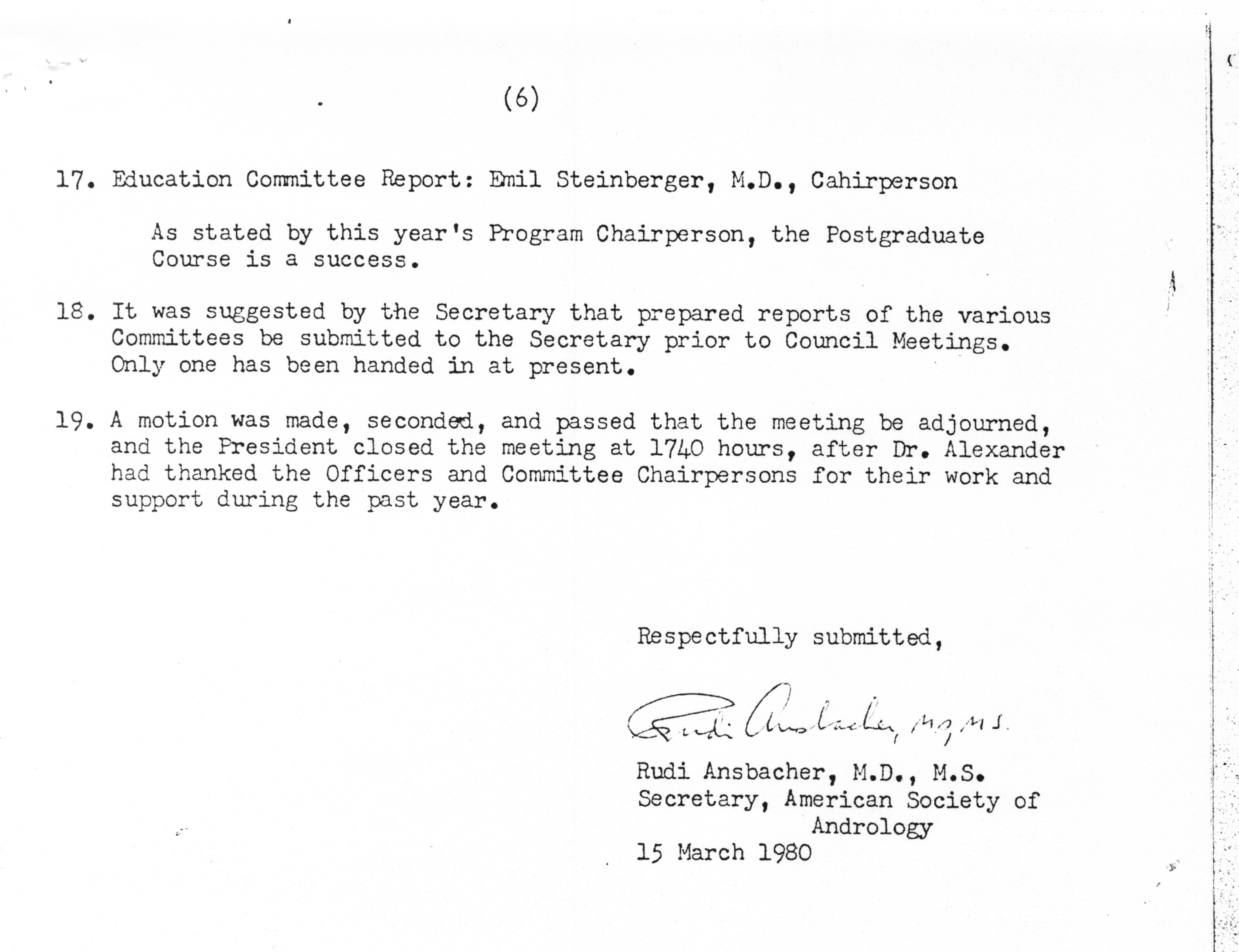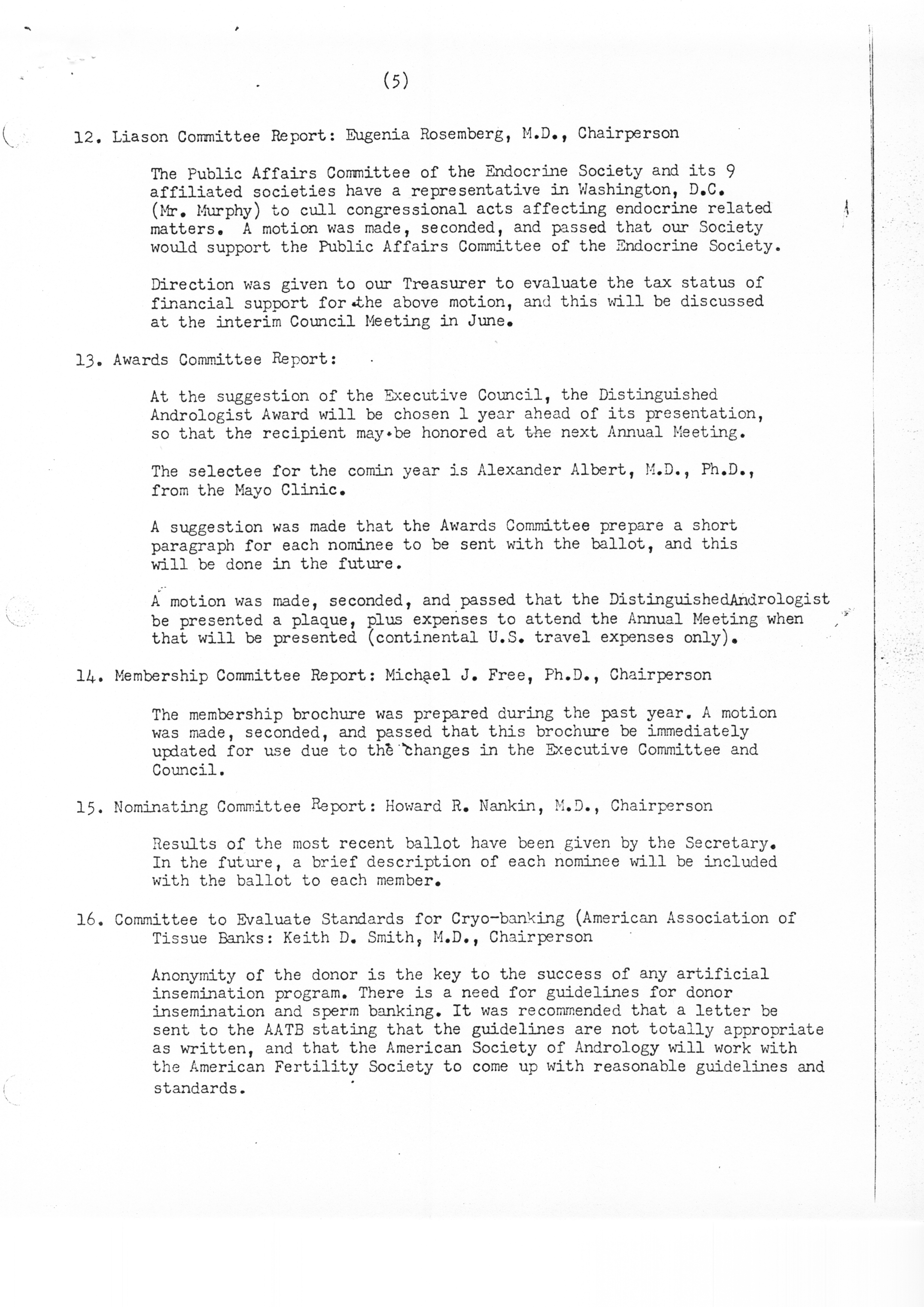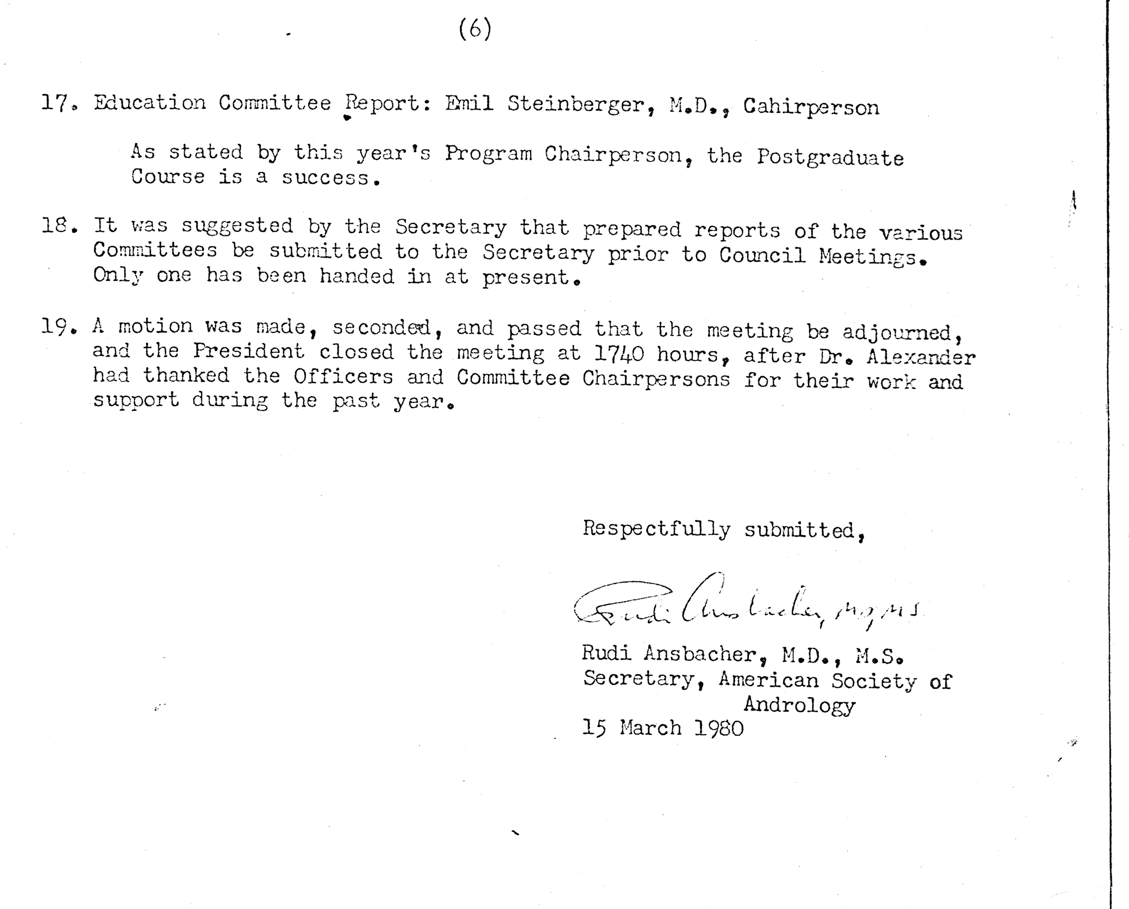 - "Executive Council Meetings of the American Society of Andrology, 1980", American Society of Andrology Collection, Iowa State University Library Digital Collections