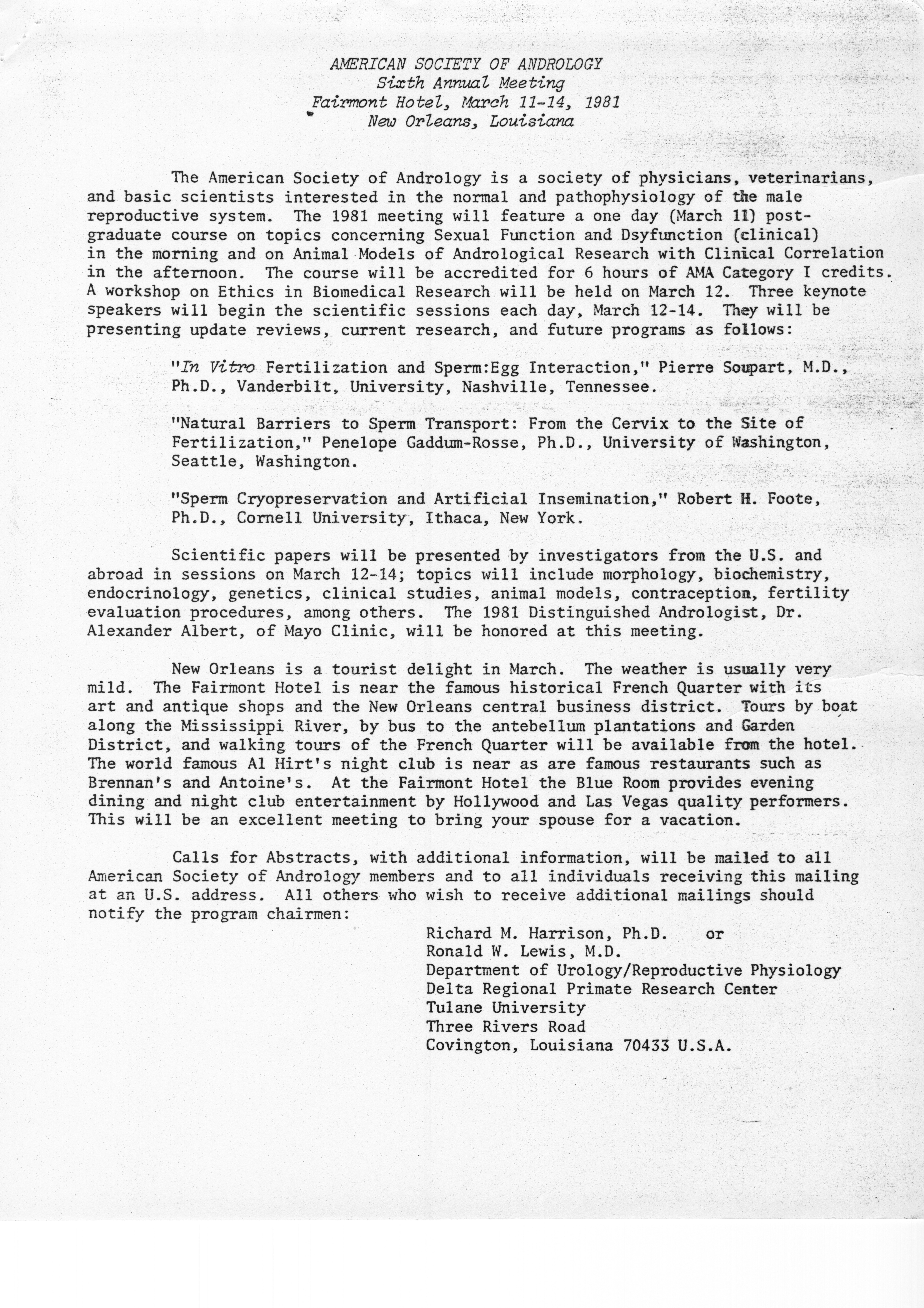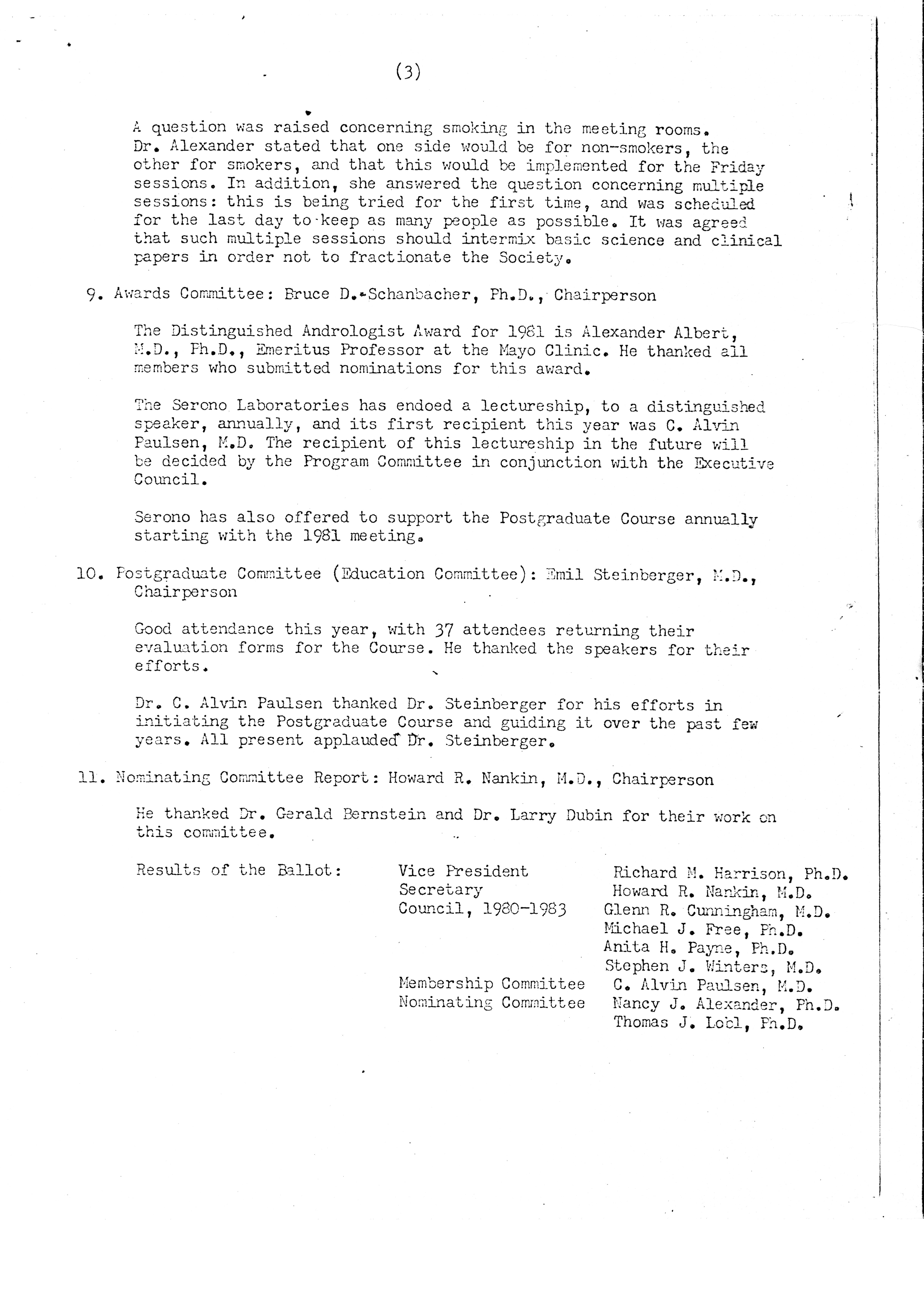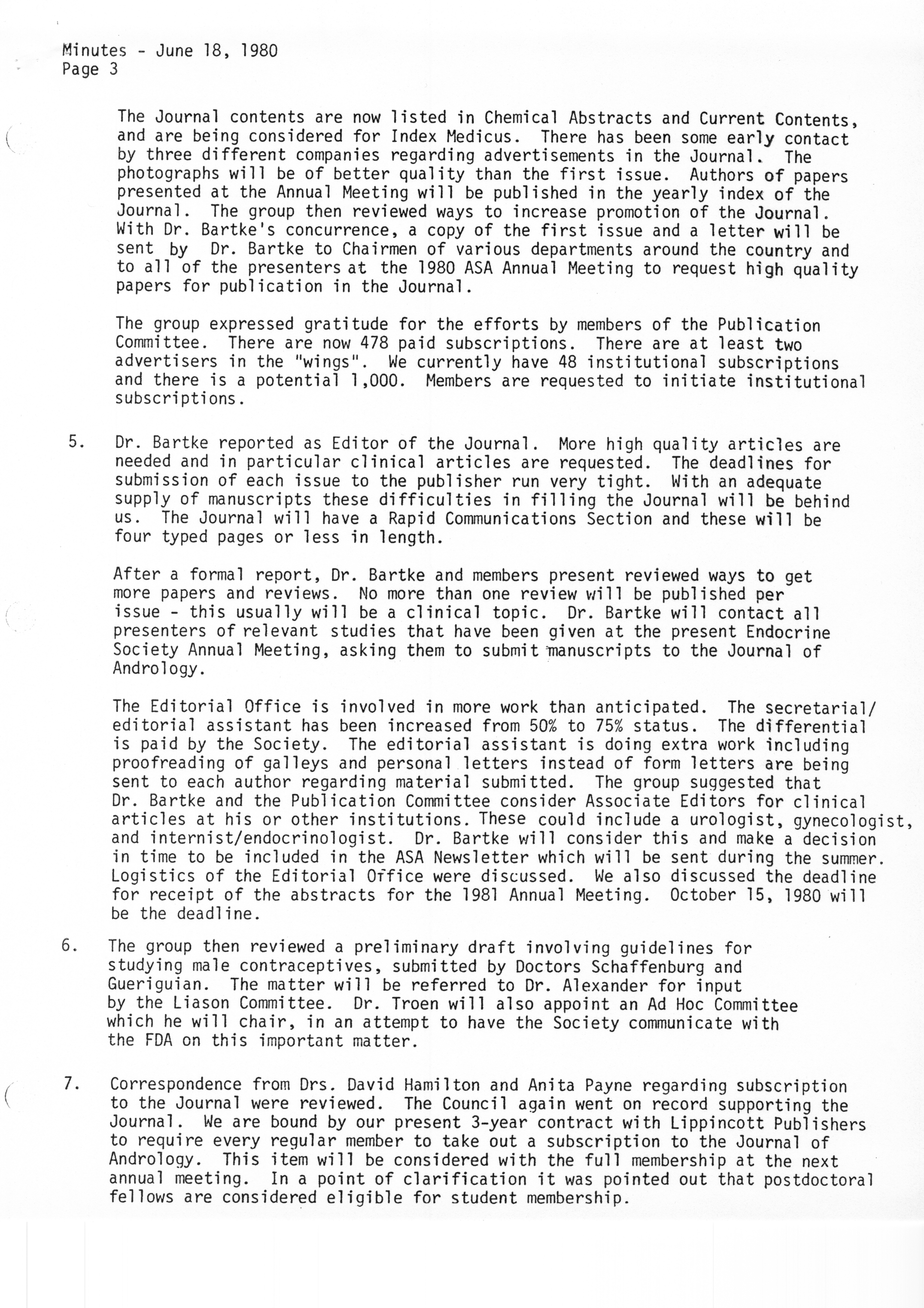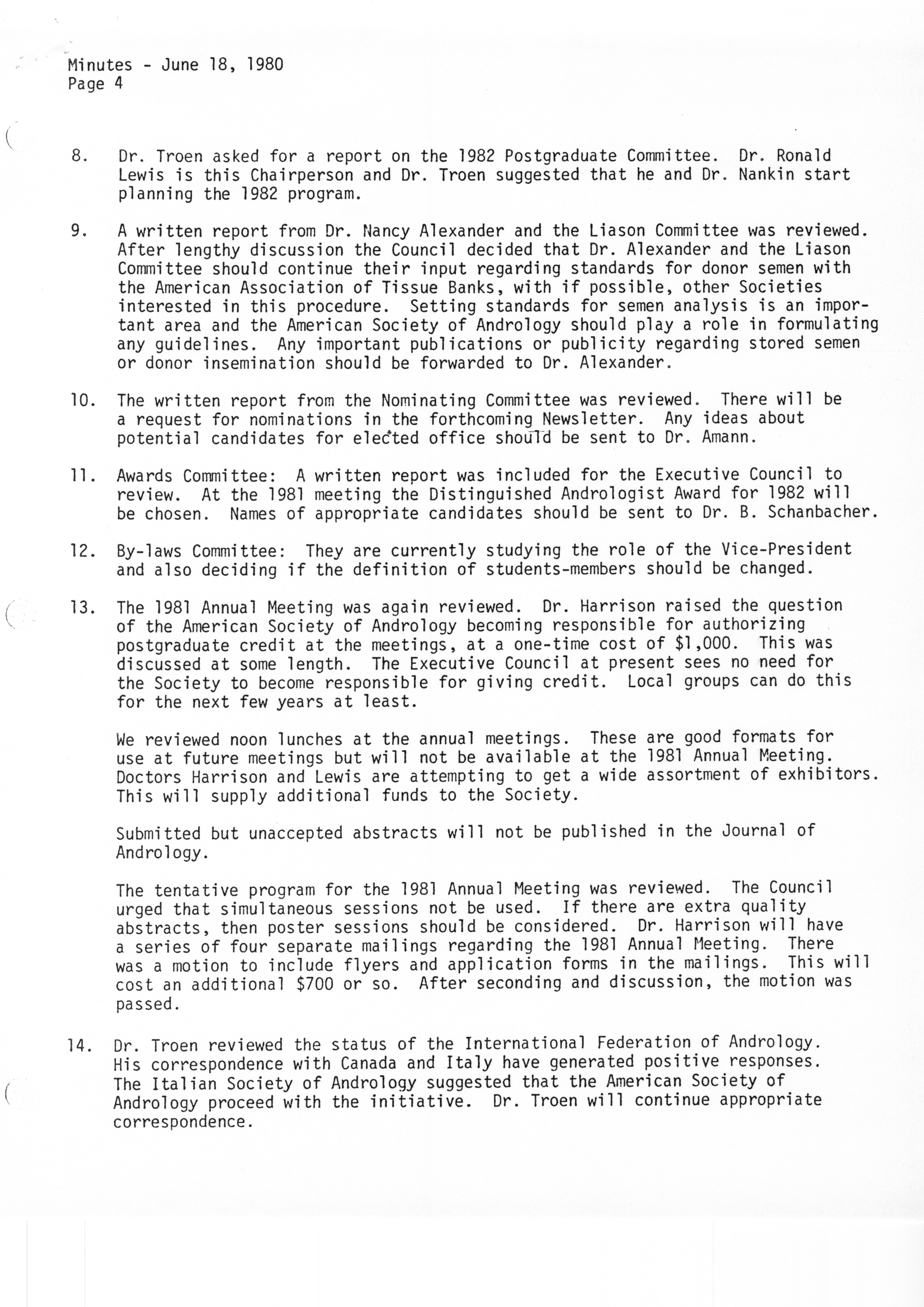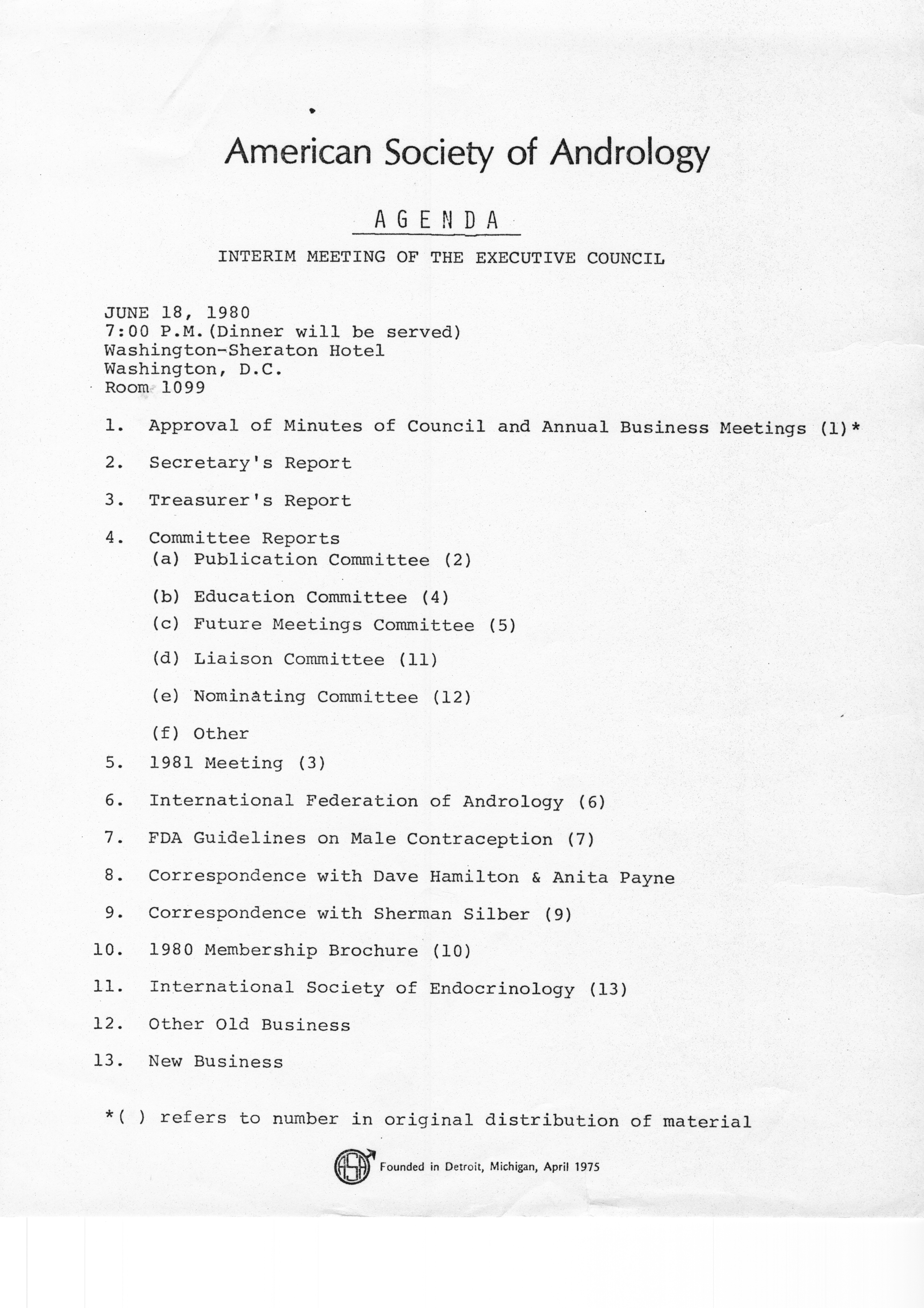 - "Executive Council Meetings of the American Society of Andrology, 1980", American Society of Andrology Collection, Iowa State University Library Digital Collections
