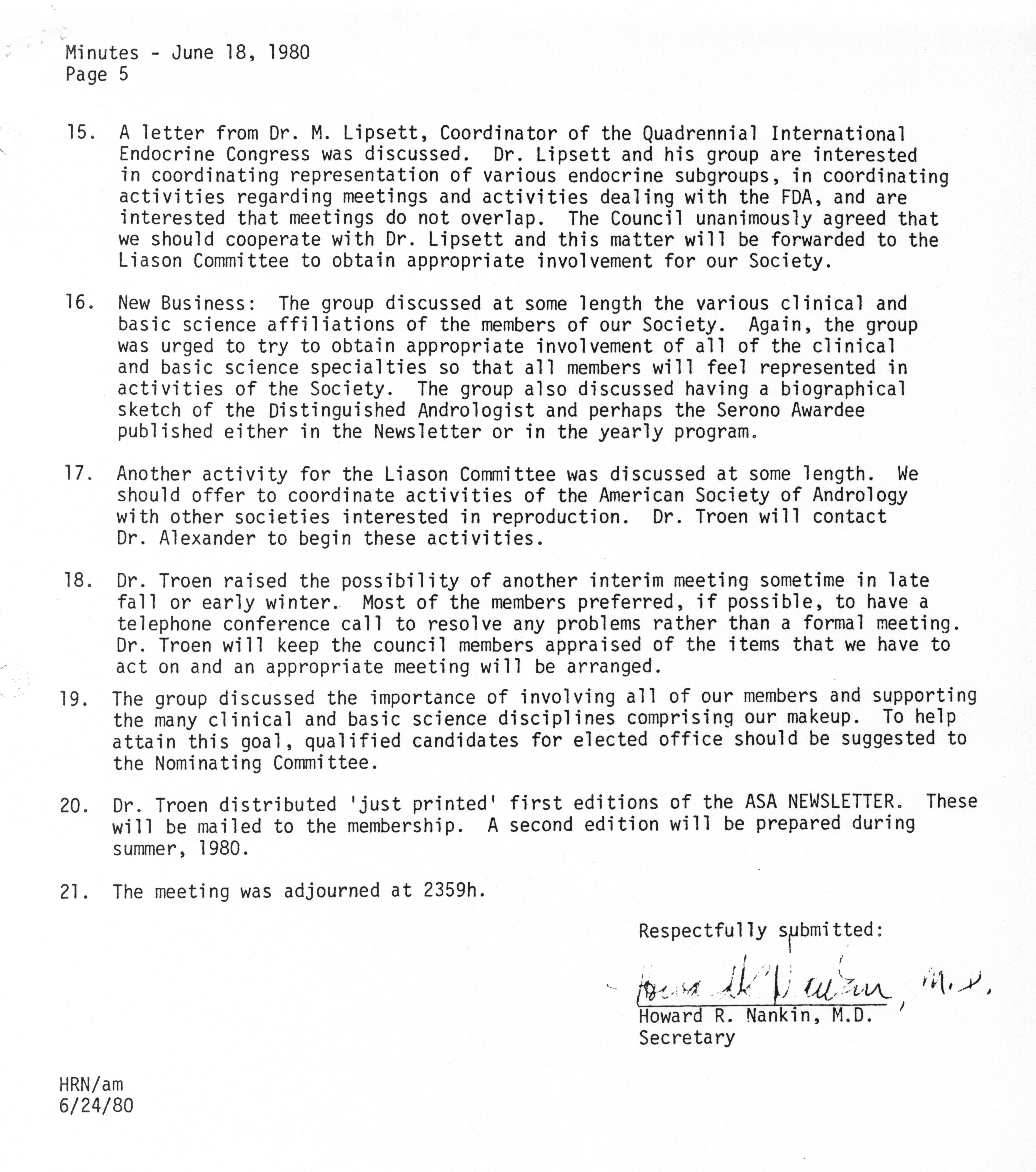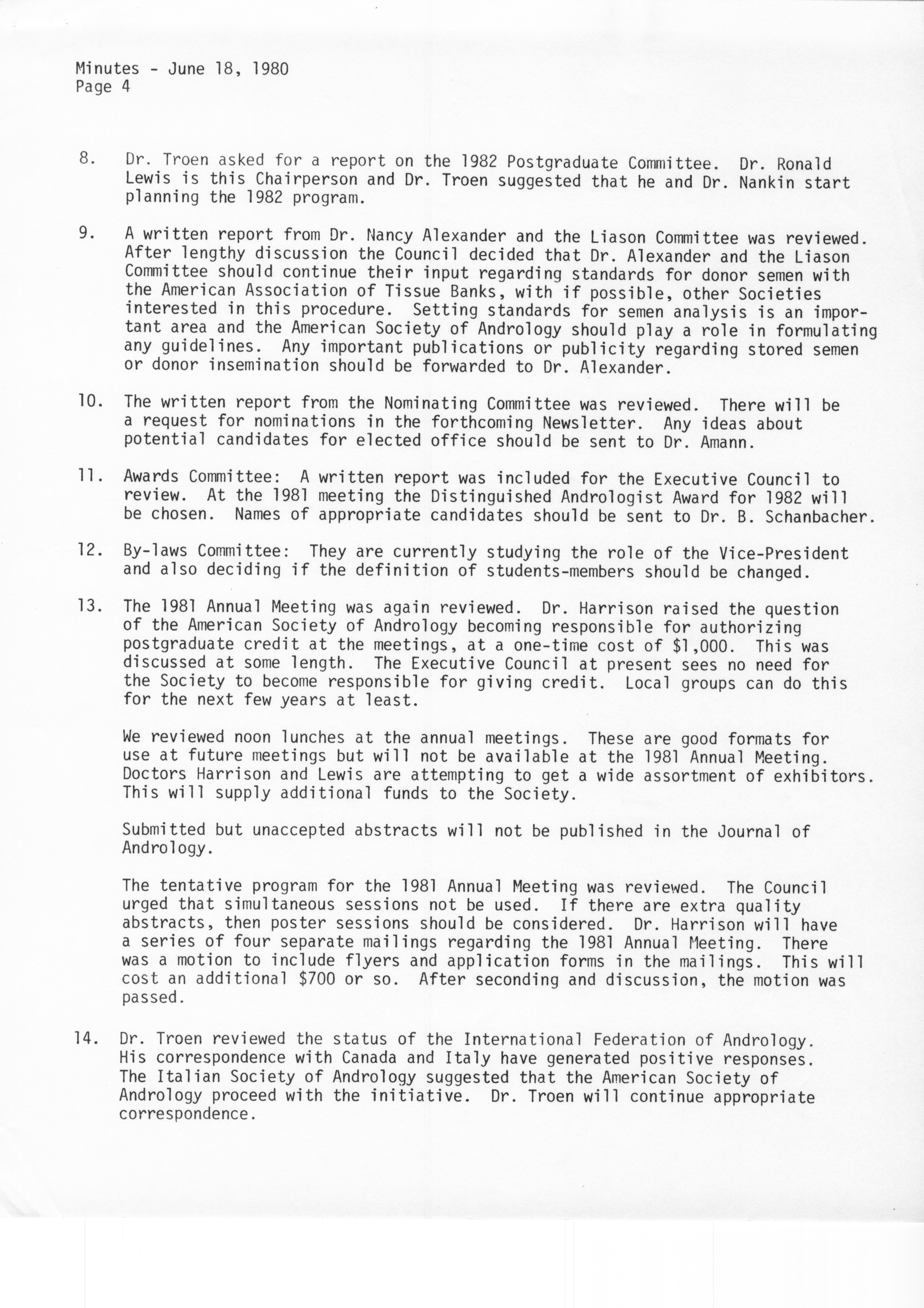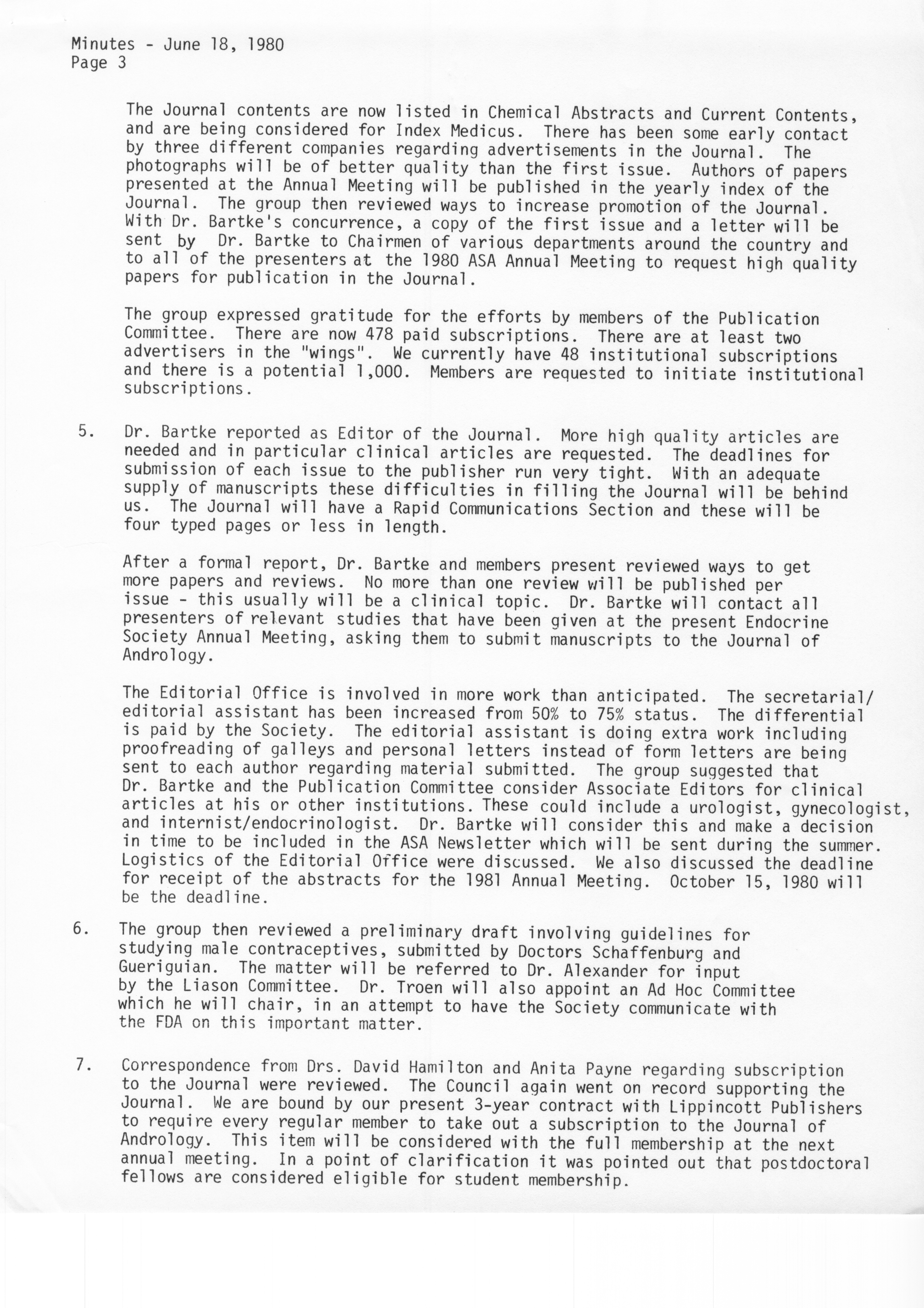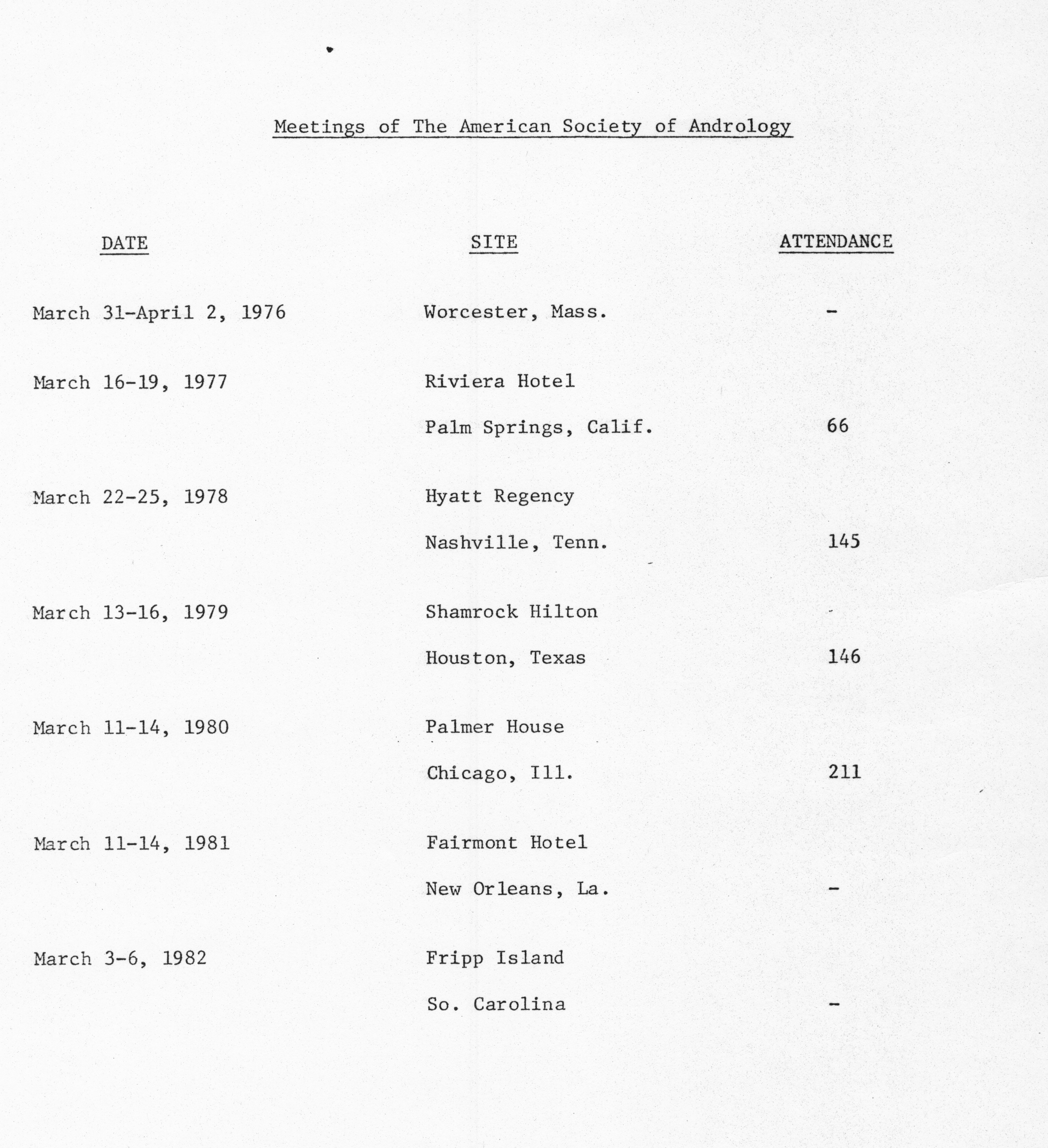 - "Executive Council Meetings of the American Society of Andrology, 1980", American Society of Andrology Collection, Iowa State University Library Digital Collections