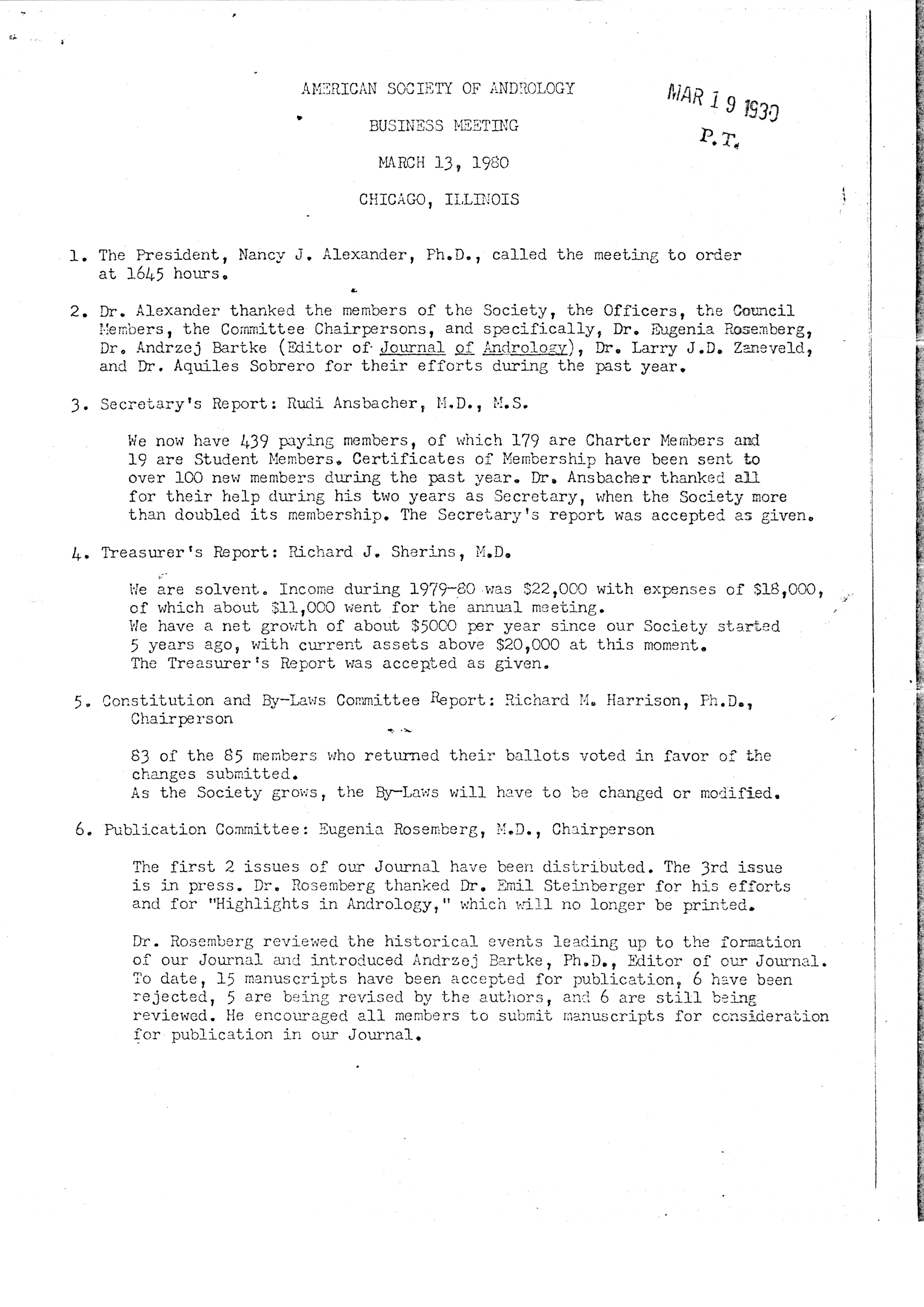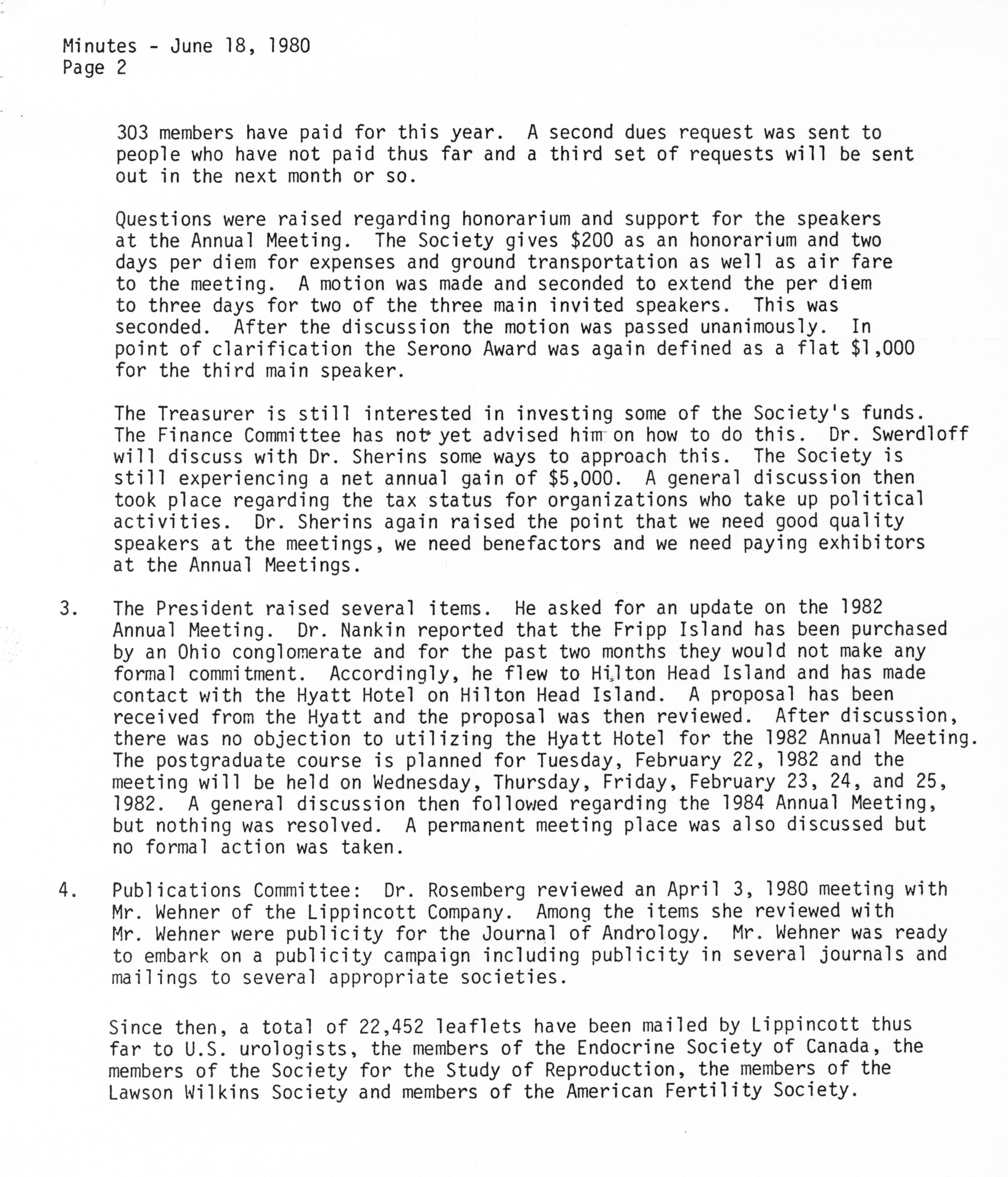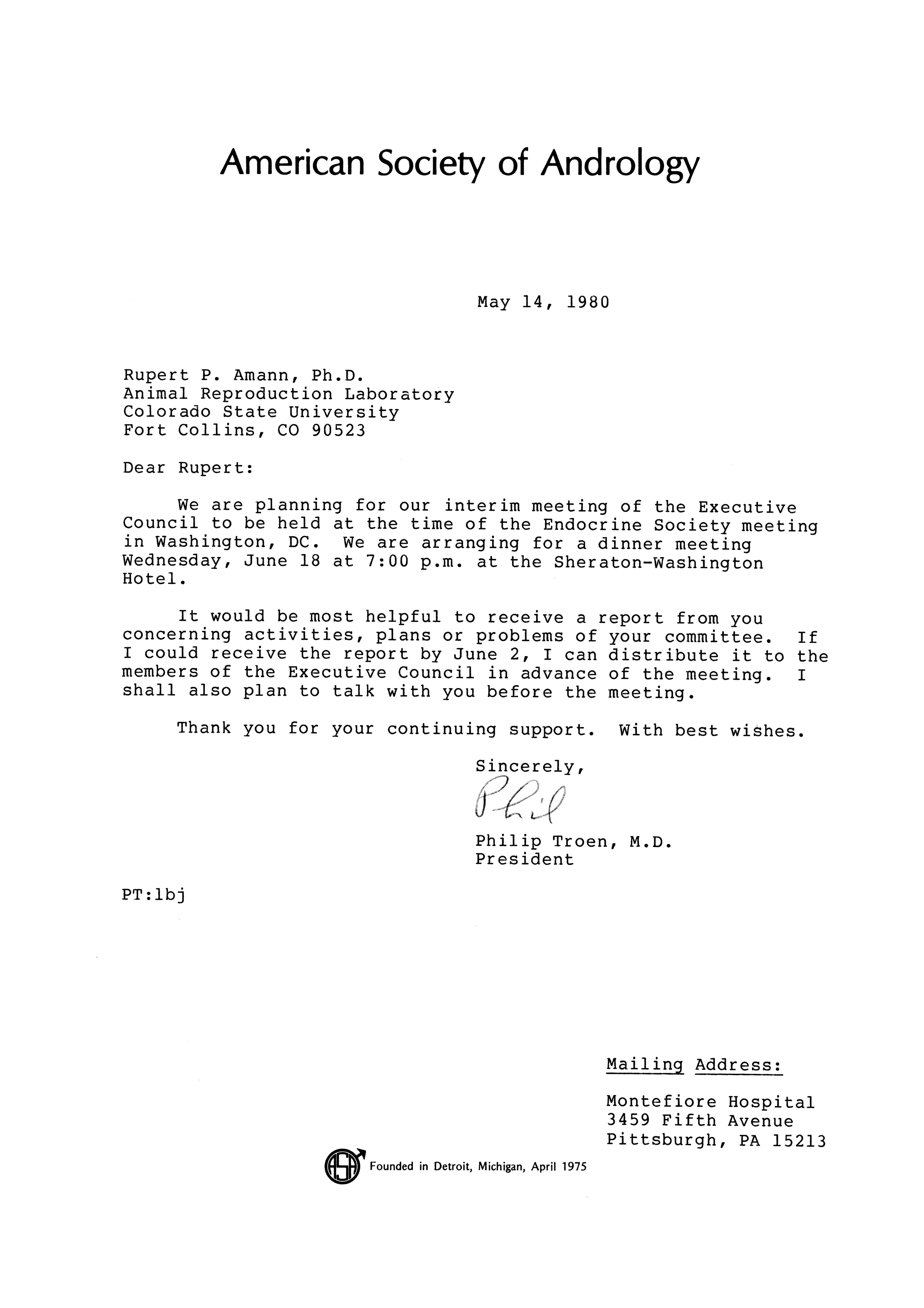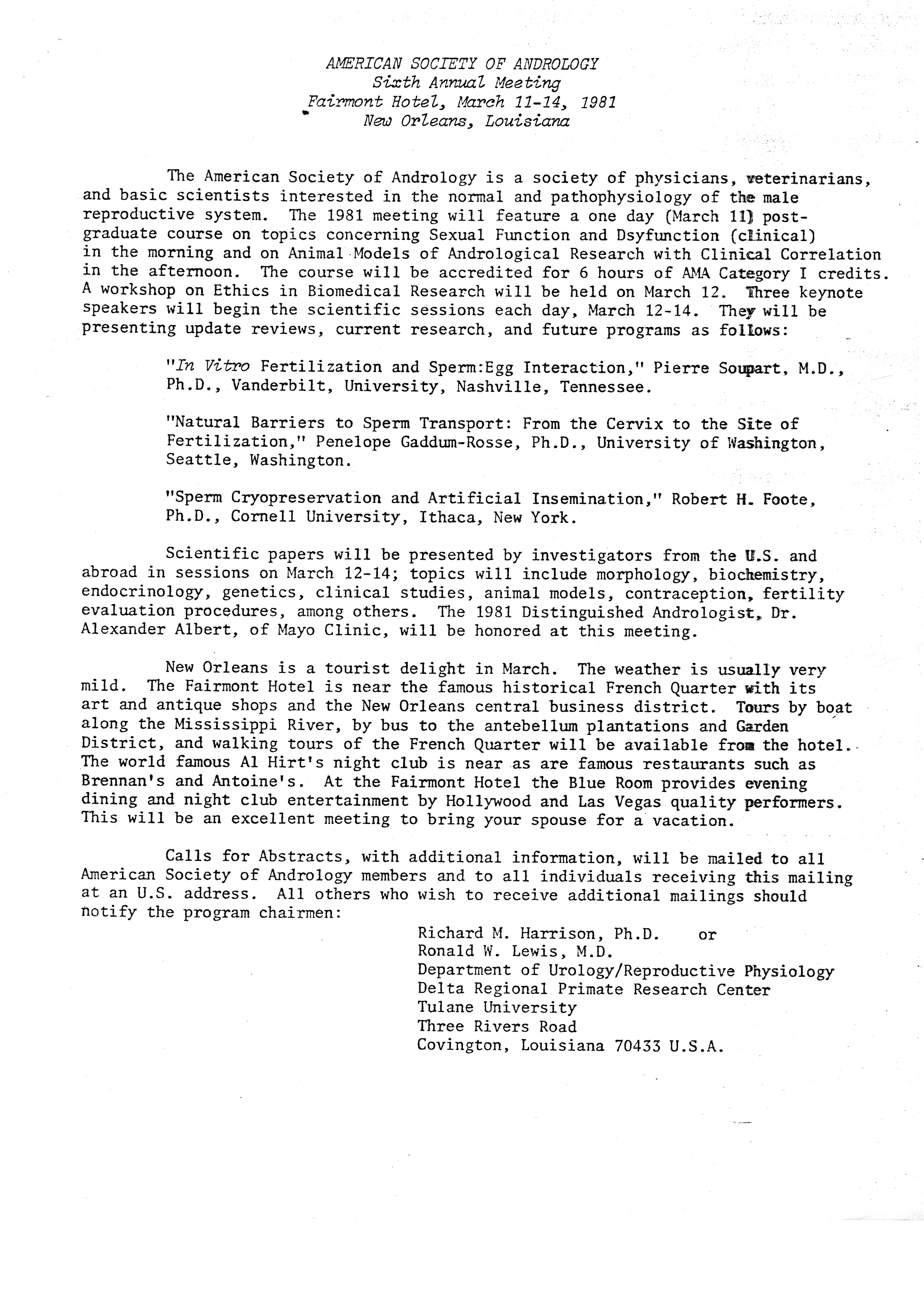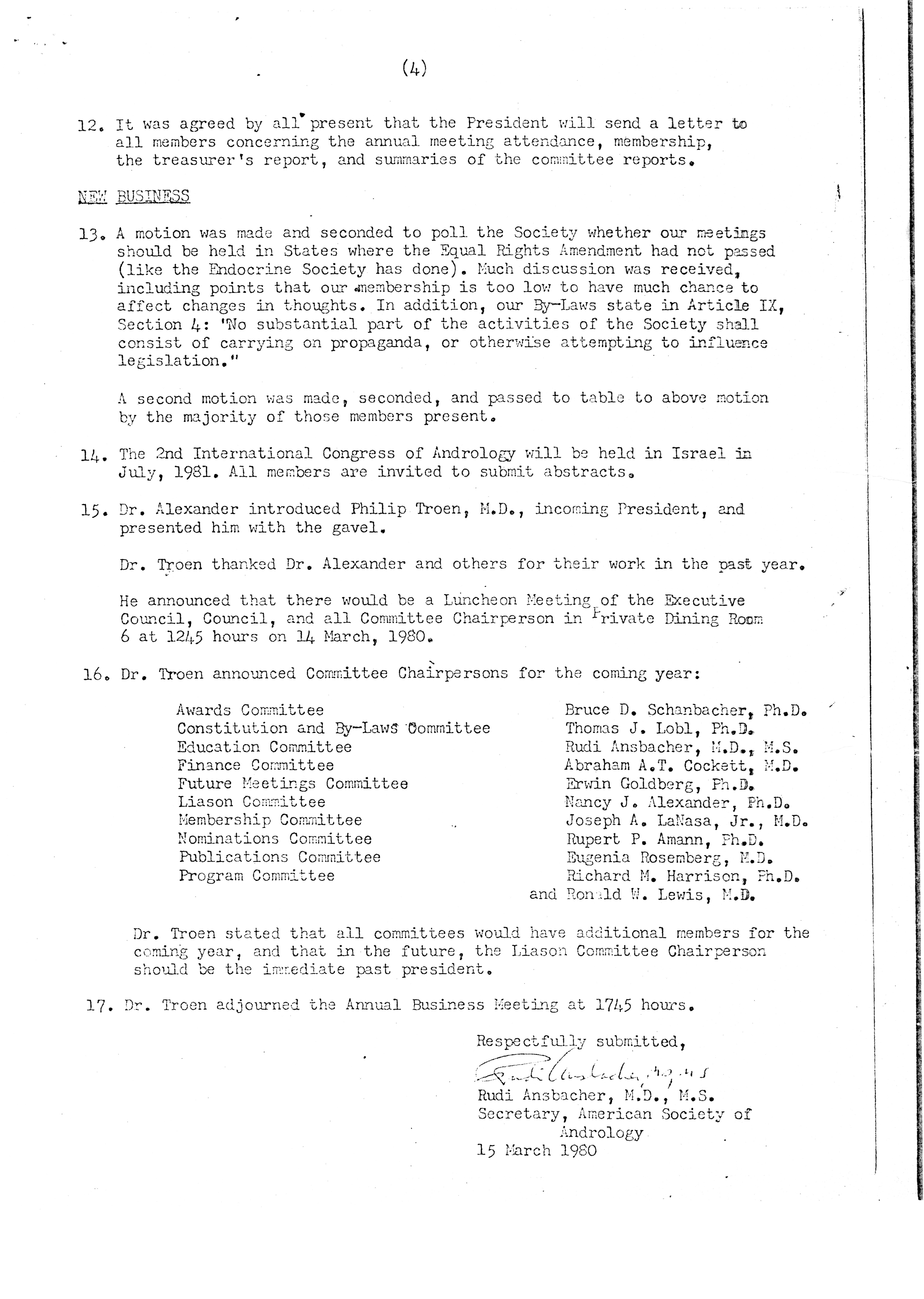 - "Executive Council Meetings of the American Society of Andrology, 1980", American Society of Andrology Collection, Iowa State University Library Digital Collections
