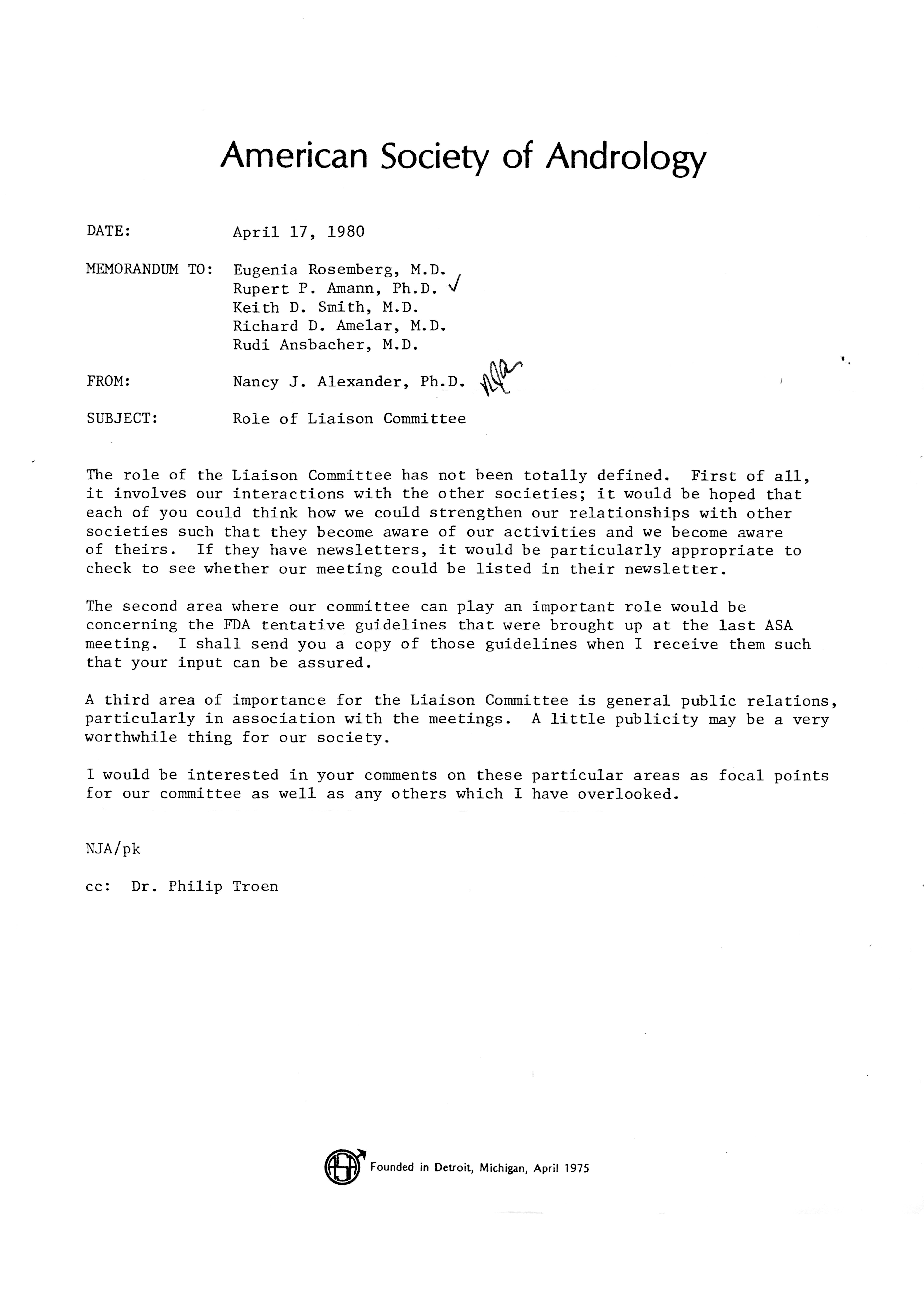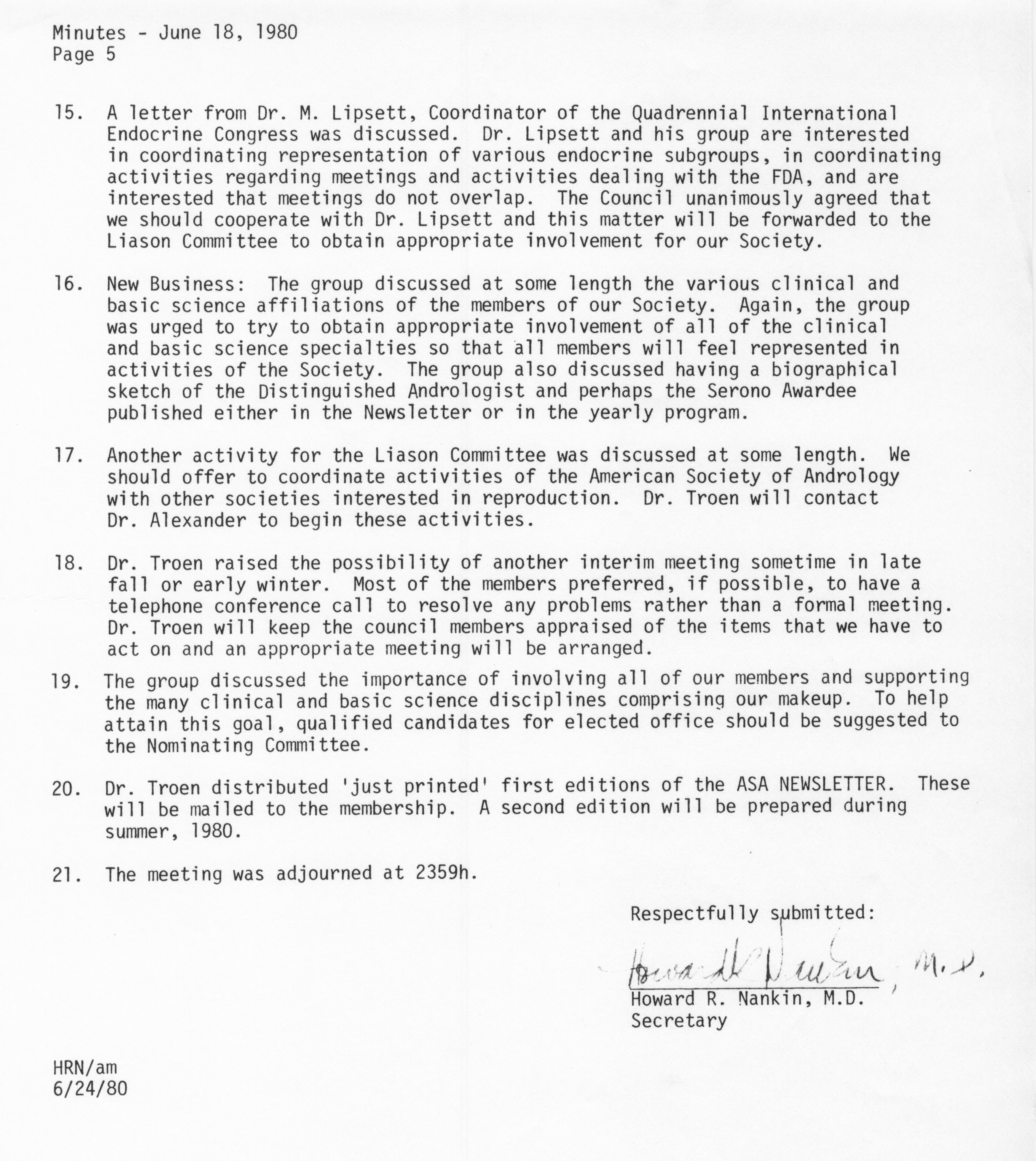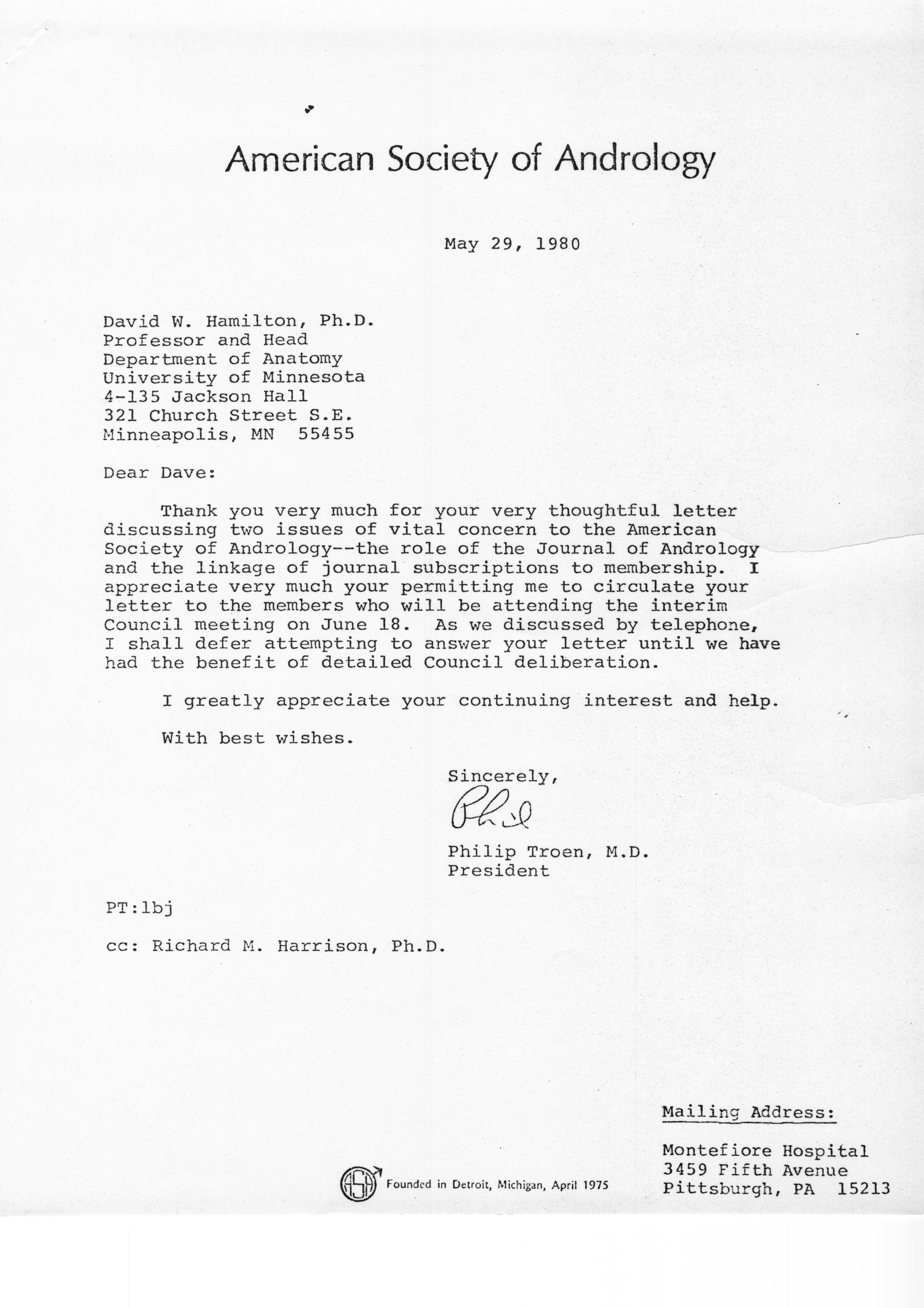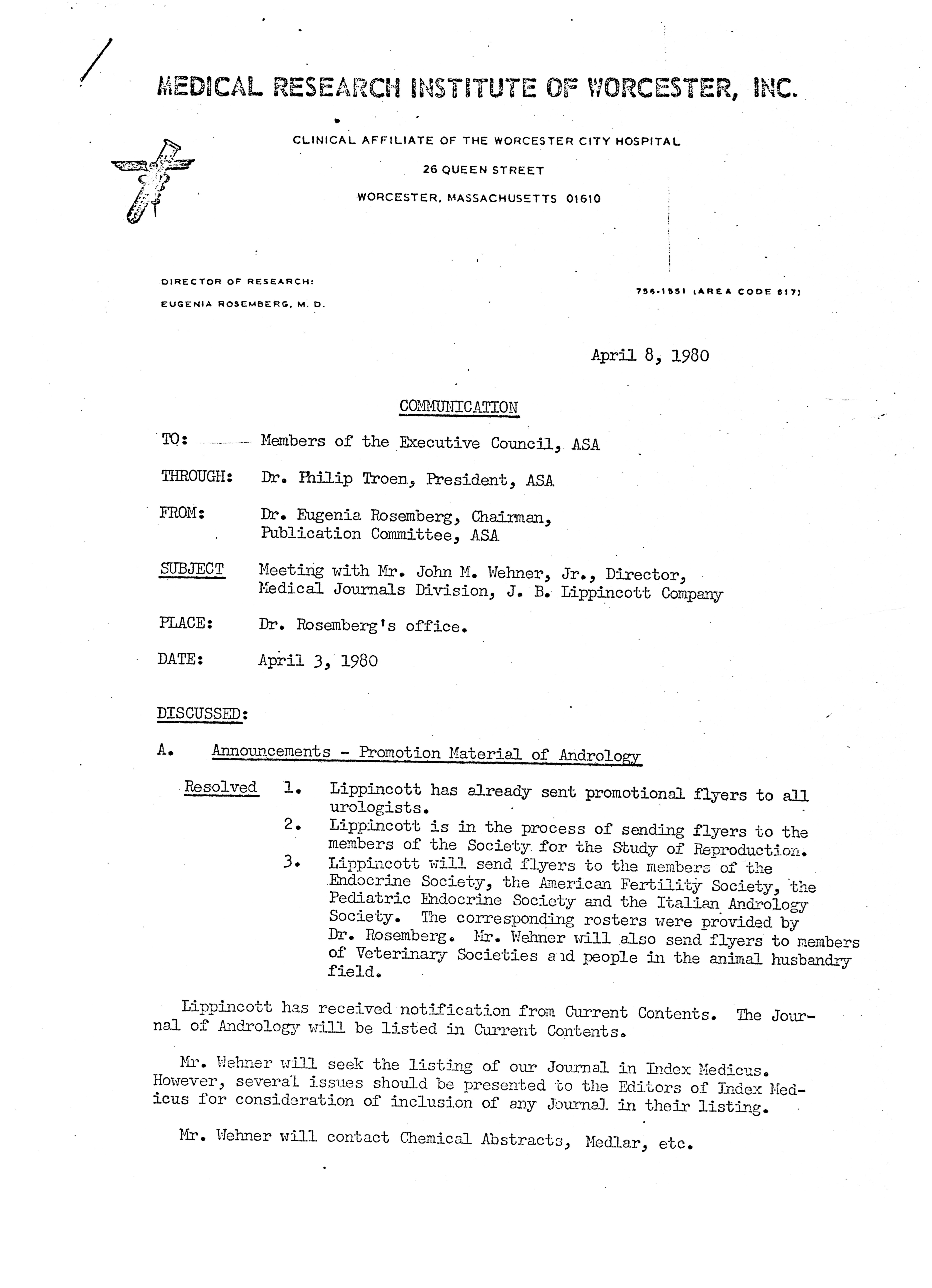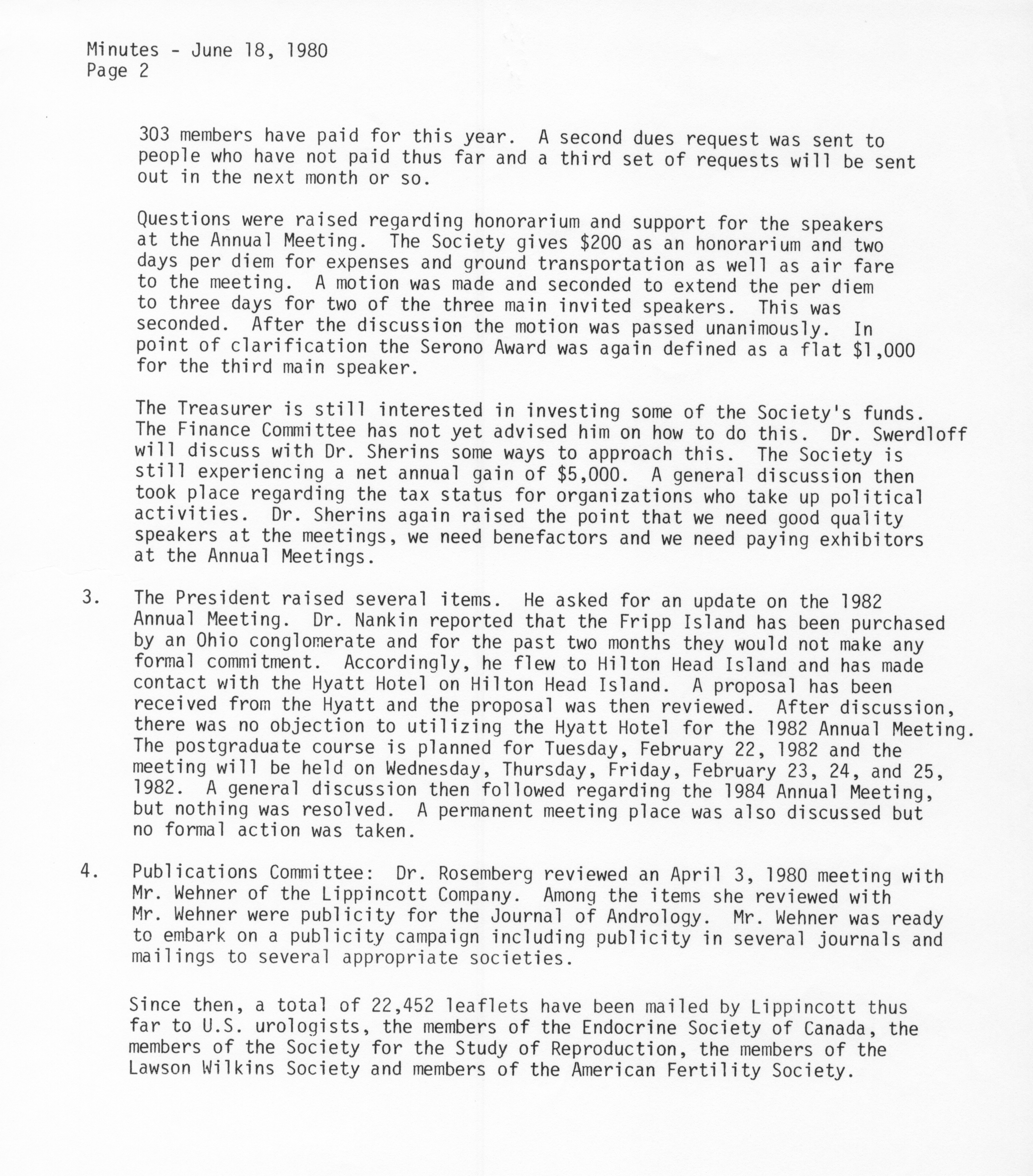 - "Executive Council Meetings of the American Society of Andrology, 1980", American Society of Andrology Collection, Iowa State University Library Digital Collections