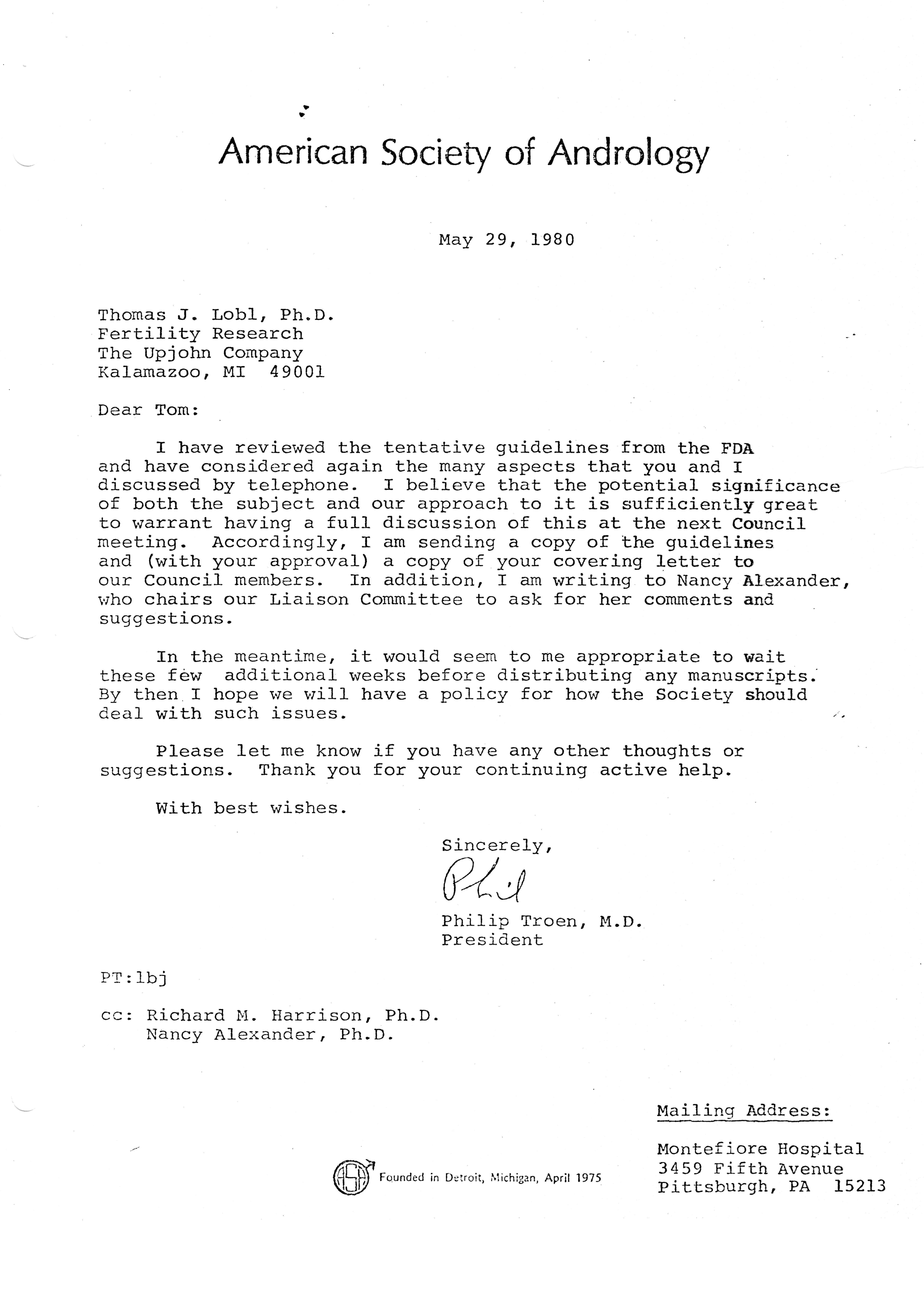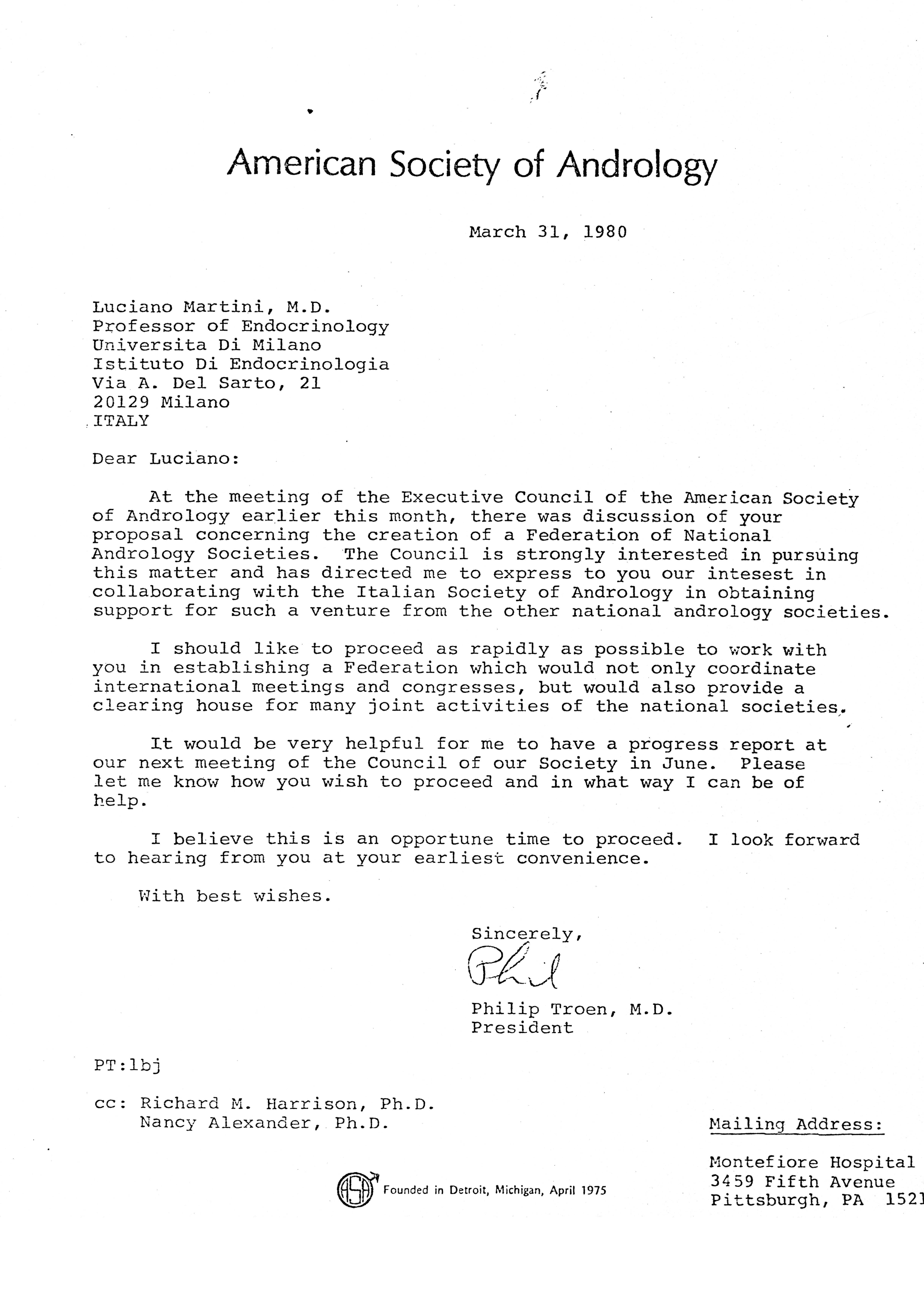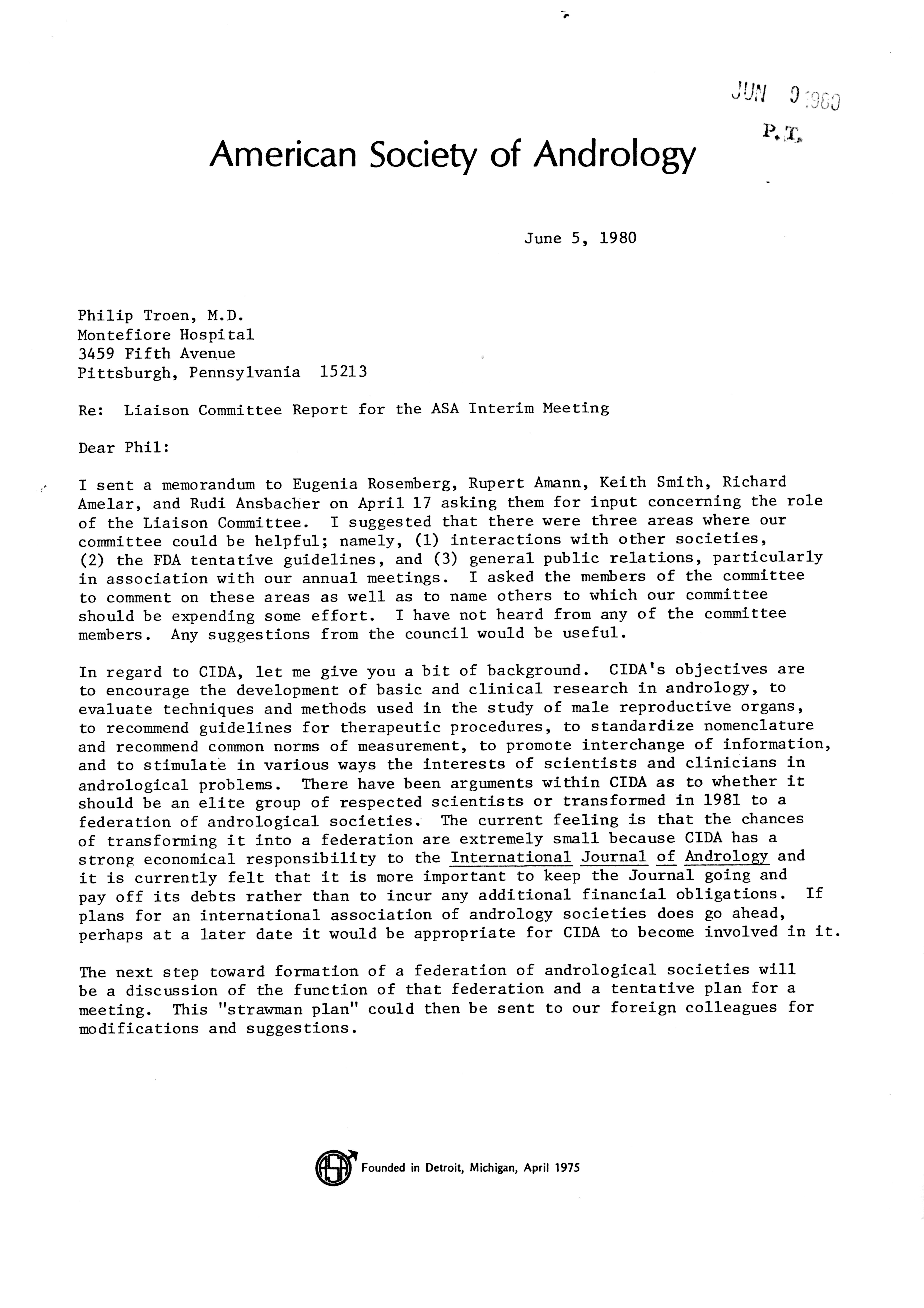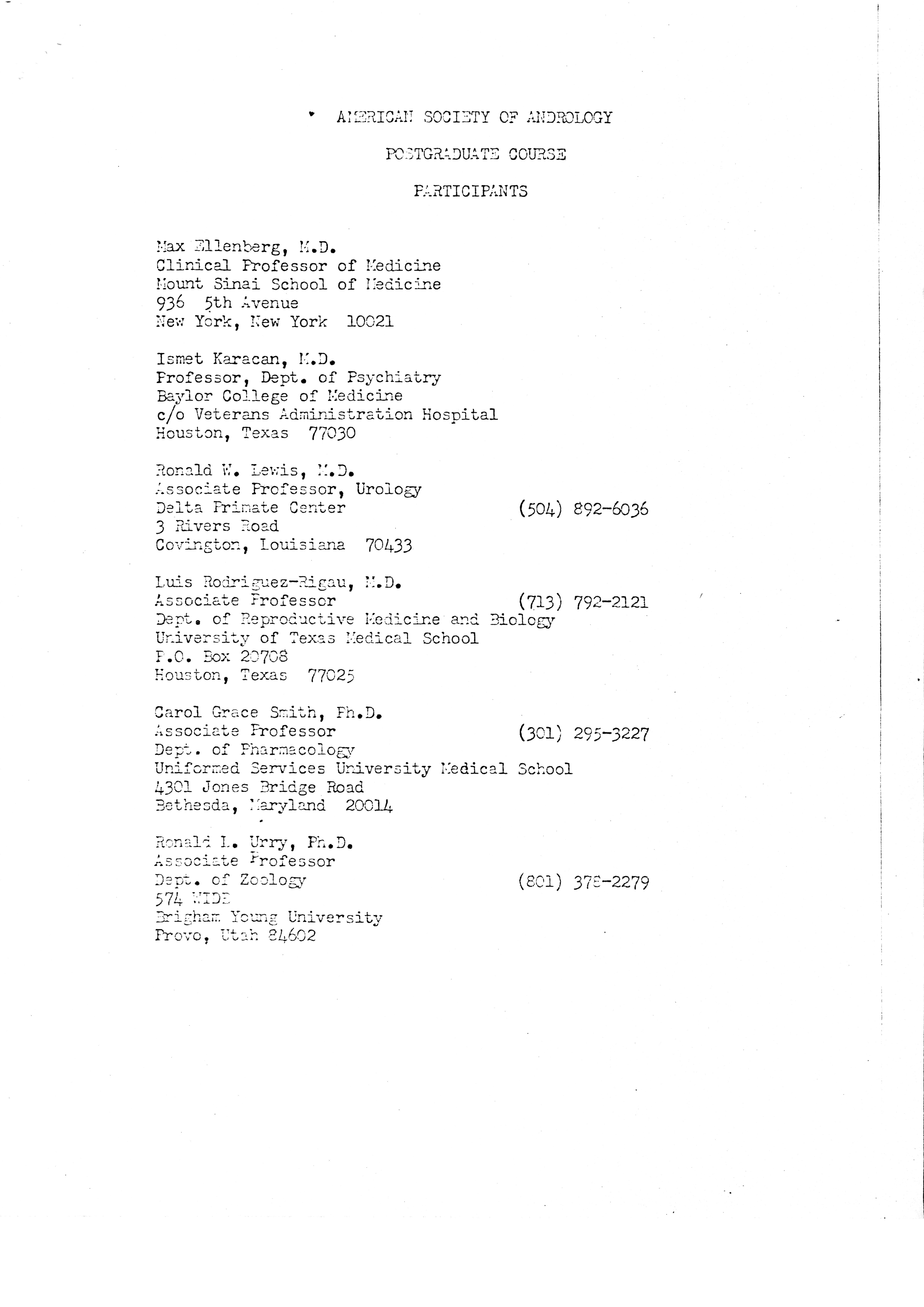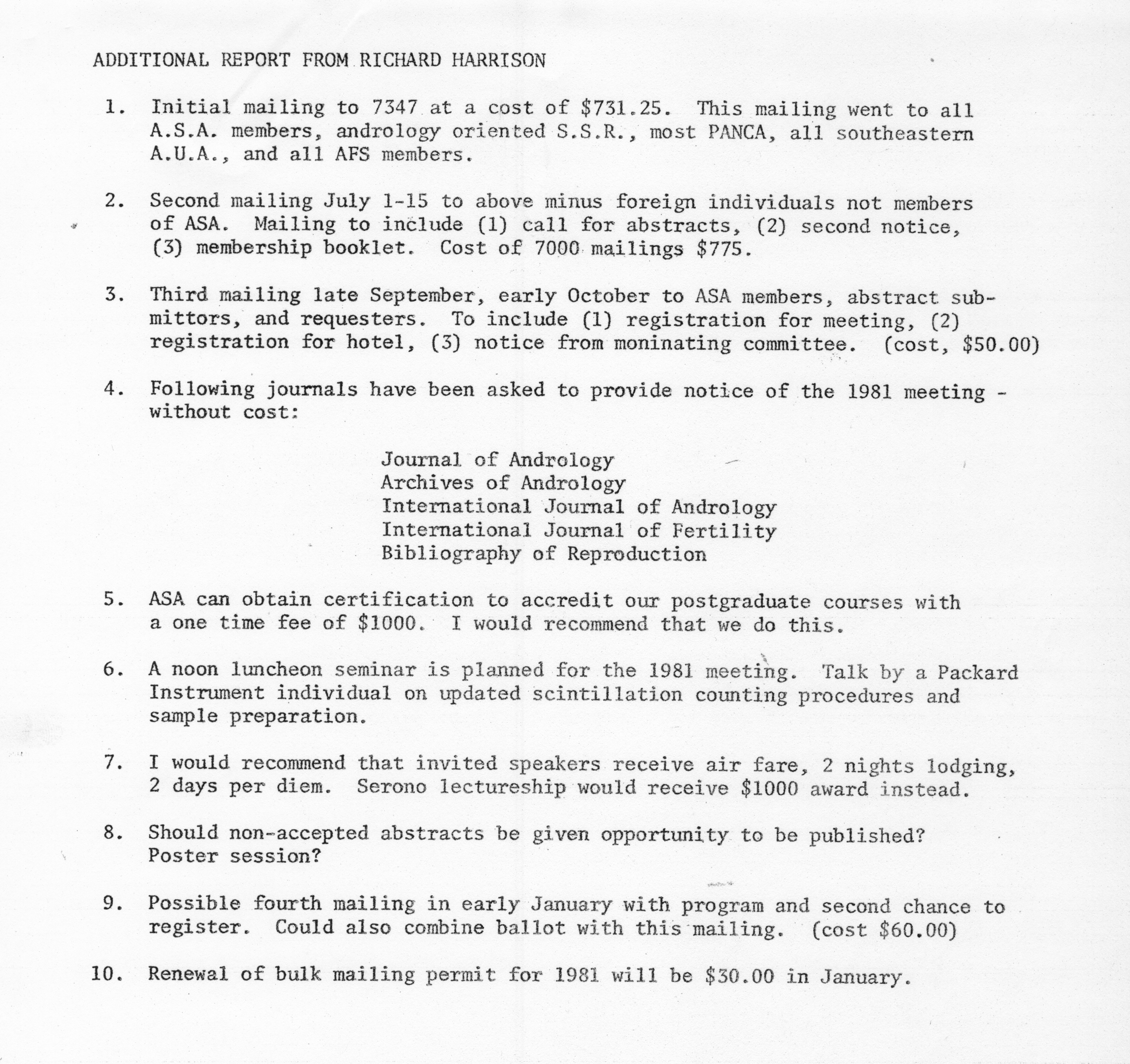 - "Executive Council Meetings of the American Society of Andrology, 1980", American Society of Andrology Collection, Iowa State University Library Digital Collections