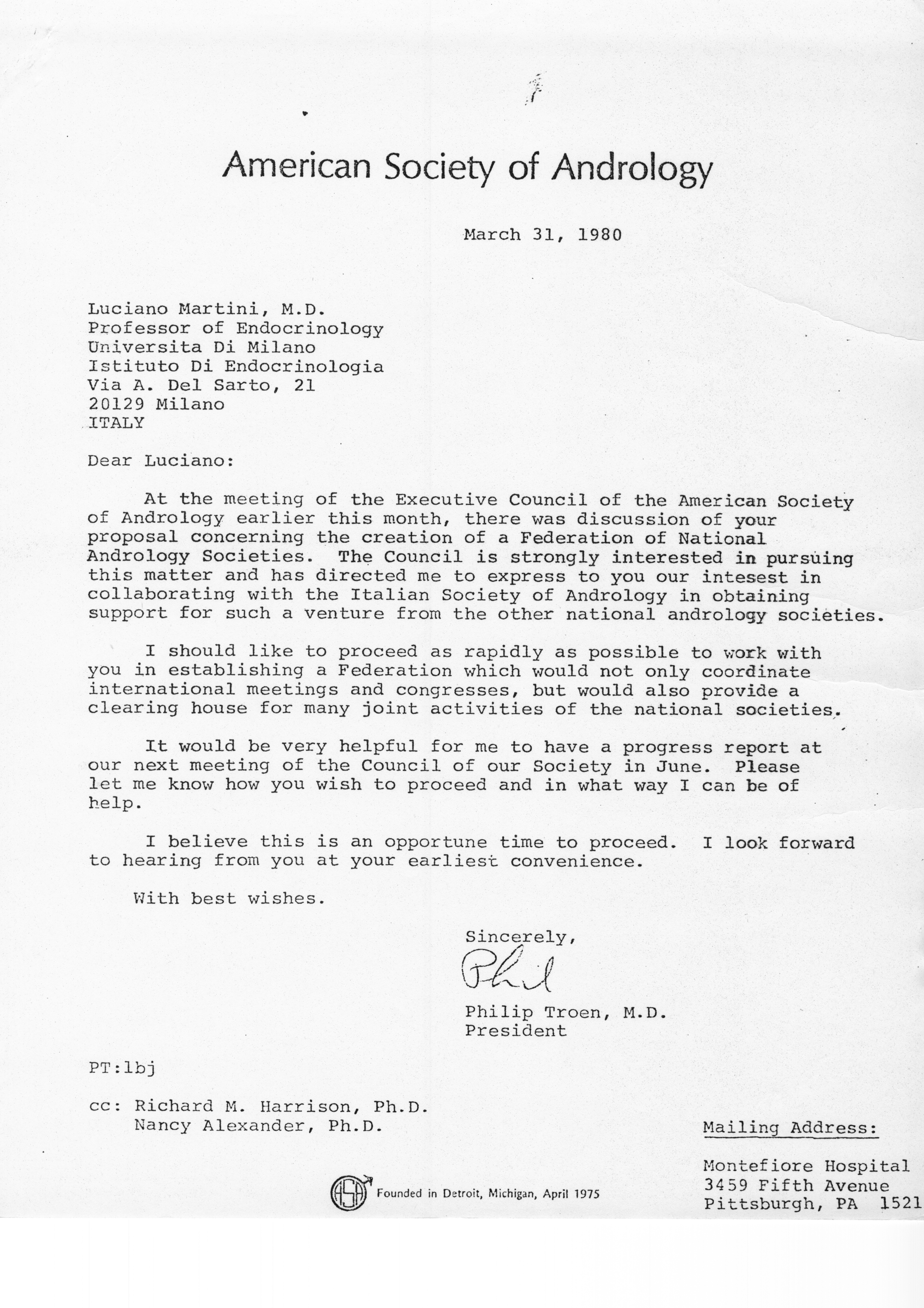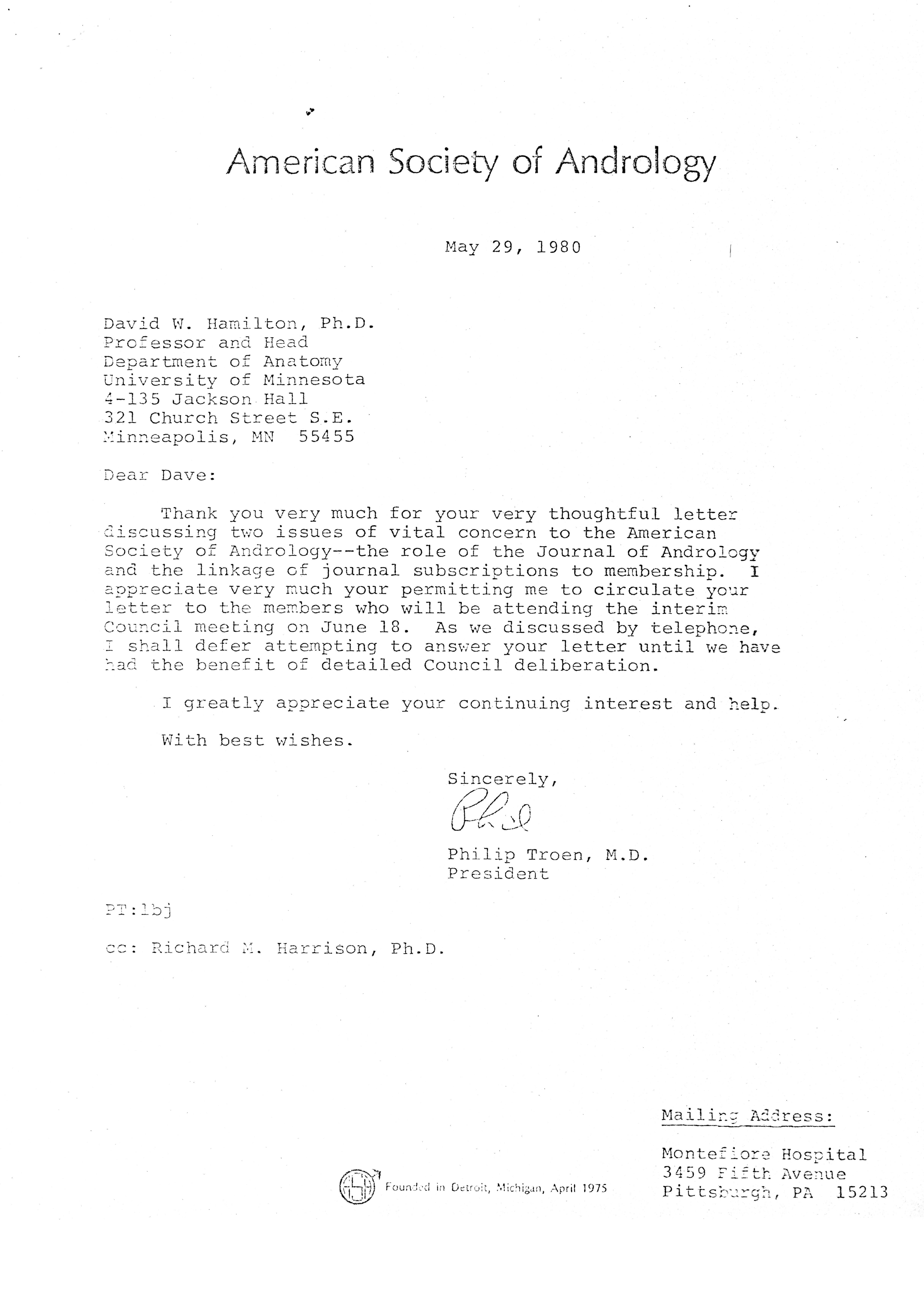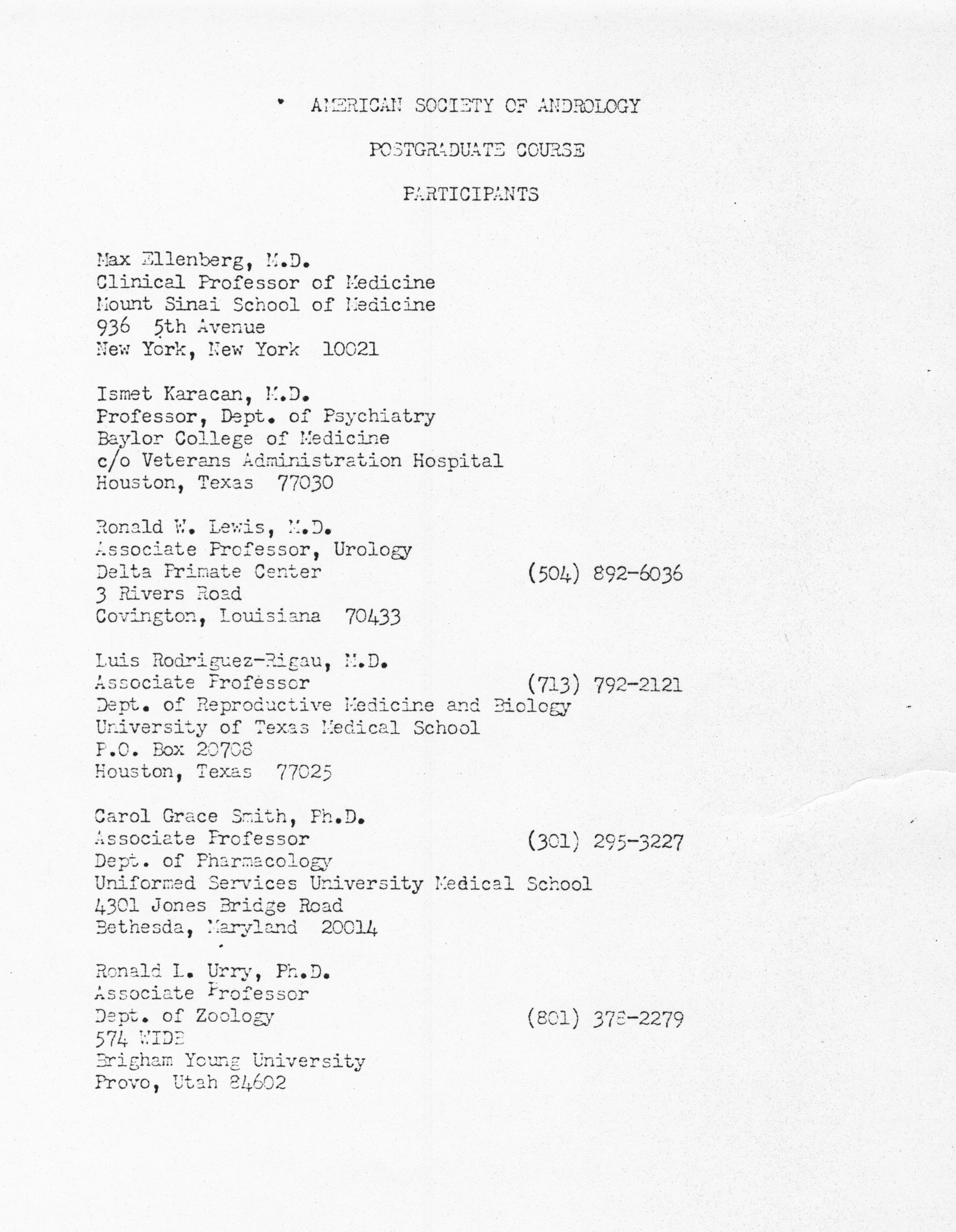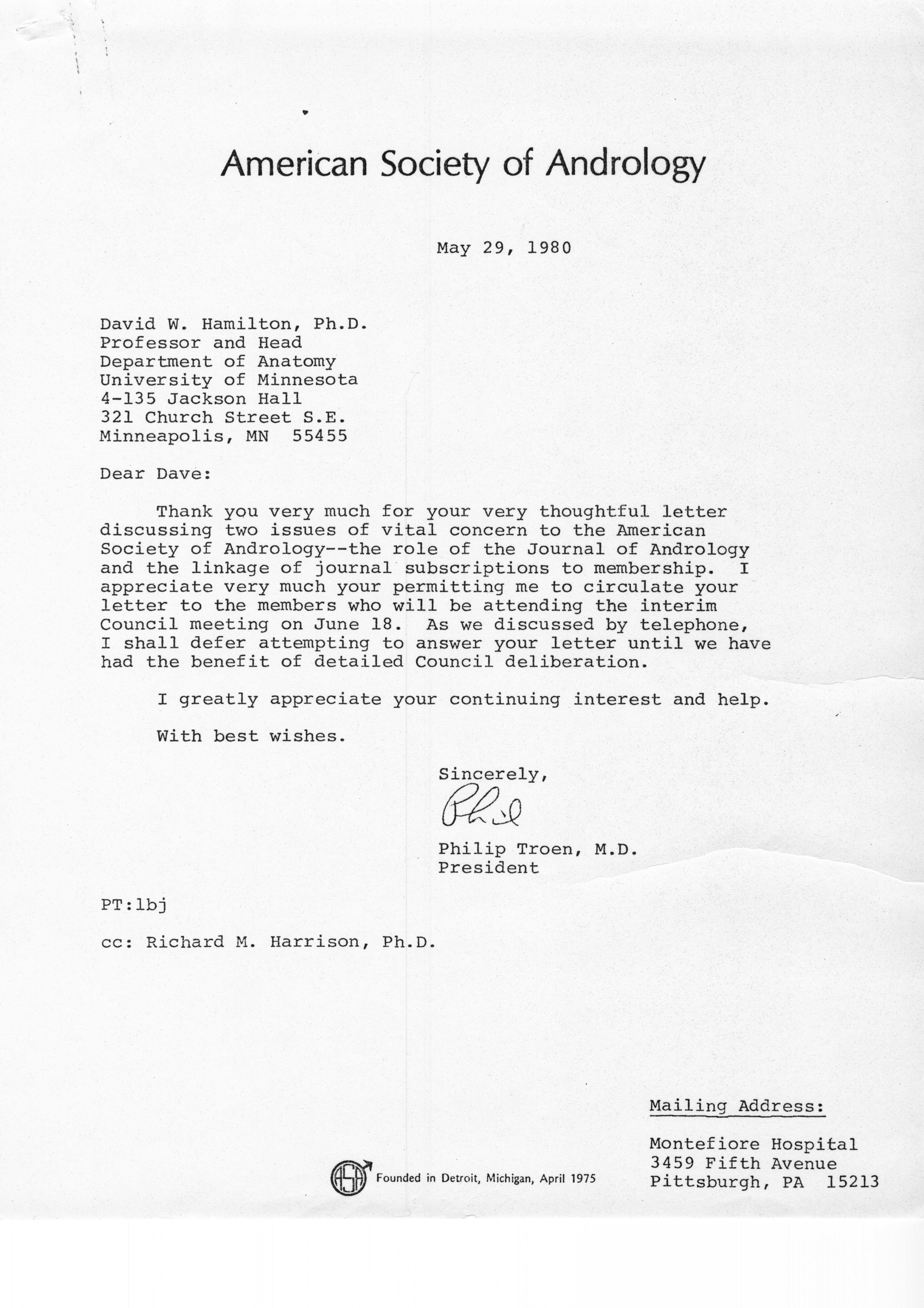 - "Executive Council Meetings of the American Society of Andrology, 1980", American Society of Andrology Collection, Iowa State University Library Digital Collections