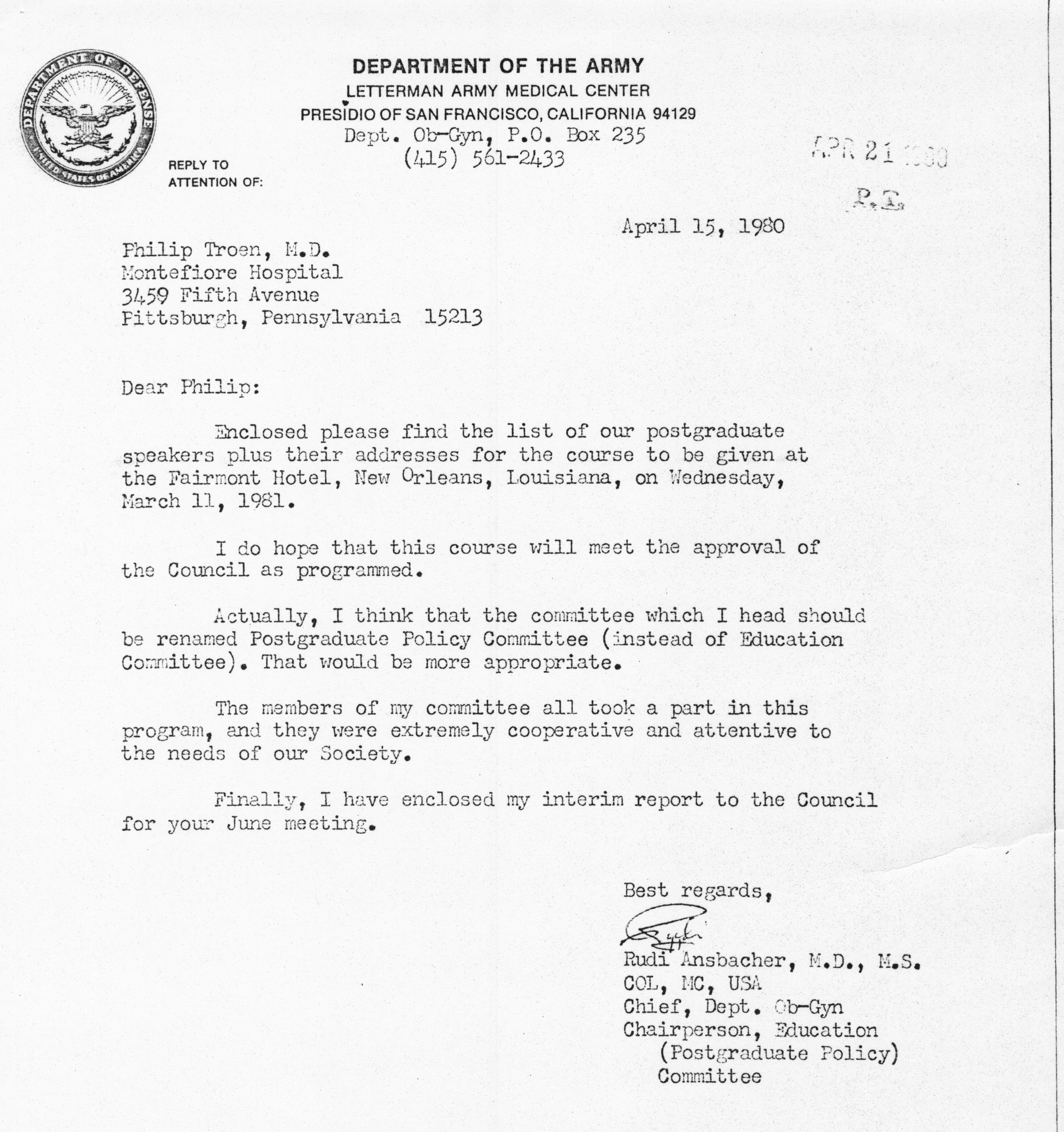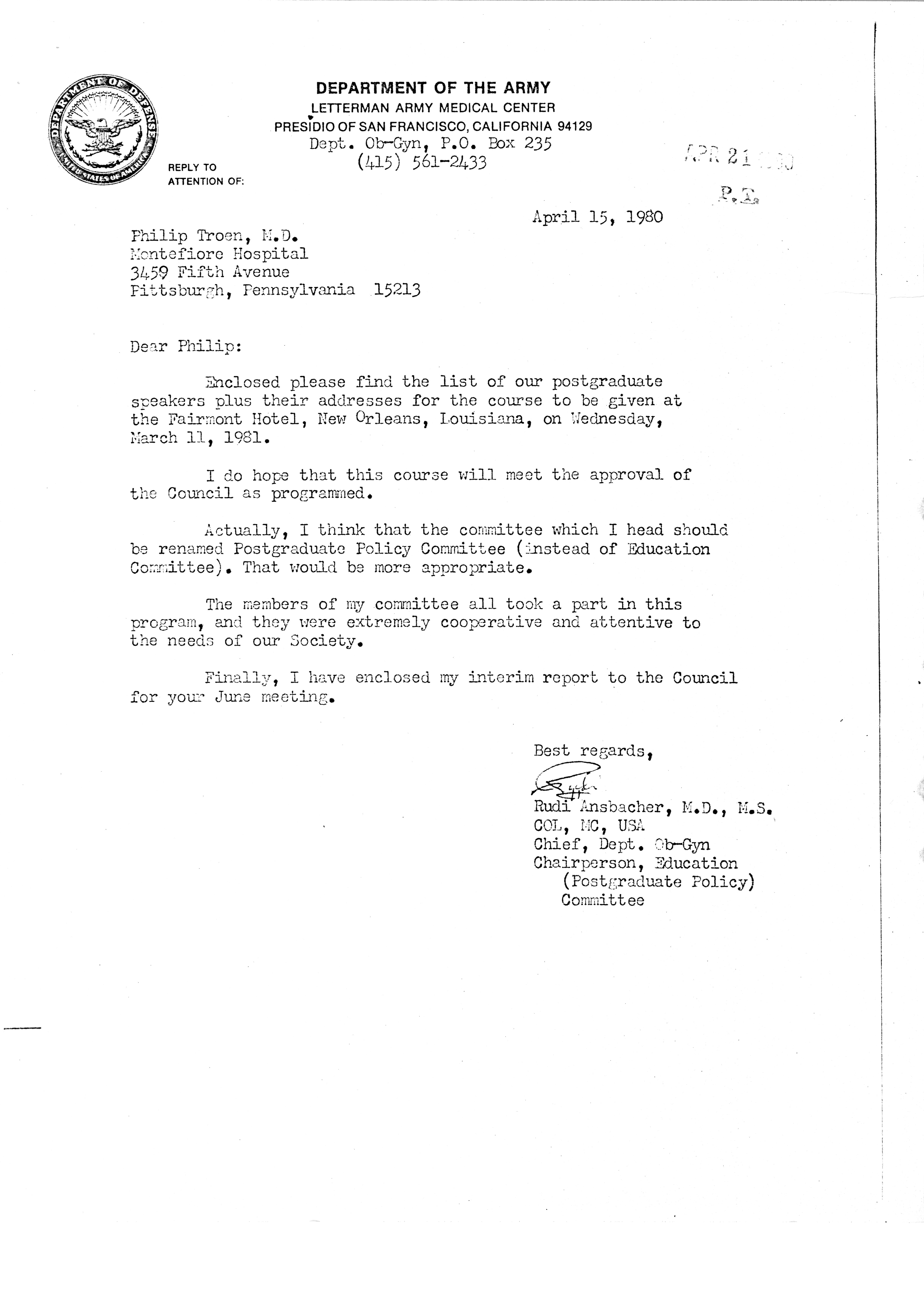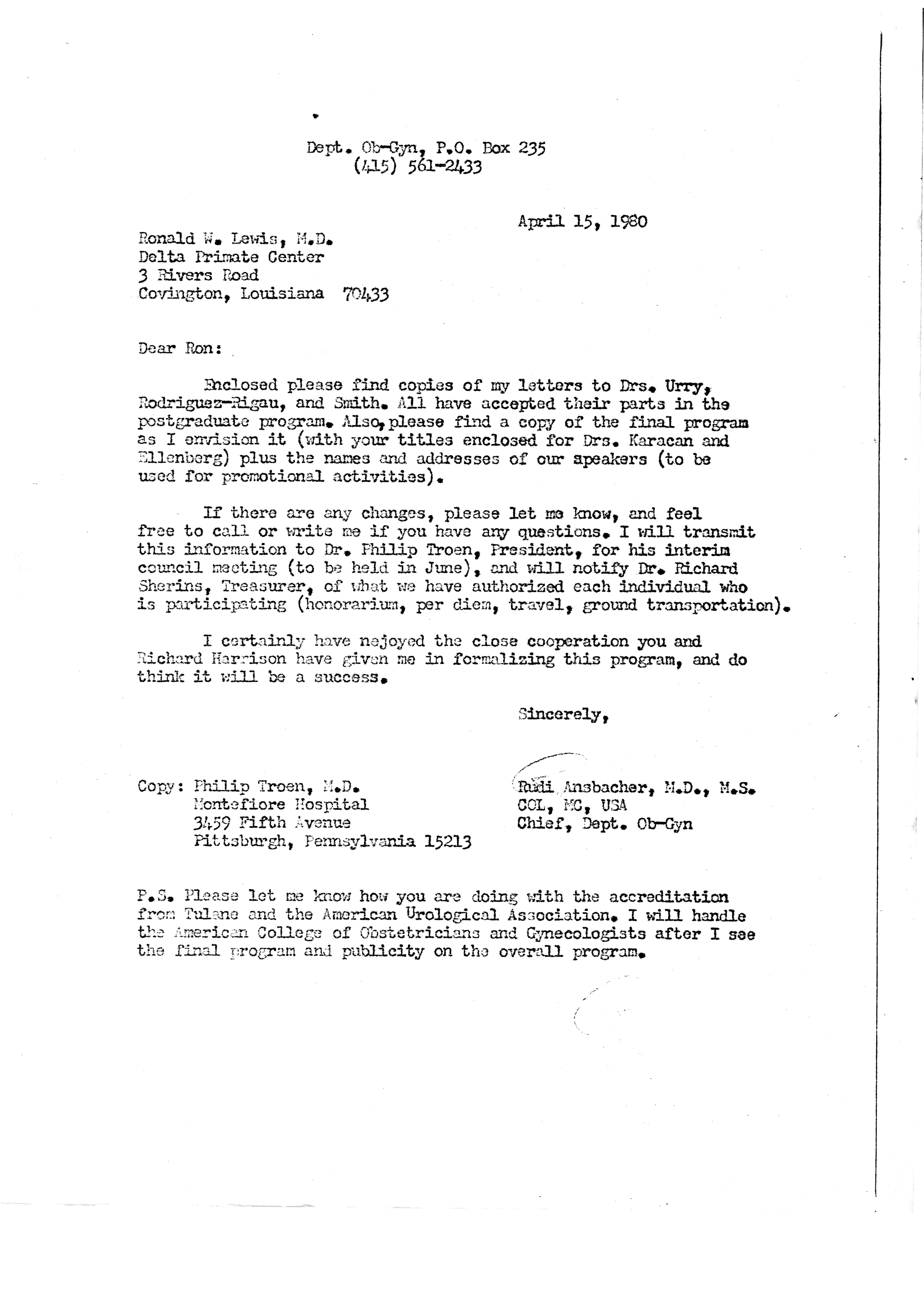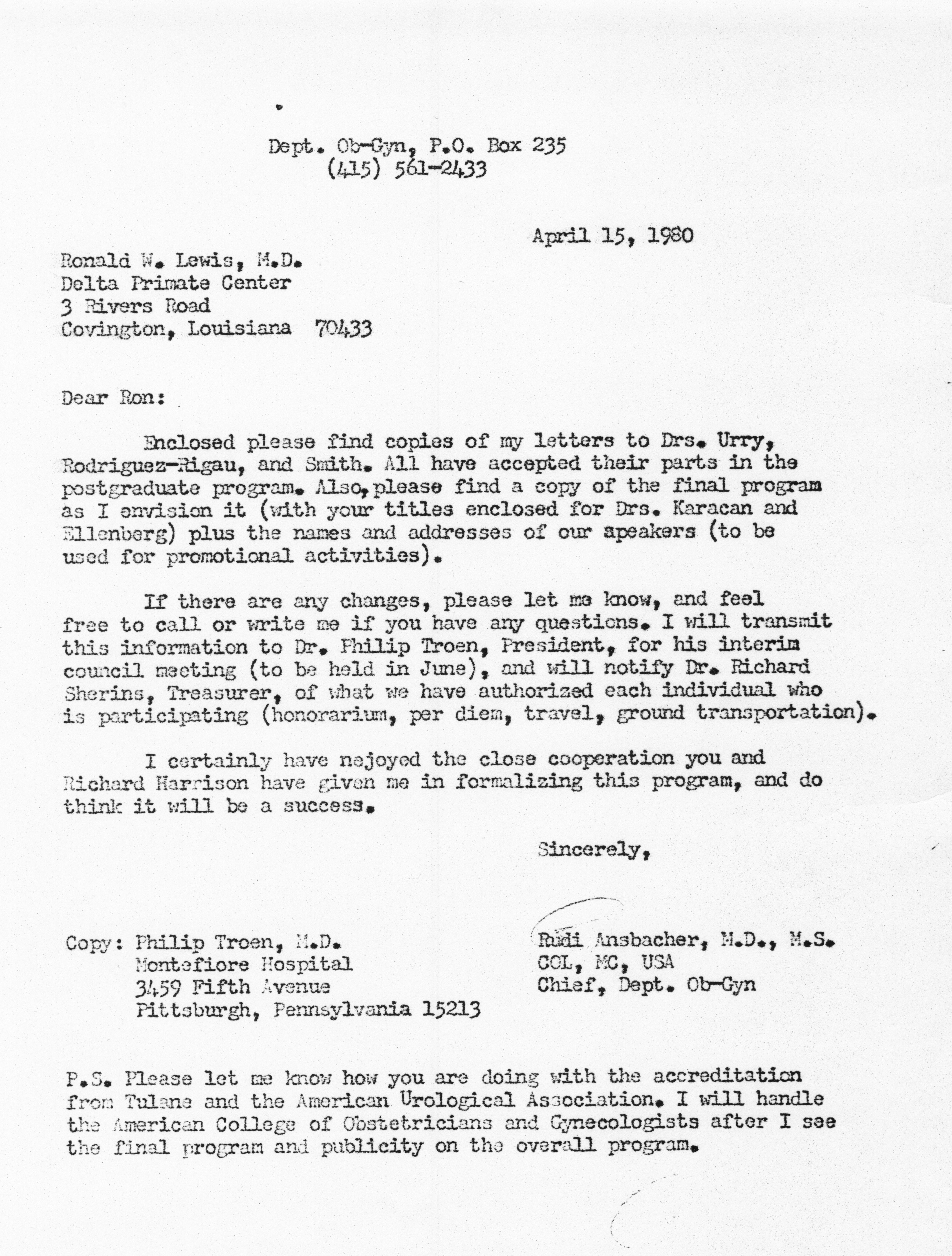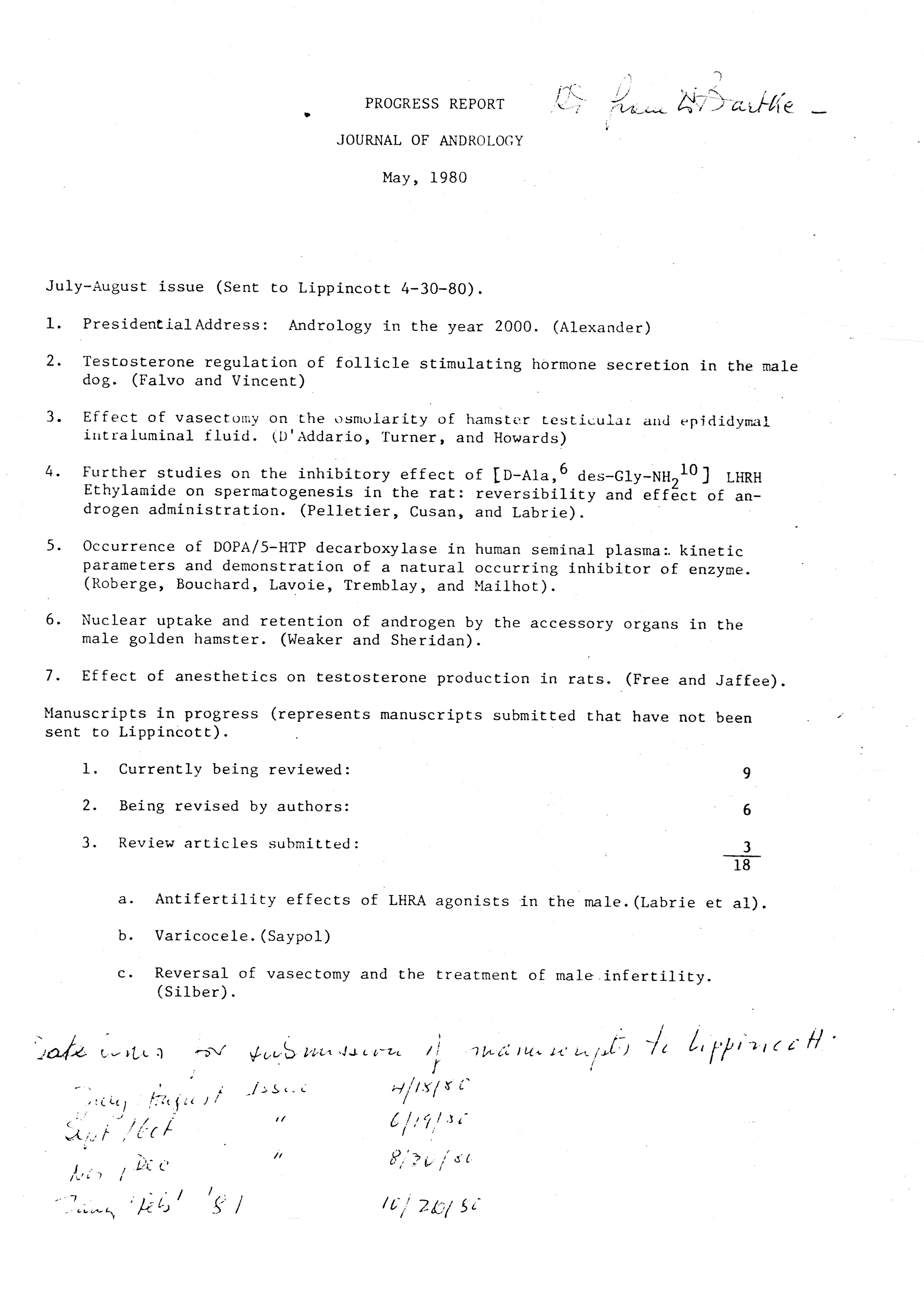 - "Executive Council Meetings of the American Society of Andrology, 1980", American Society of Andrology Collection, Iowa State University Library Digital Collections