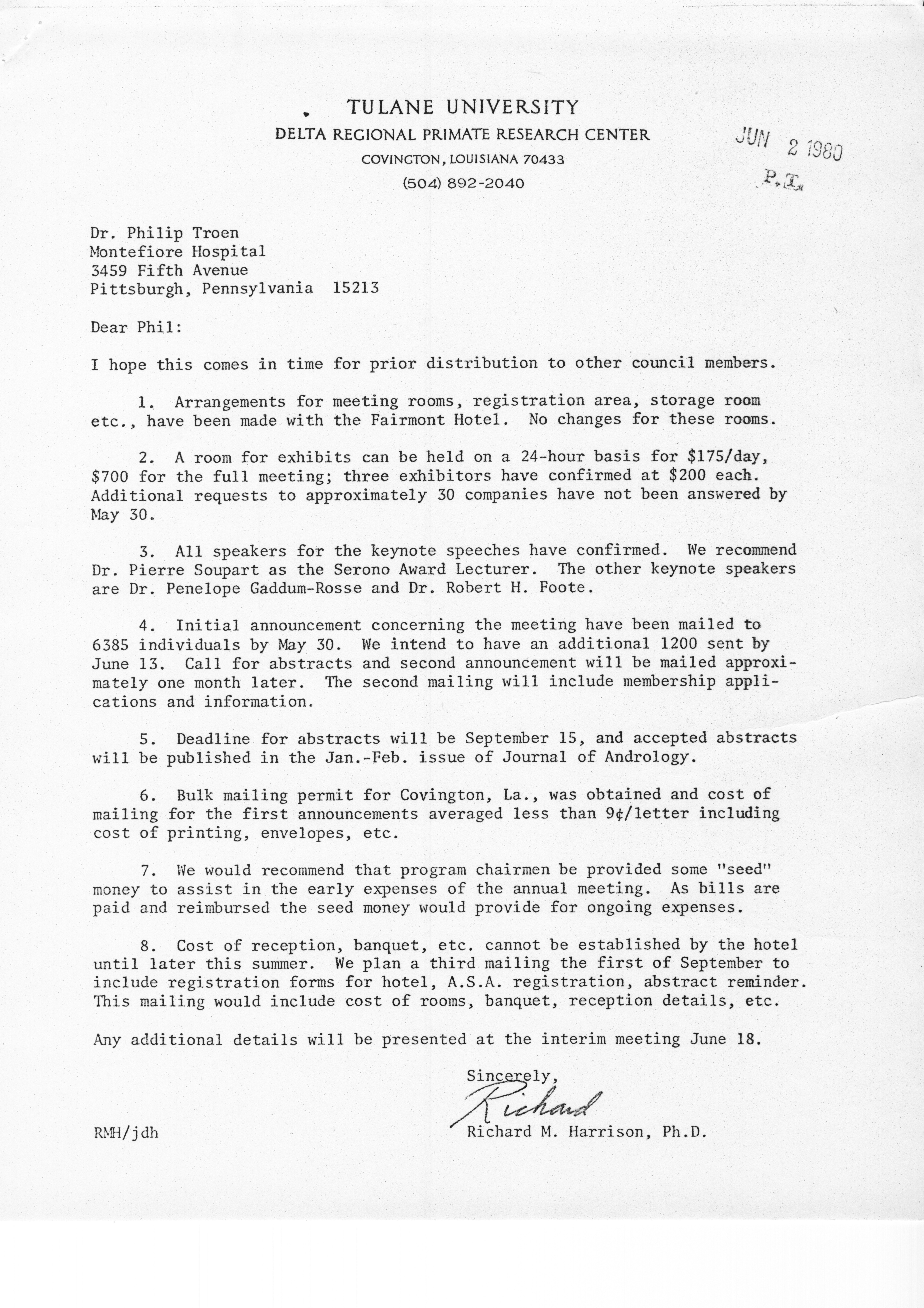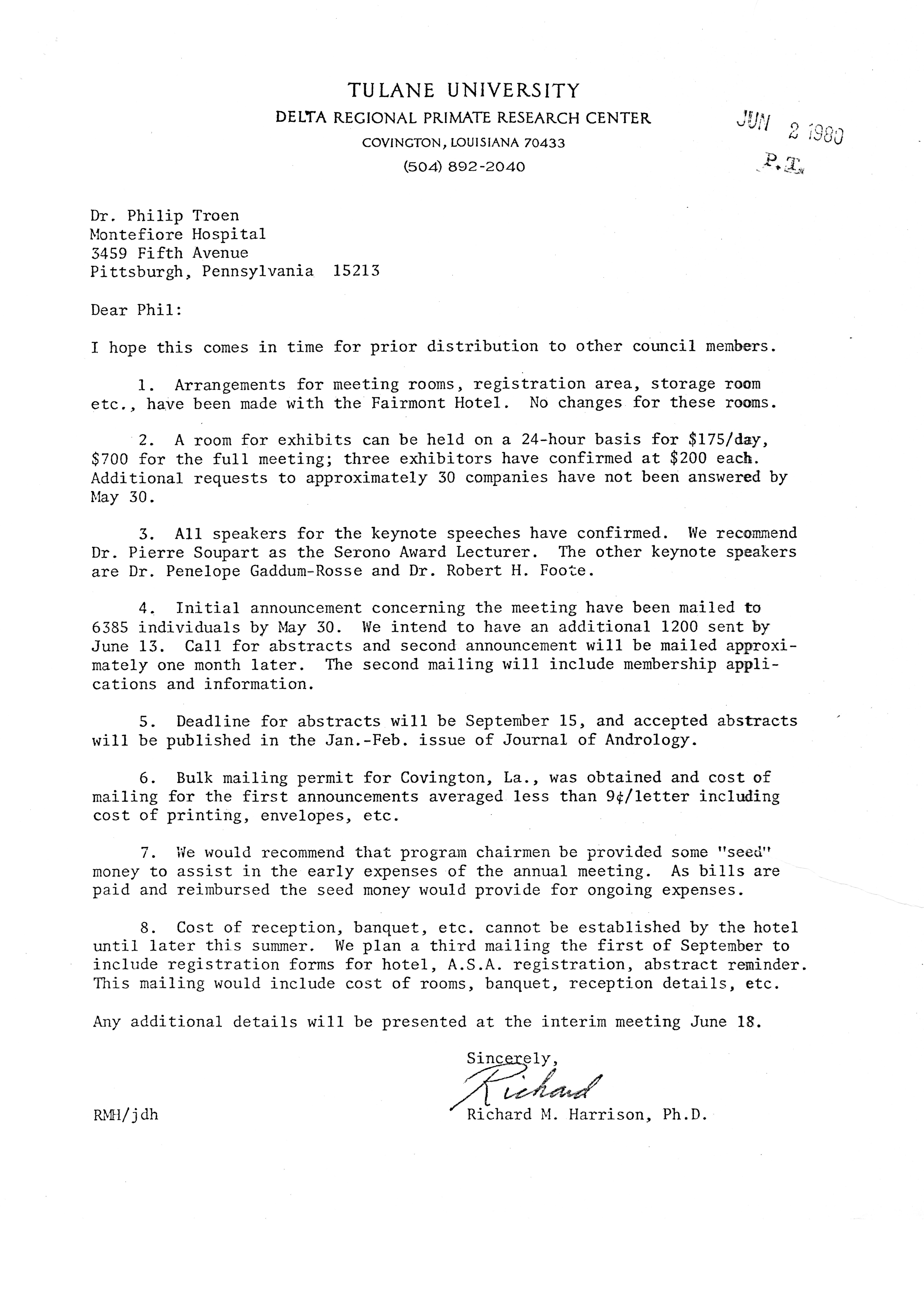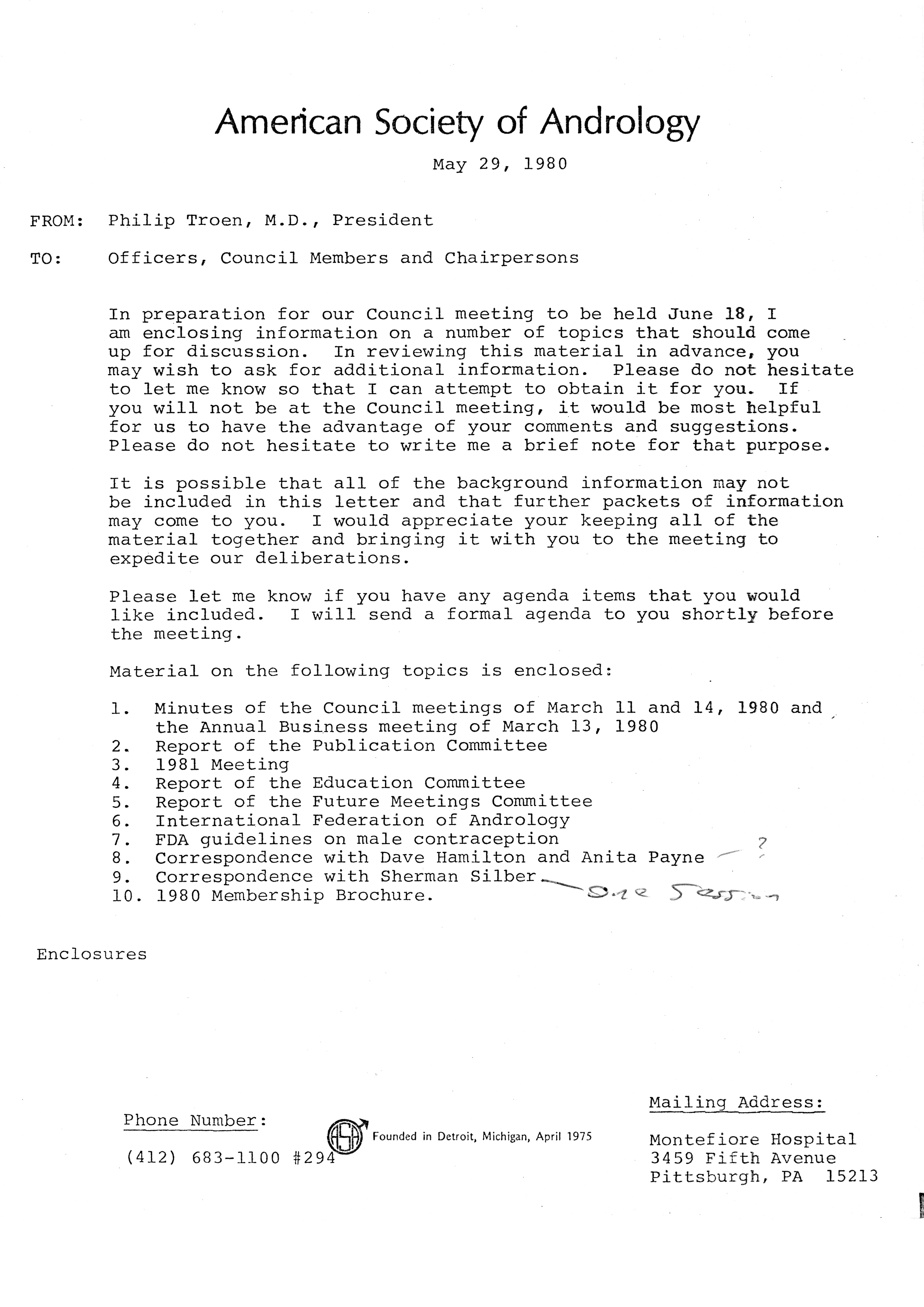 Executive Council Meetings of the American Society of Andrology, 1980 Item Info