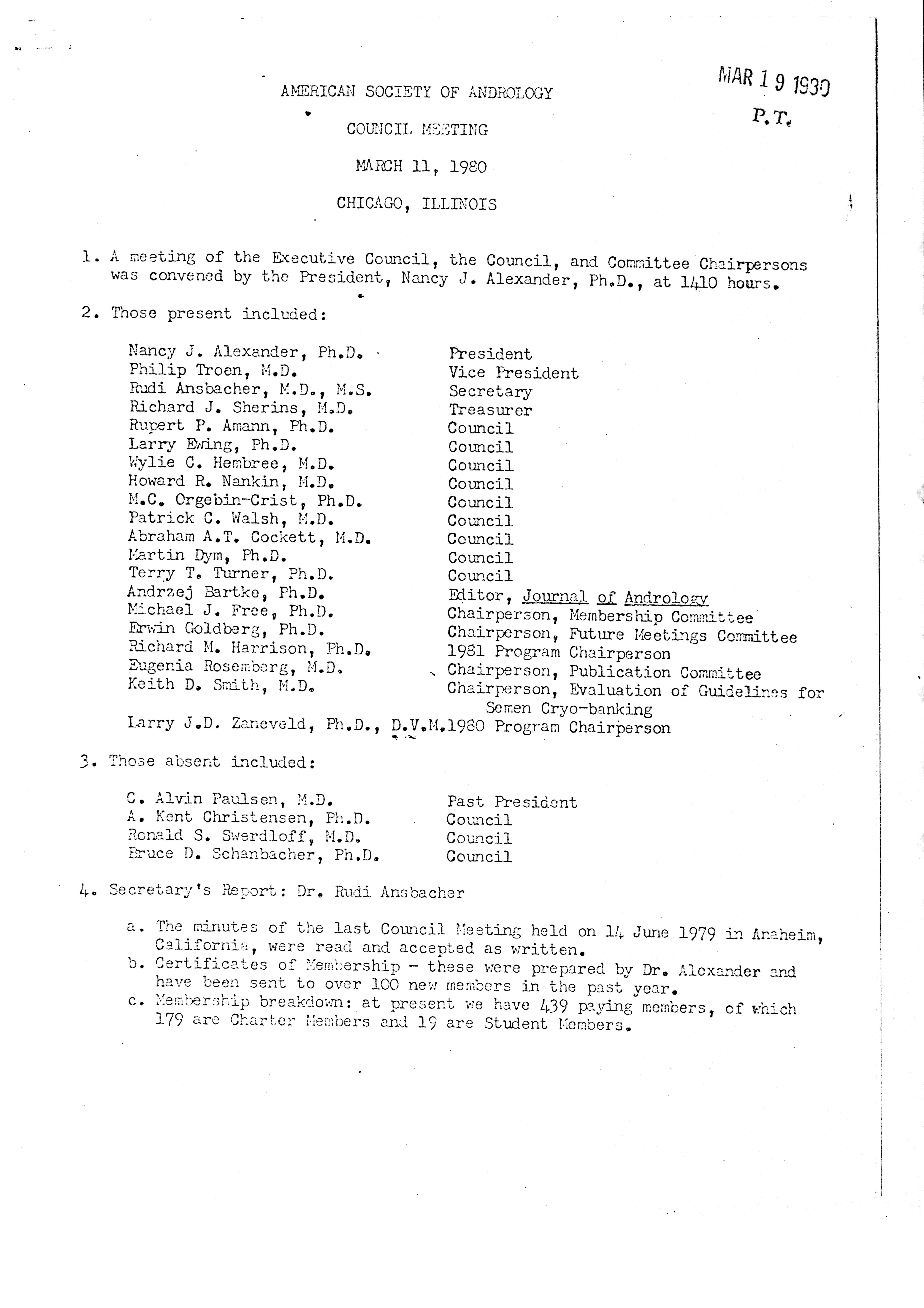 Executive Council Meetings of the American Society of Andrology, 1980