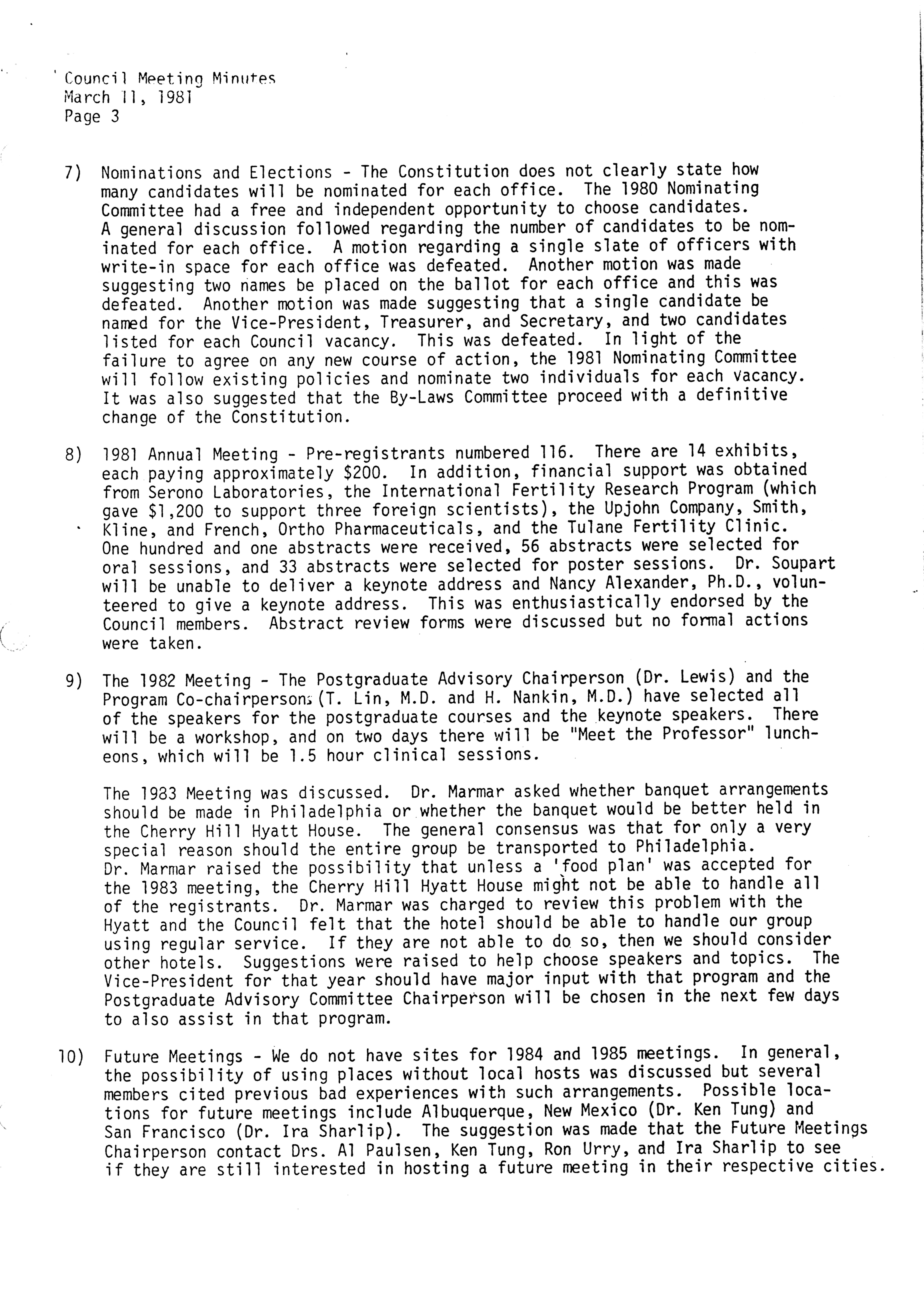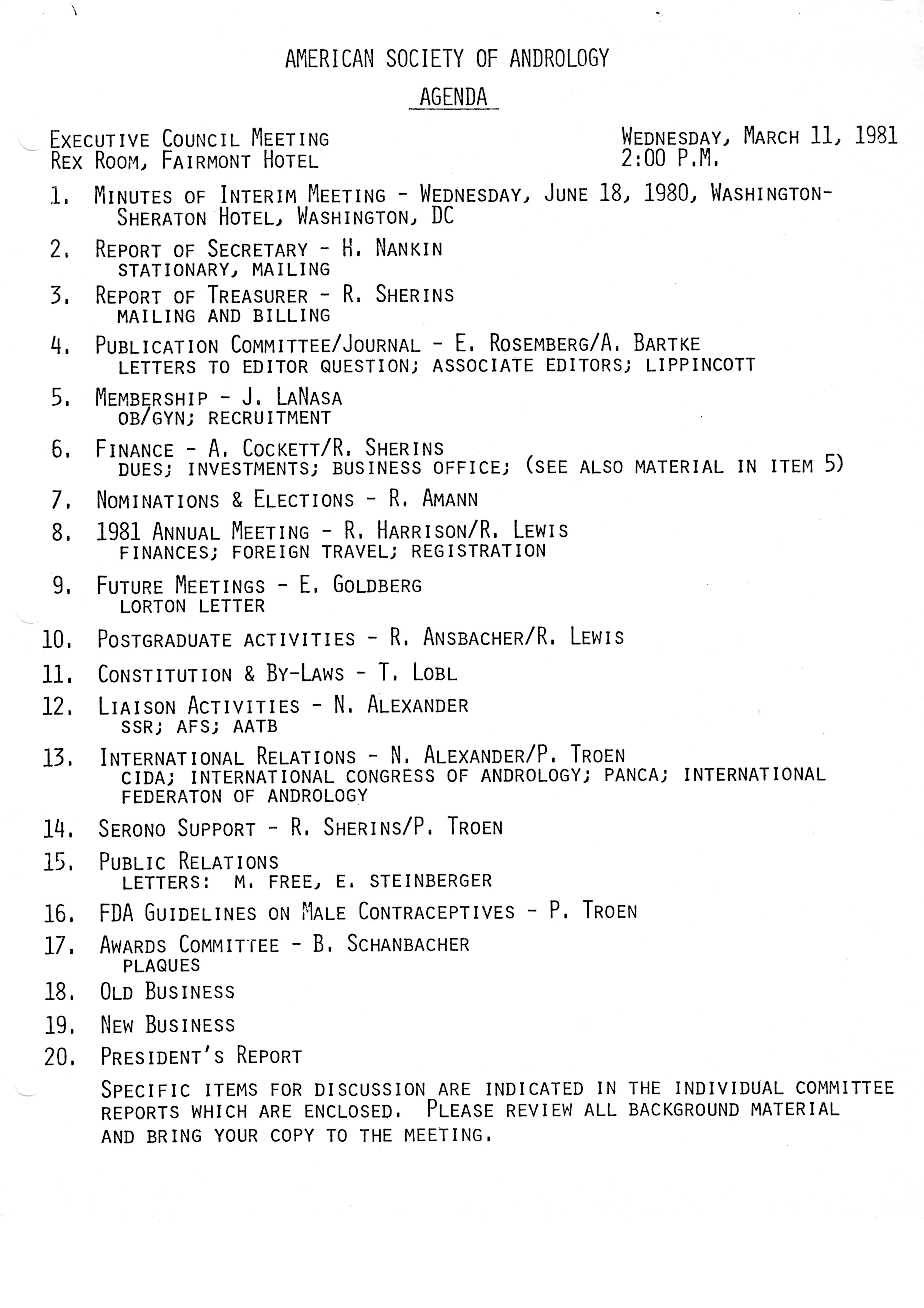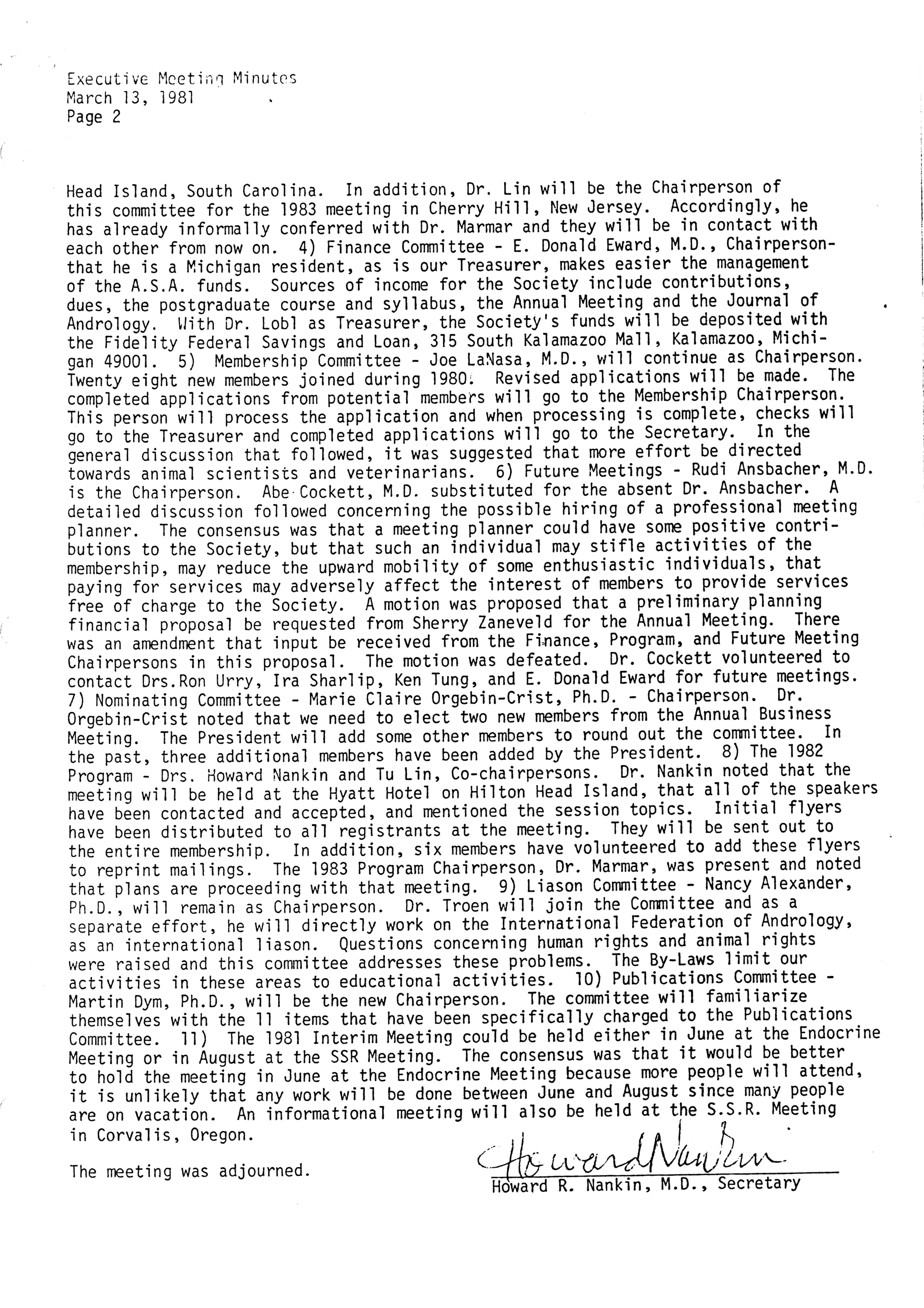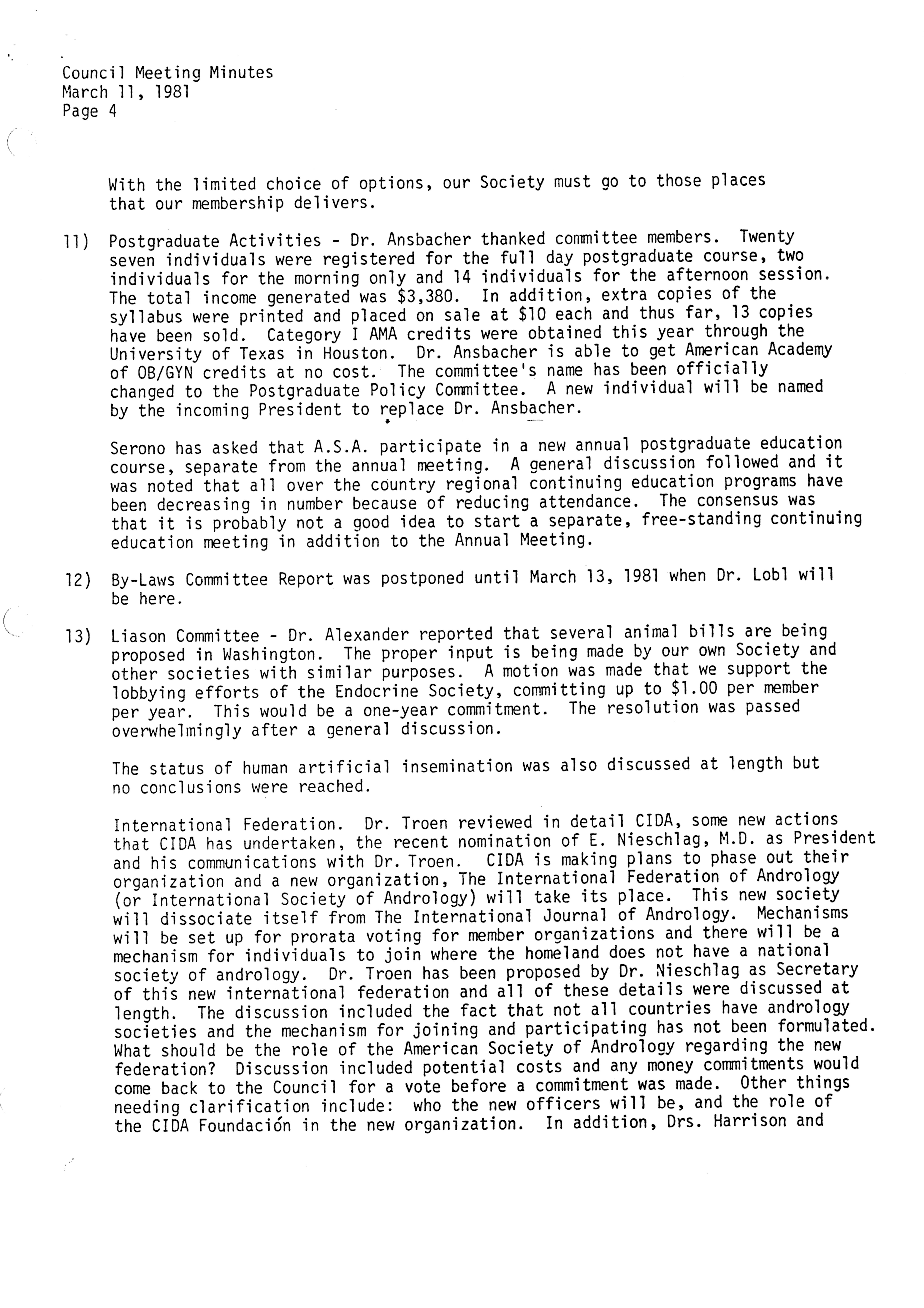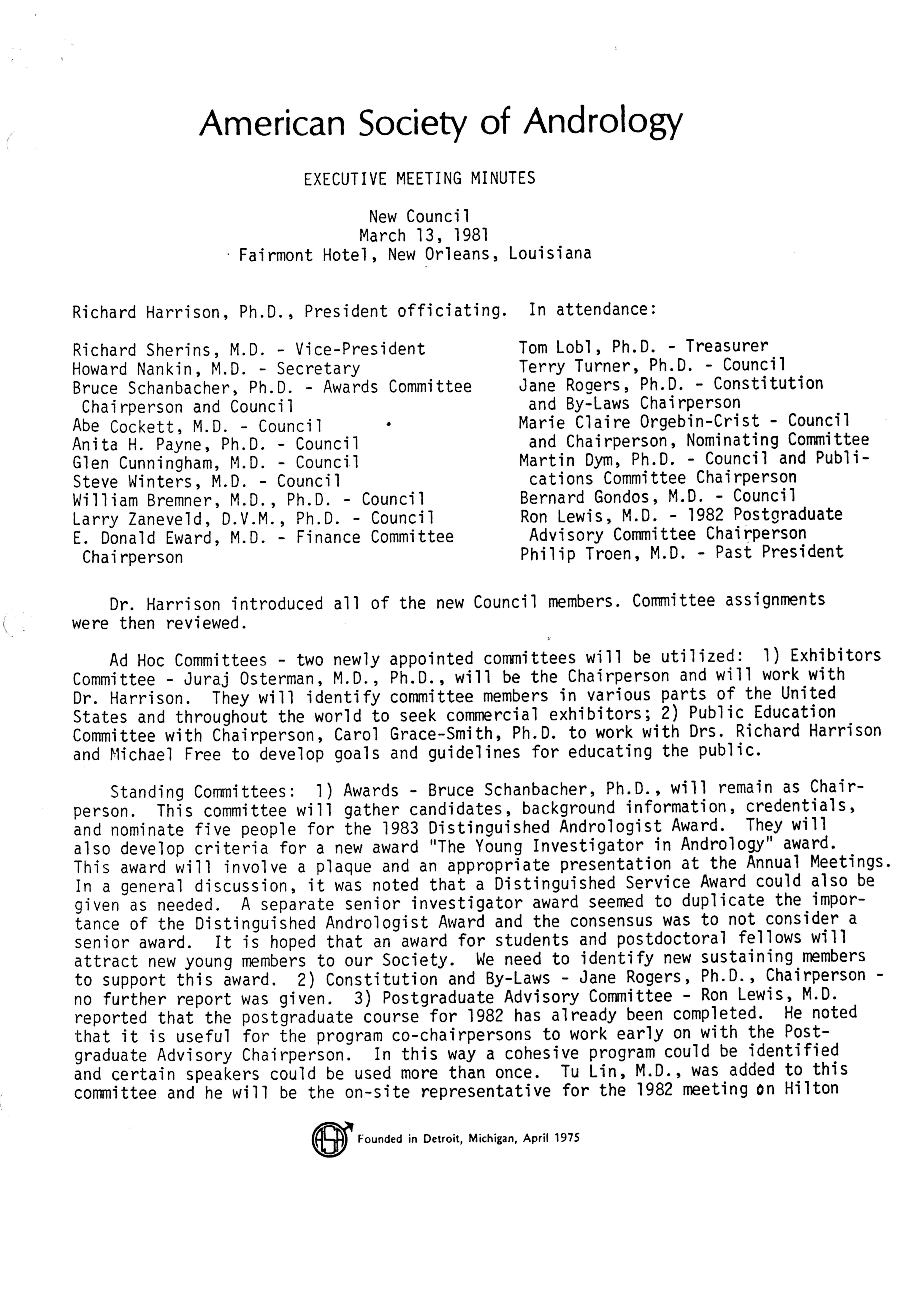 - "Executive Council Meetings of the American Society of Andrology, 1981", American Society of Andrology Collection, Iowa State University Library Digital Collections