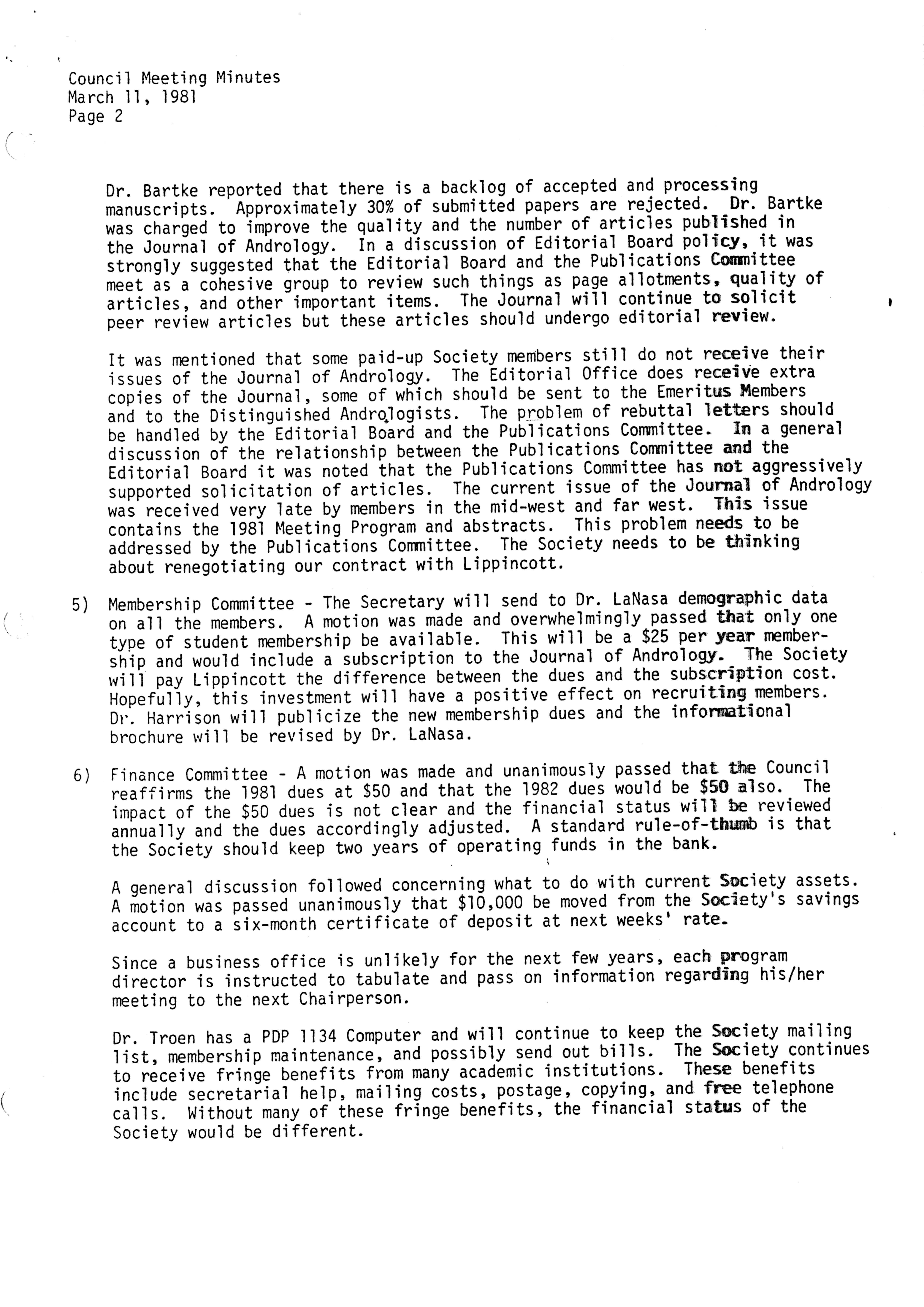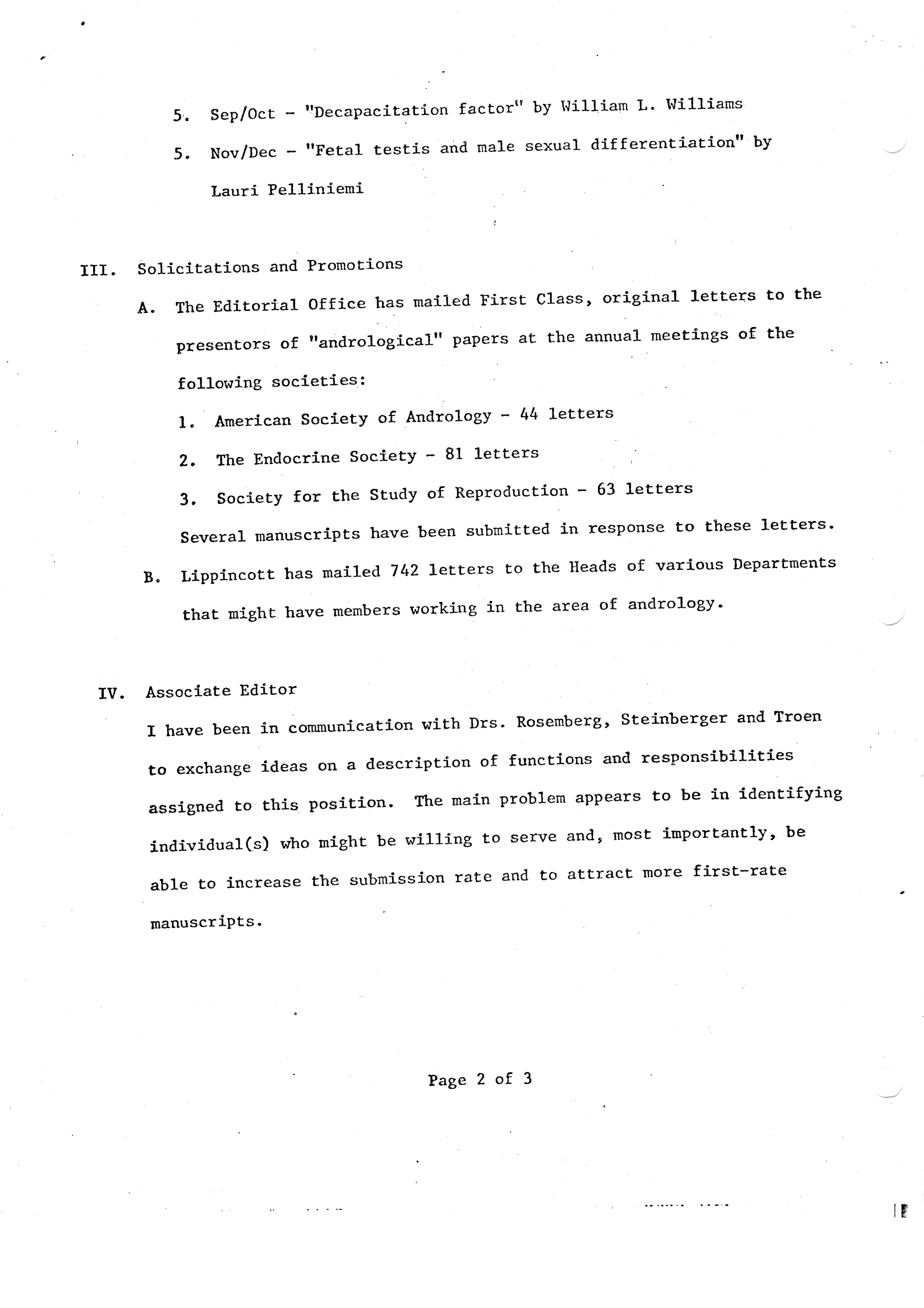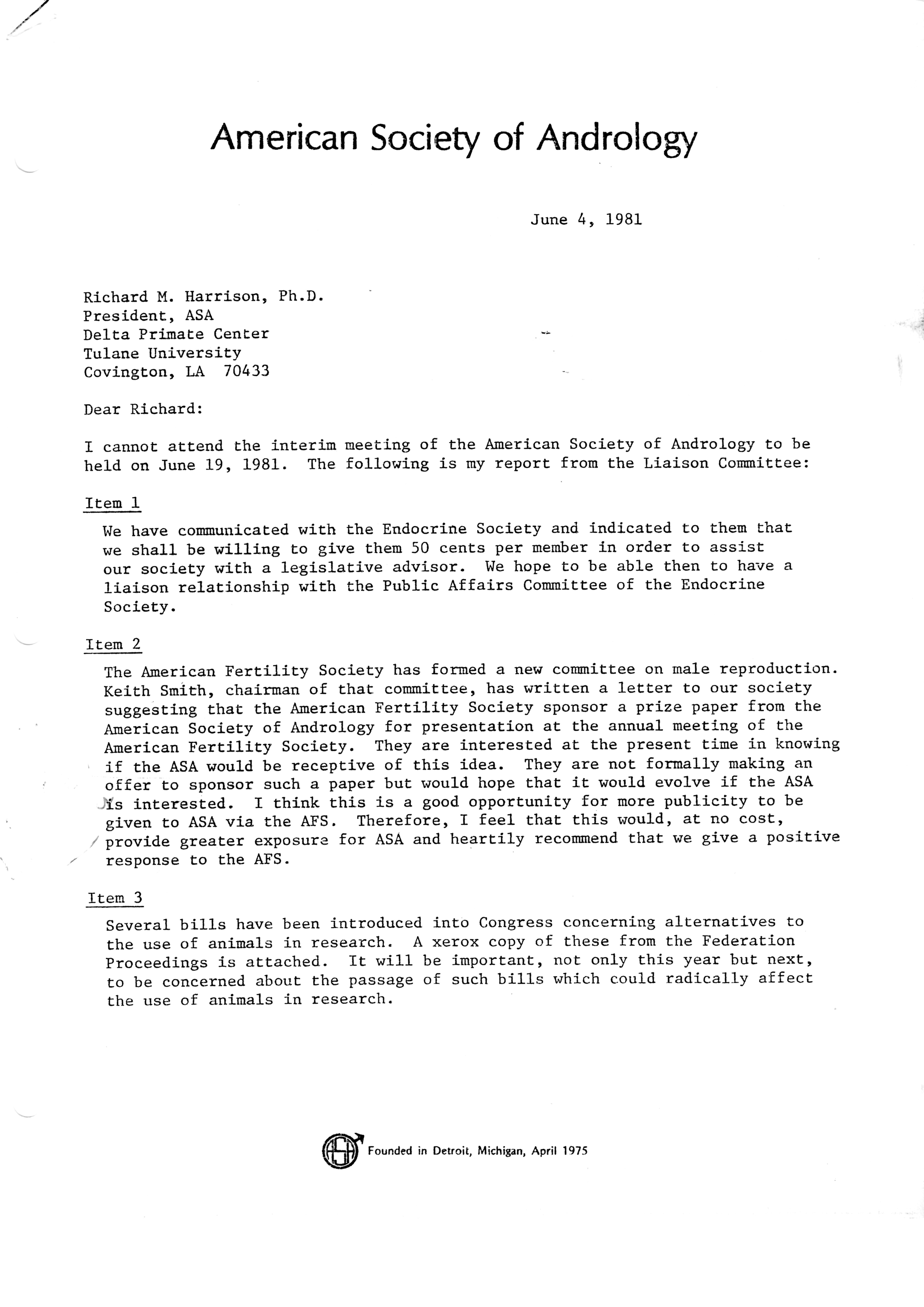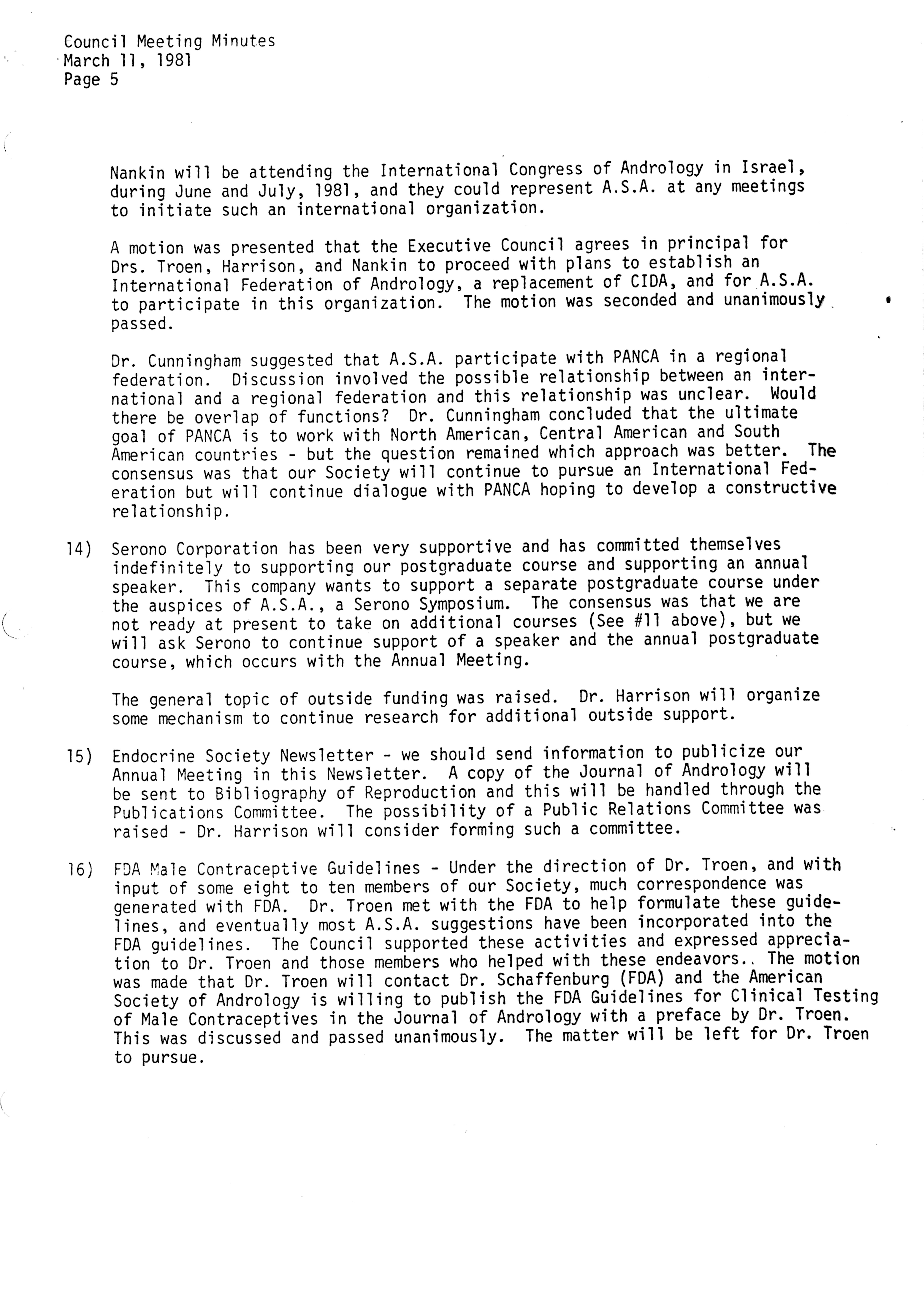 - "Executive Council Meetings of the American Society of Andrology, 1981", American Society of Andrology Collection, Iowa State University Library Digital Collections