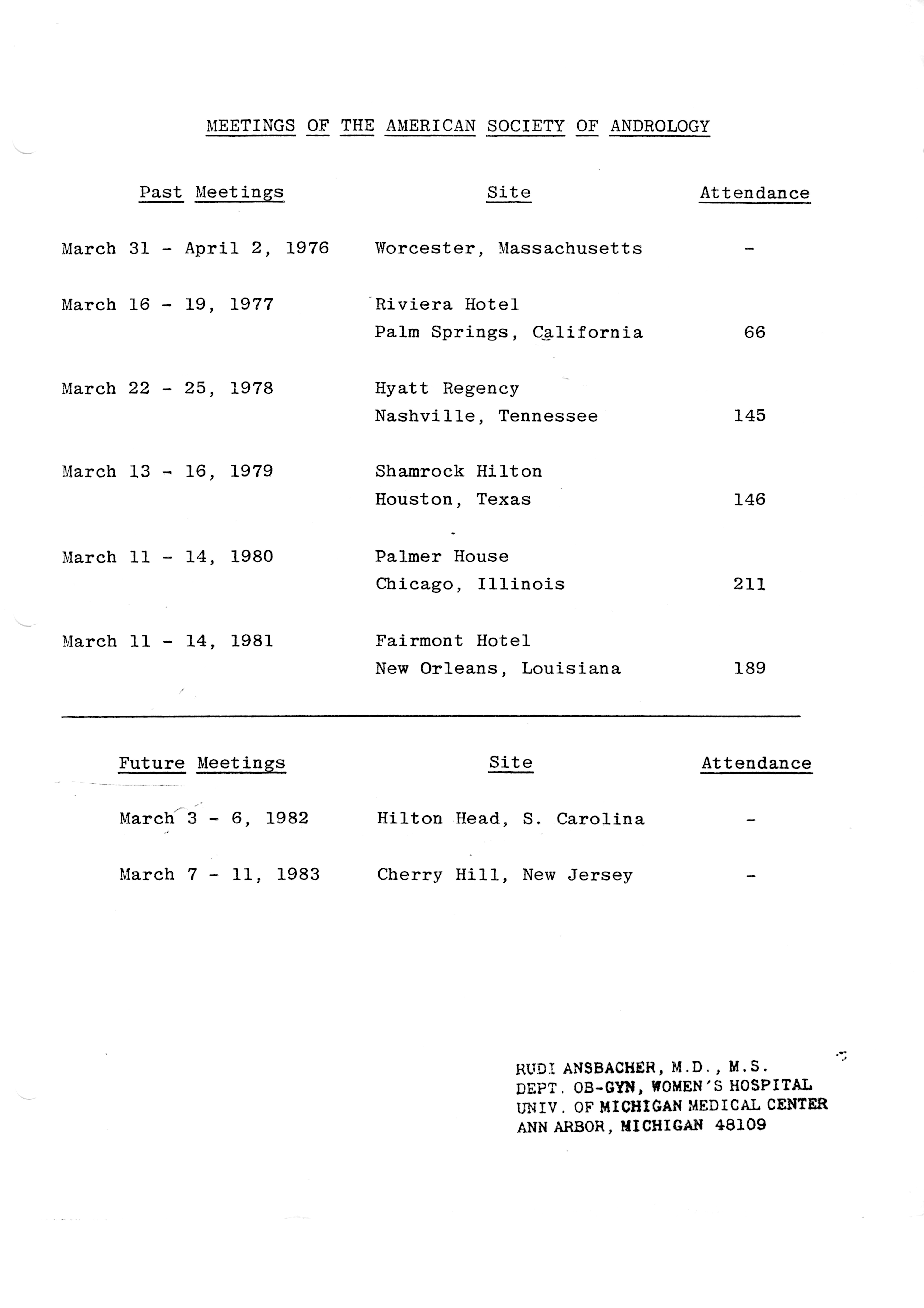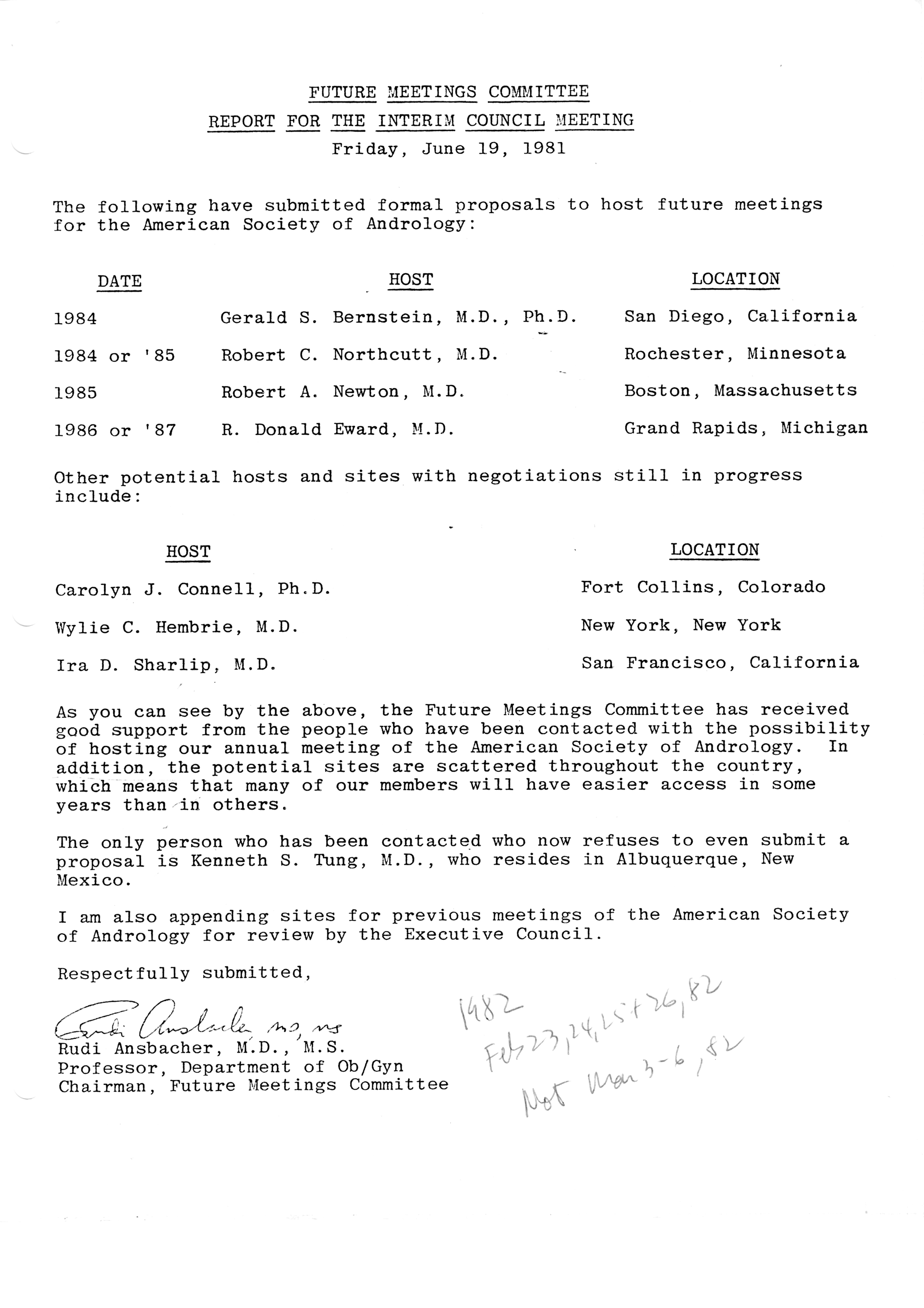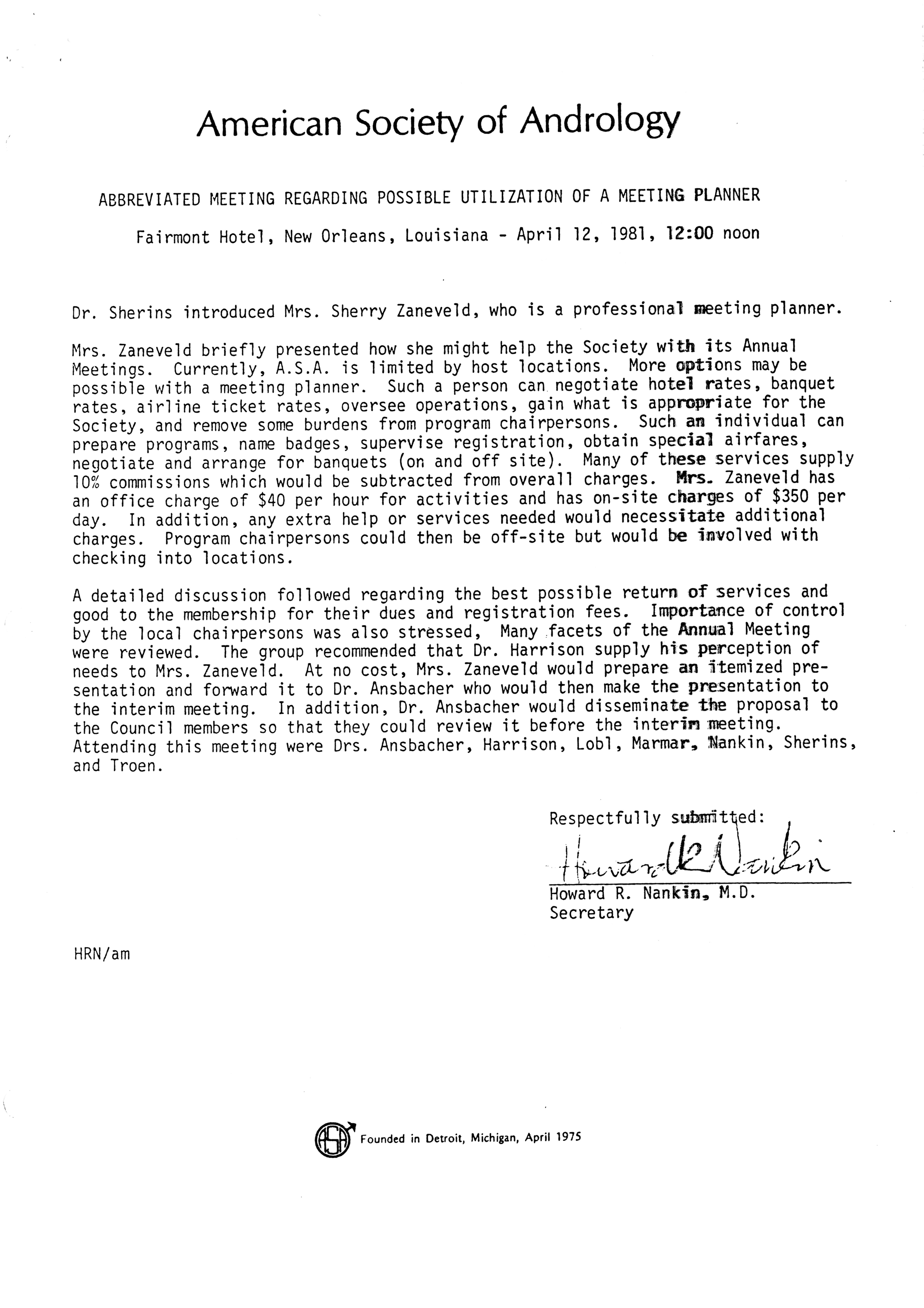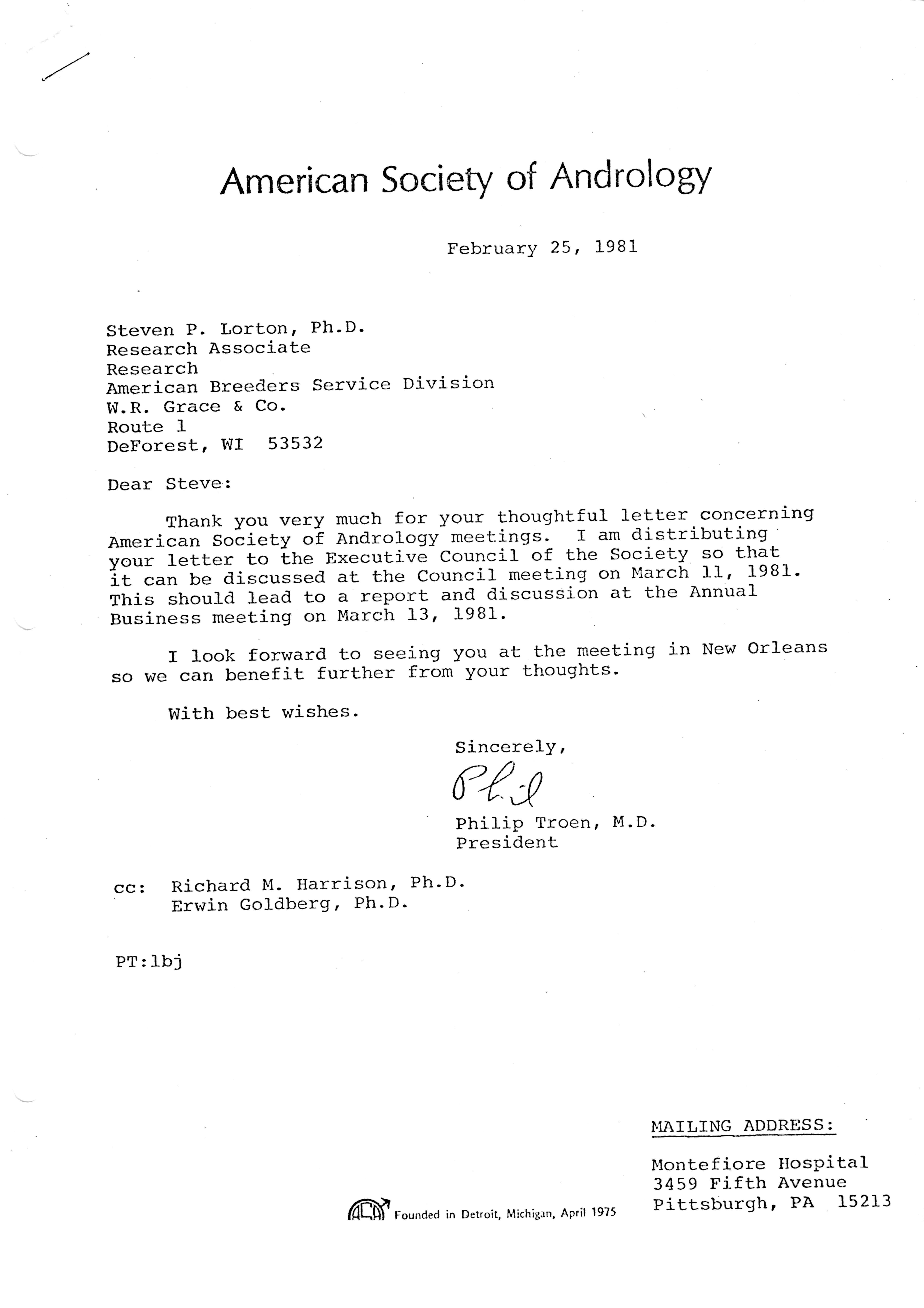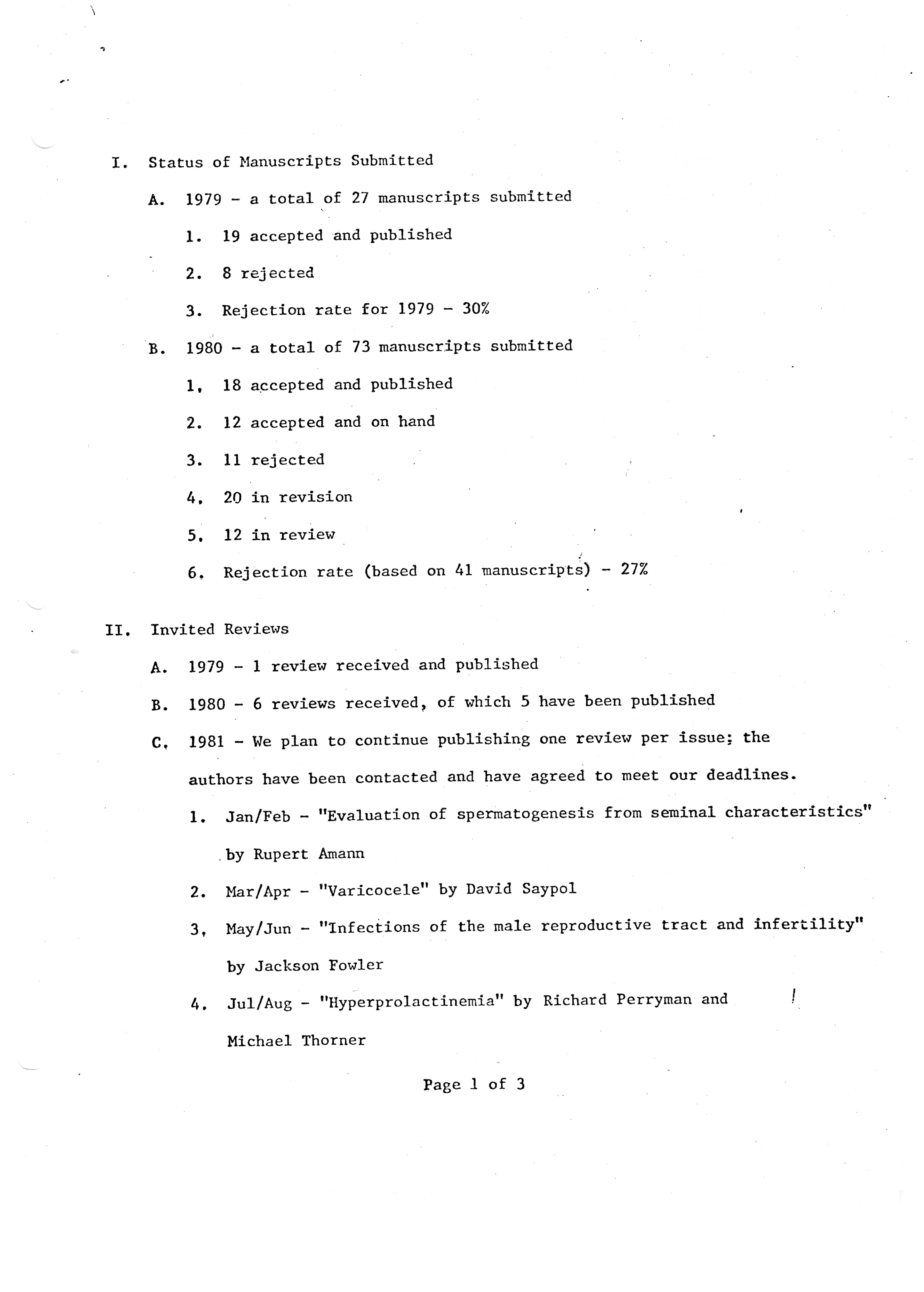 - "Executive Council Meetings of the American Society of Andrology, 1981", American Society of Andrology Collection, Iowa State University Library Digital Collections