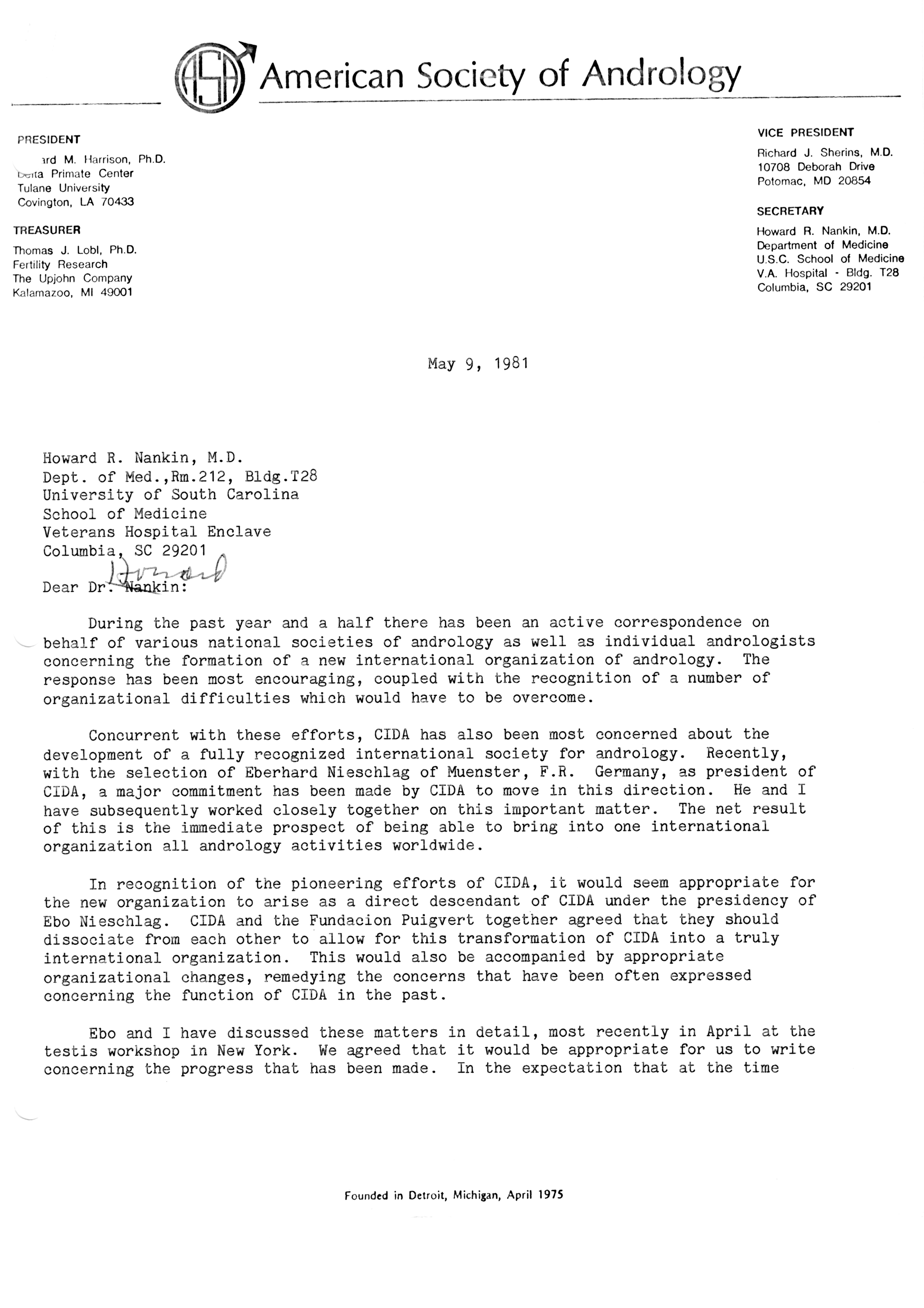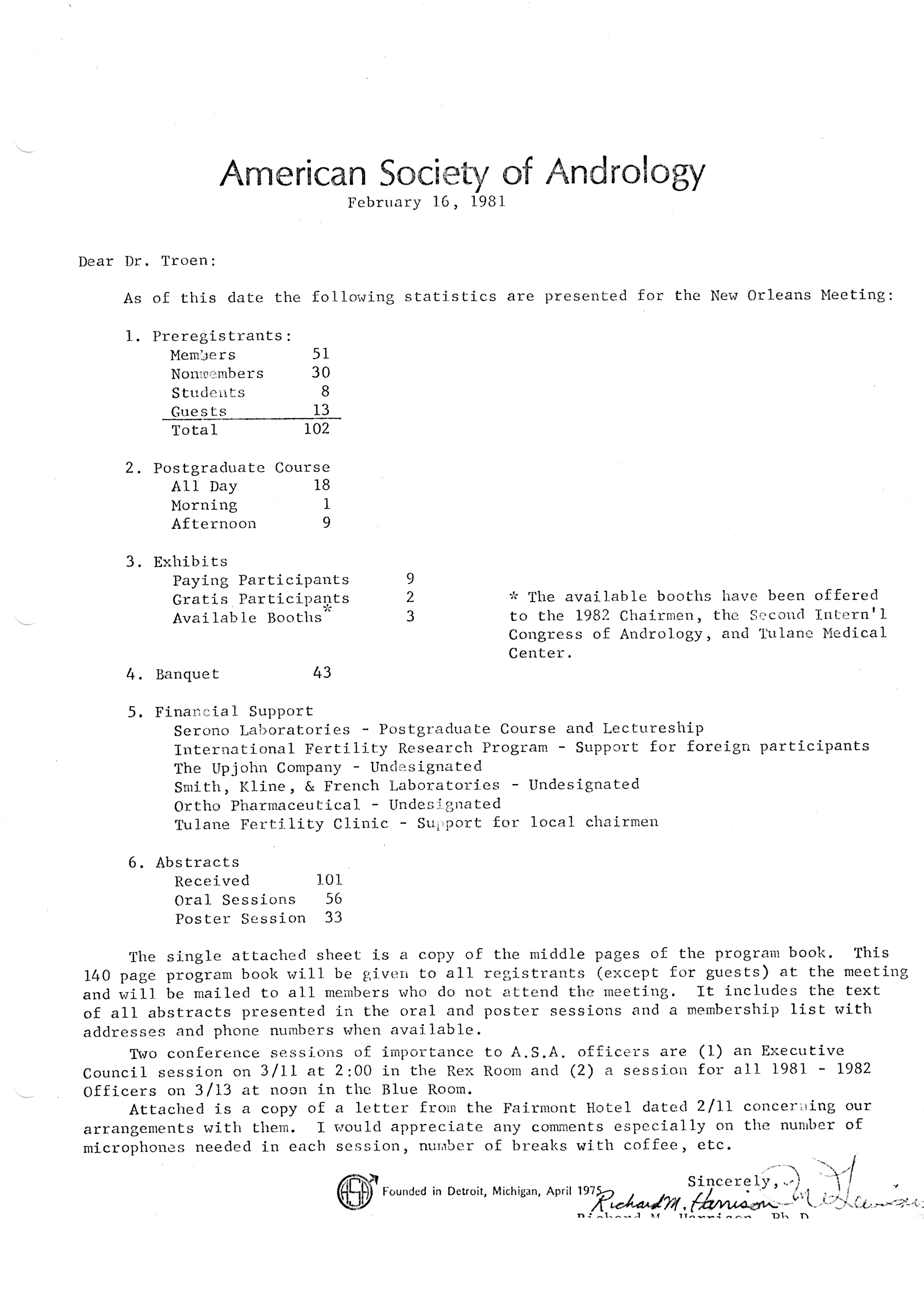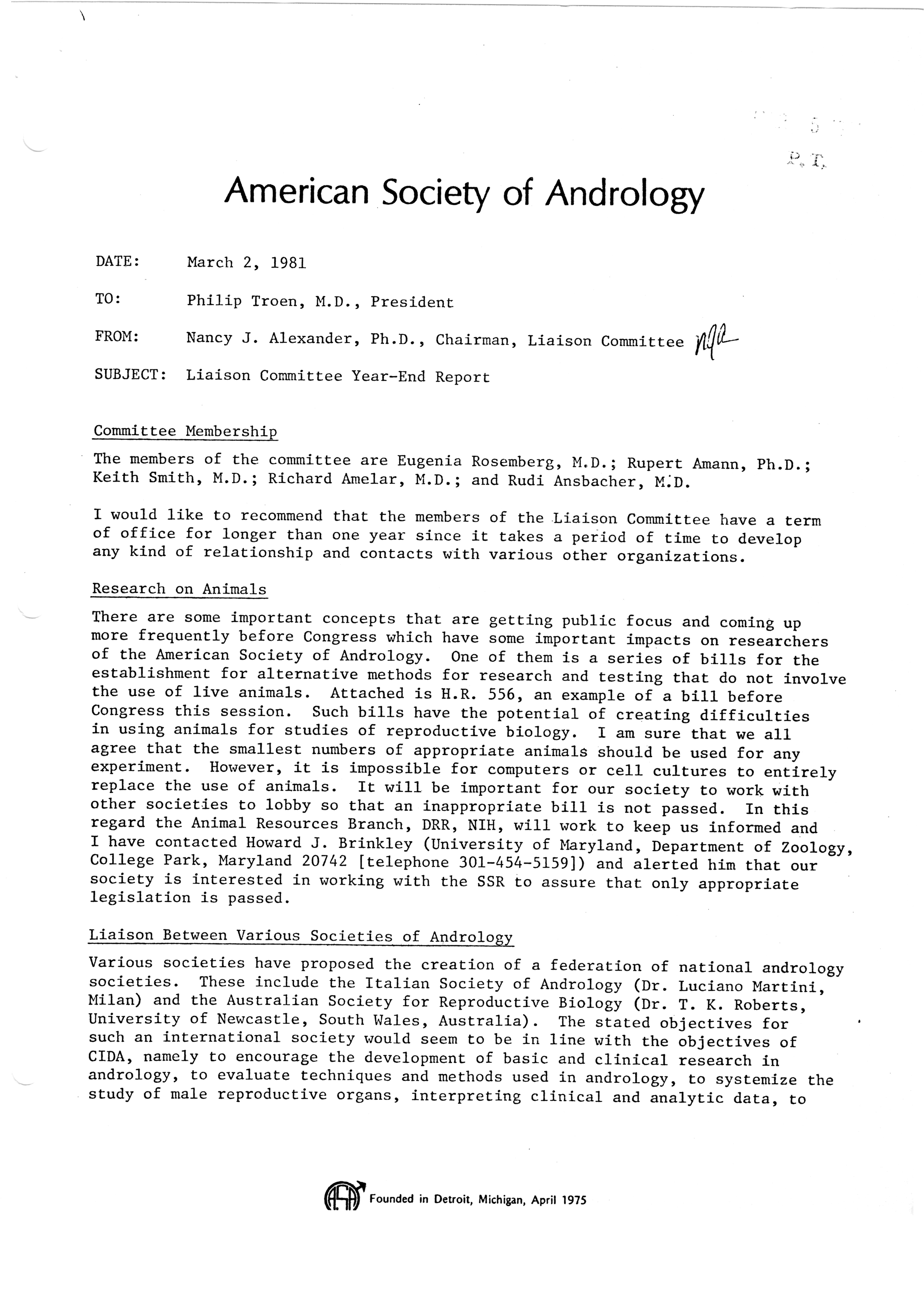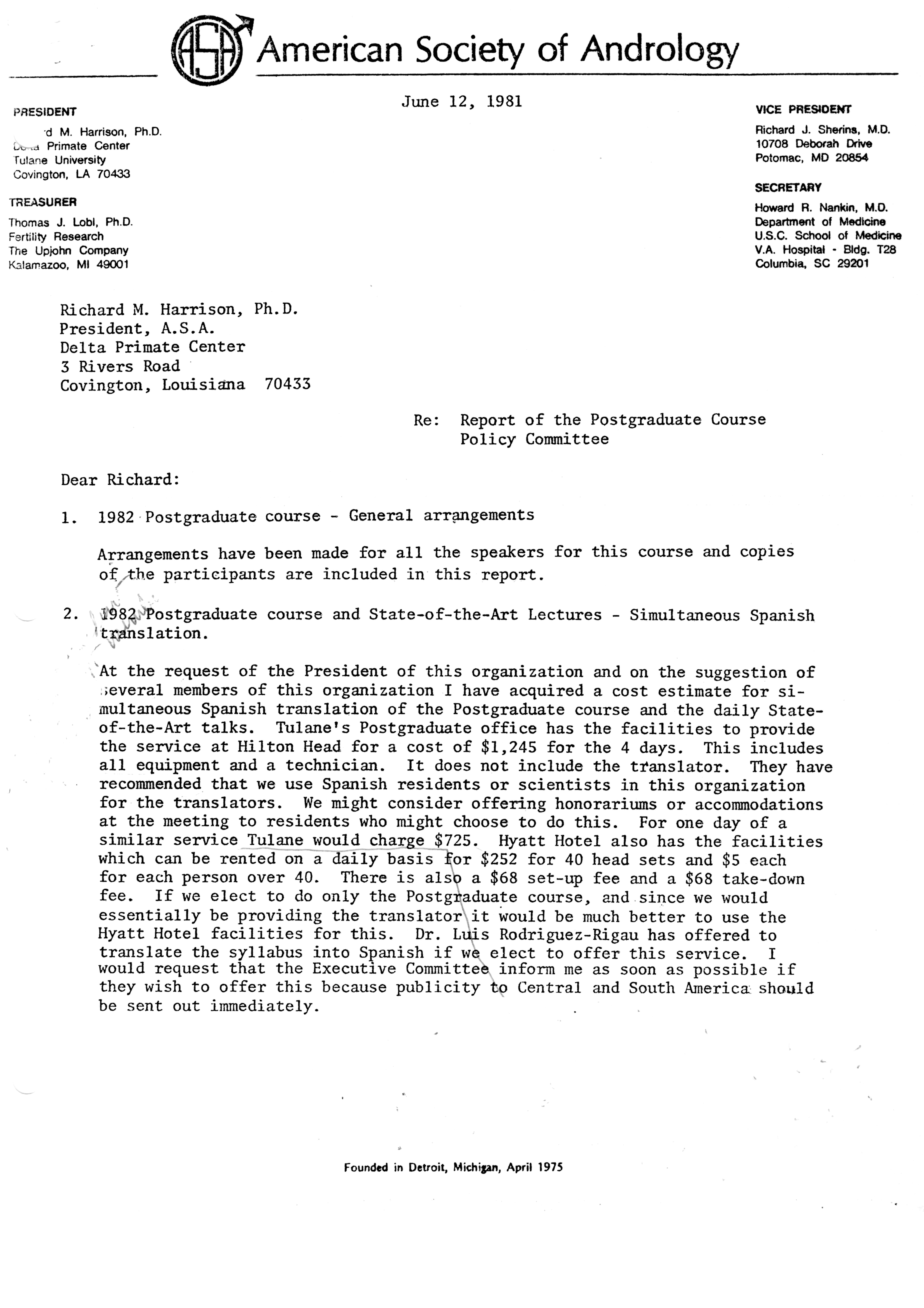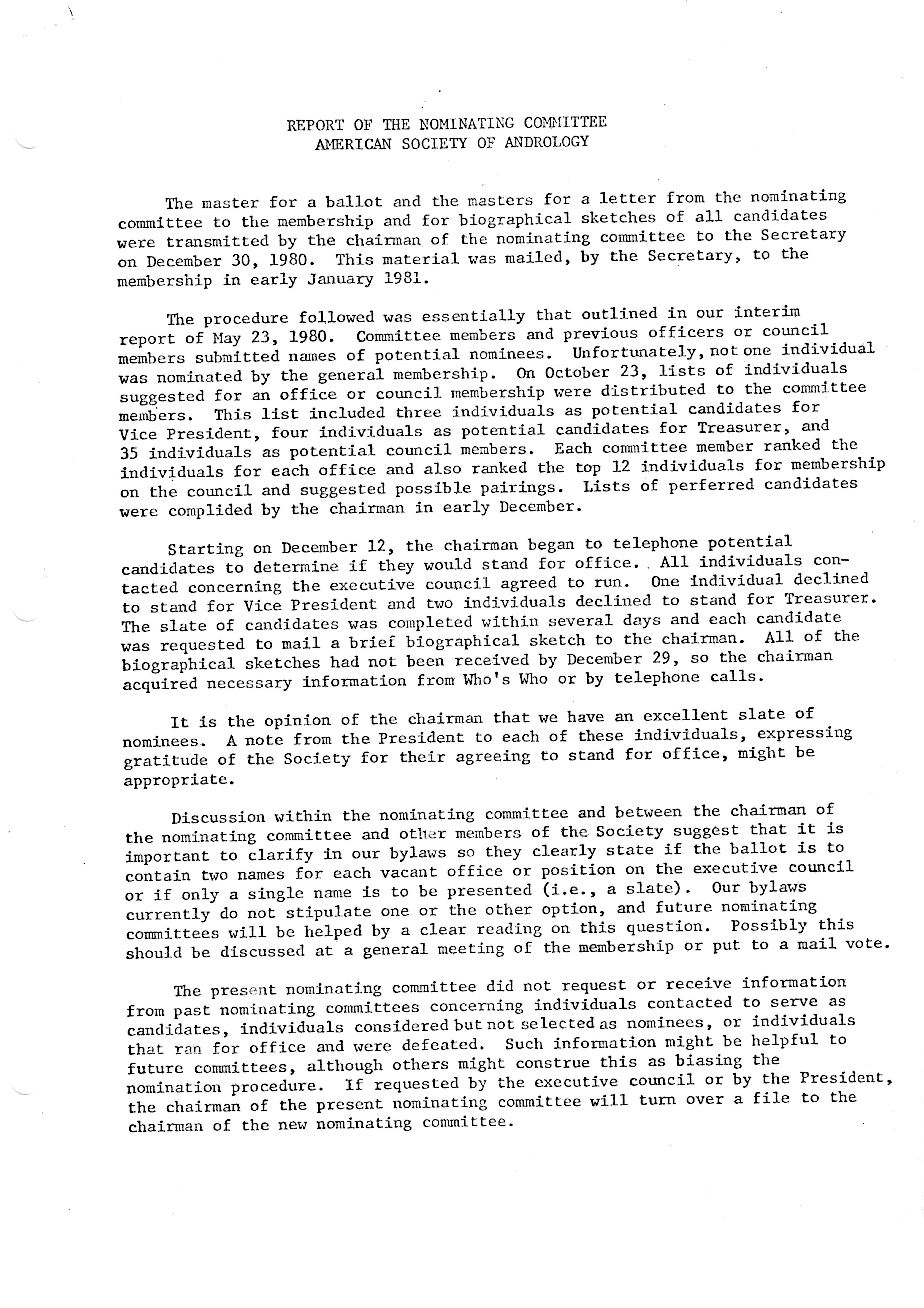 - "Executive Council Meetings of the American Society of Andrology, 1981", American Society of Andrology Collection, Iowa State University Library Digital Collections