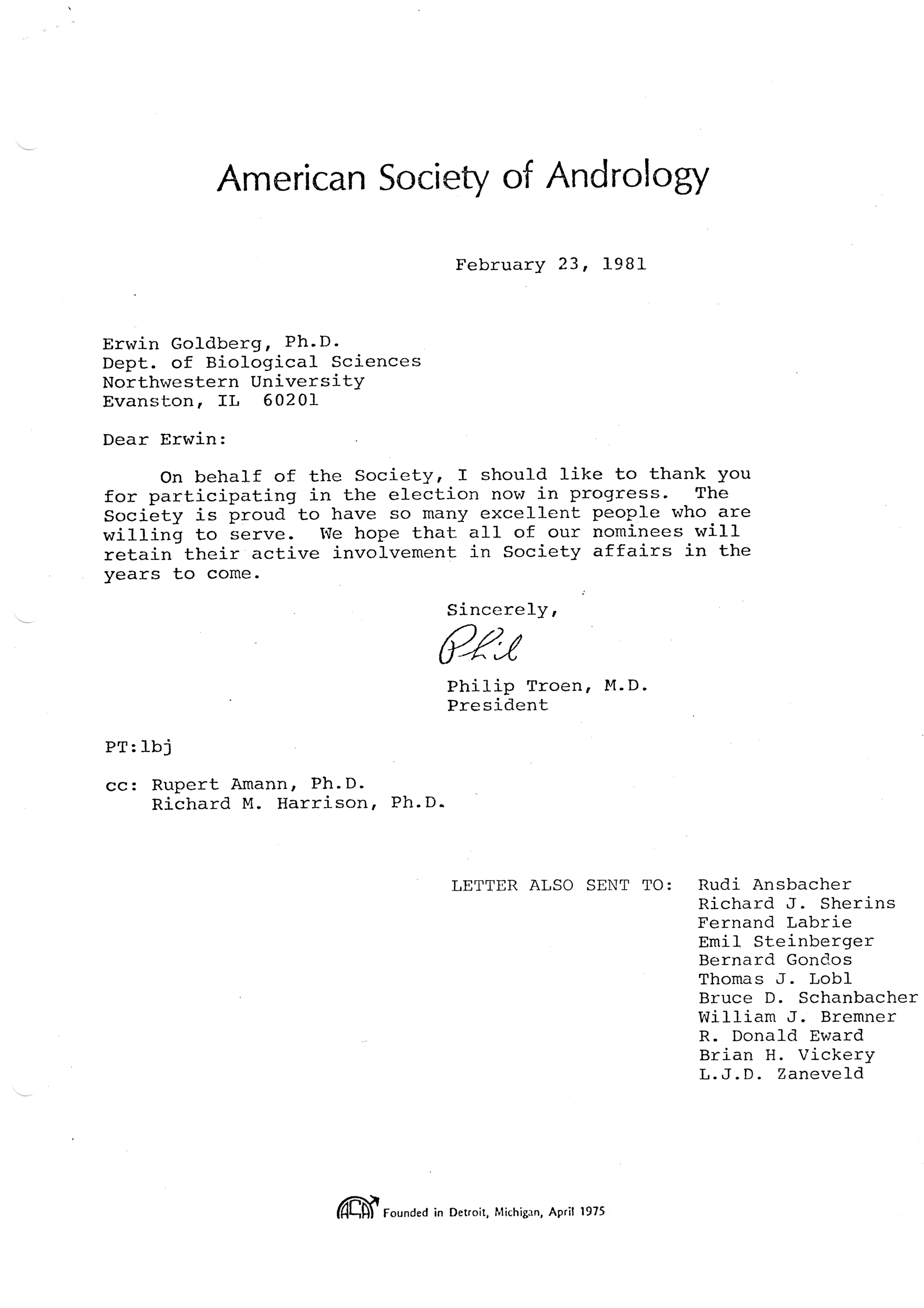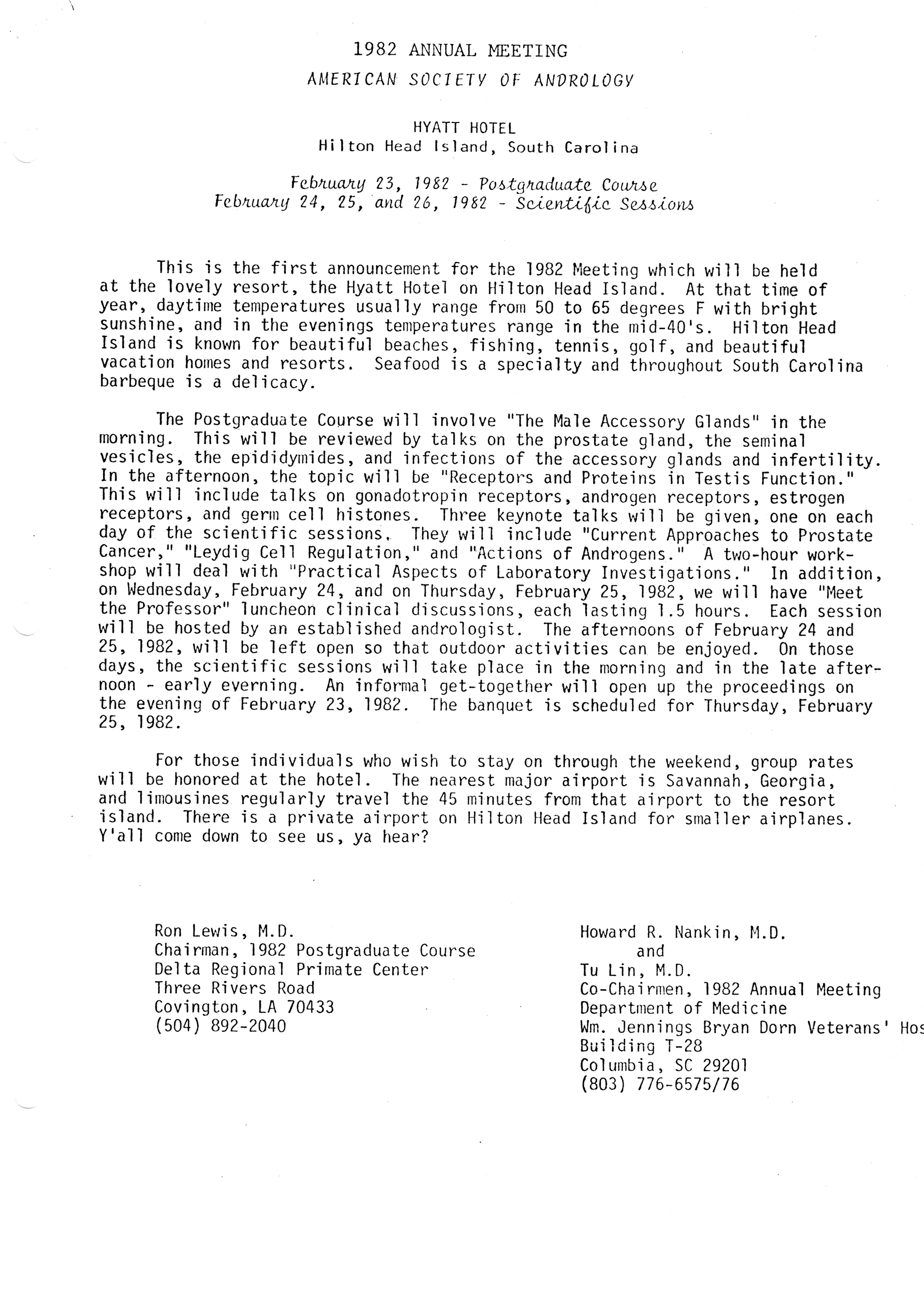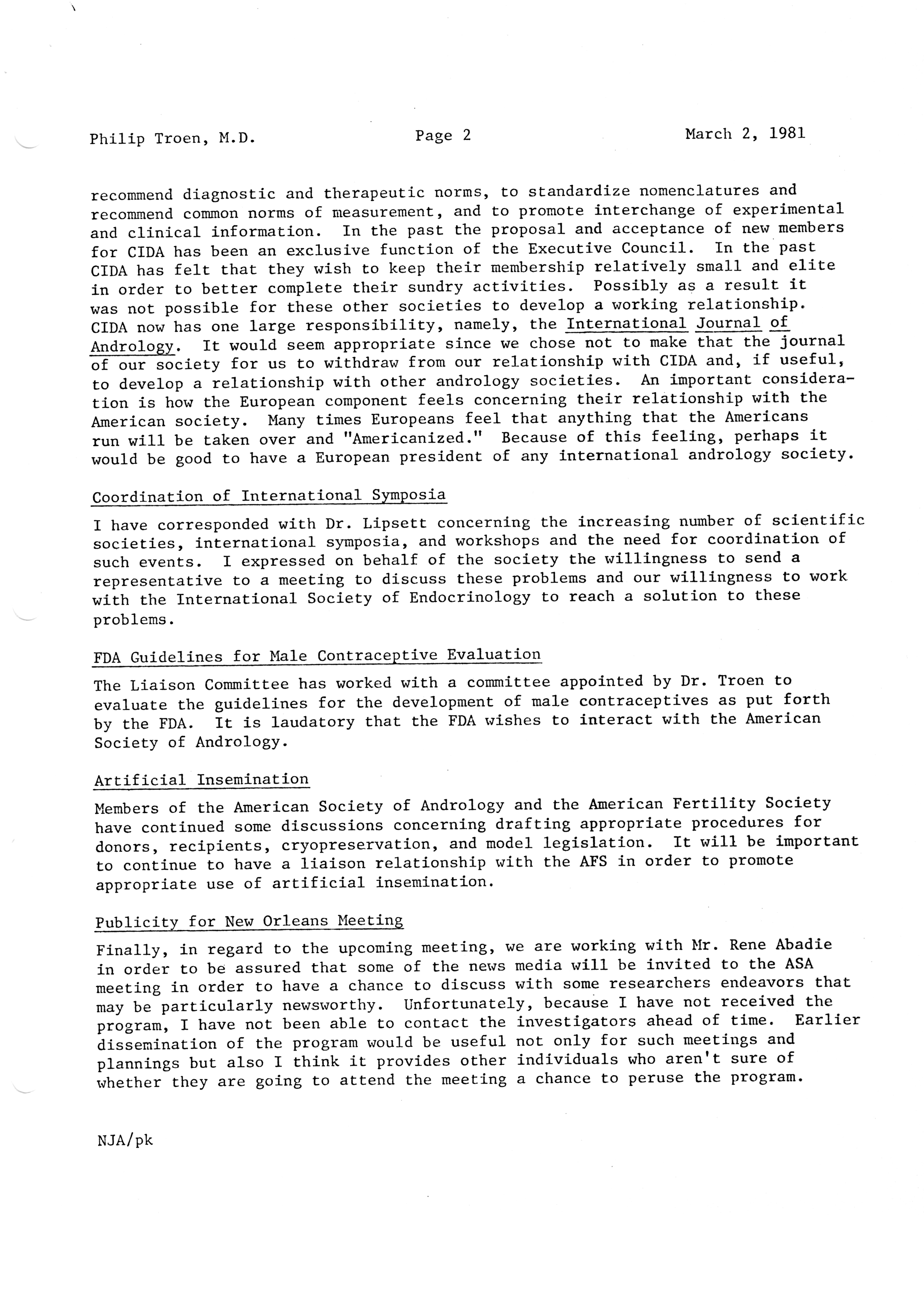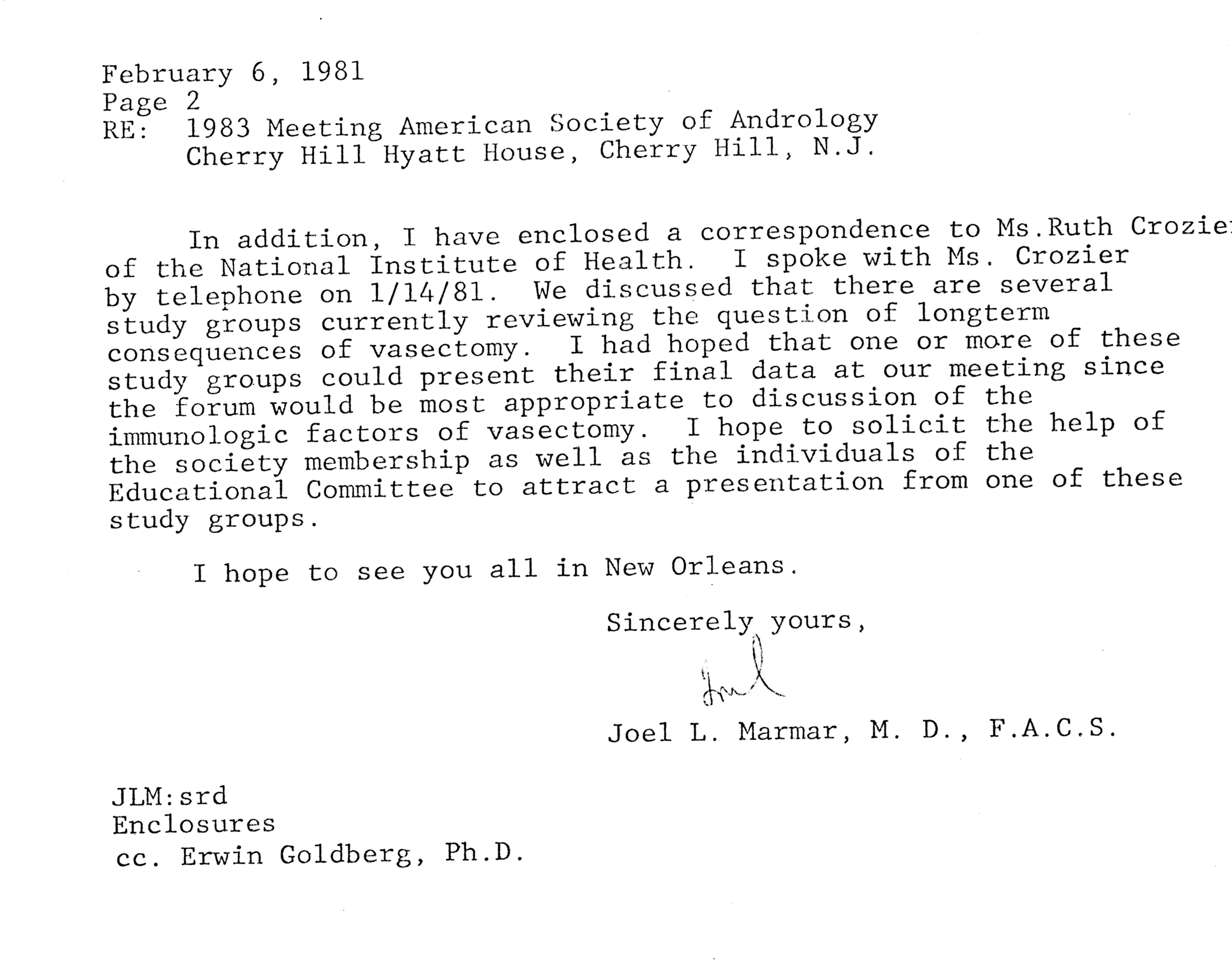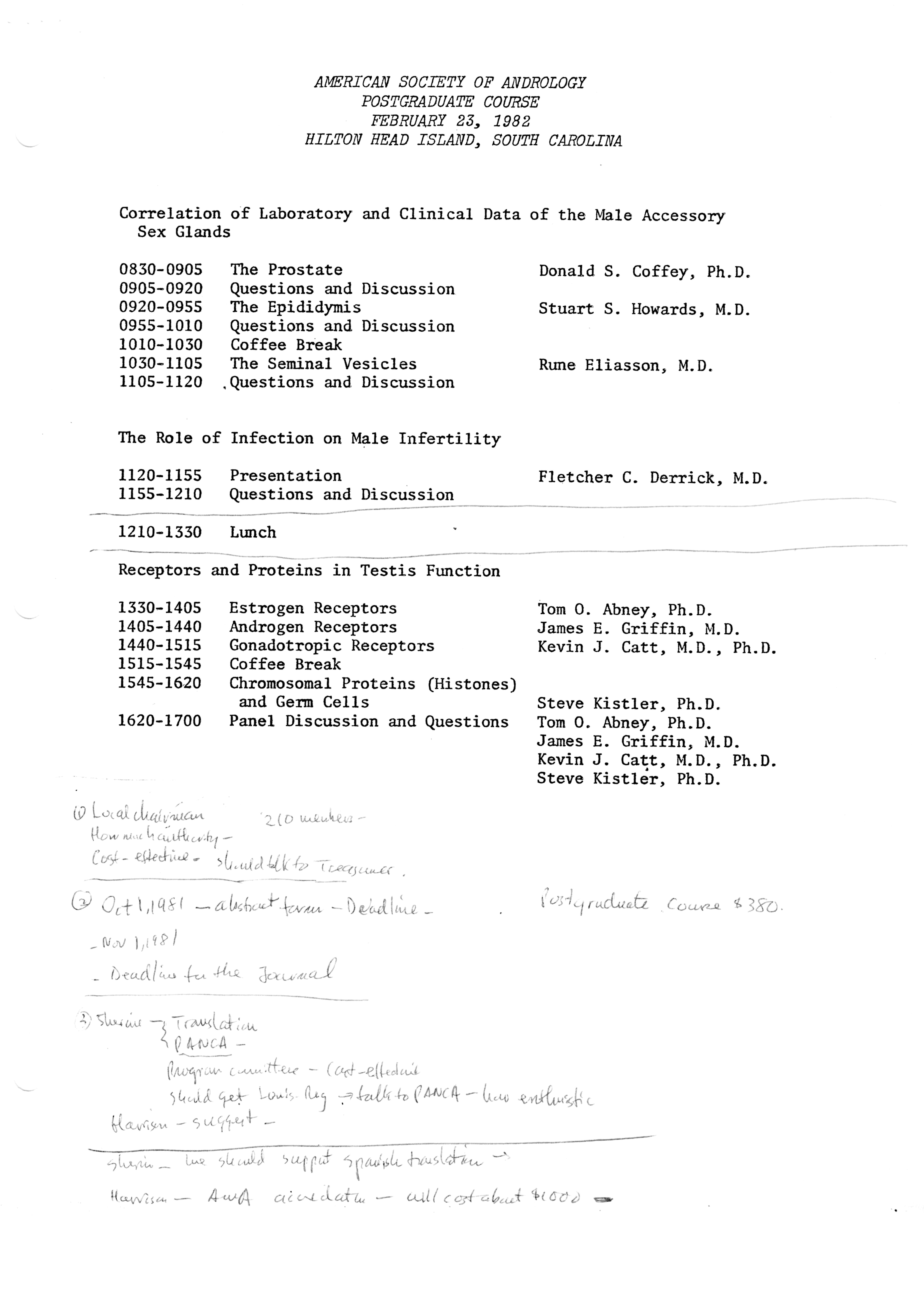 - "Executive Council Meetings of the American Society of Andrology, 1981", American Society of Andrology Collection, Iowa State University Library Digital Collections