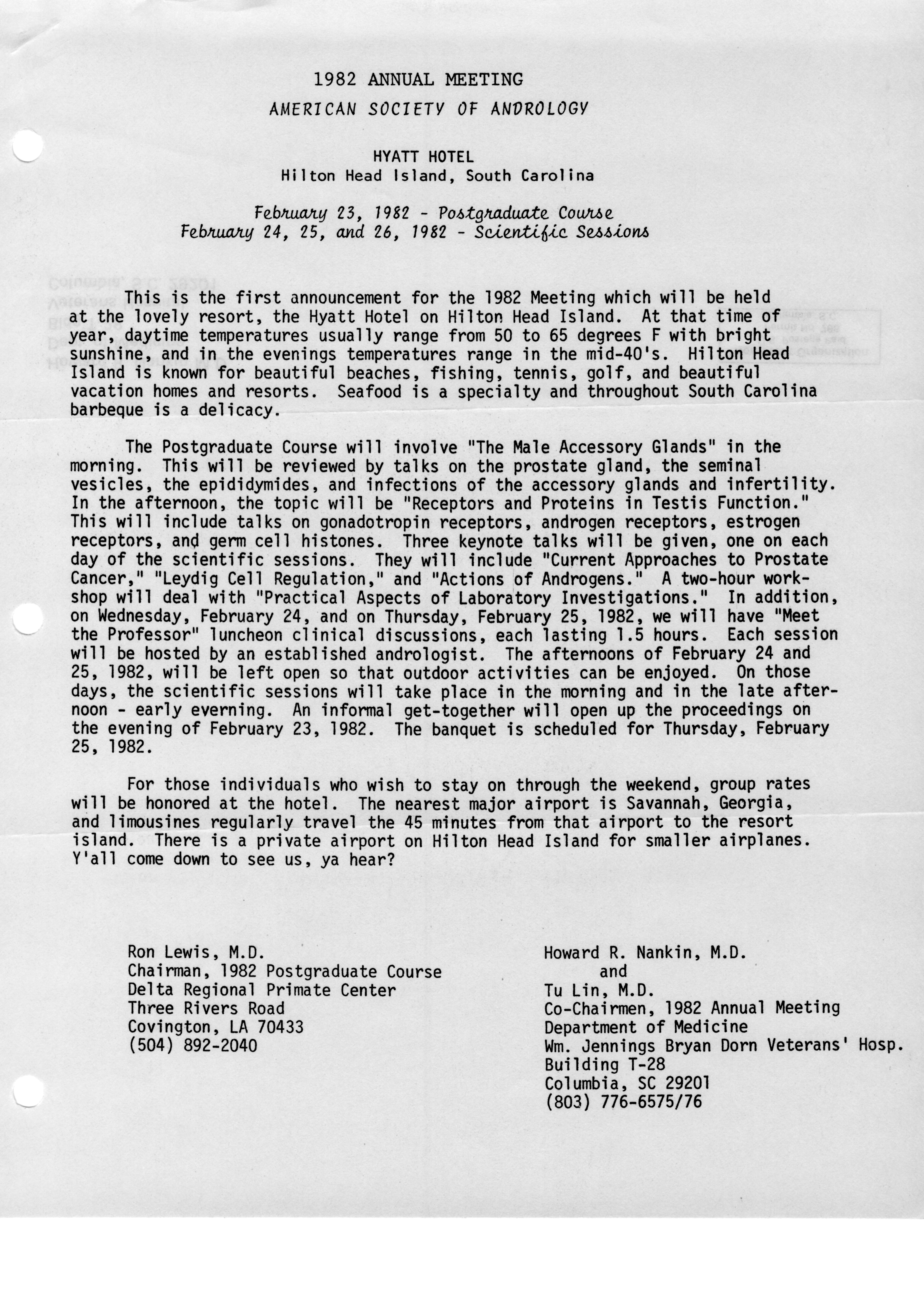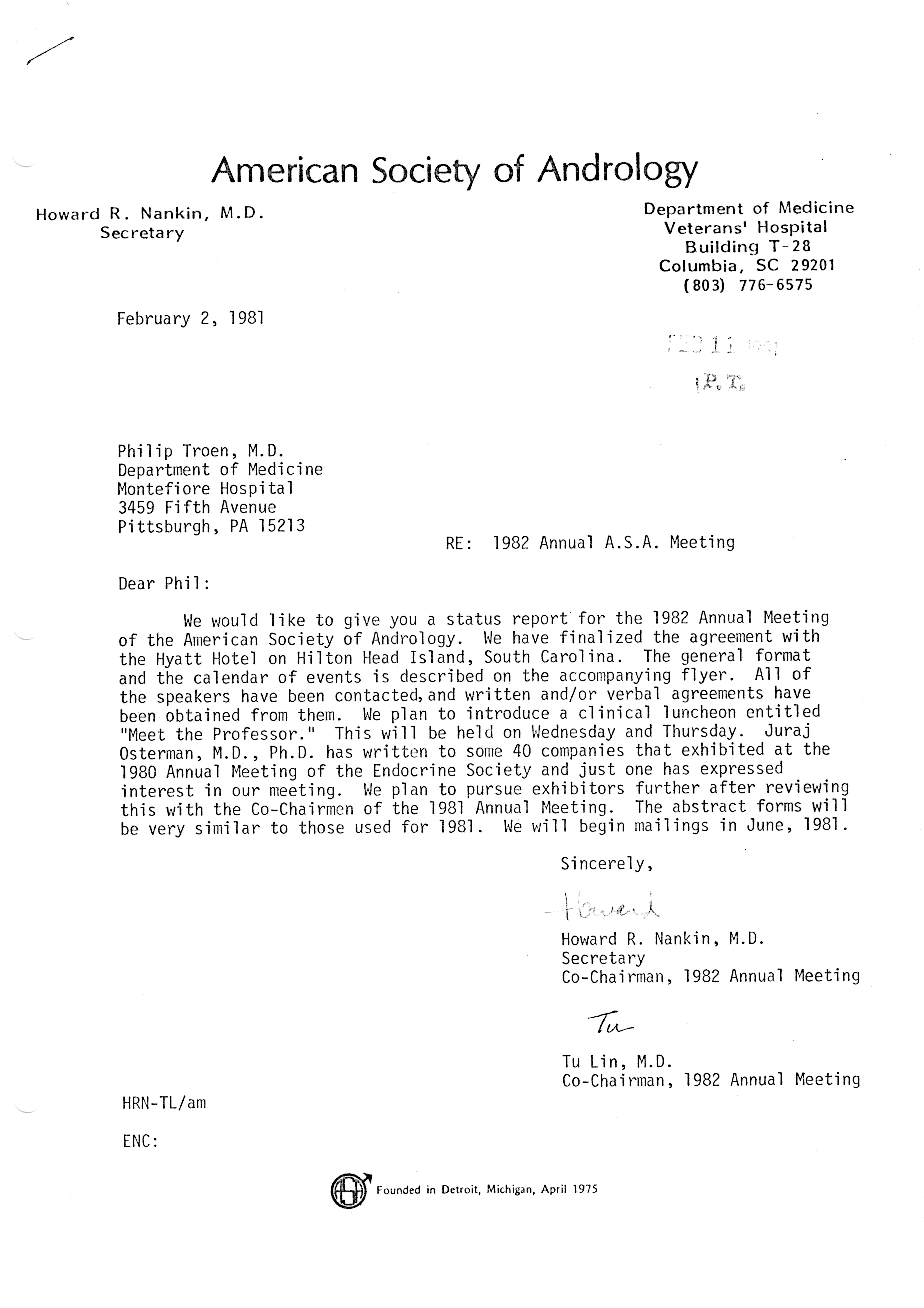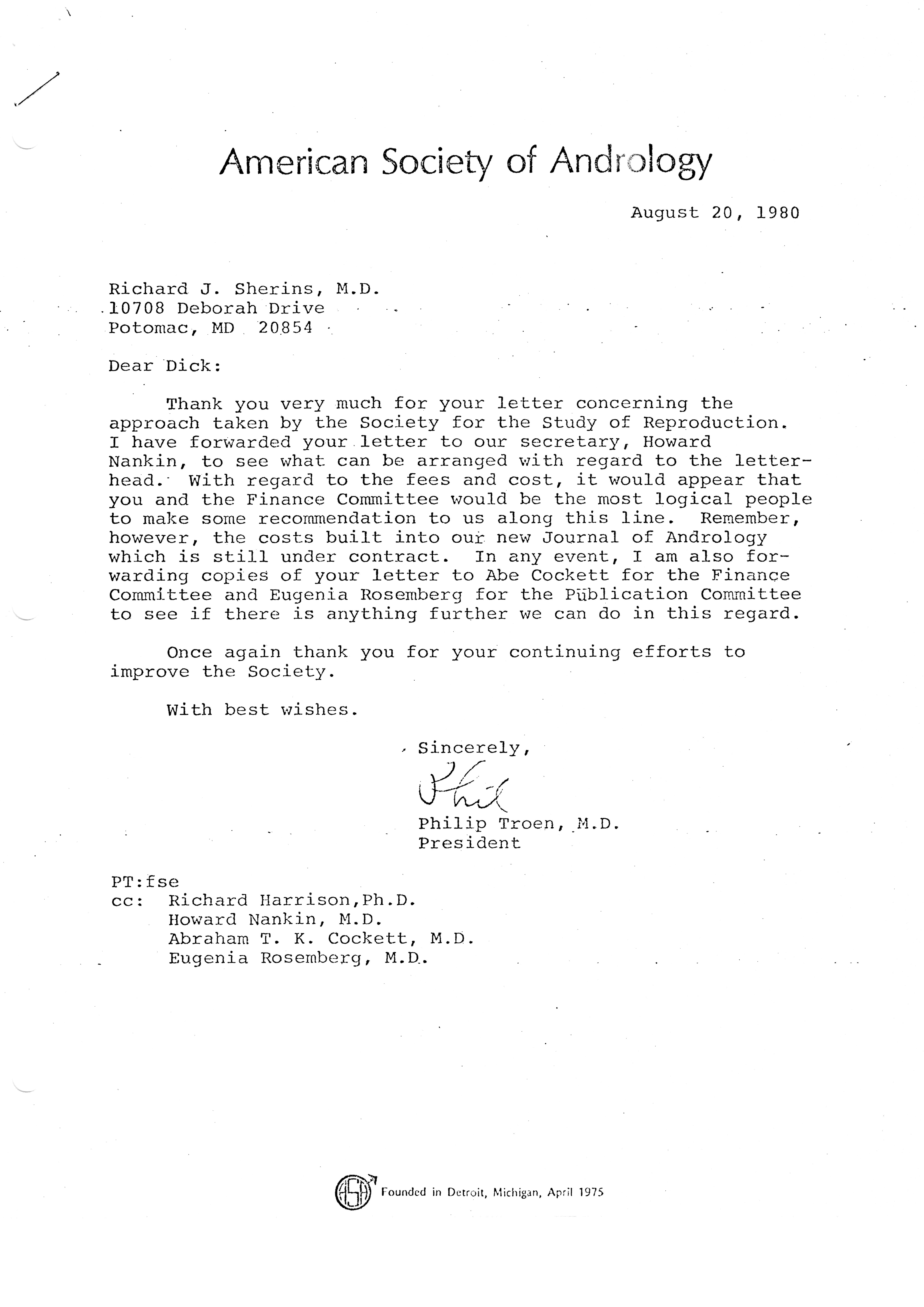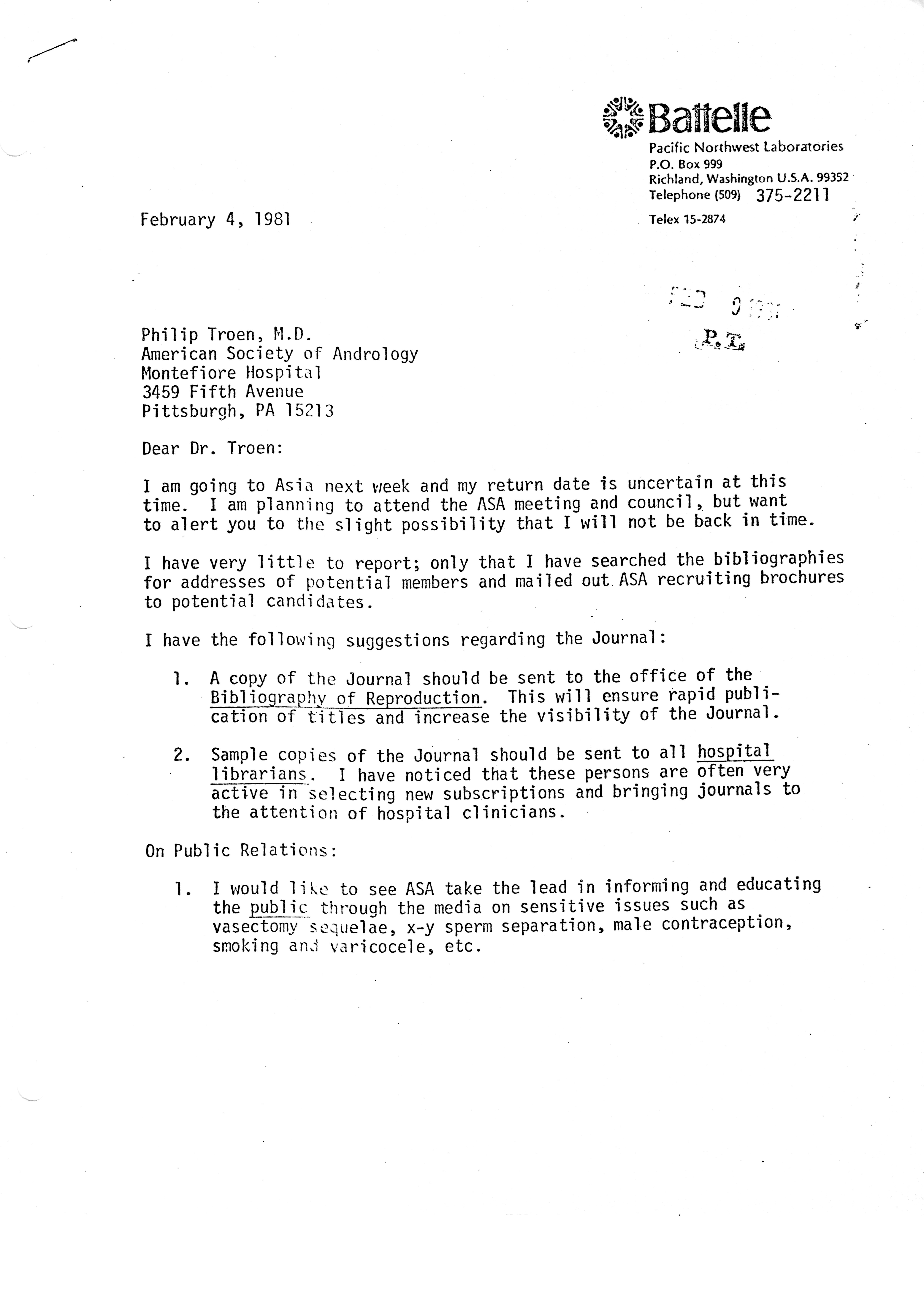 - "Executive Council Meetings of the American Society of Andrology, 1981", American Society of Andrology Collection, Iowa State University Library Digital Collections