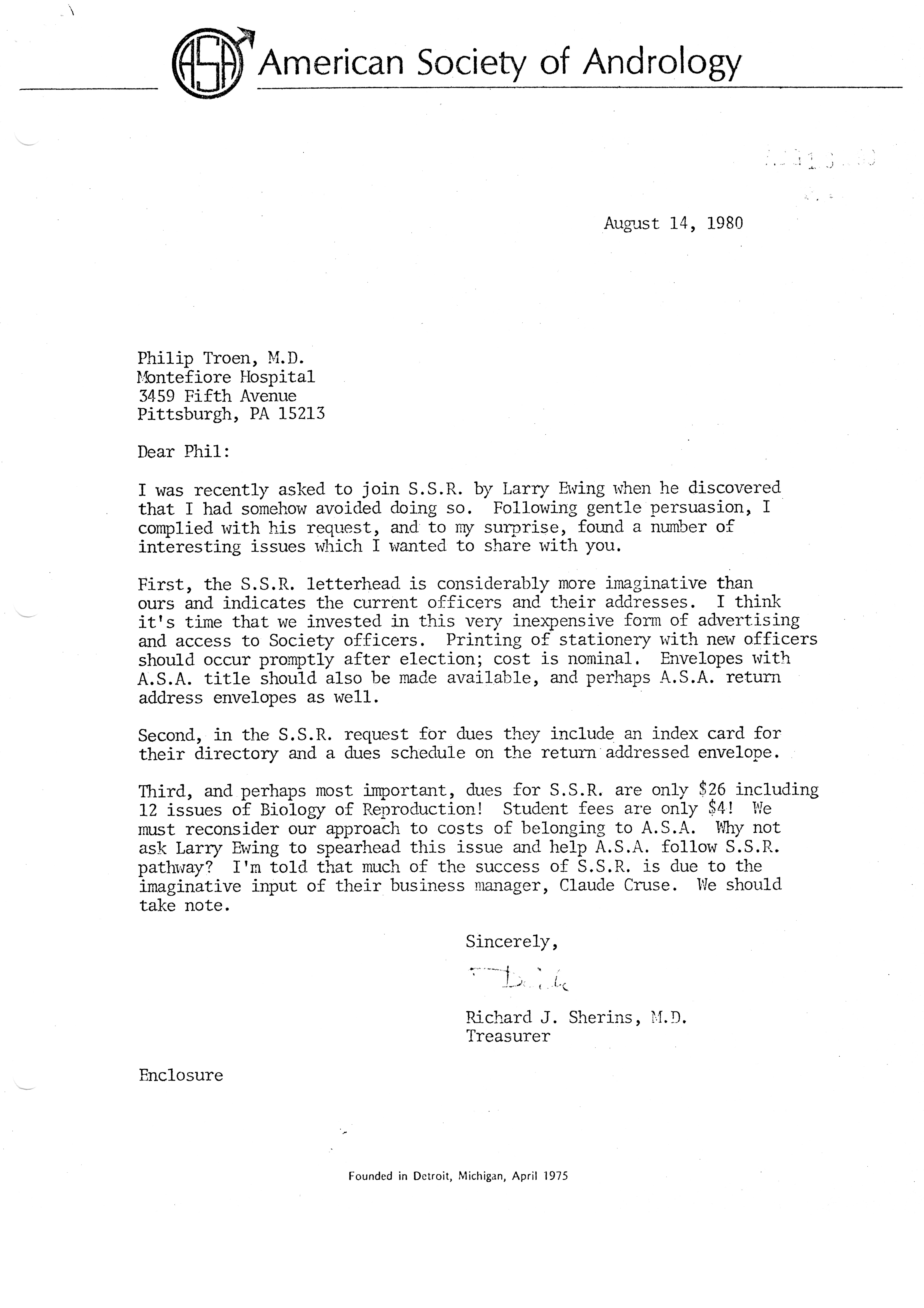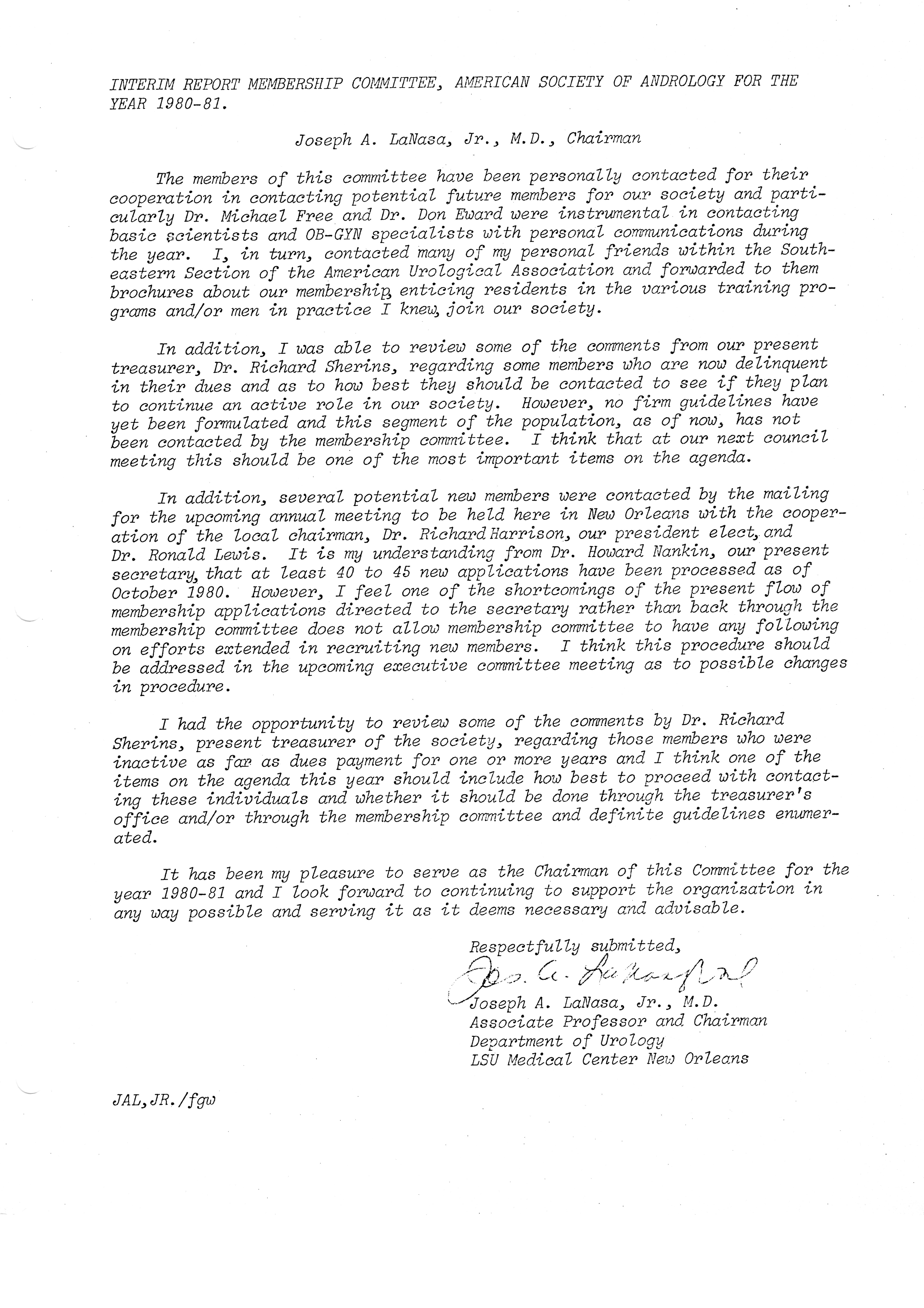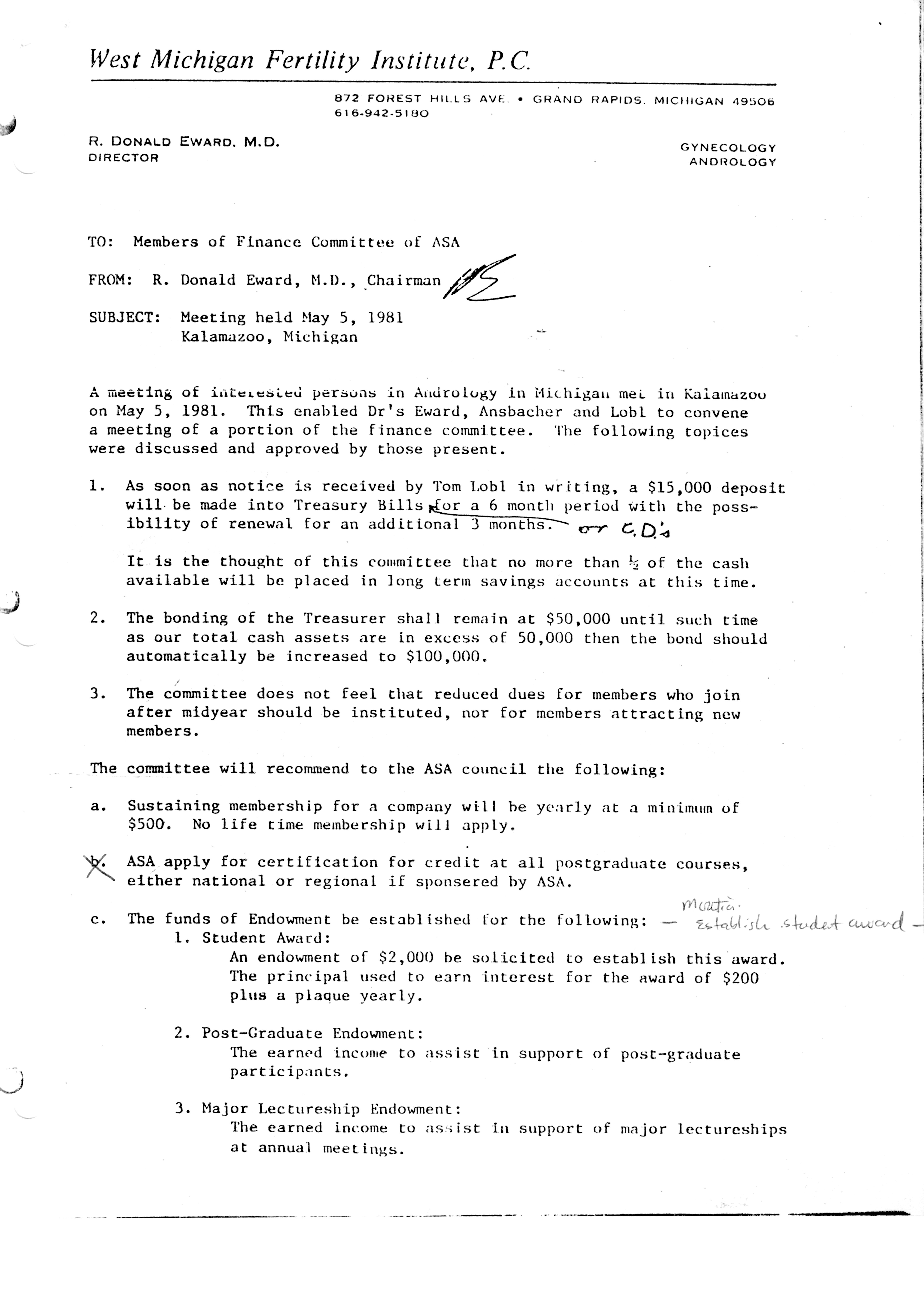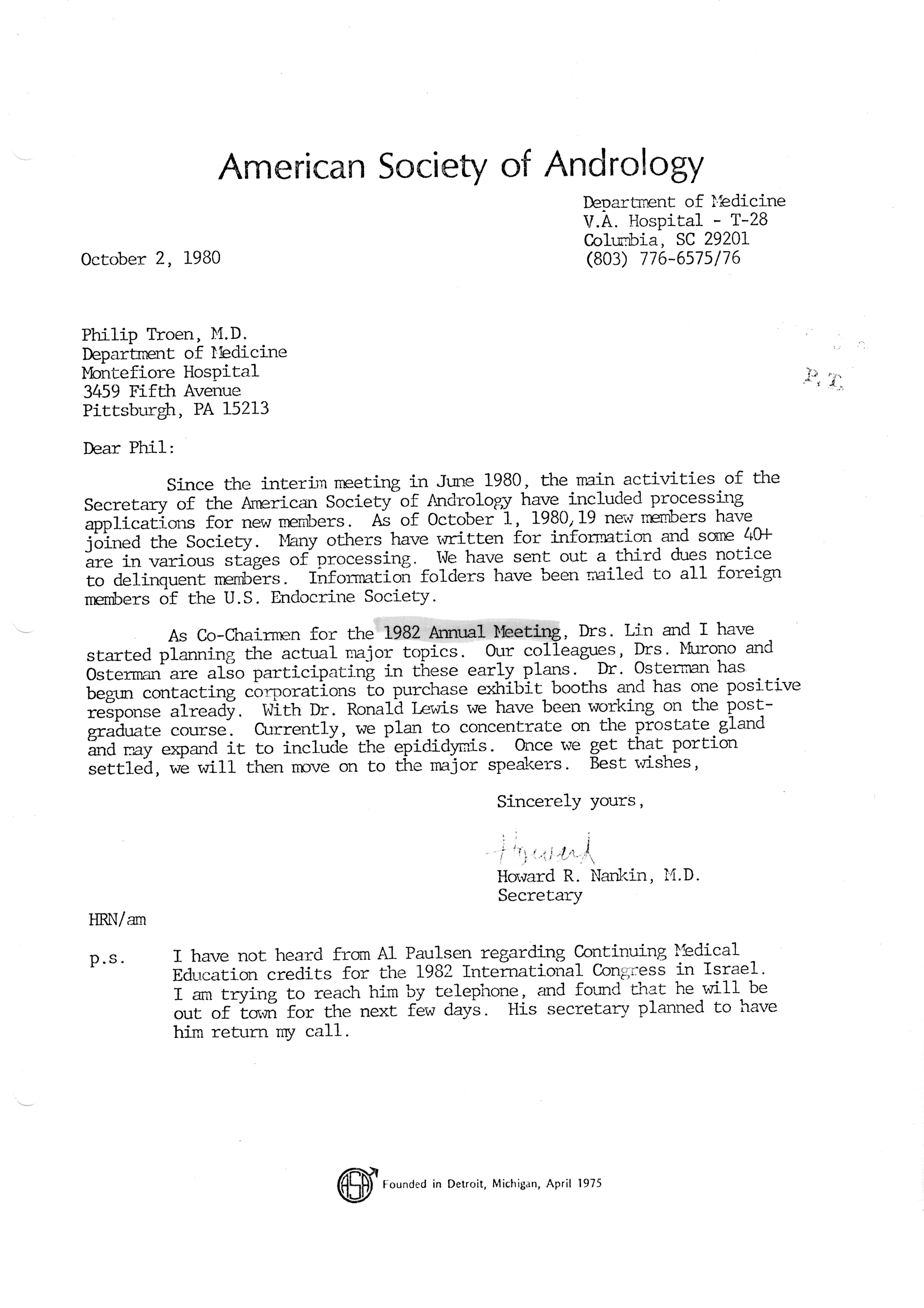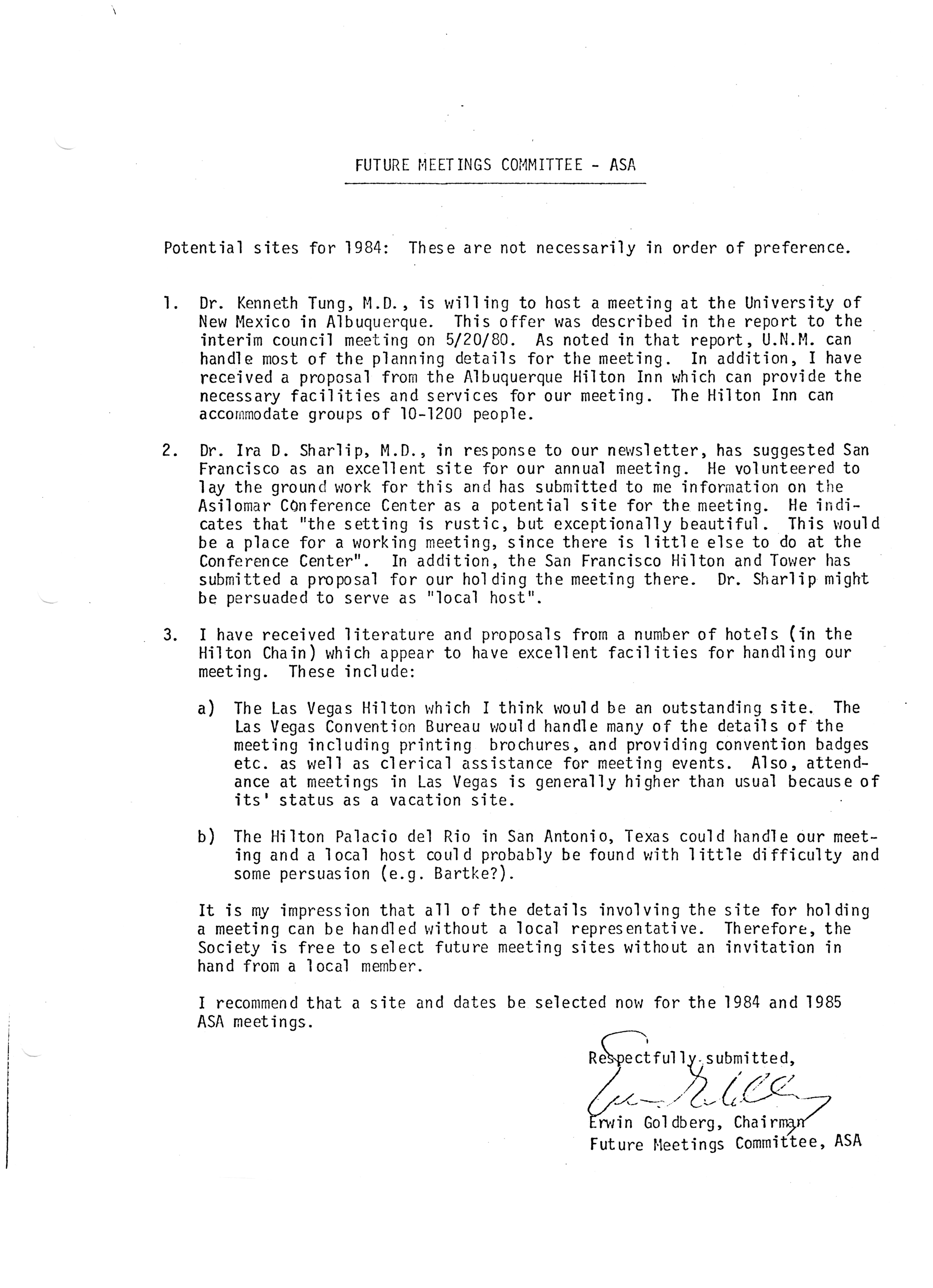 - "Executive Council Meetings of the American Society of Andrology, 1981", American Society of Andrology Collection, Iowa State University Library Digital Collections