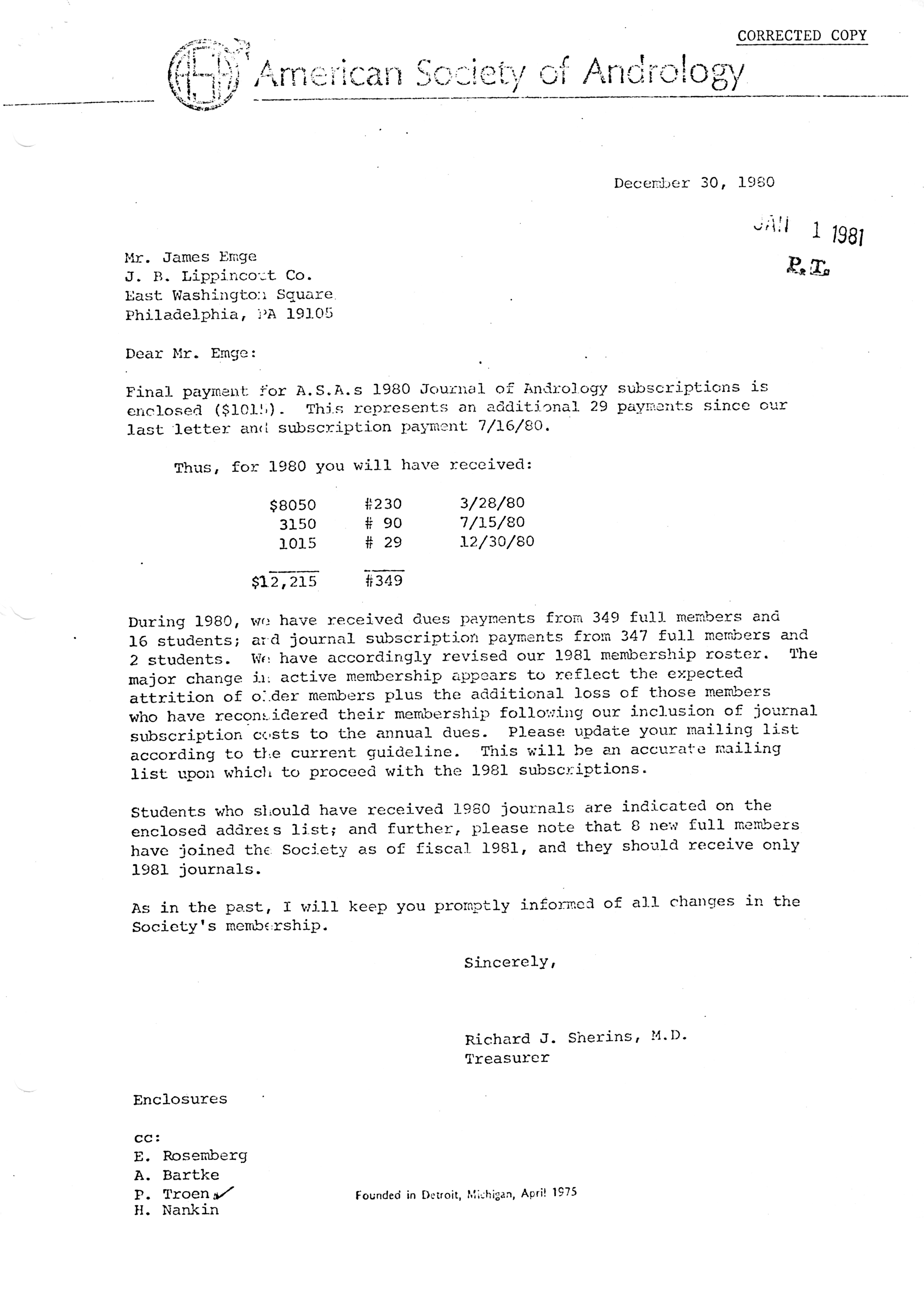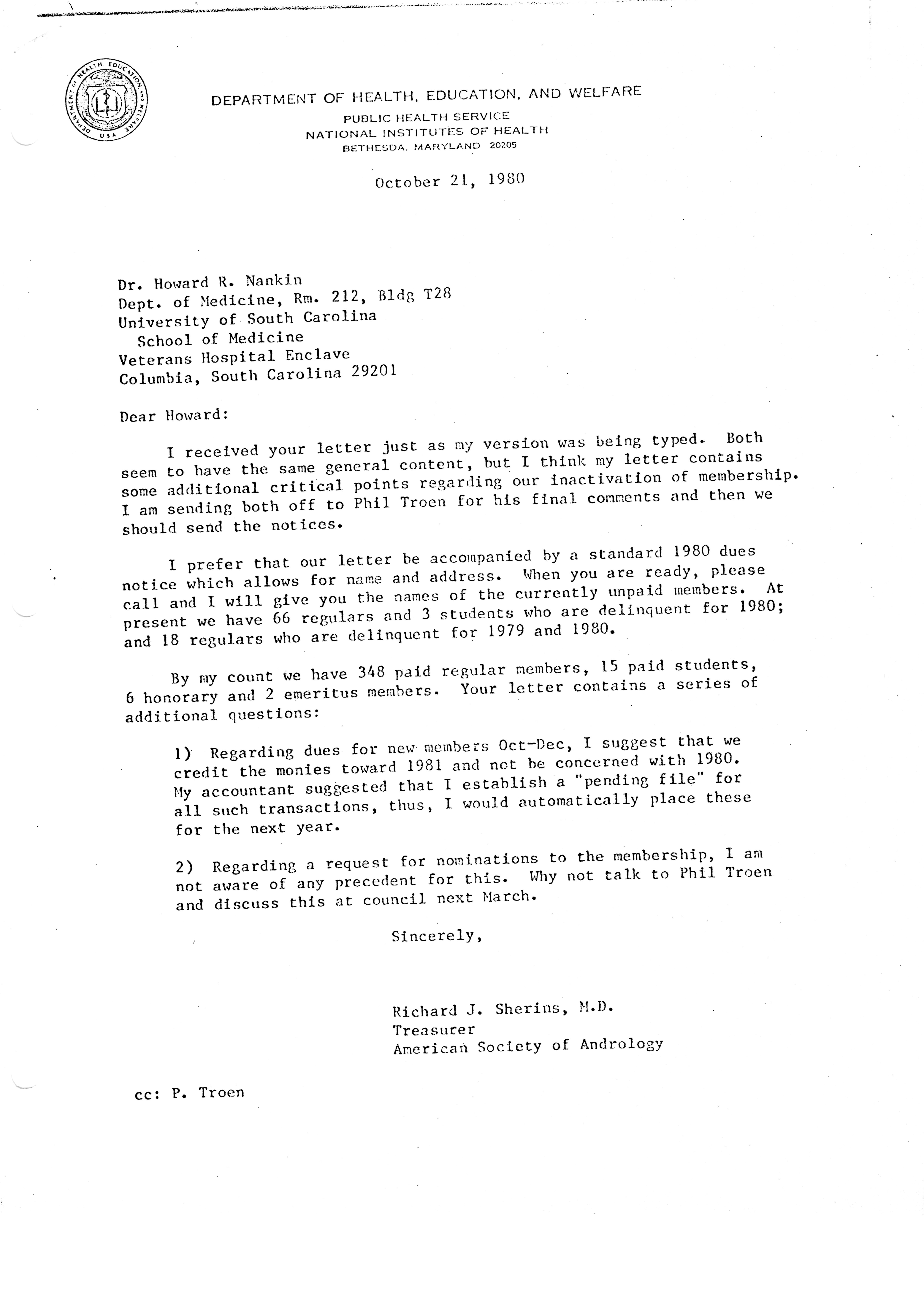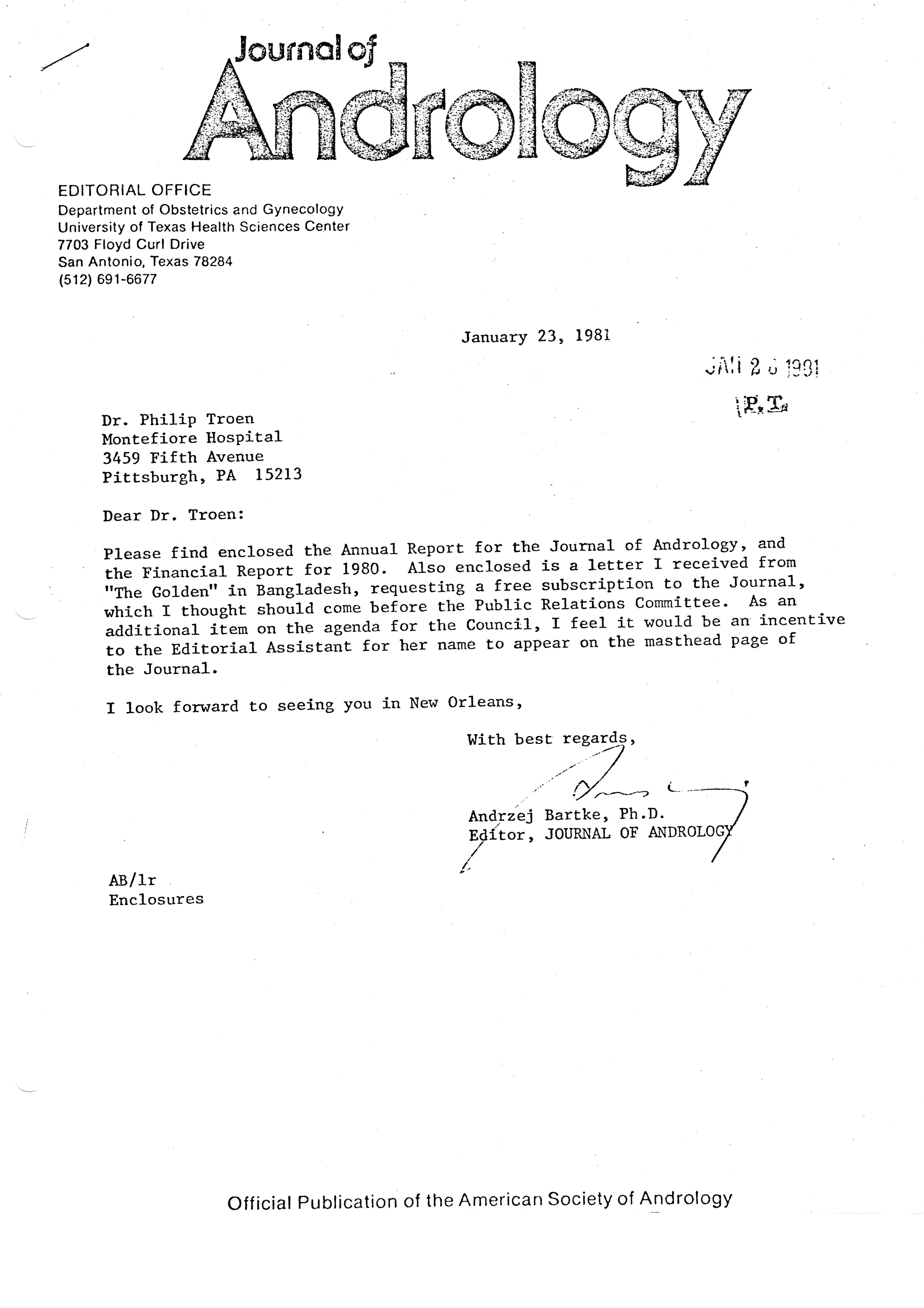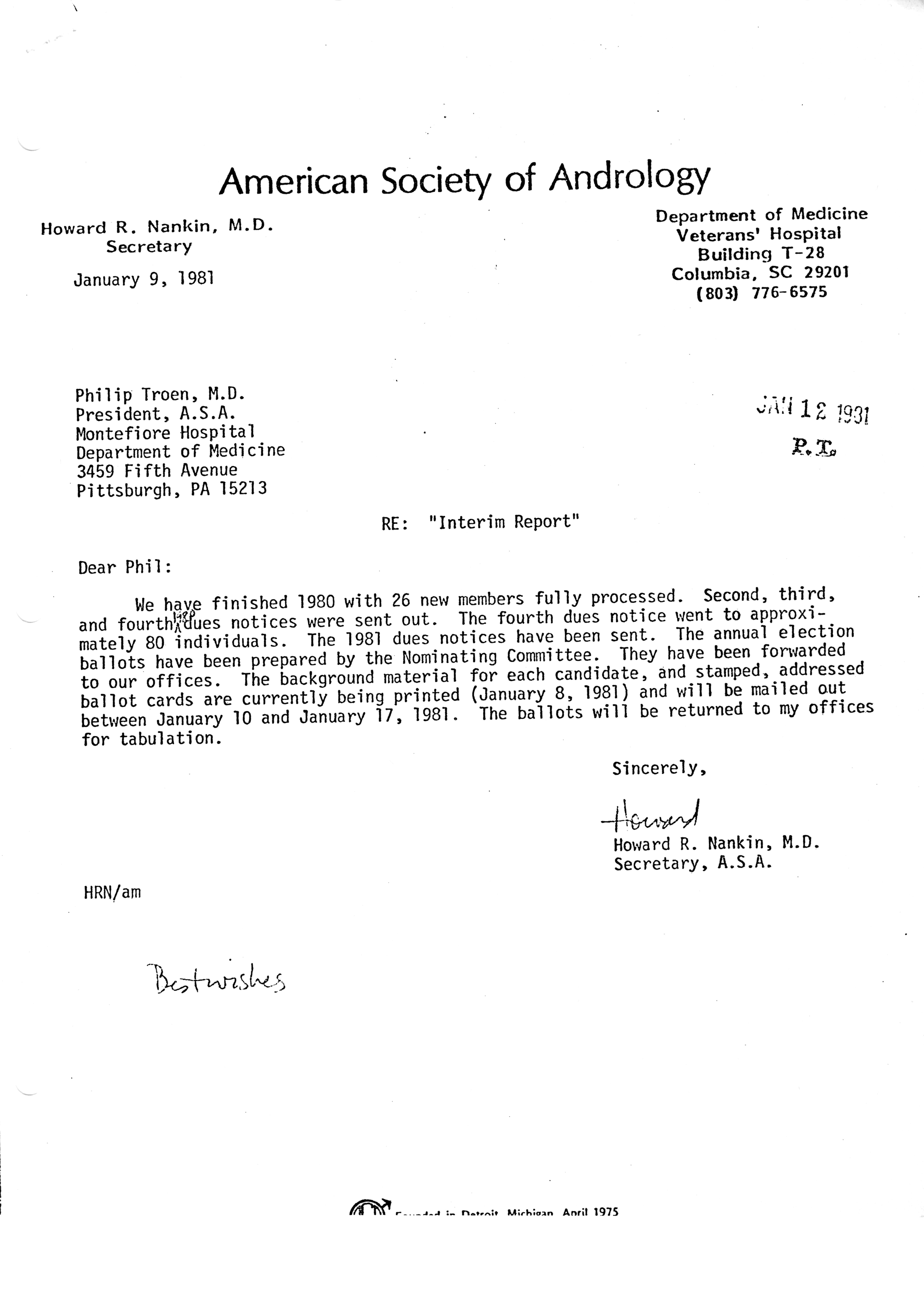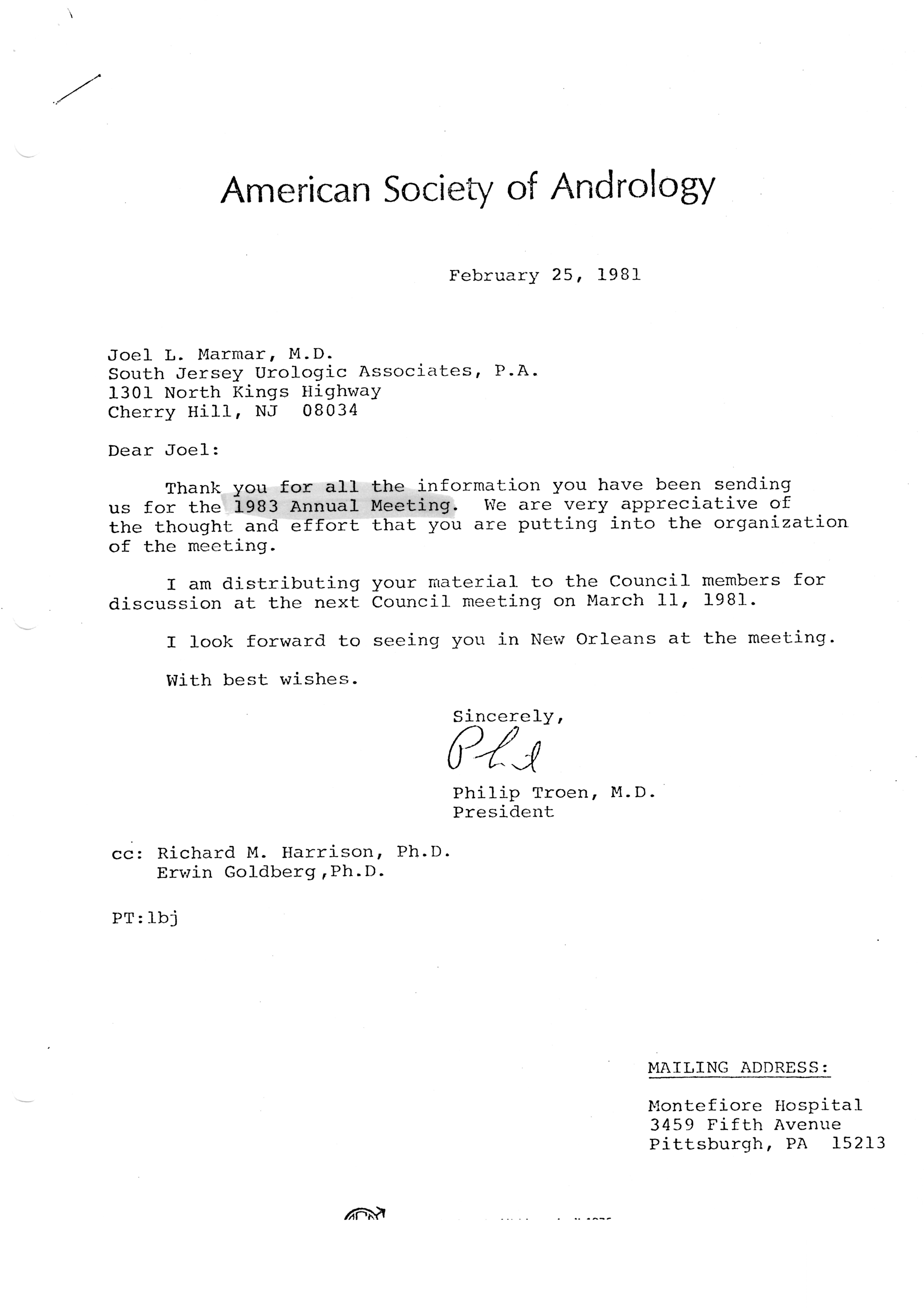 - "Executive Council Meetings of the American Society of Andrology, 1981", American Society of Andrology Collection, Iowa State University Library Digital Collections