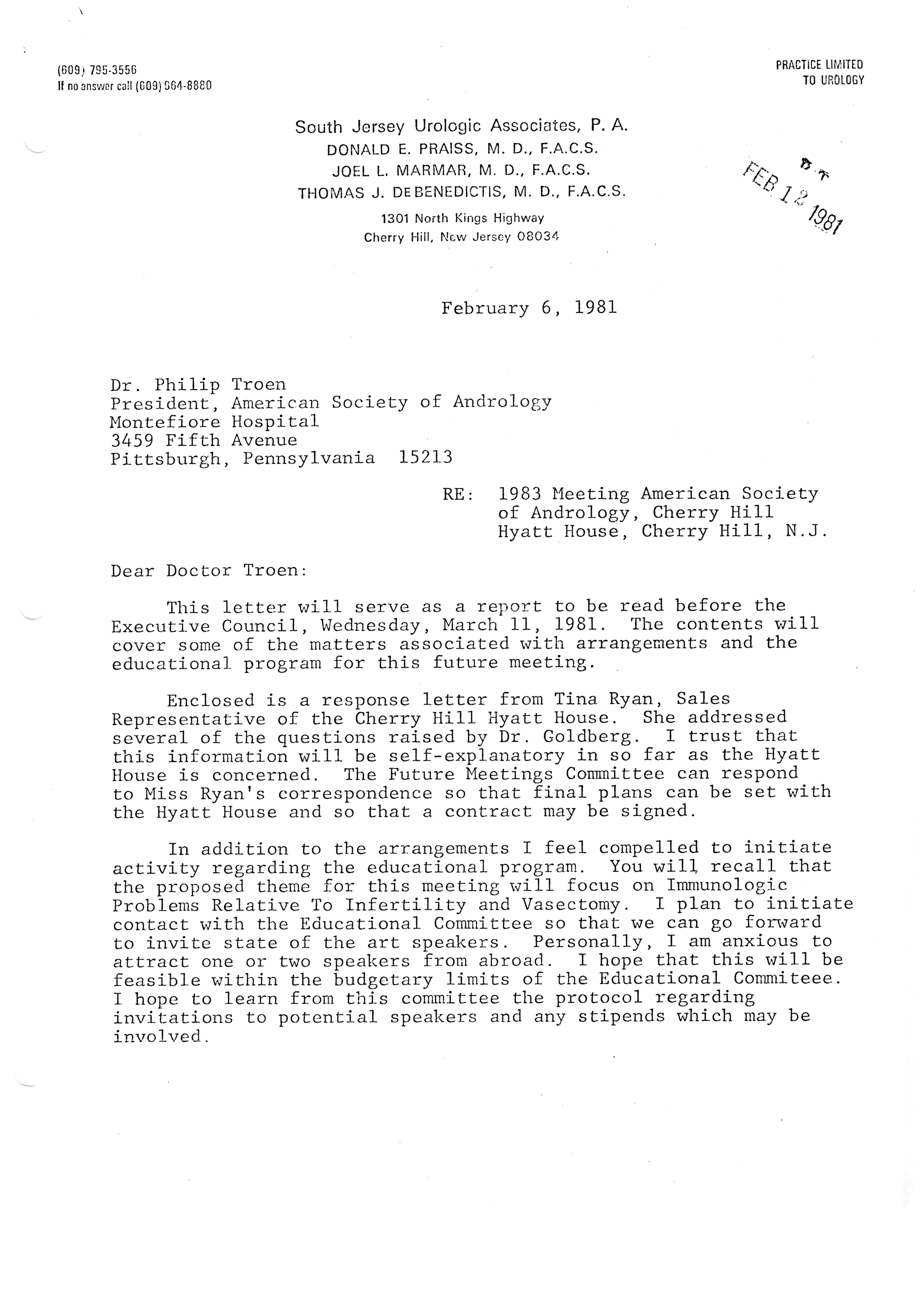 - Executive Council Meetings of the American Society of Andrology, 1981