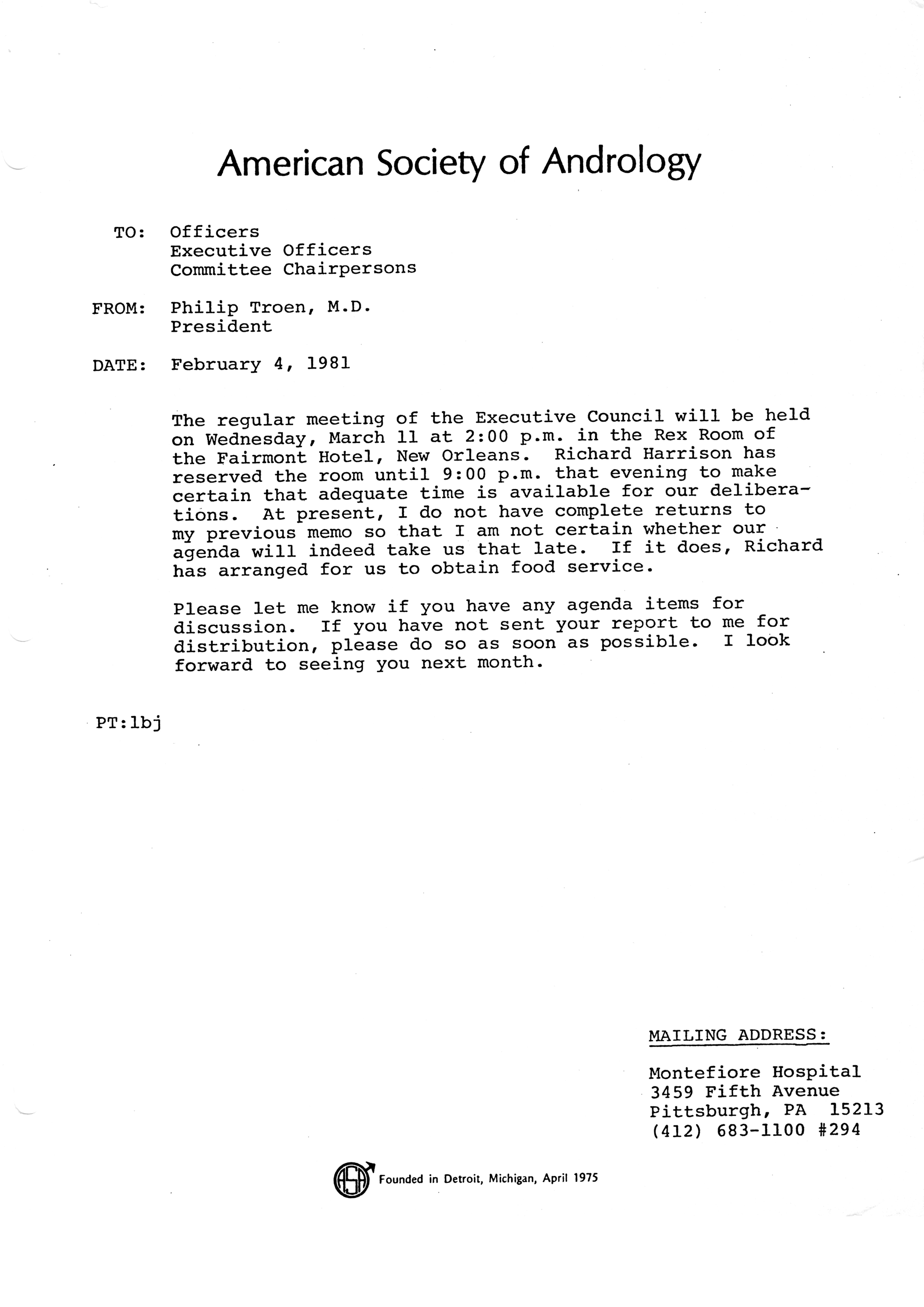 Executive Council Meetings of the American Society of Andrology, 1981
