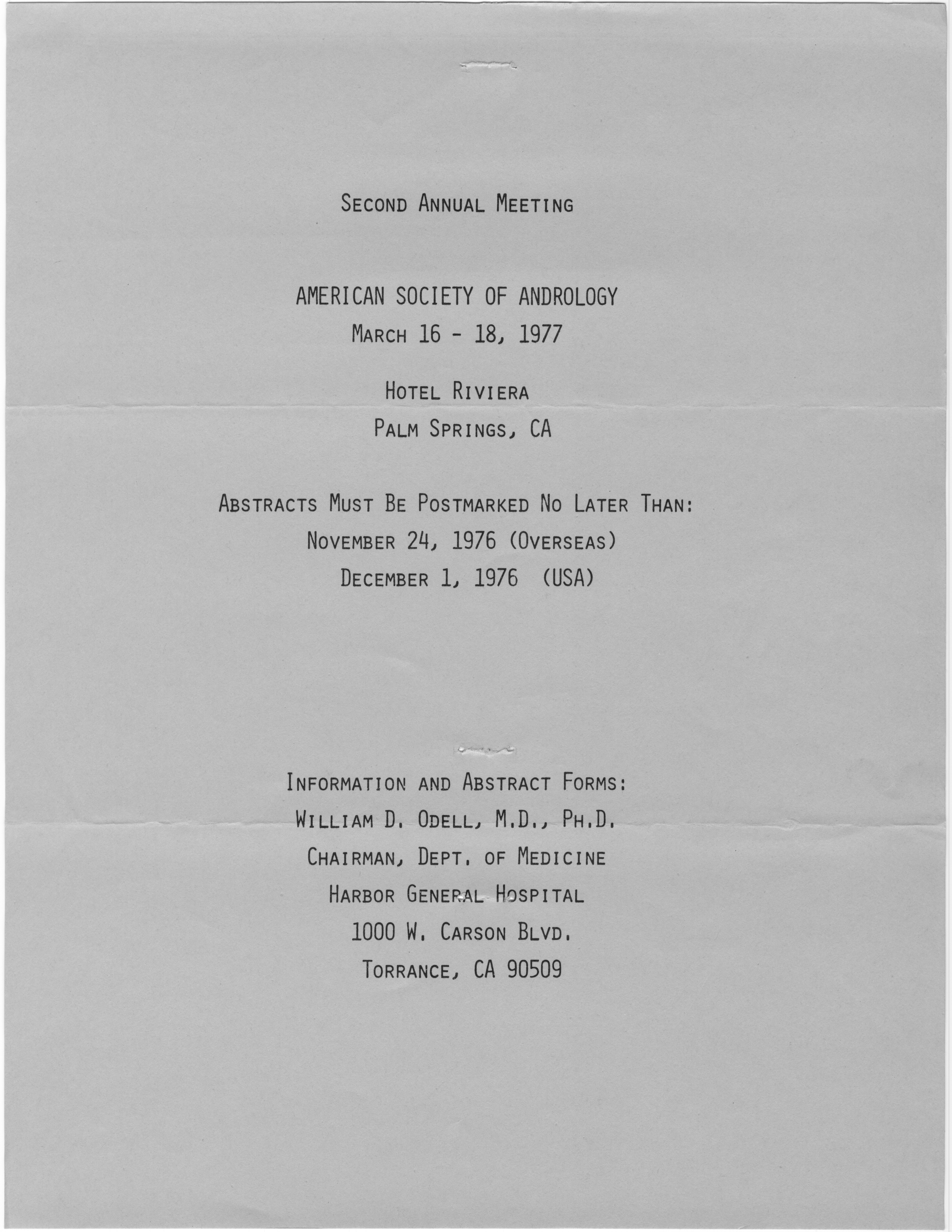 Annual Meeting of the American Society of Andrology, 1977 Item Info