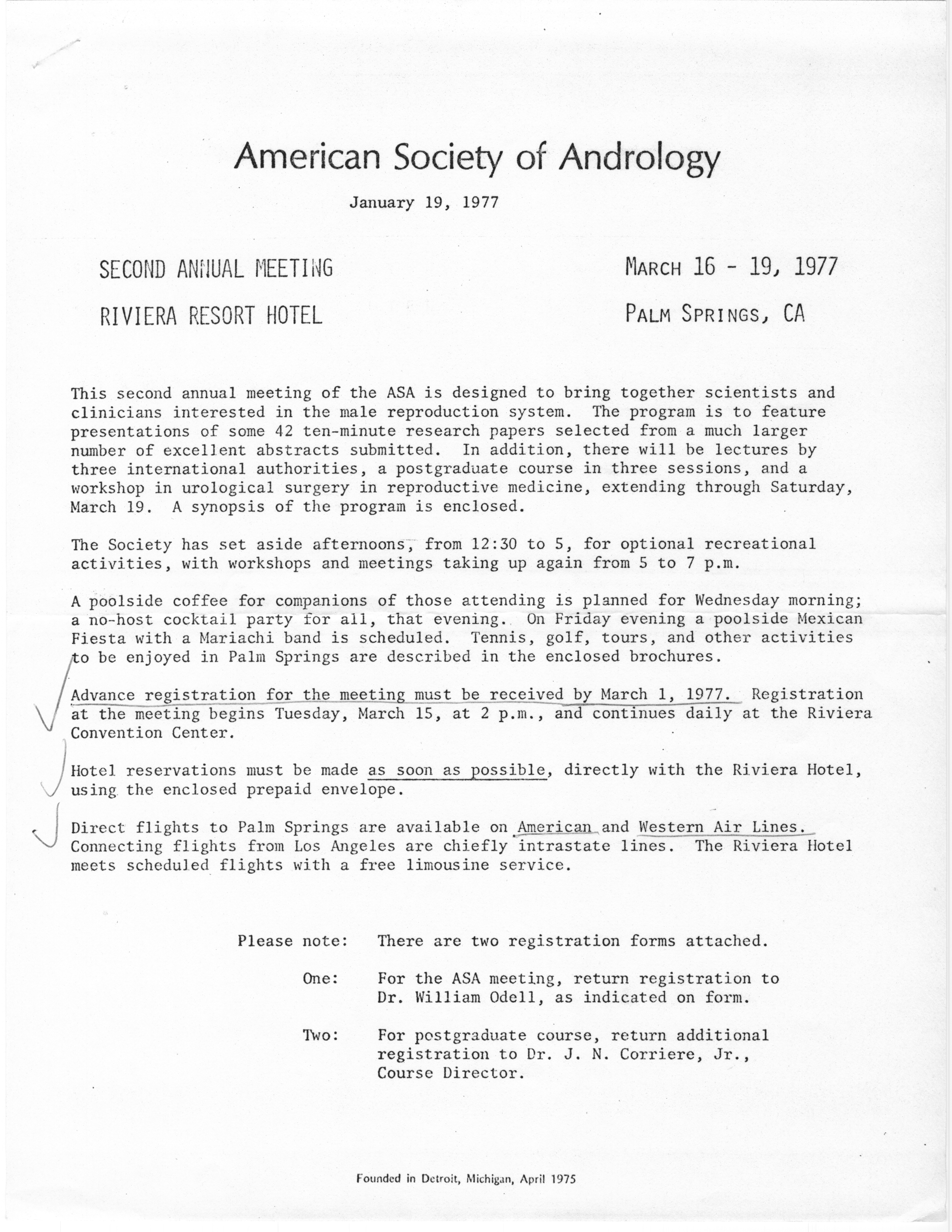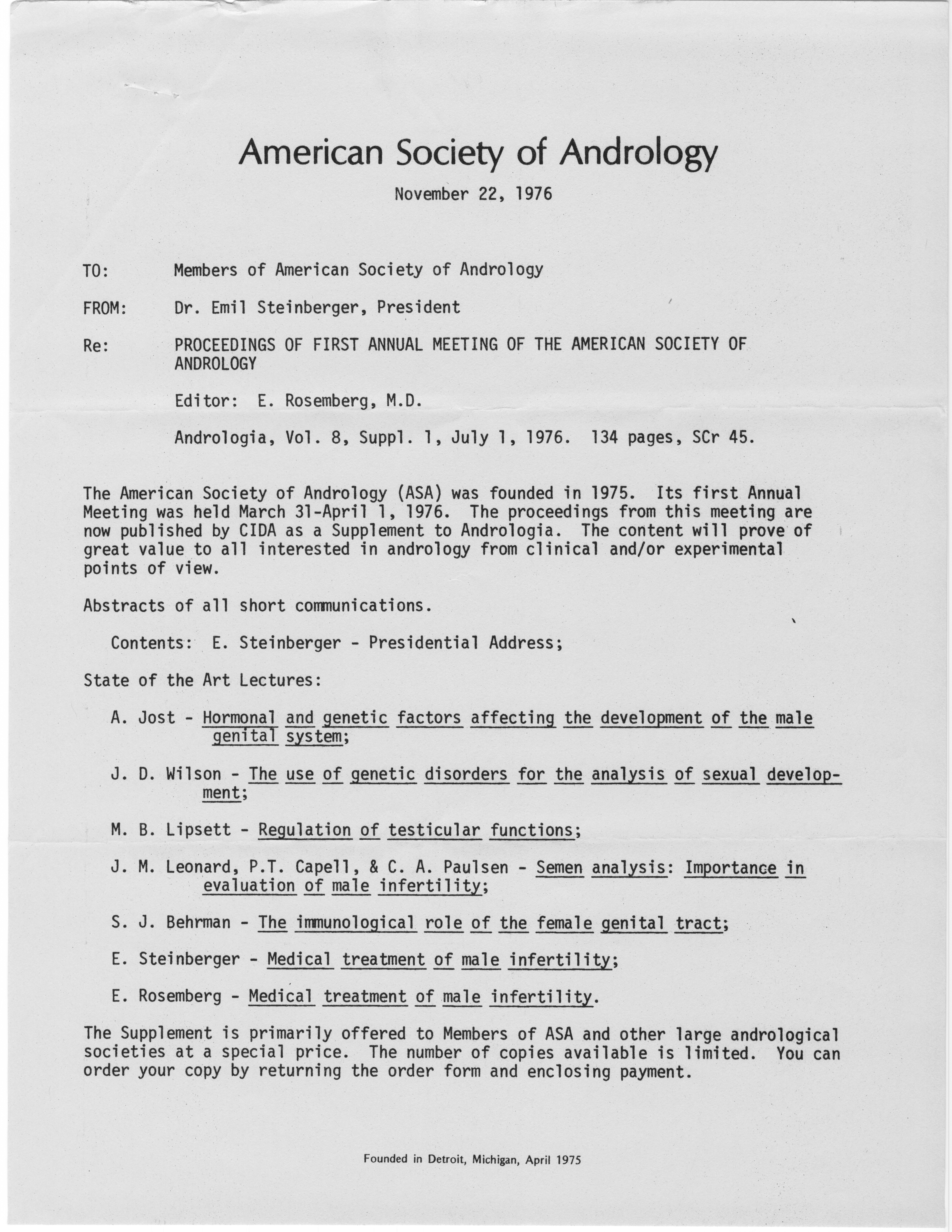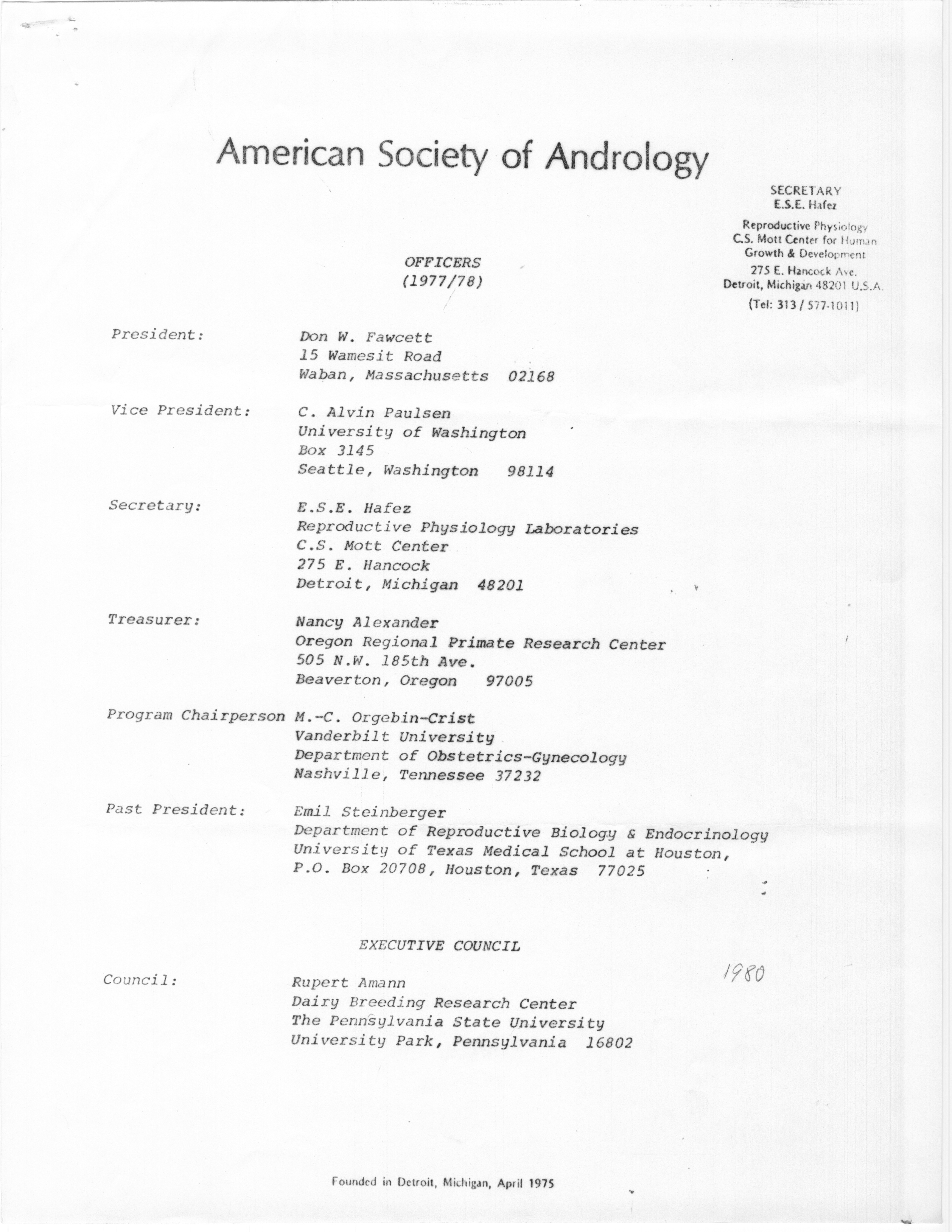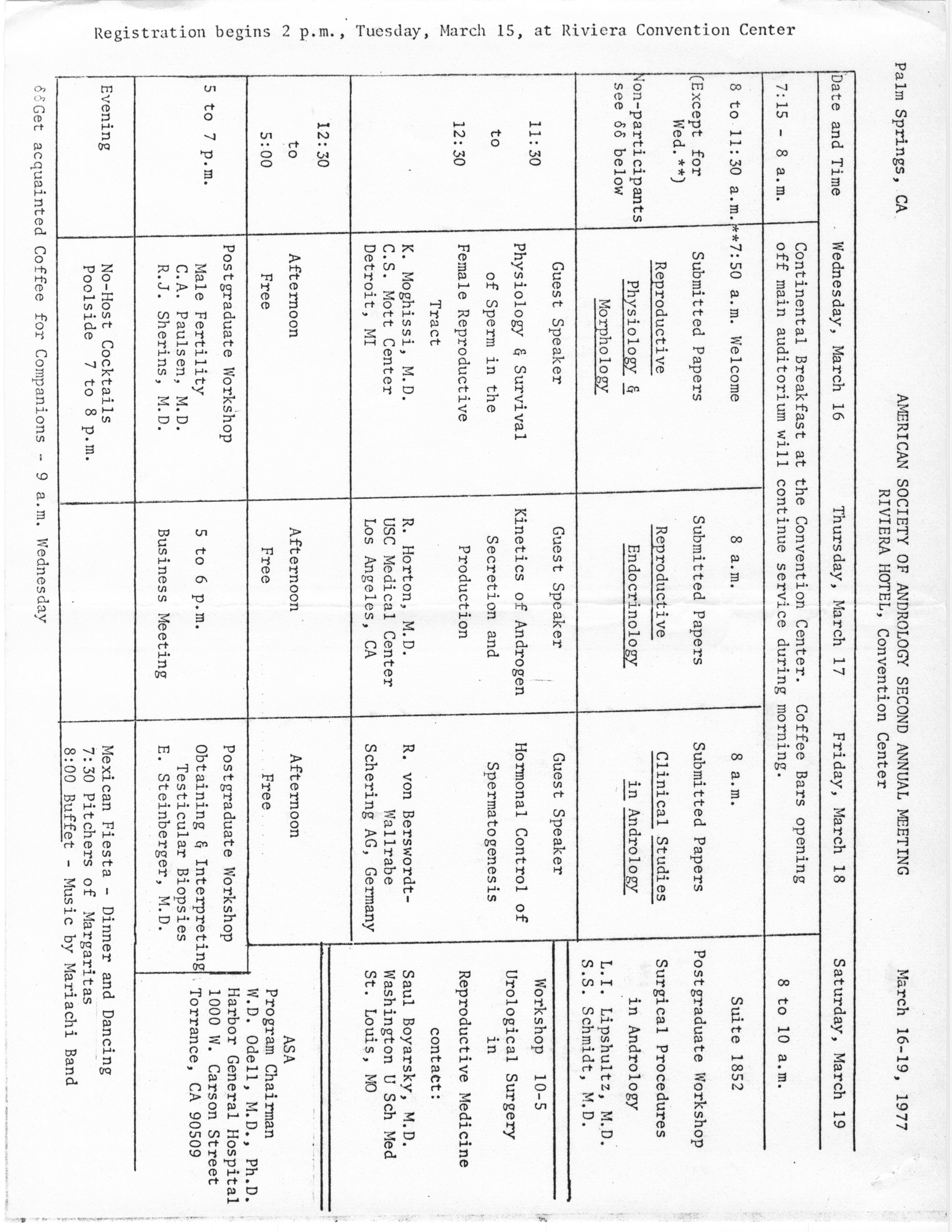 - "Annual Meeting of the American Society of Andrology, 1977", American Society of Andrology Collection, Iowa State University Library Digital Collections