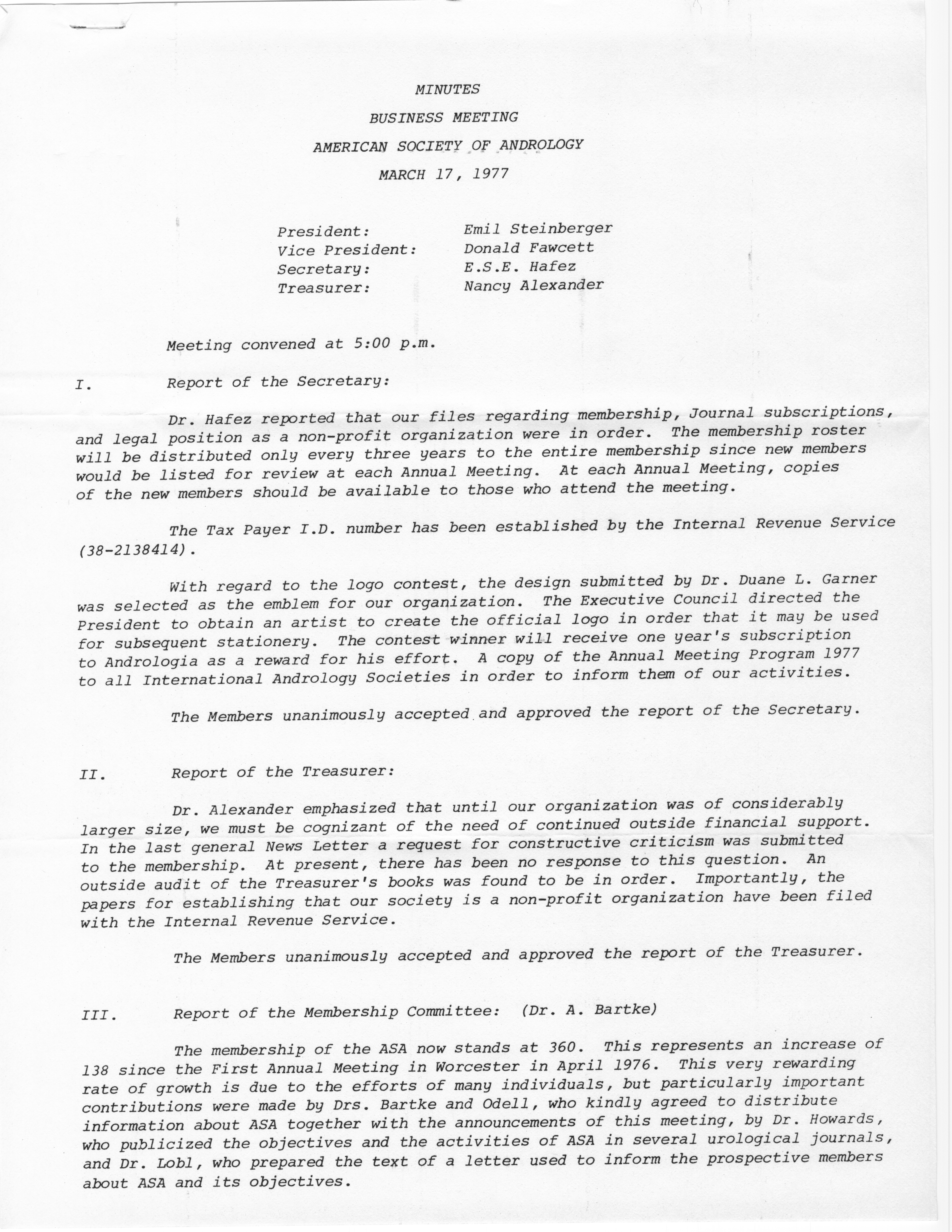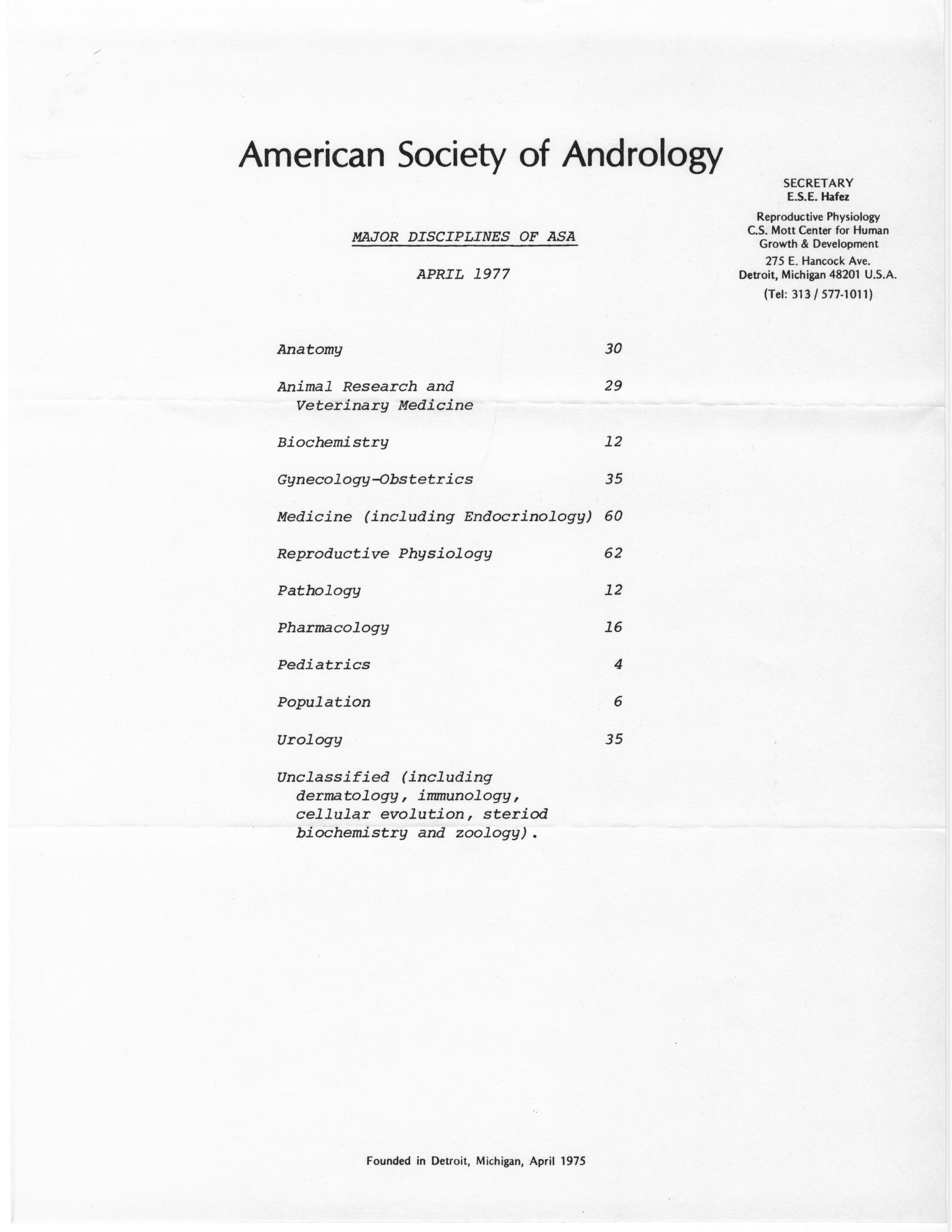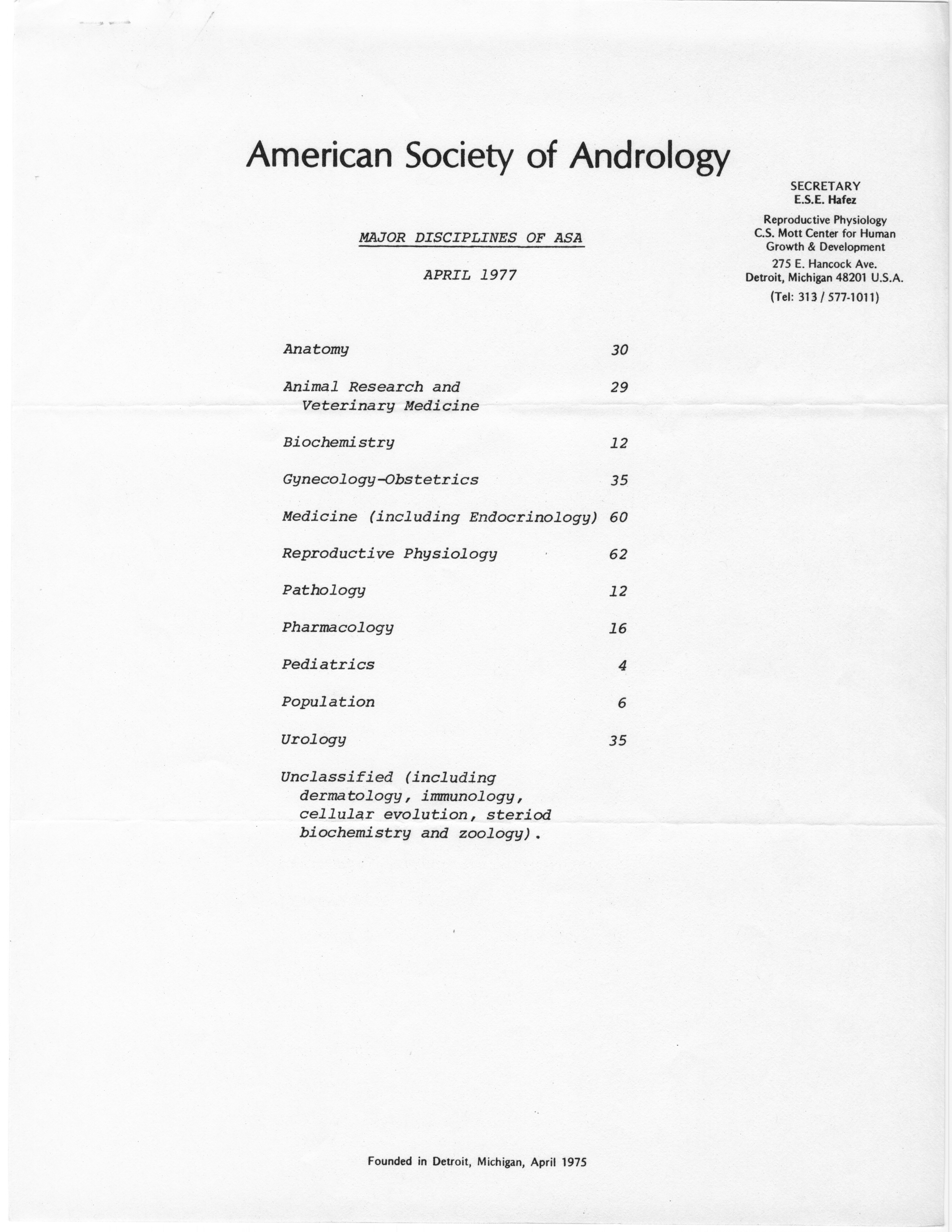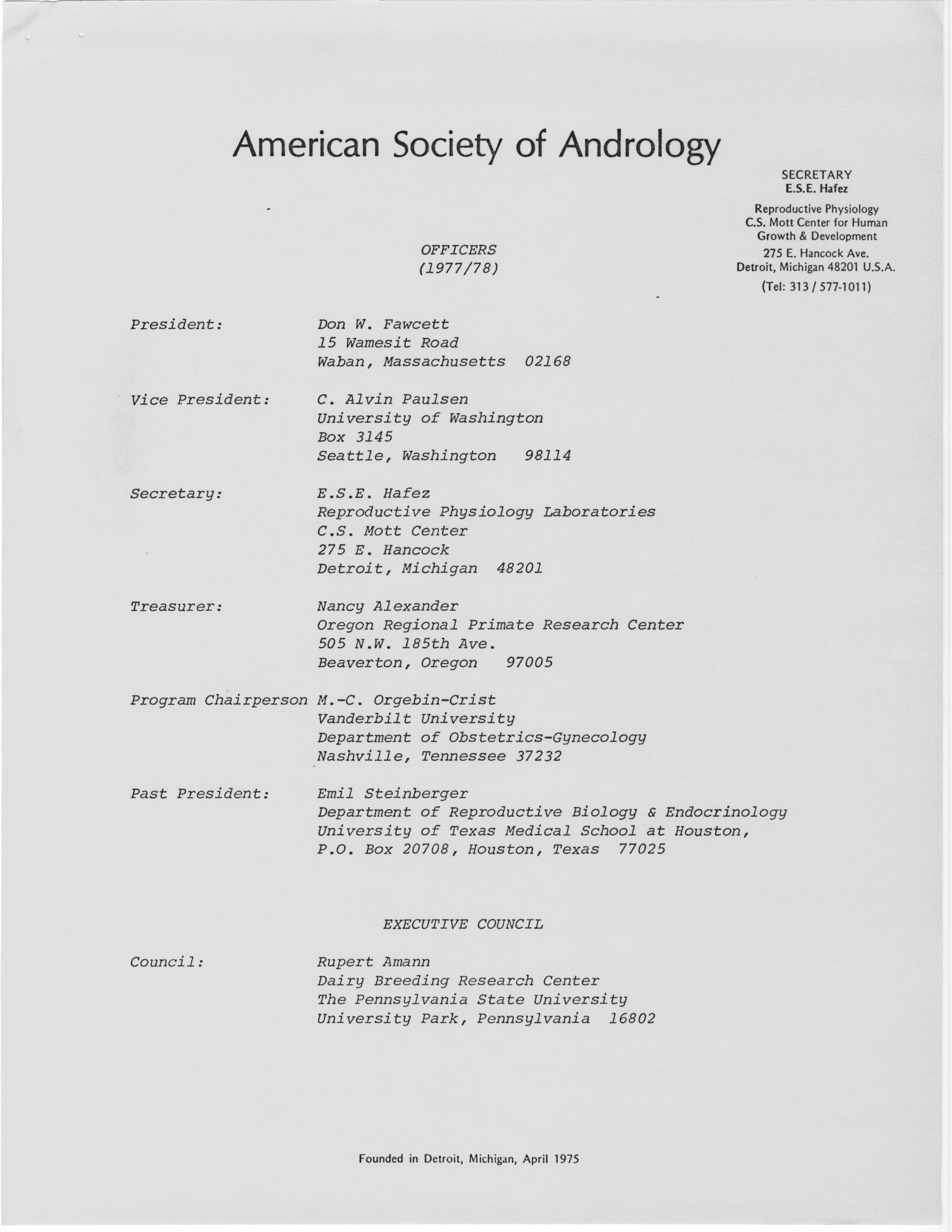 - "Annual Meeting of the American Society of Andrology, 1977", American Society of Andrology Collection, Iowa State University Library Digital Collections