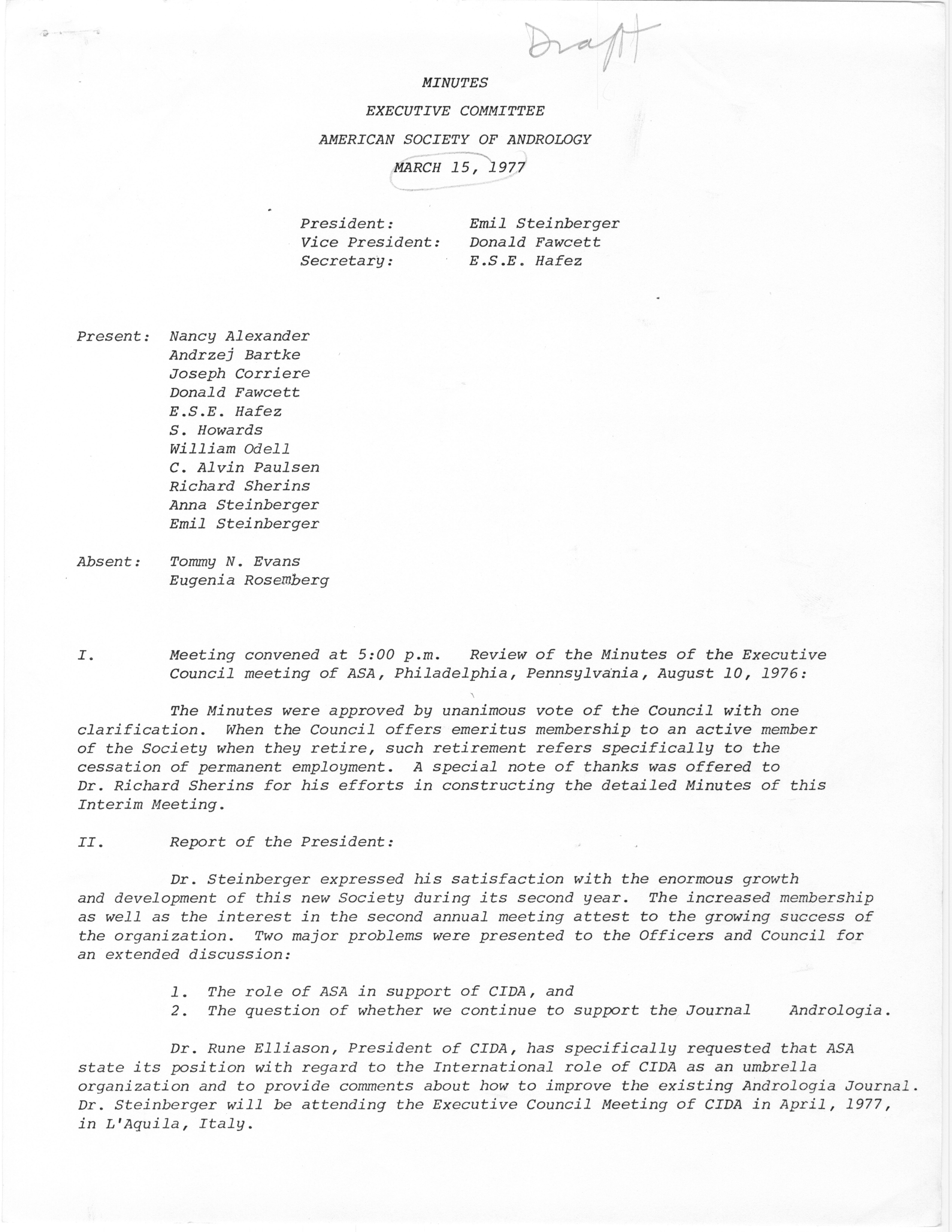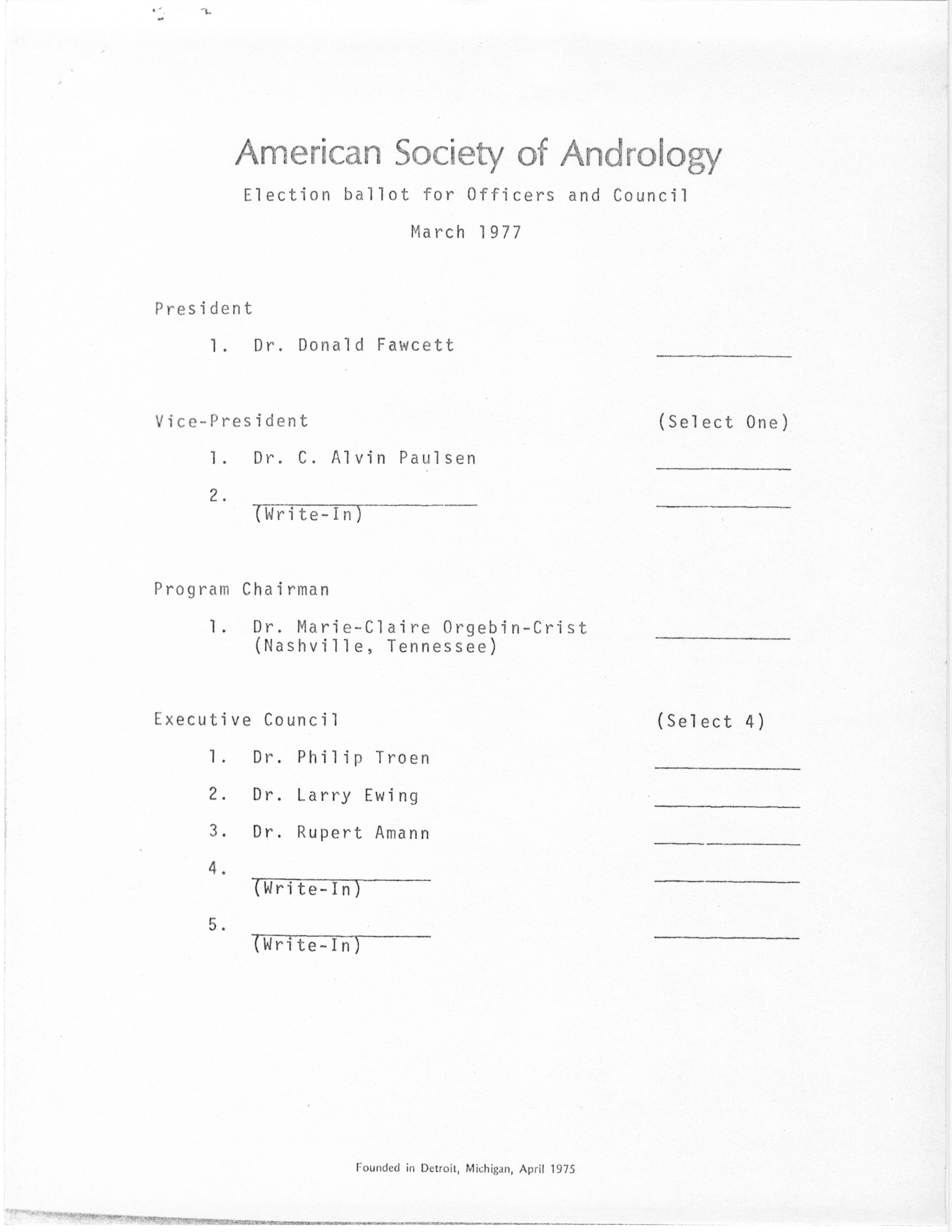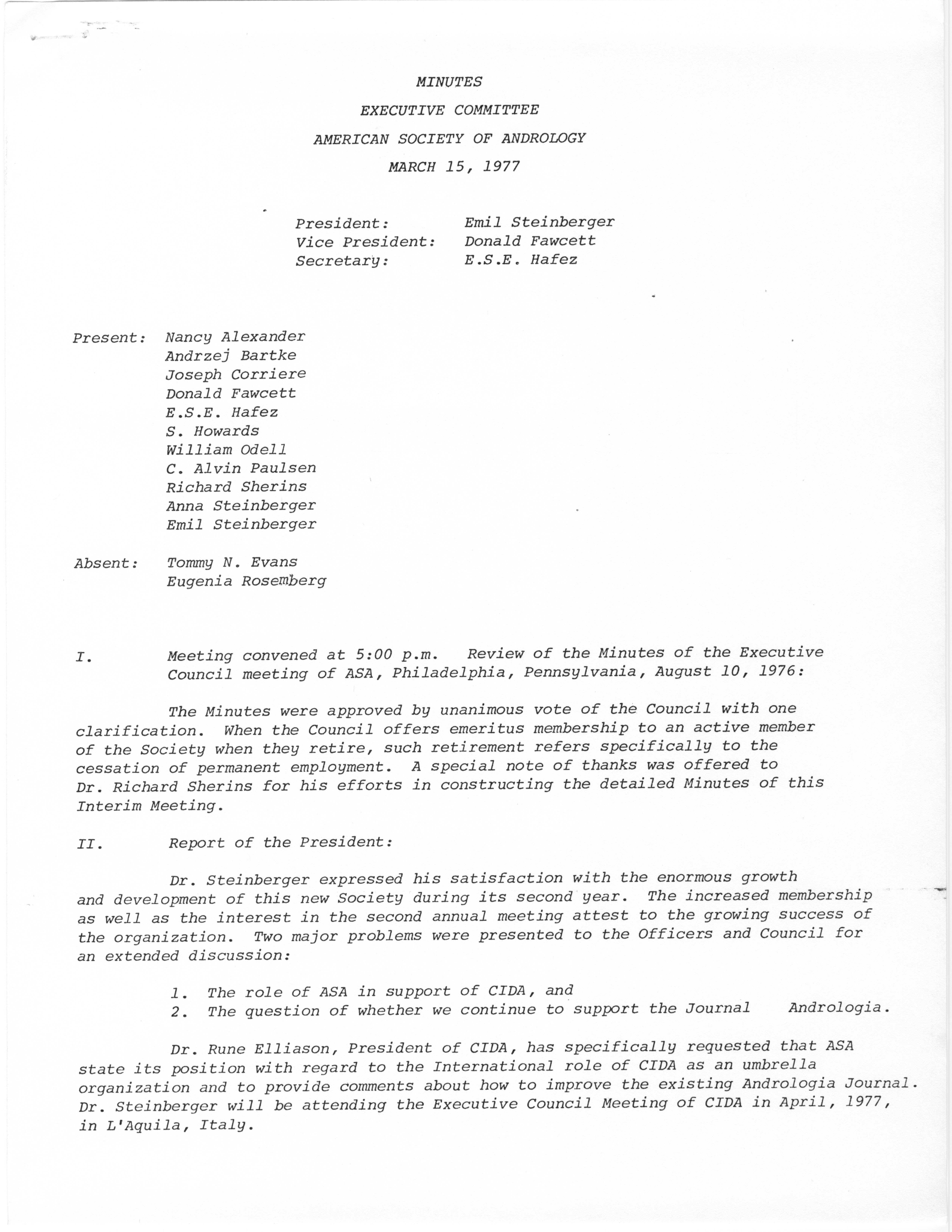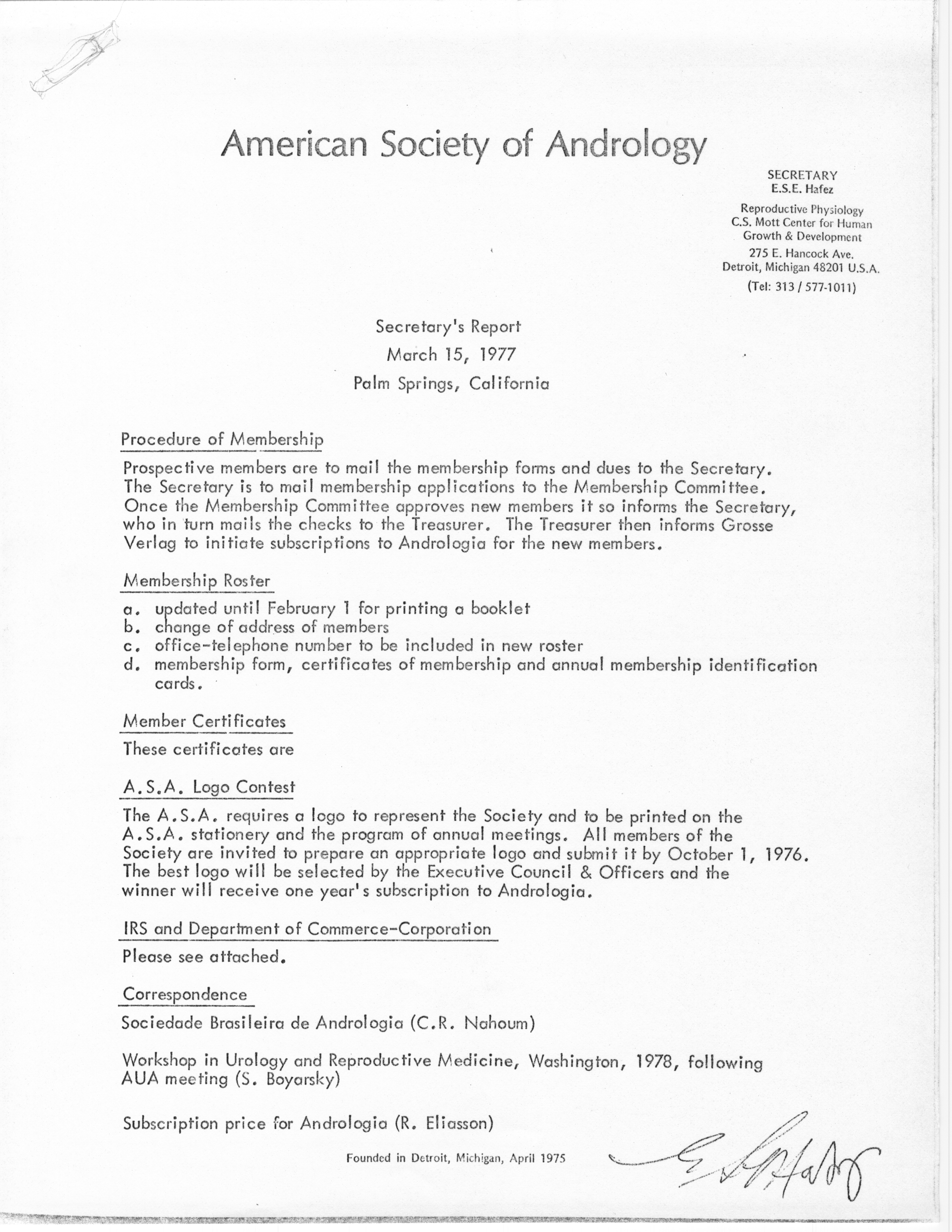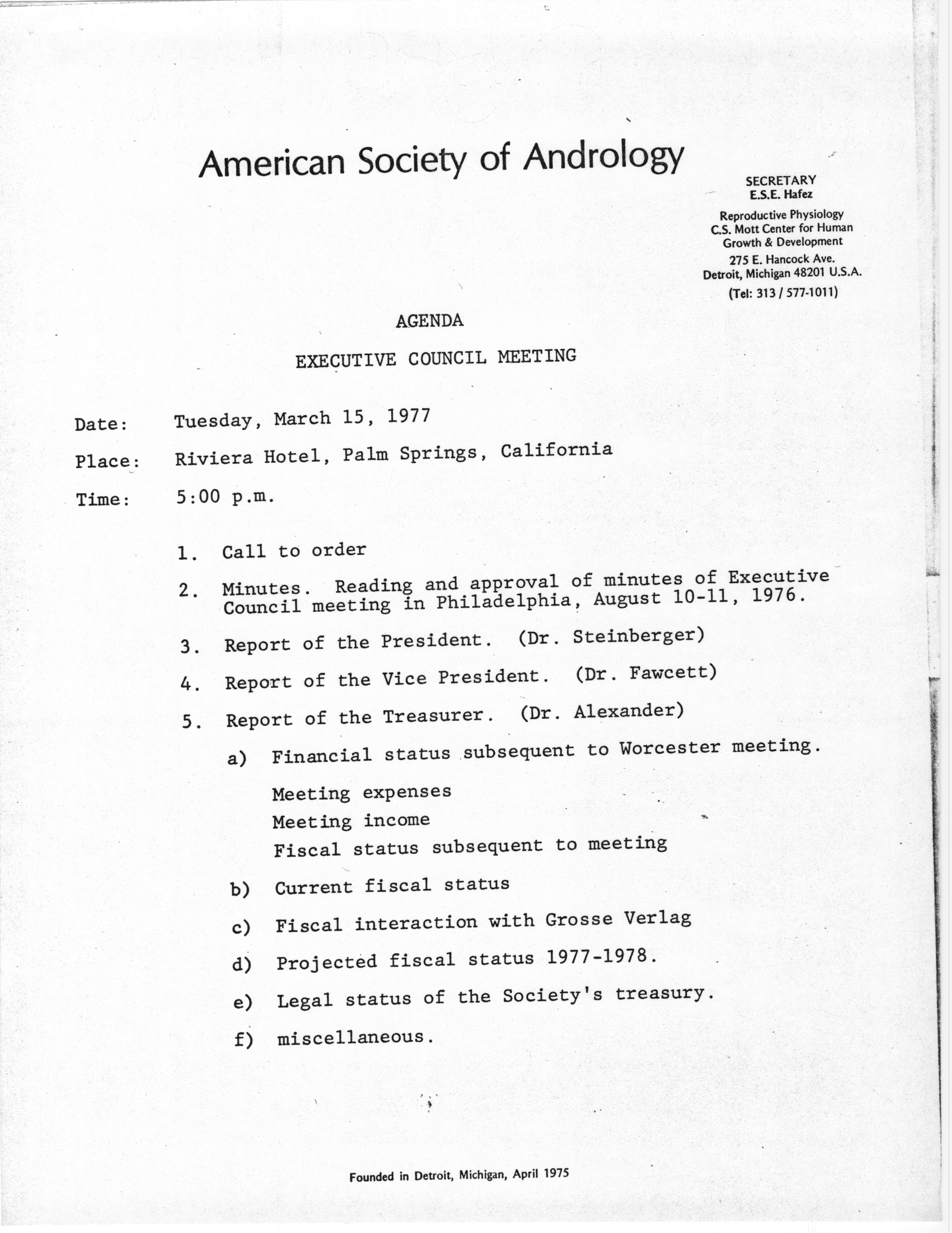 - "Annual Meeting of the American Society of Andrology, 1977", American Society of Andrology Collection, Iowa State University Library Digital Collections
