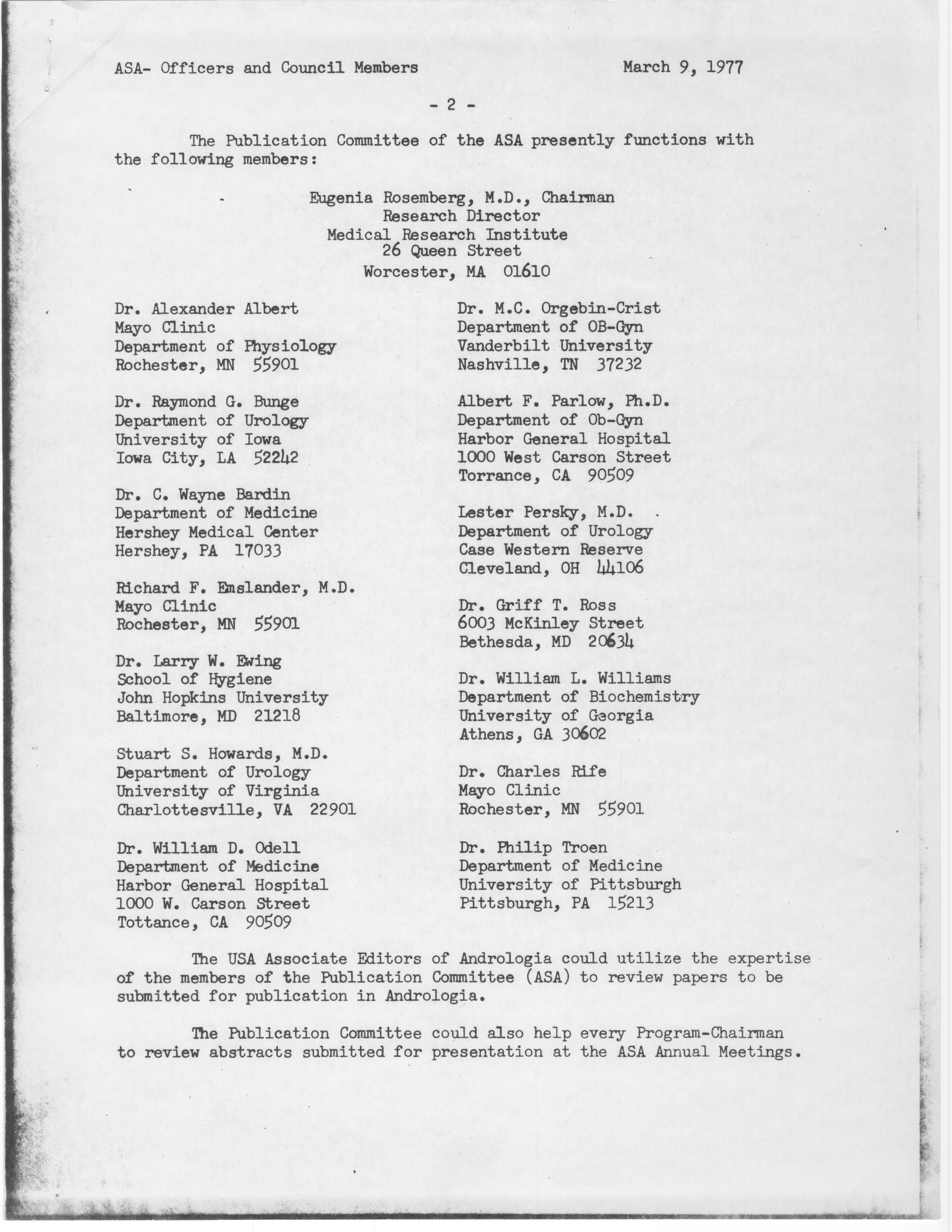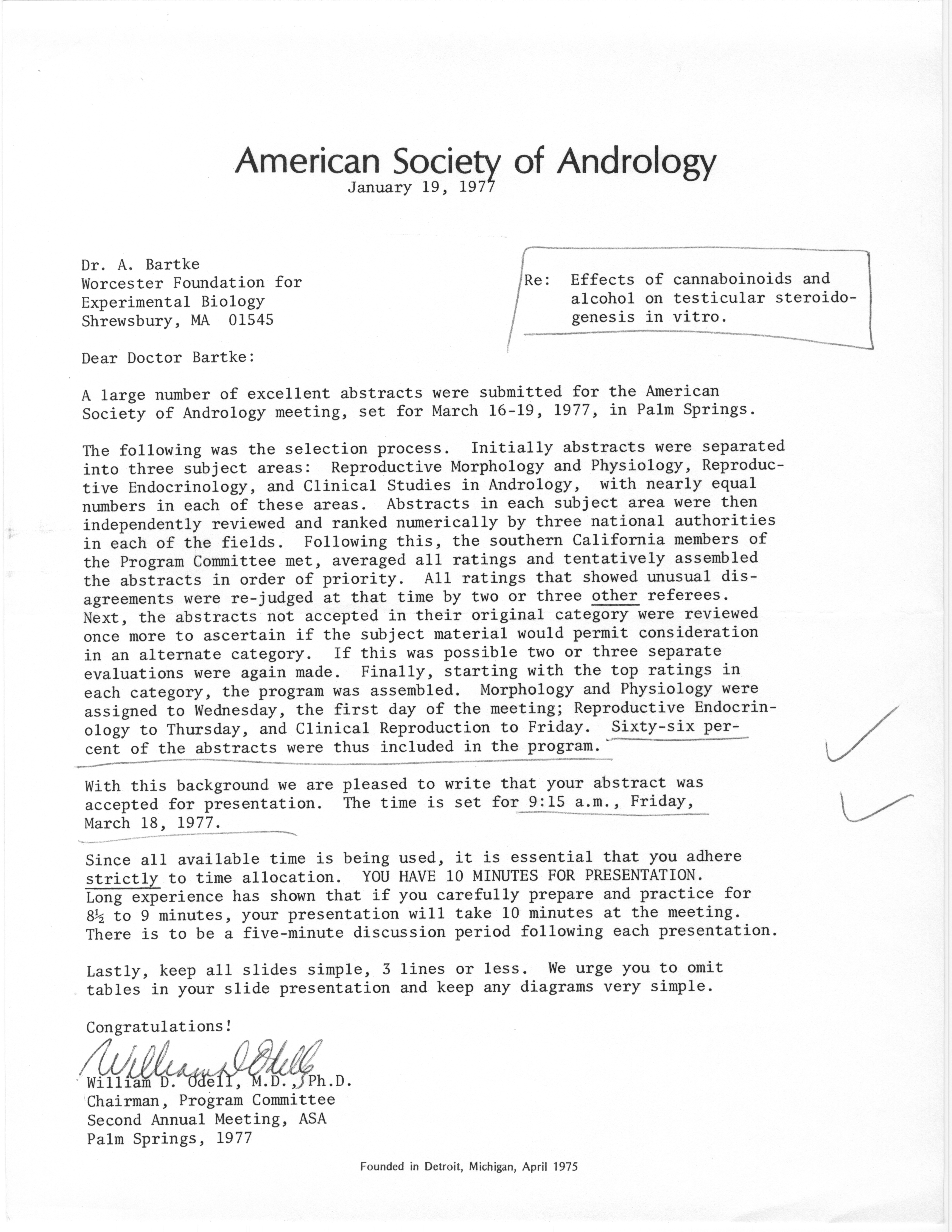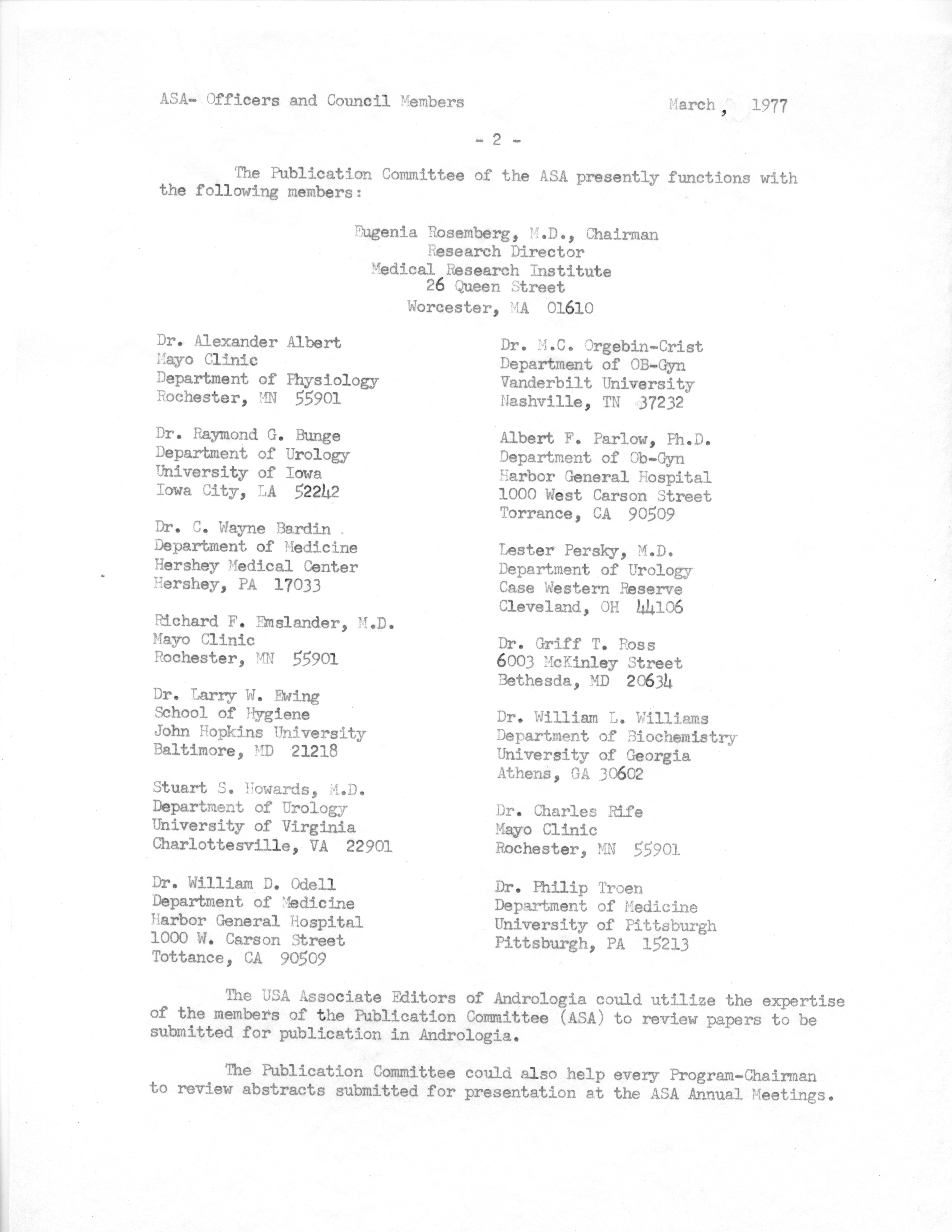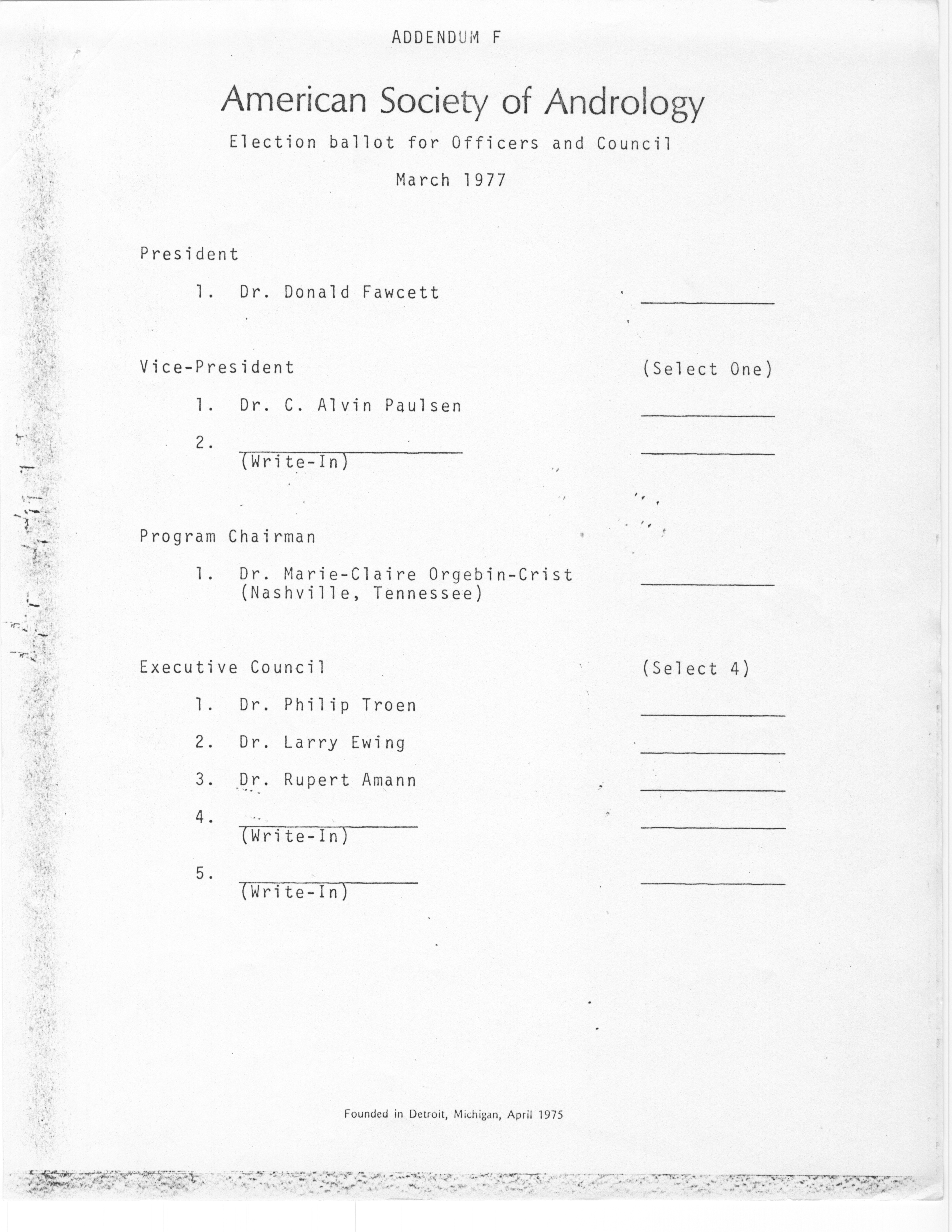 - "Annual Meeting of the American Society of Andrology, 1977", American Society of Andrology Collection, Iowa State University Library Digital Collections