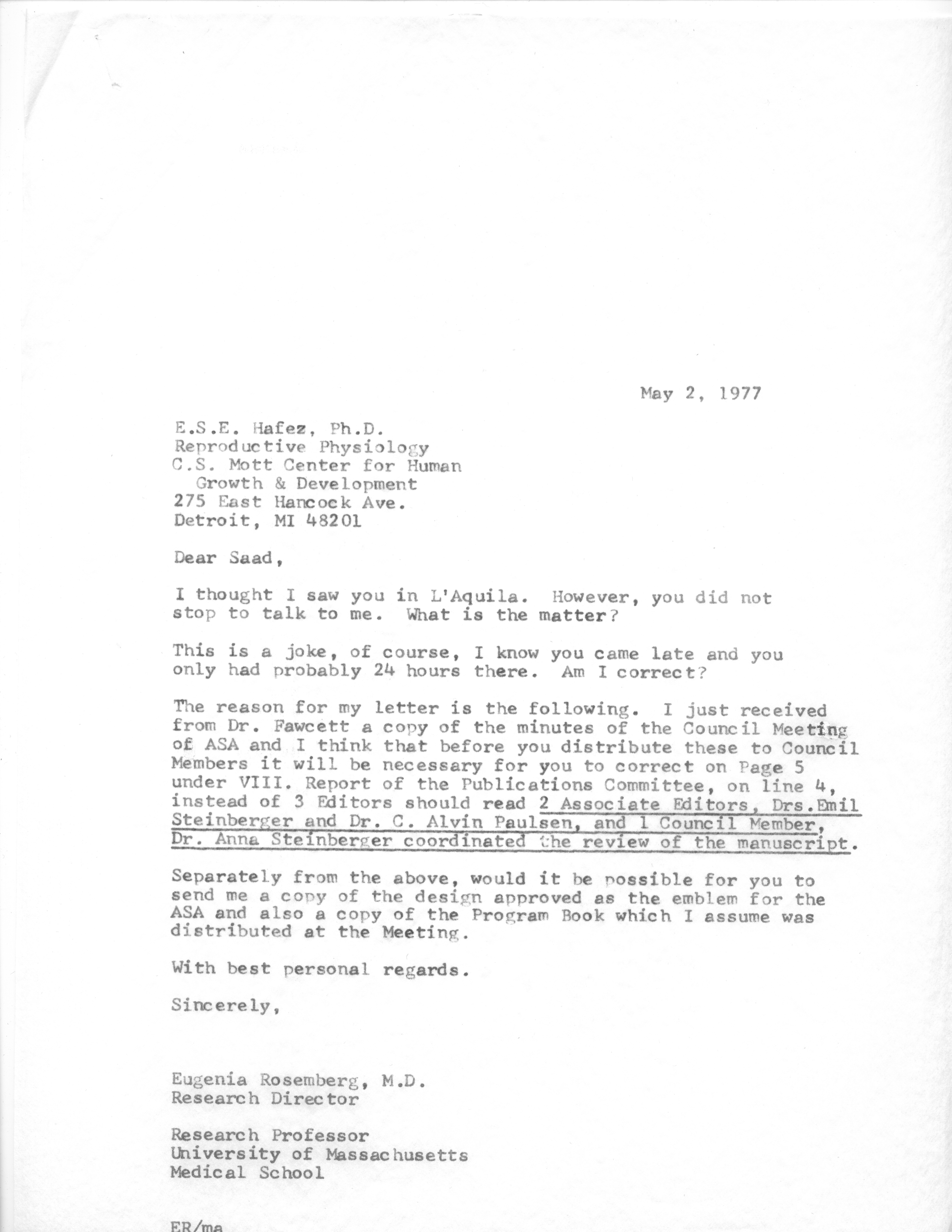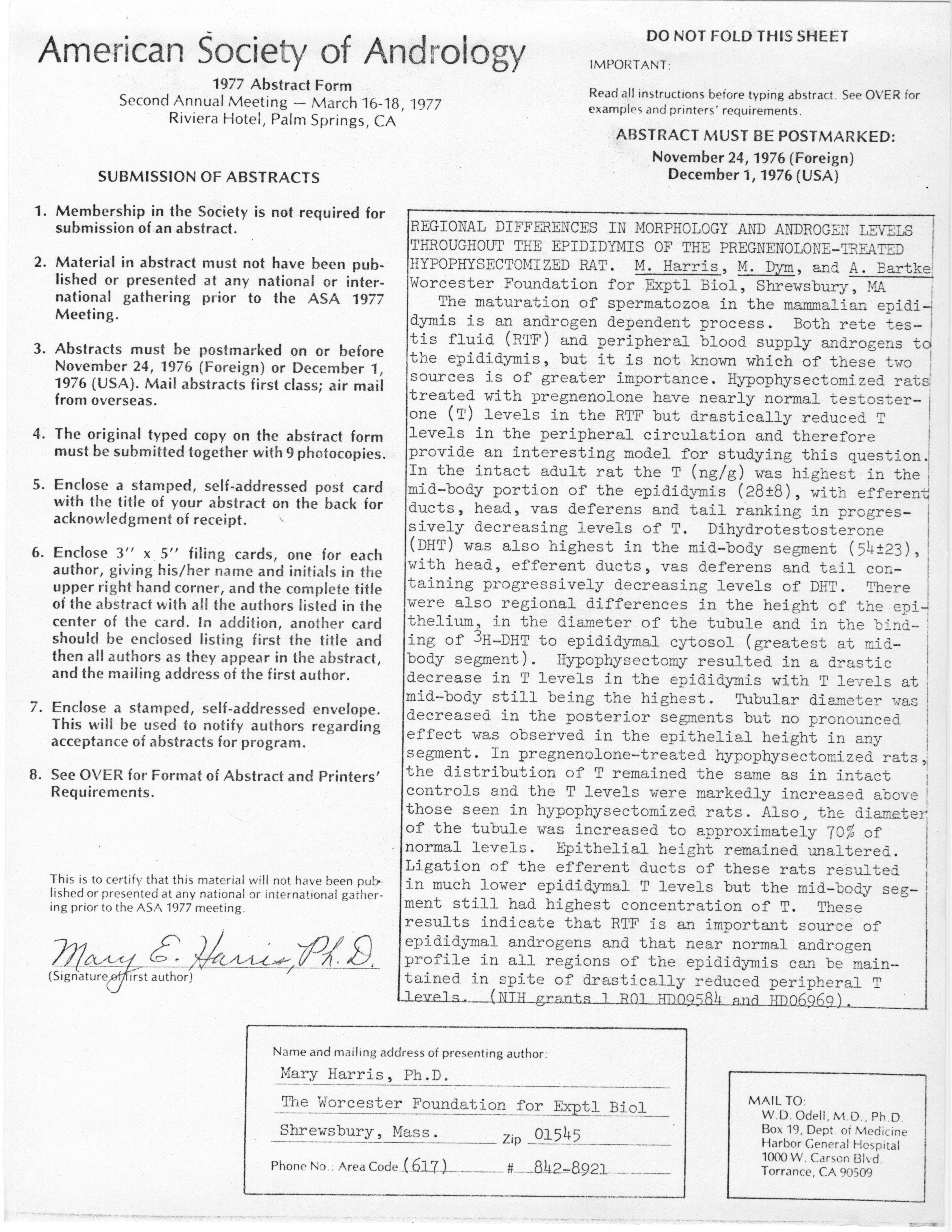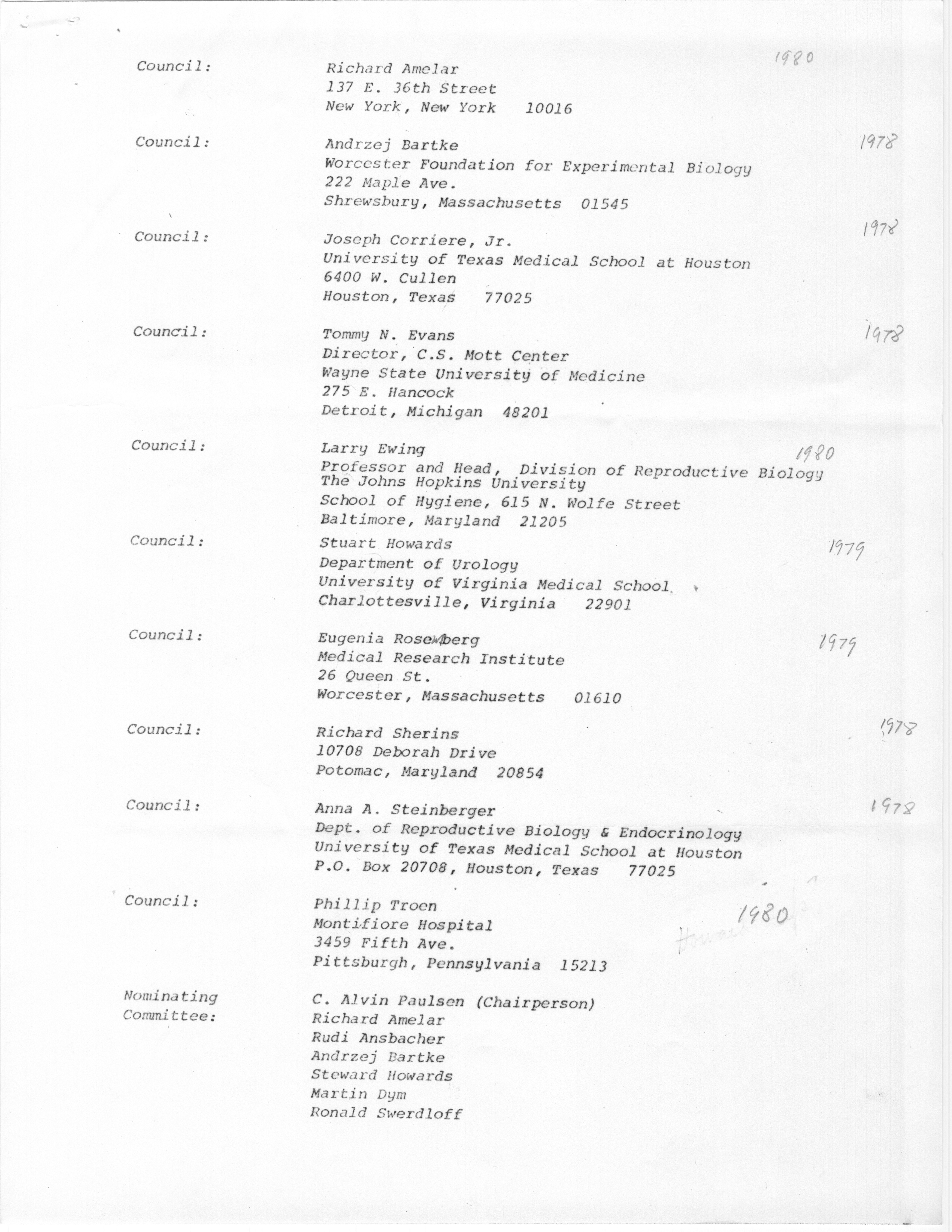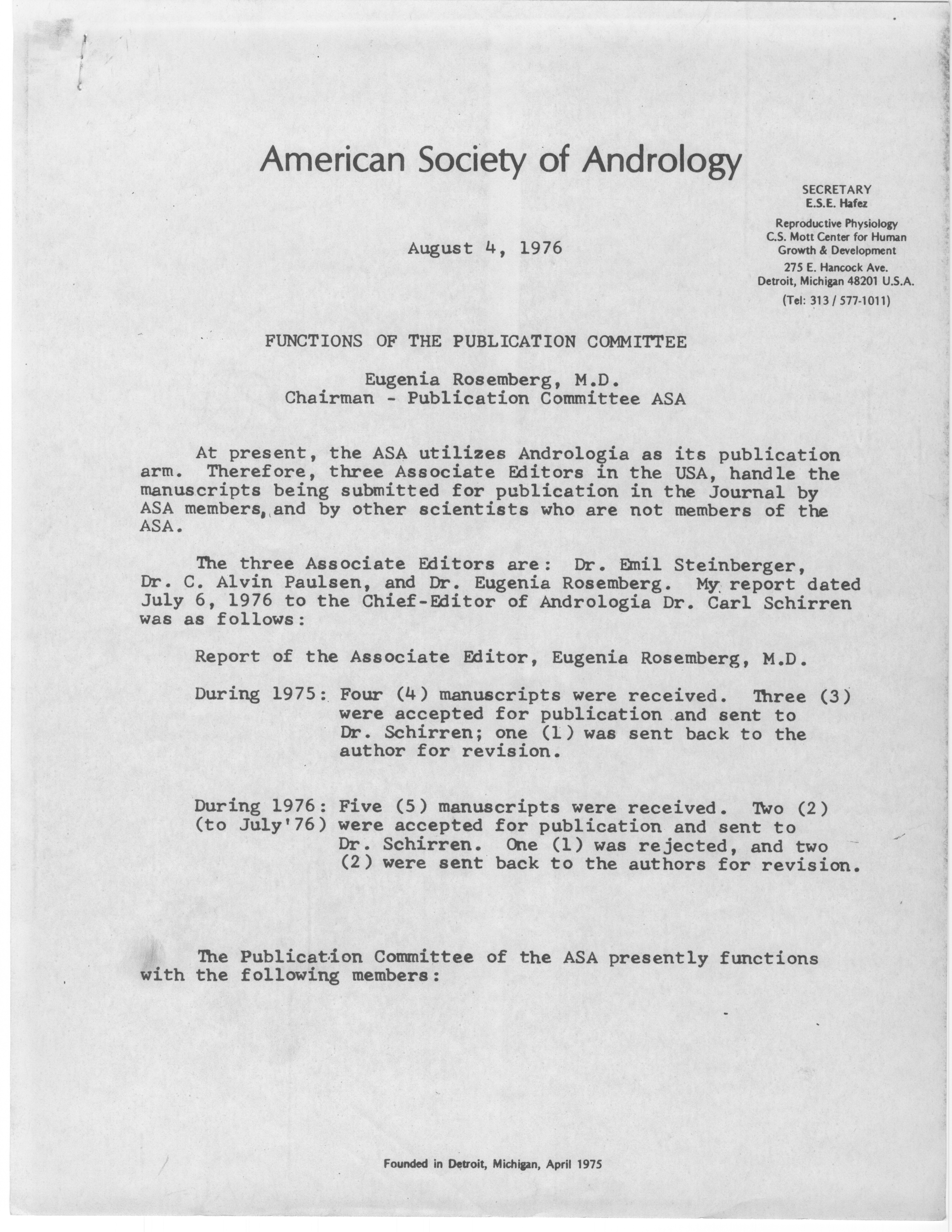 - "Annual Meeting of the American Society of Andrology, 1977", American Society of Andrology Collection, Iowa State University Library Digital Collections