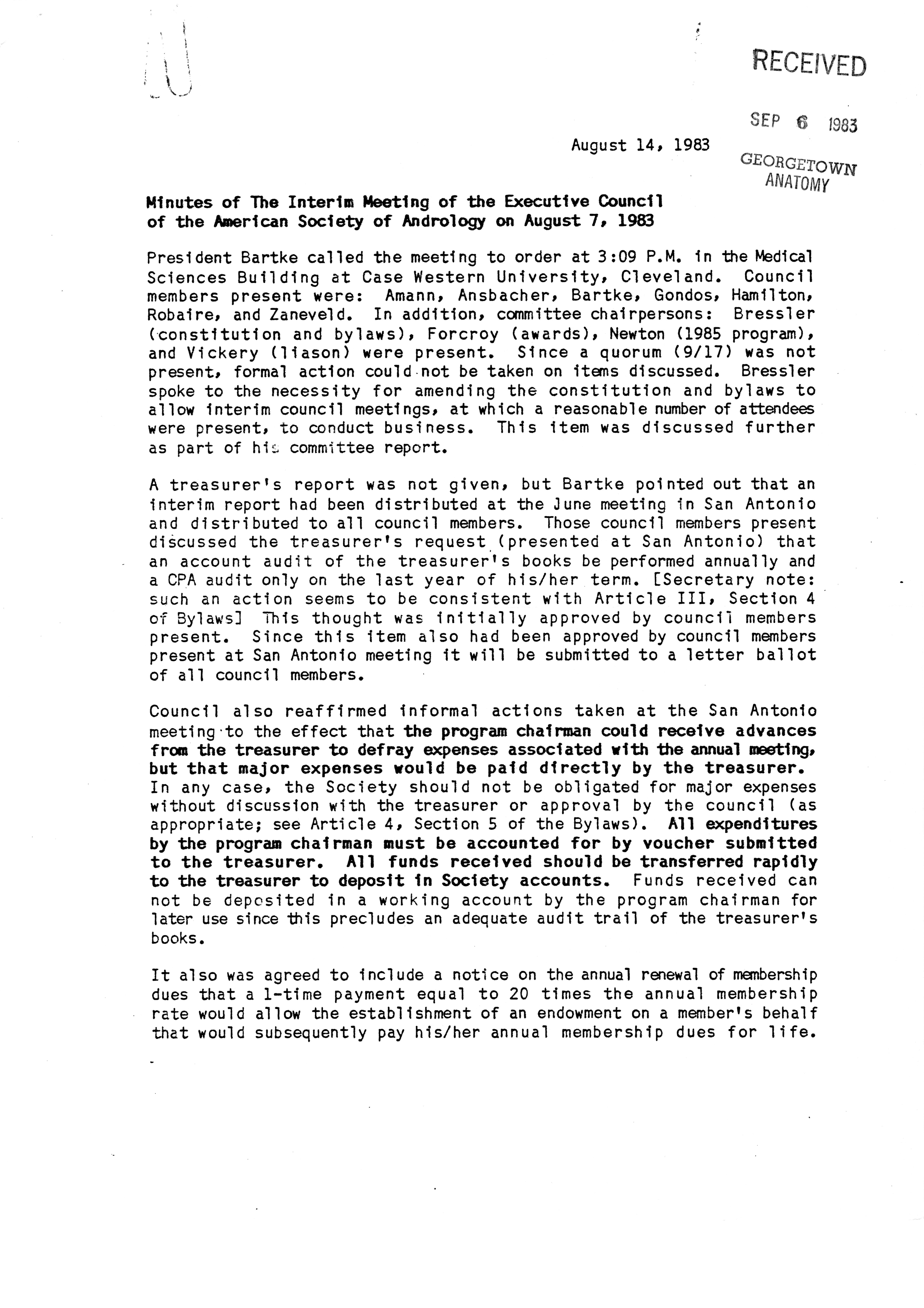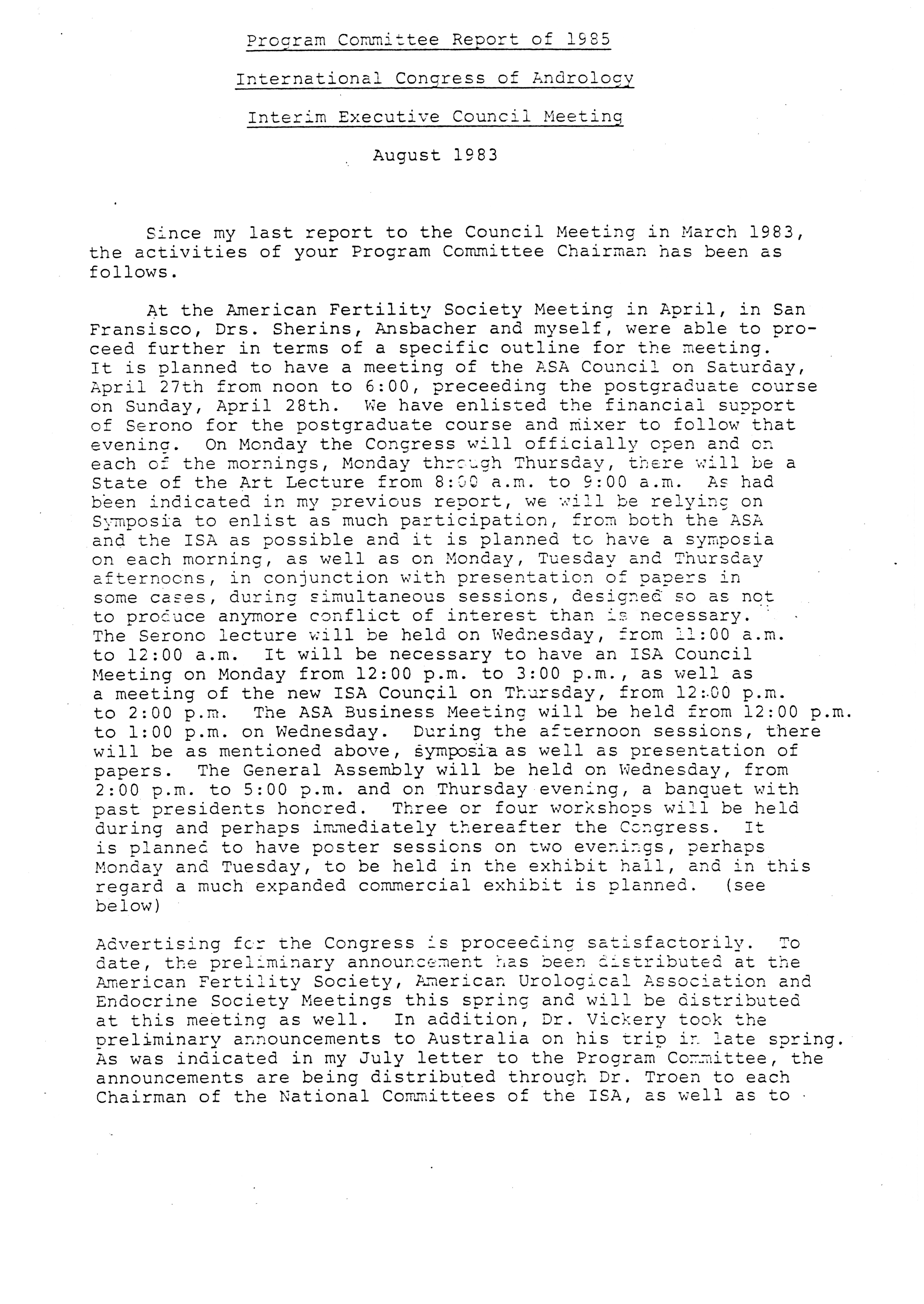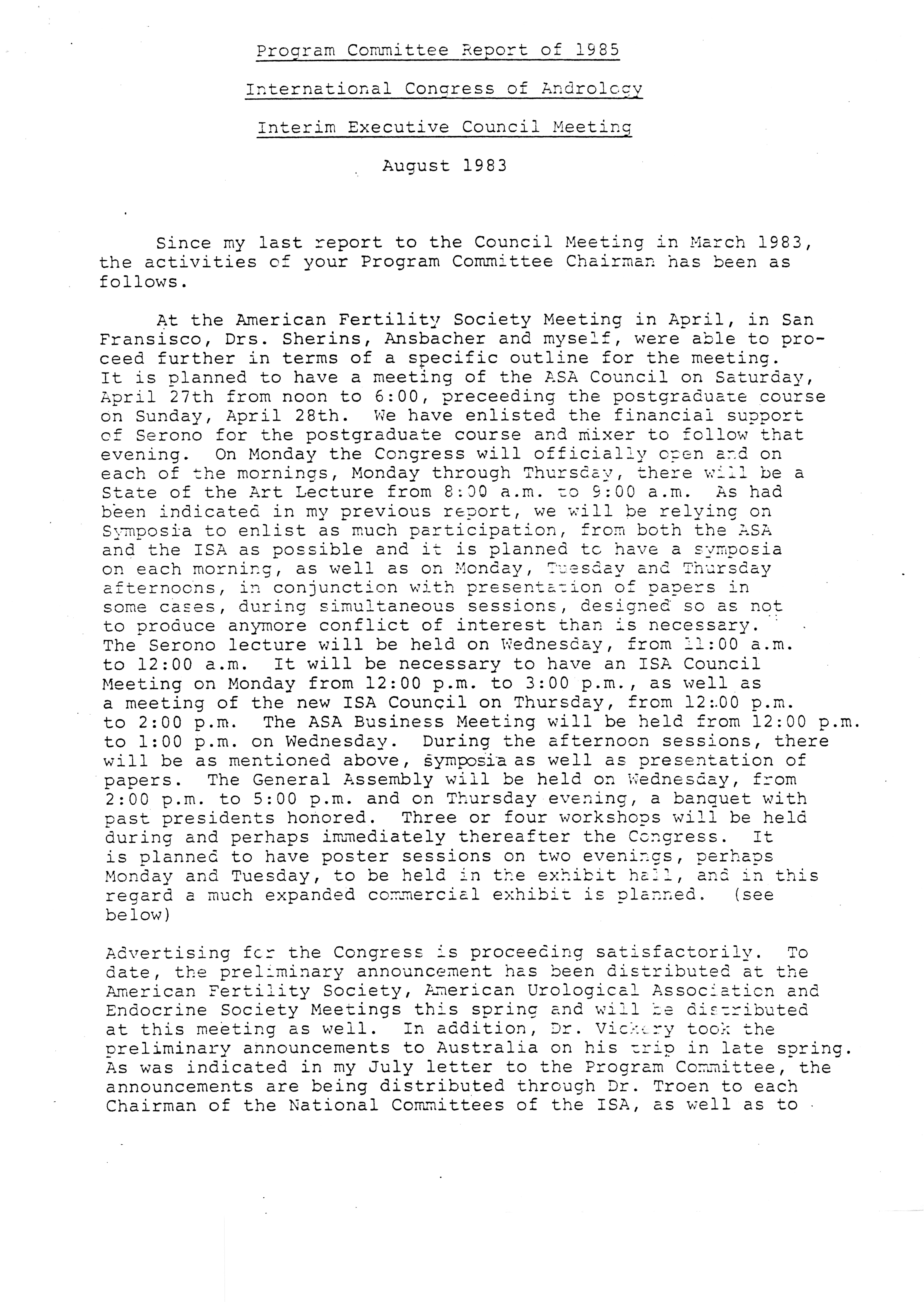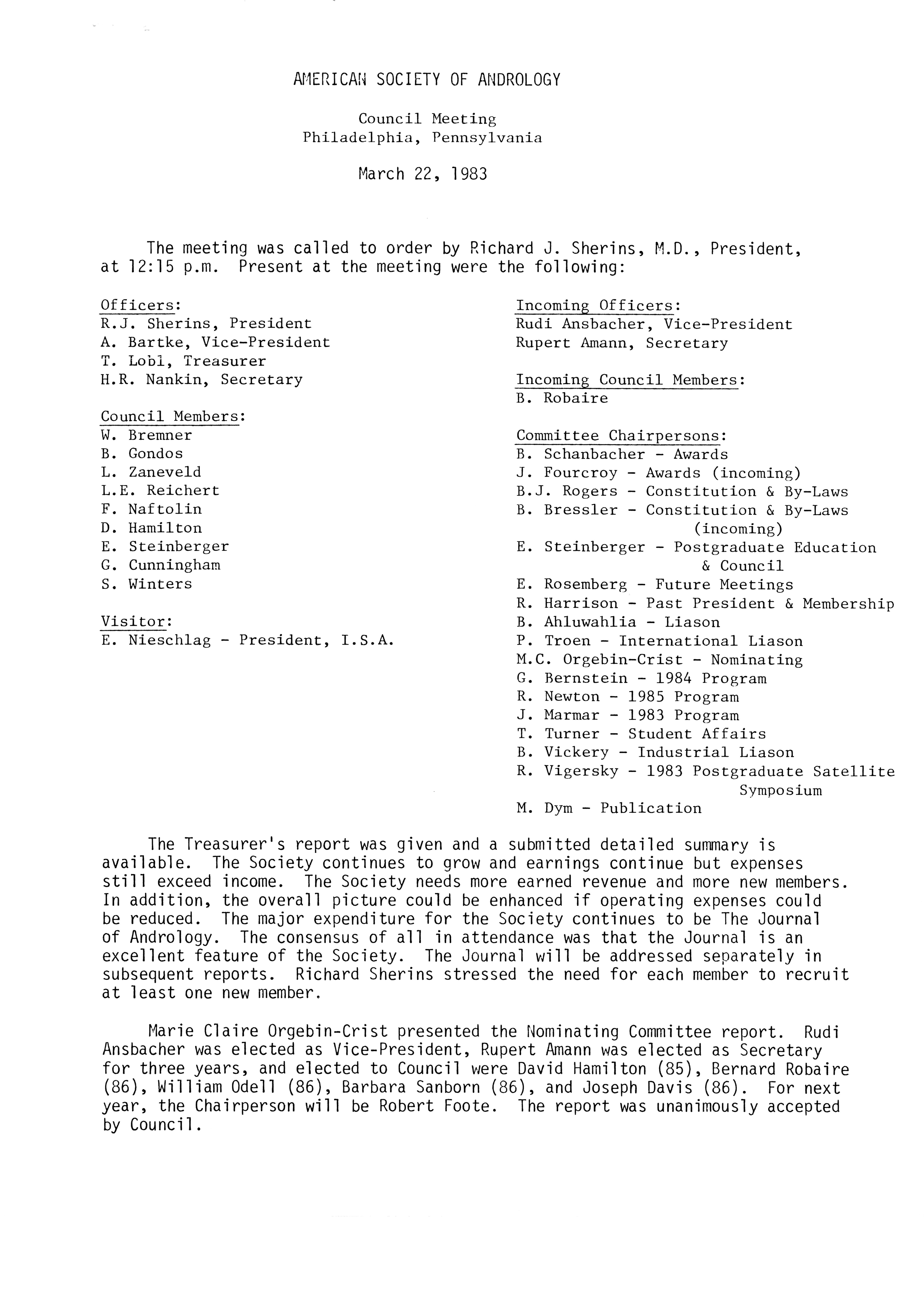 - Executive Council Meetings of the American Society of Andrology, 1983