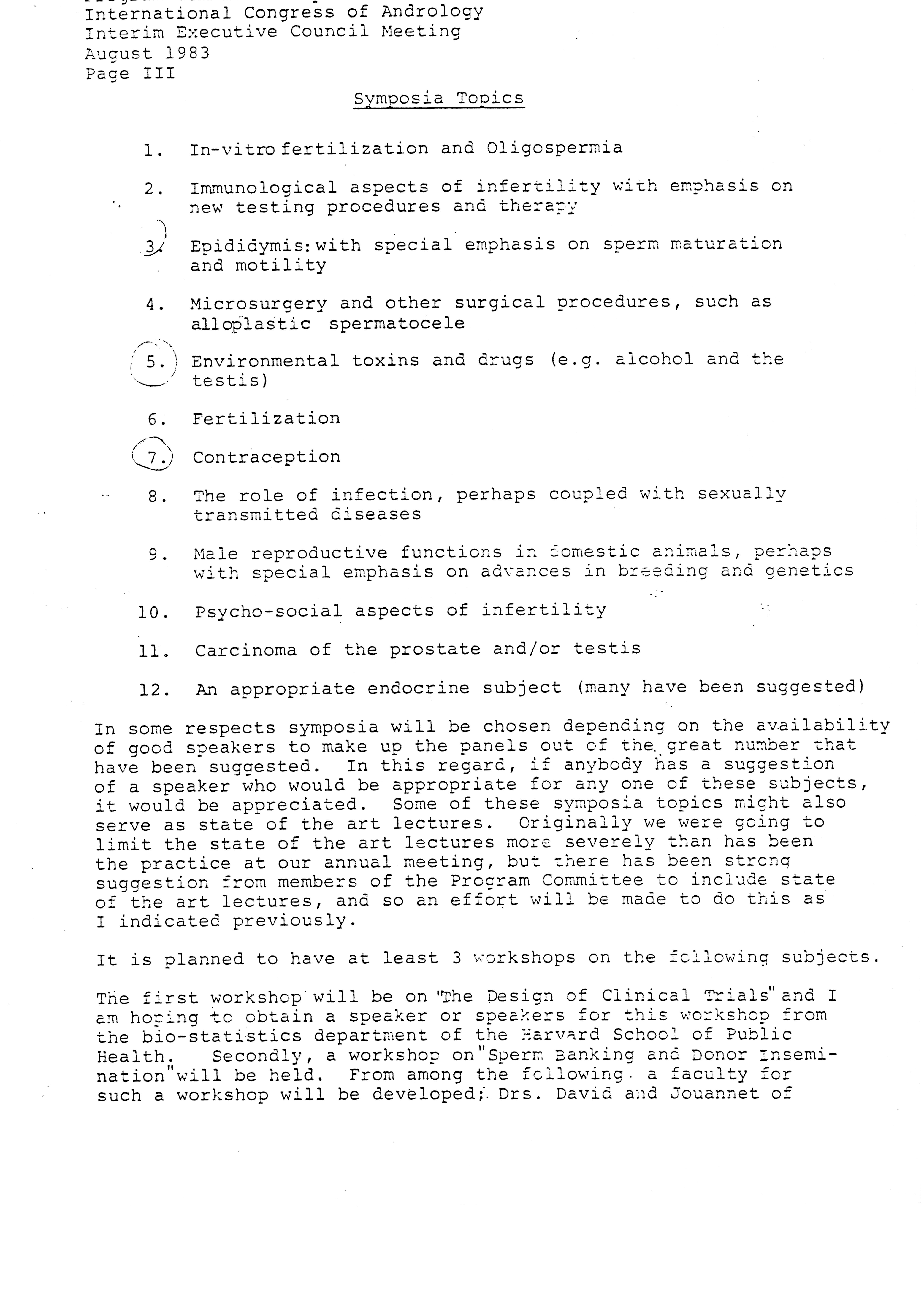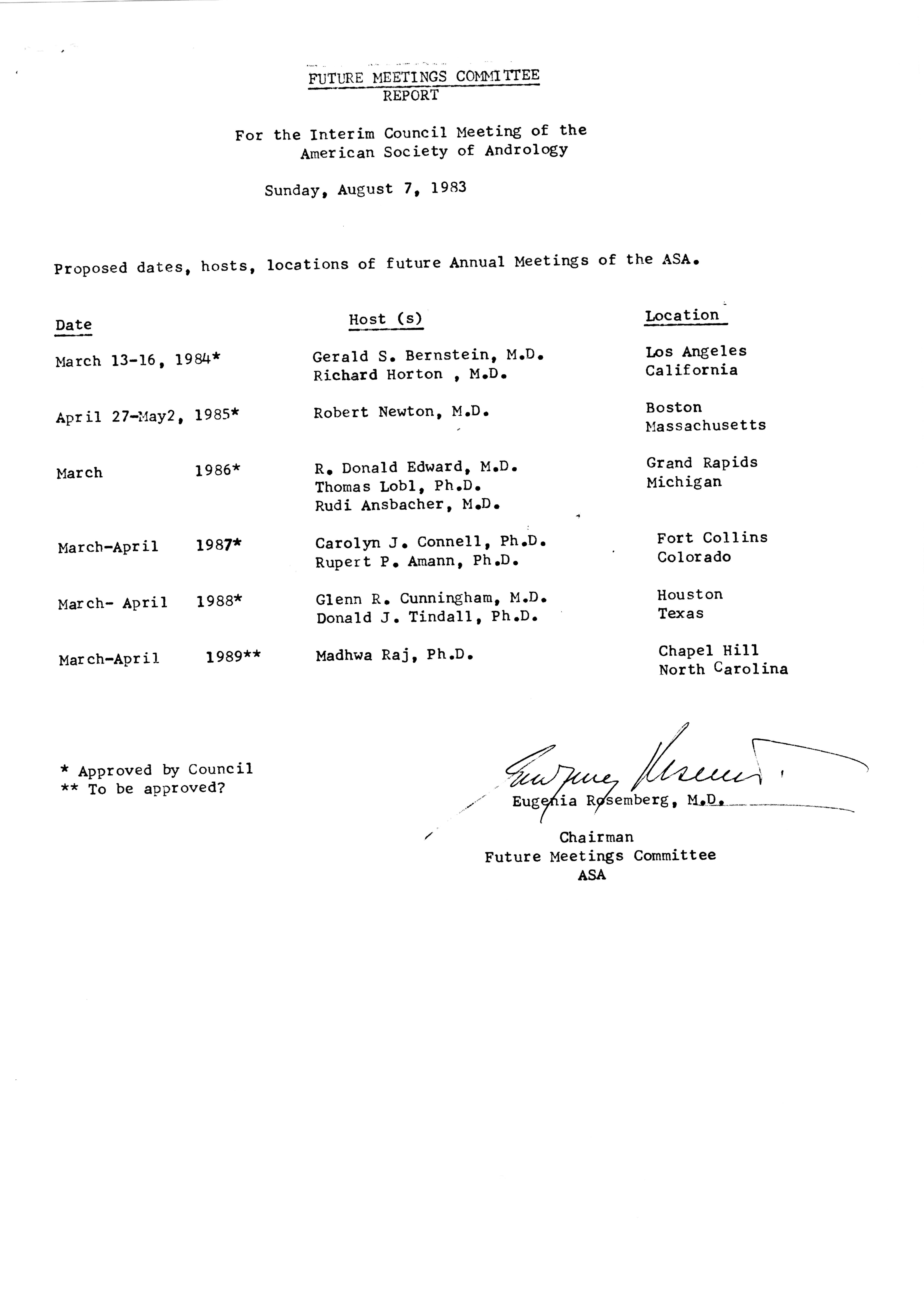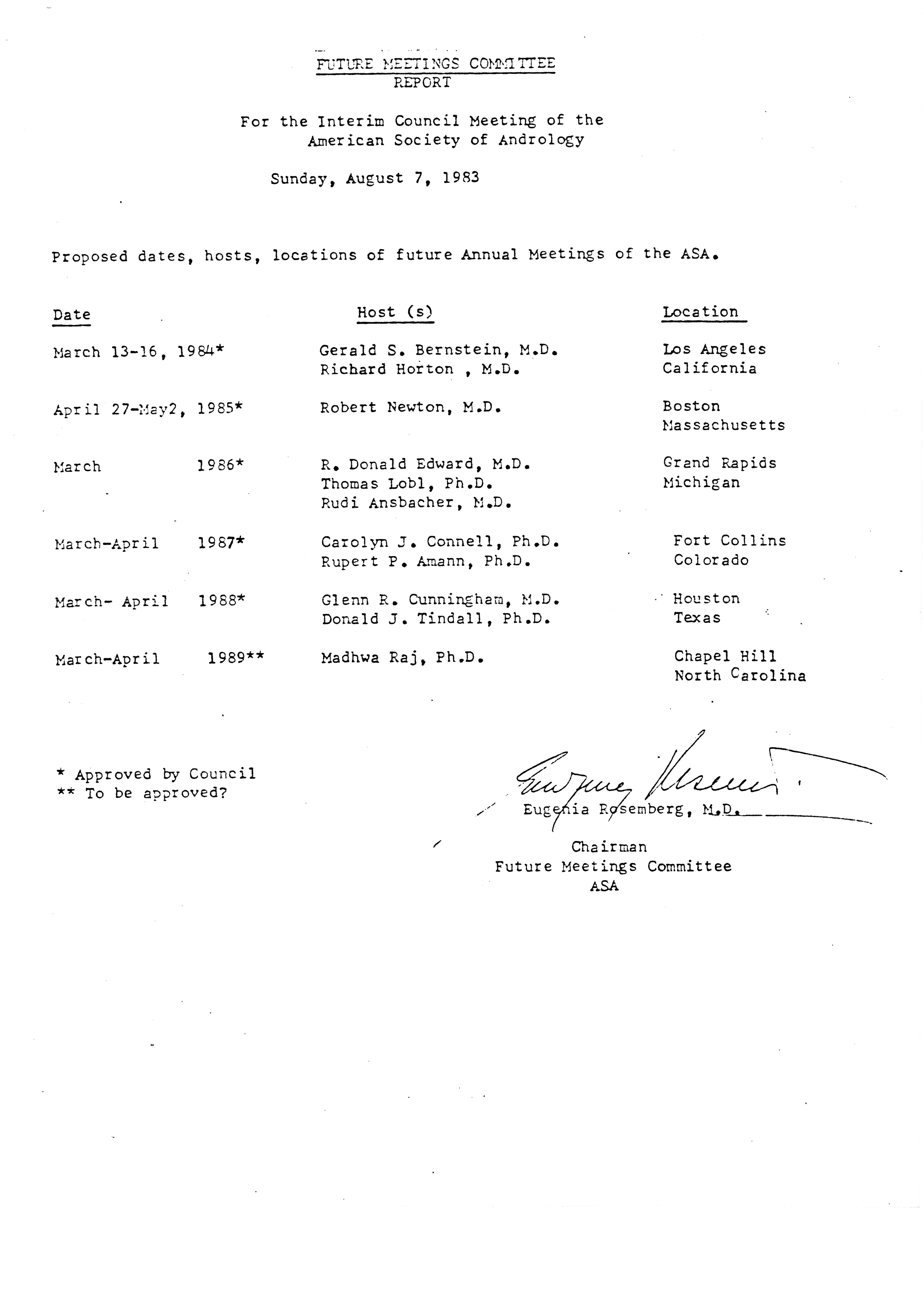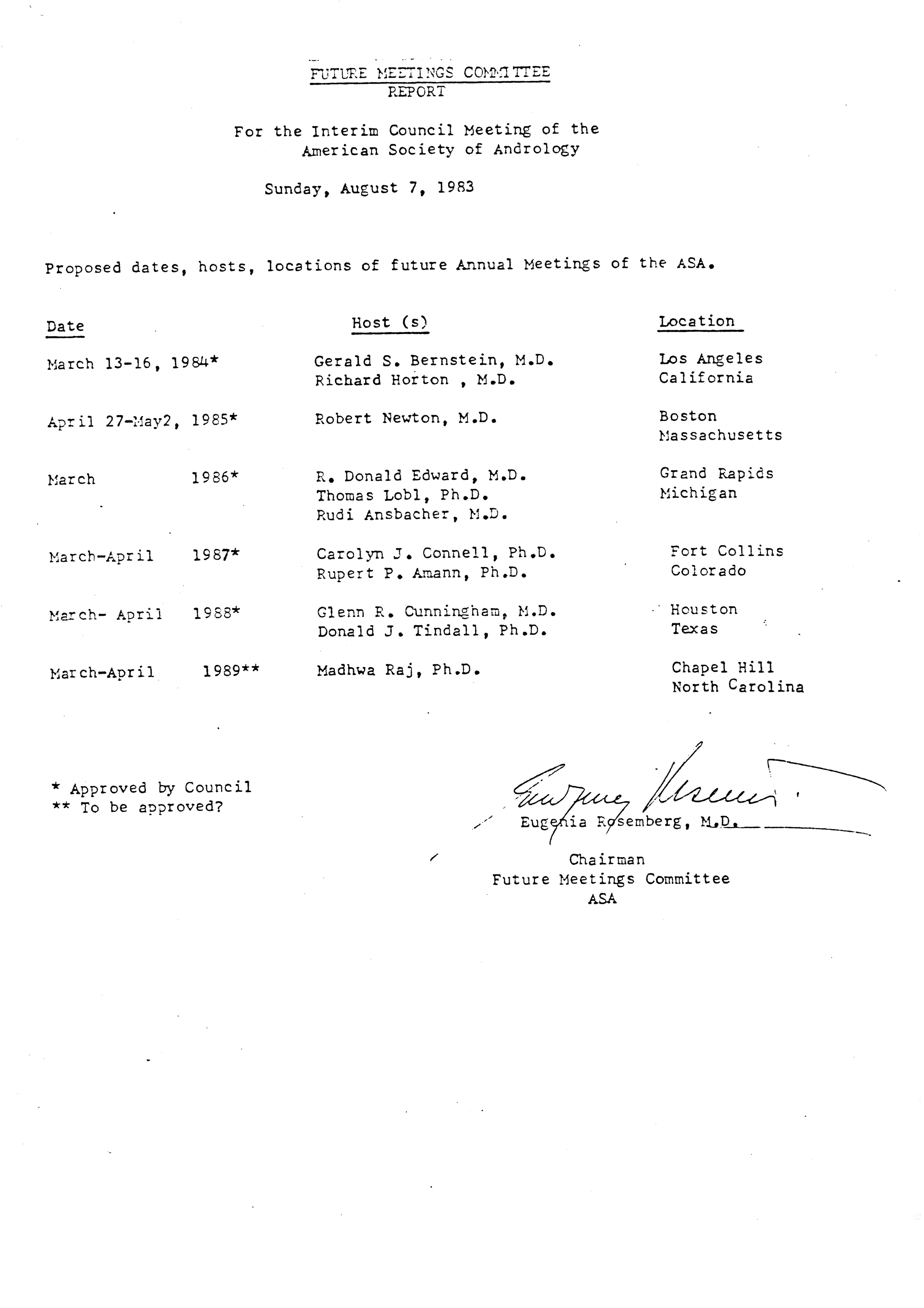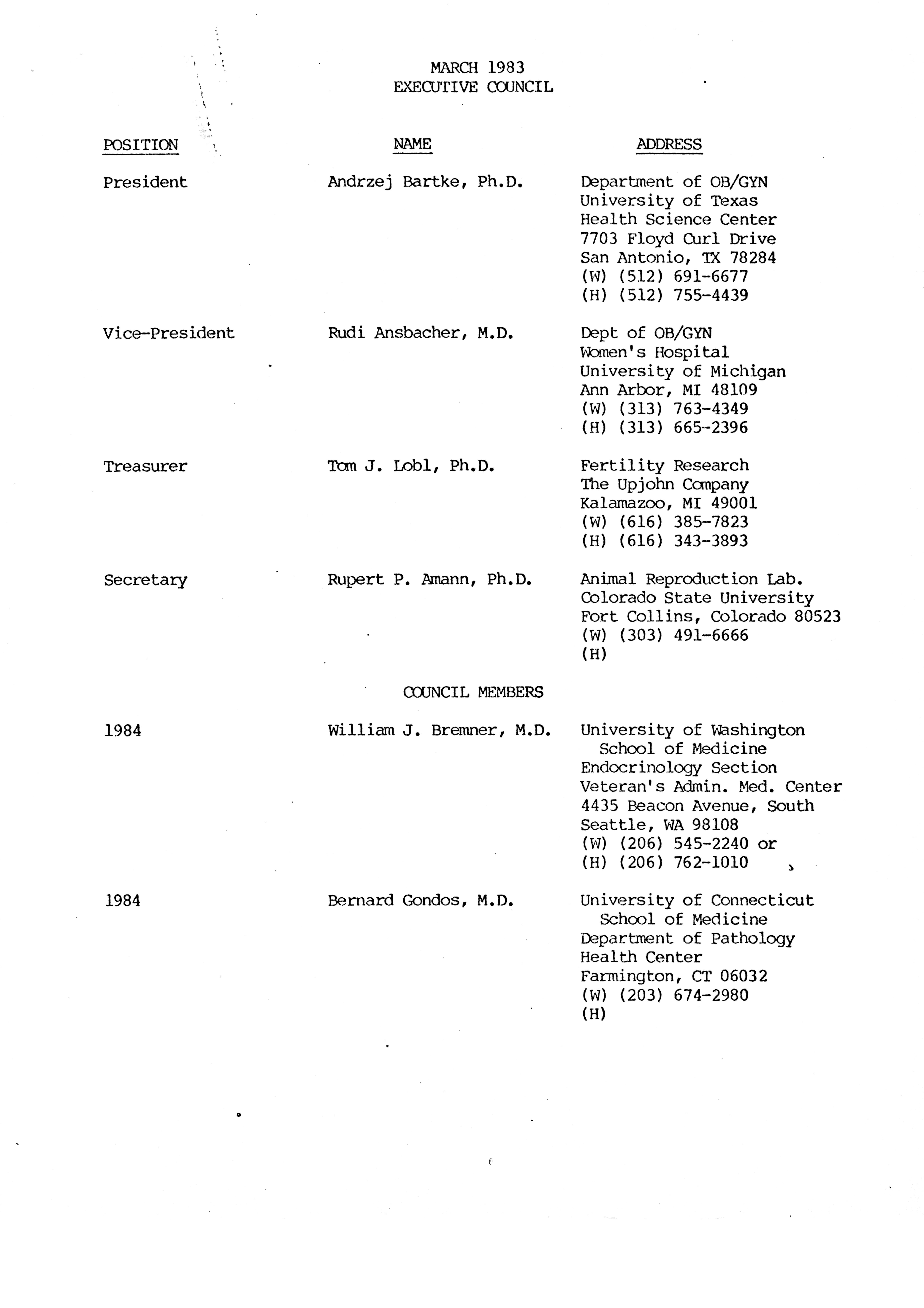 - Executive Council Meetings of the American Society of Andrology, 1983