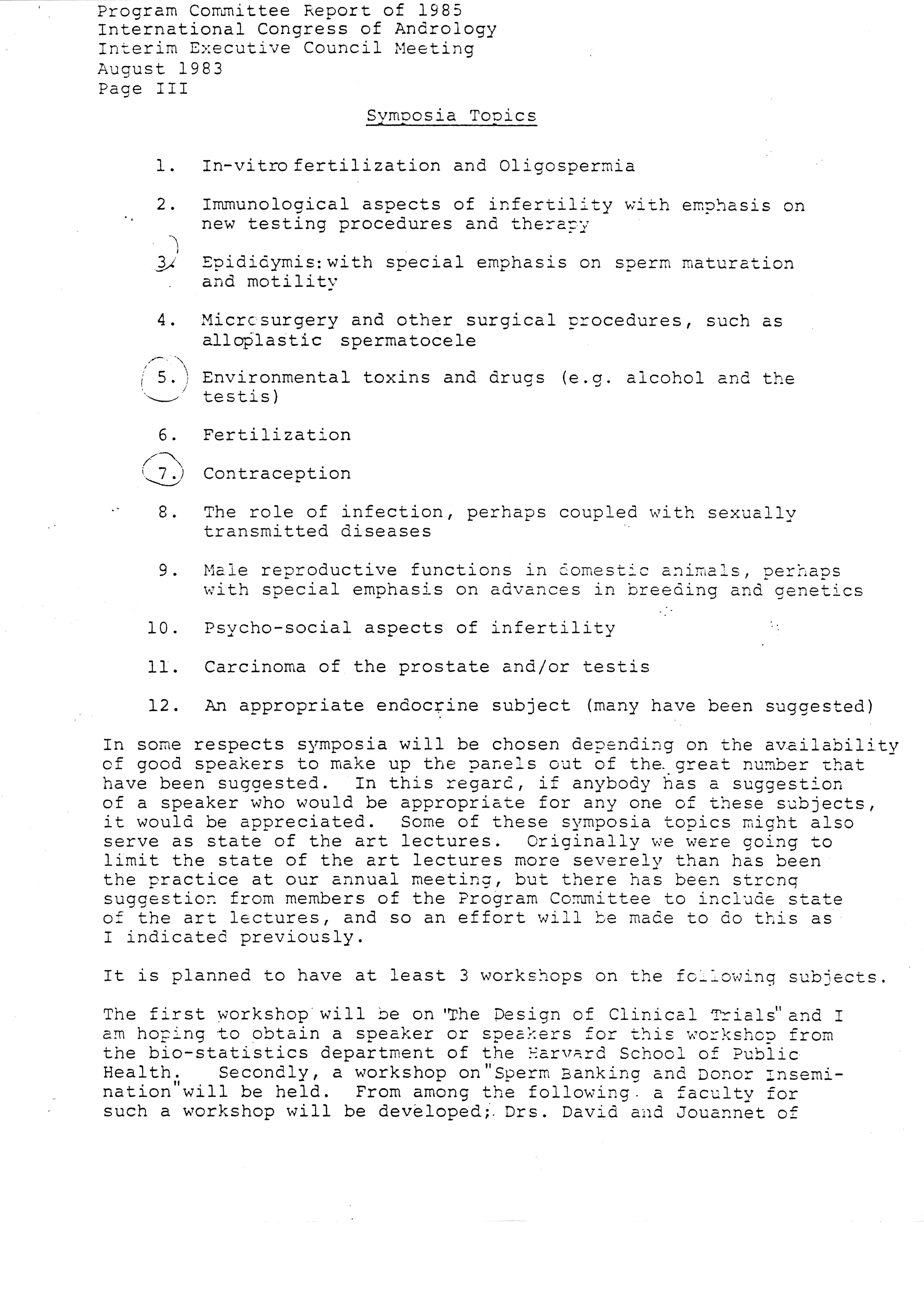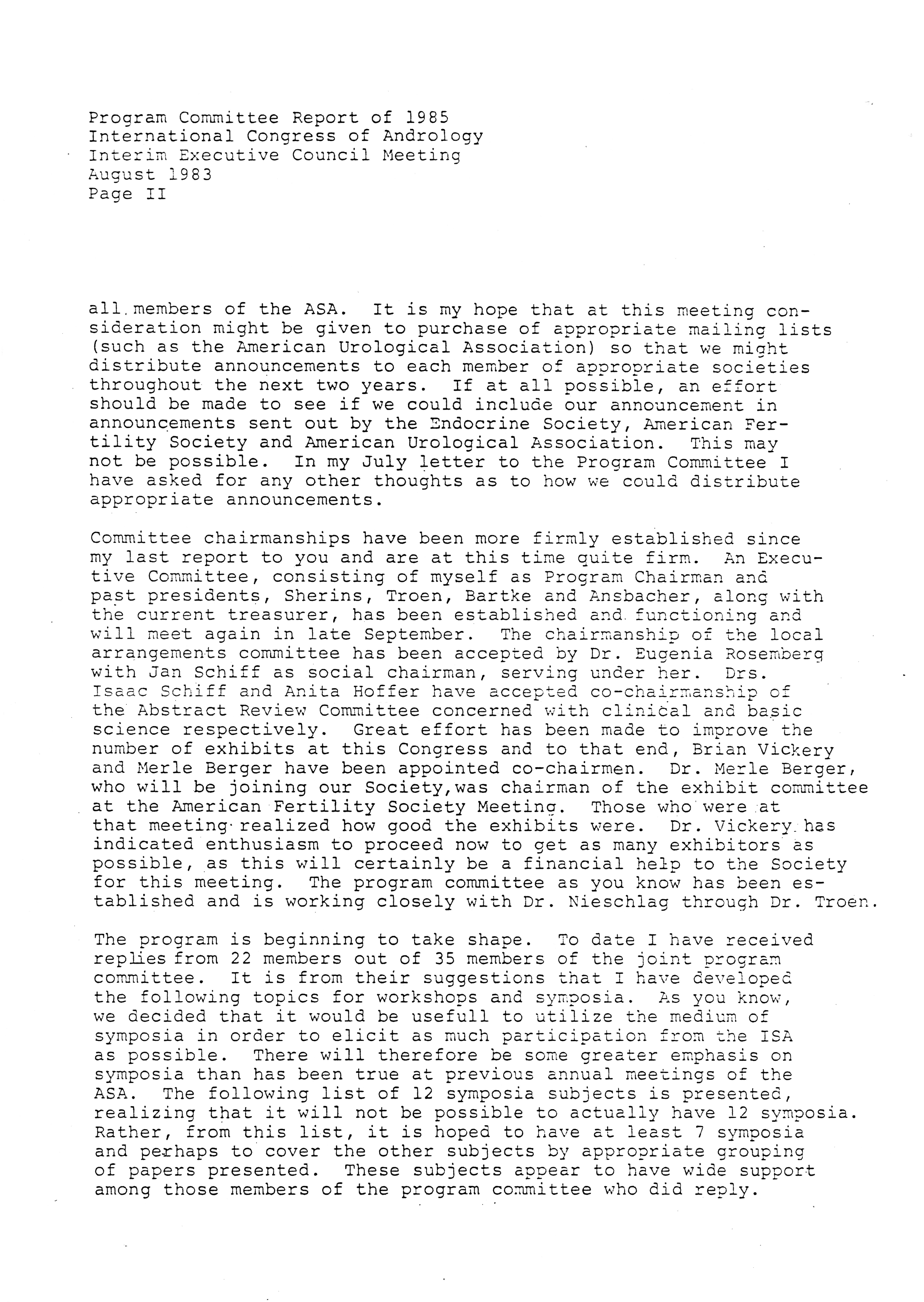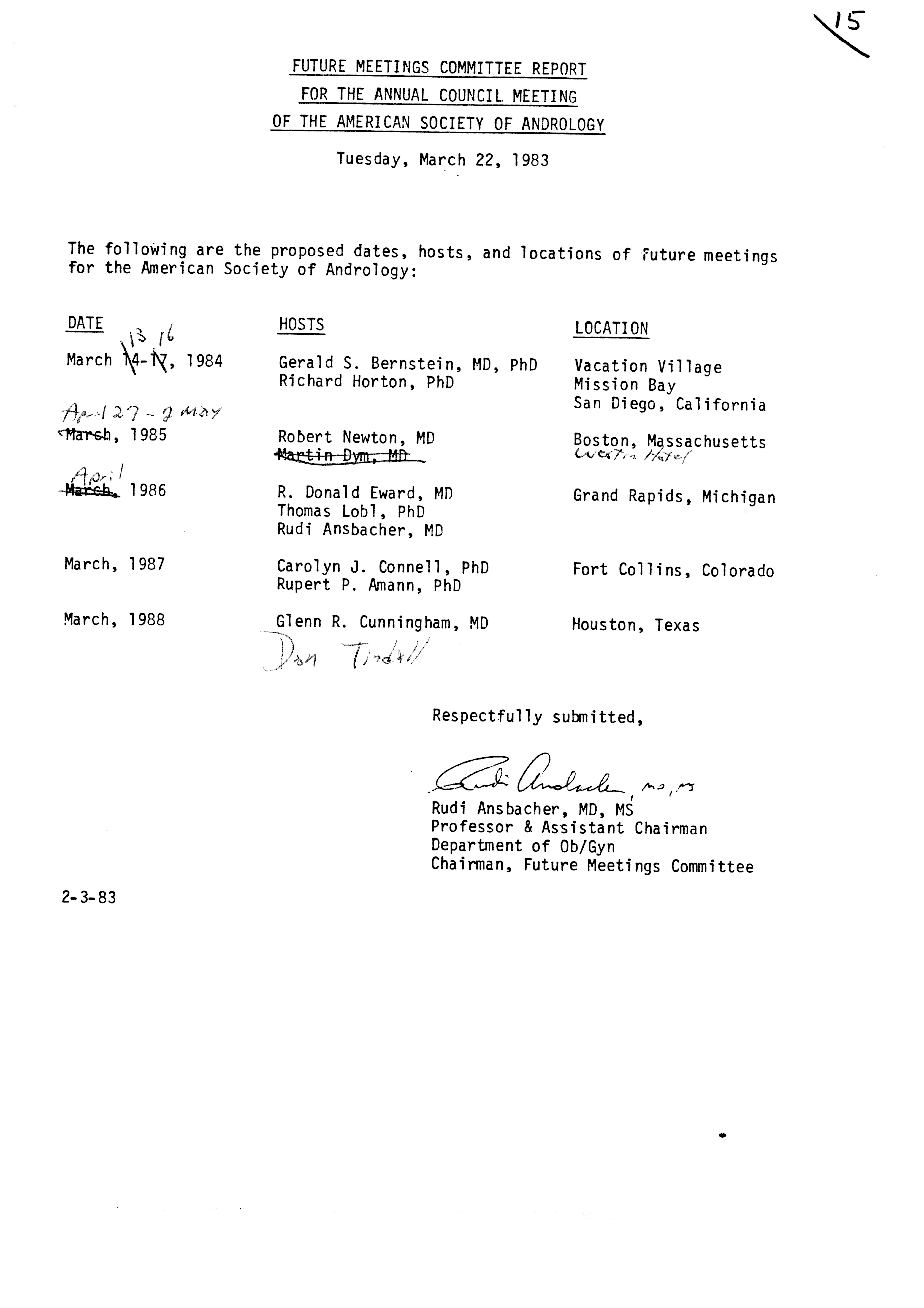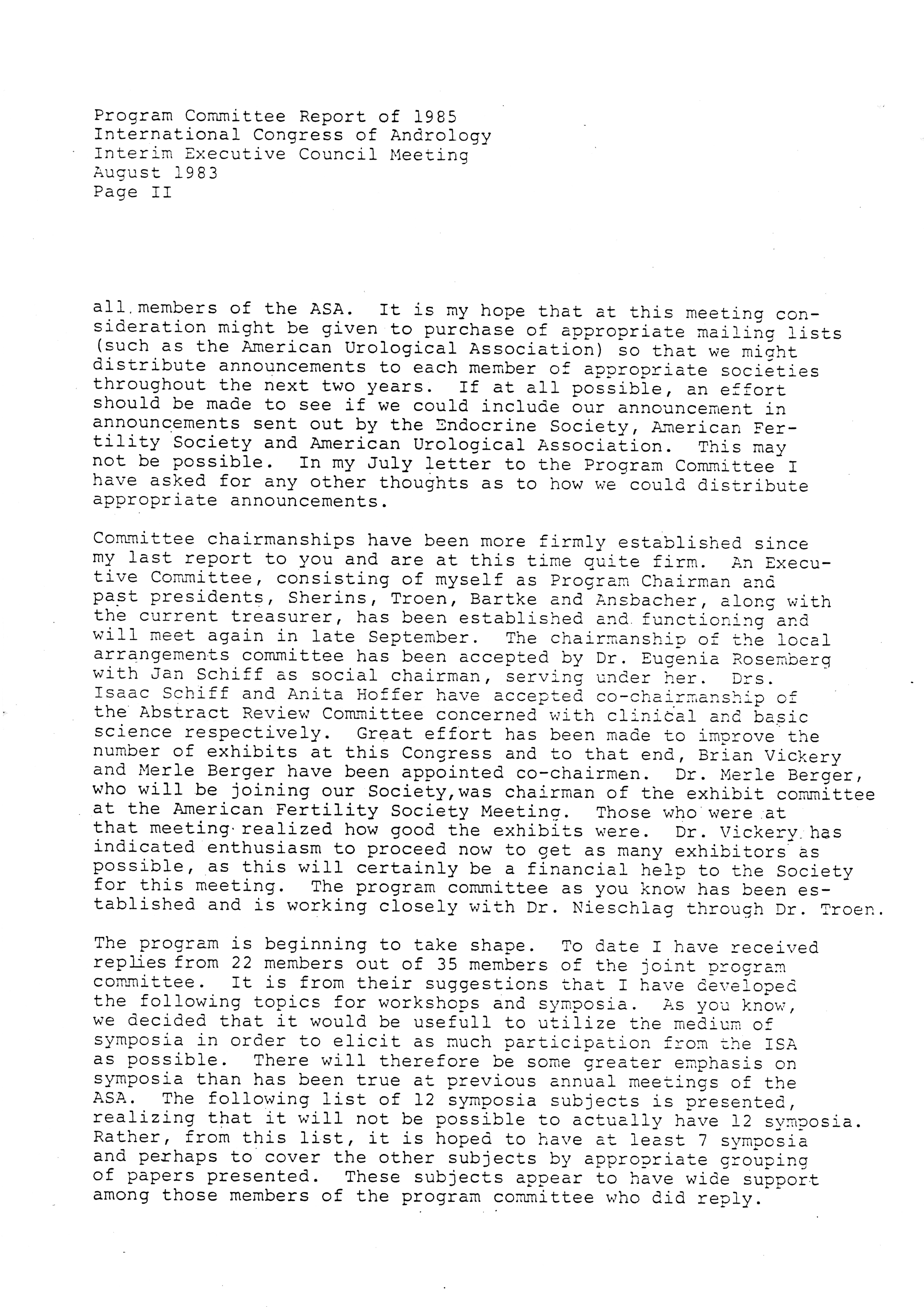 - Executive Council Meetings of the American Society of Andrology, 1983