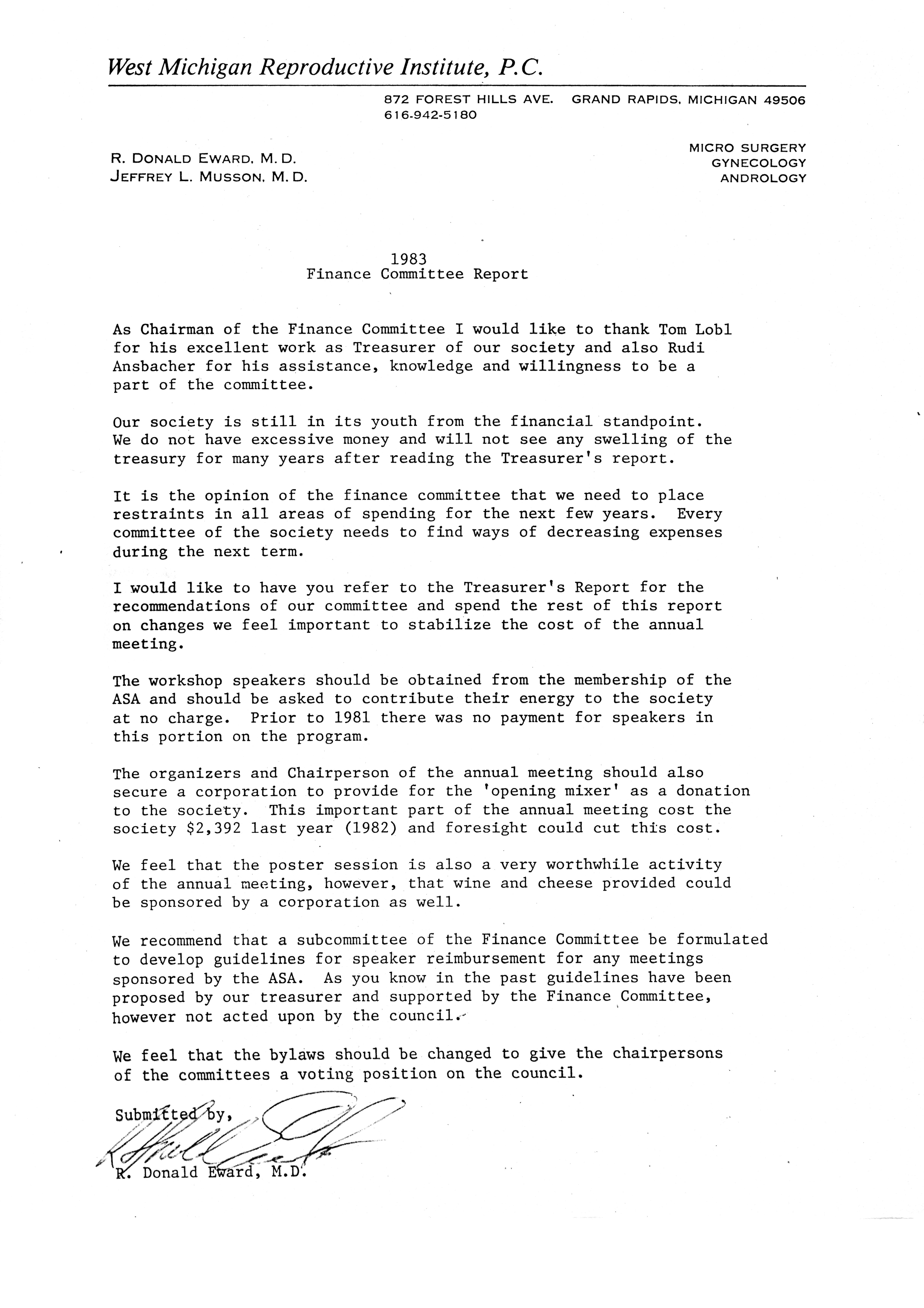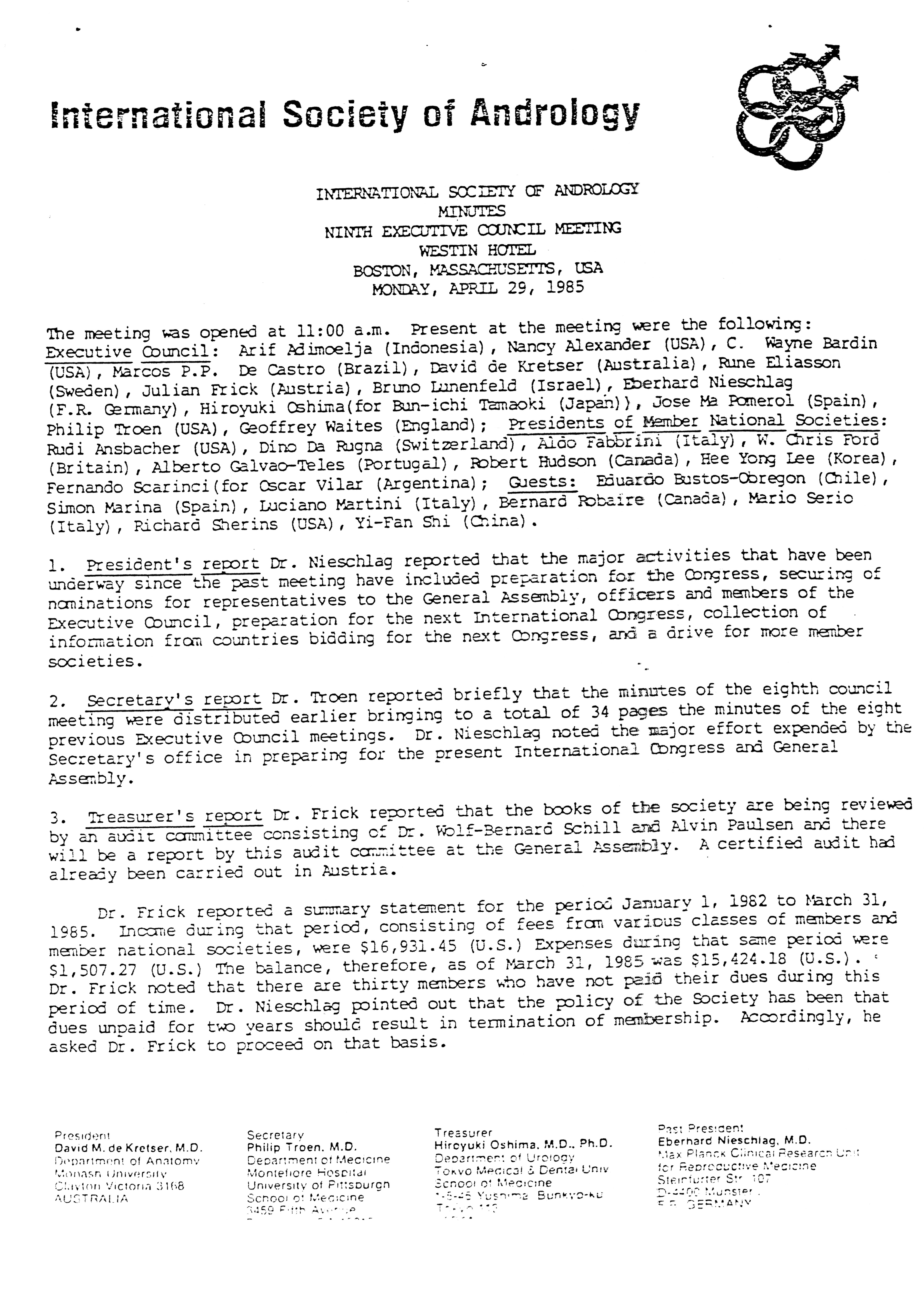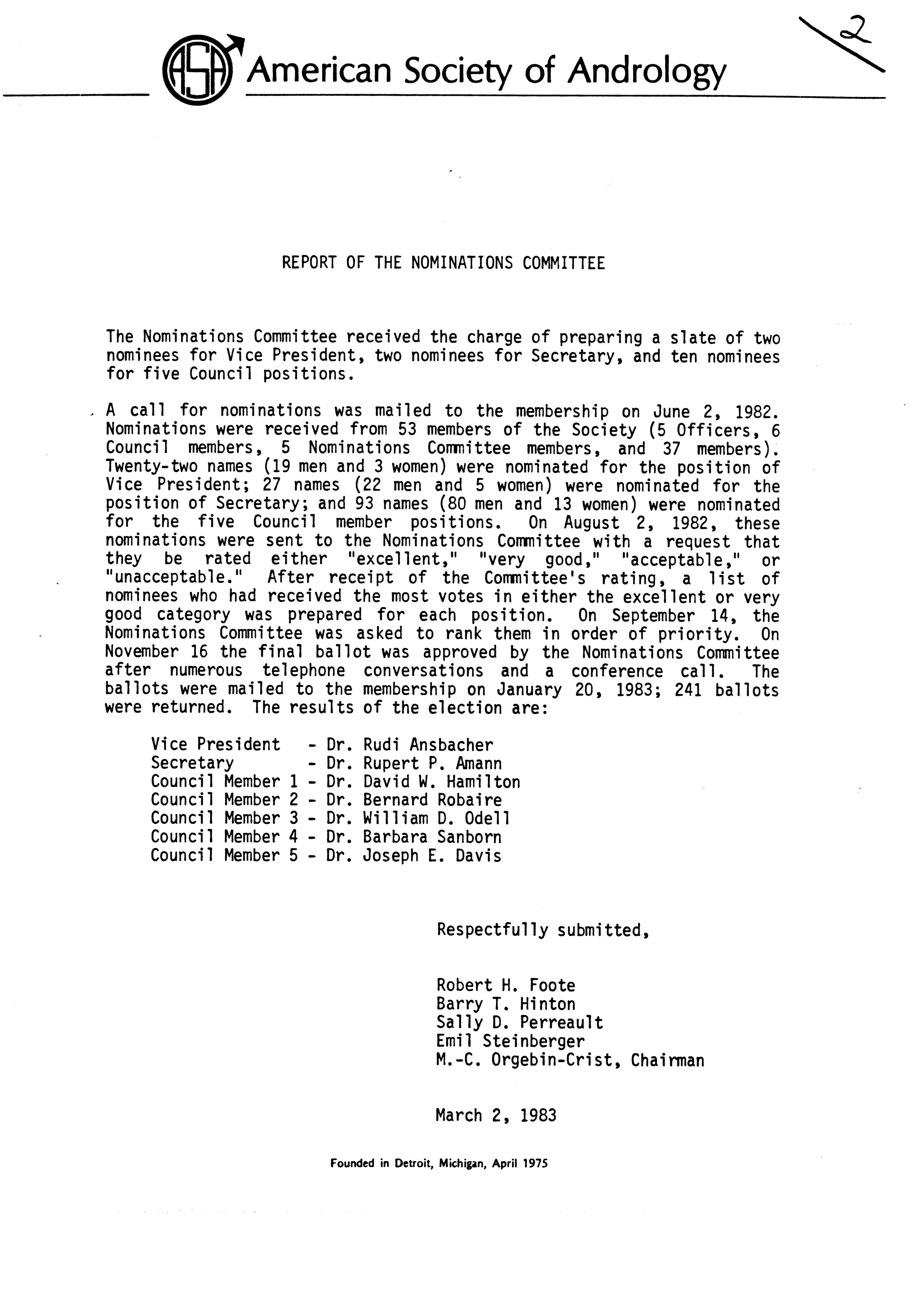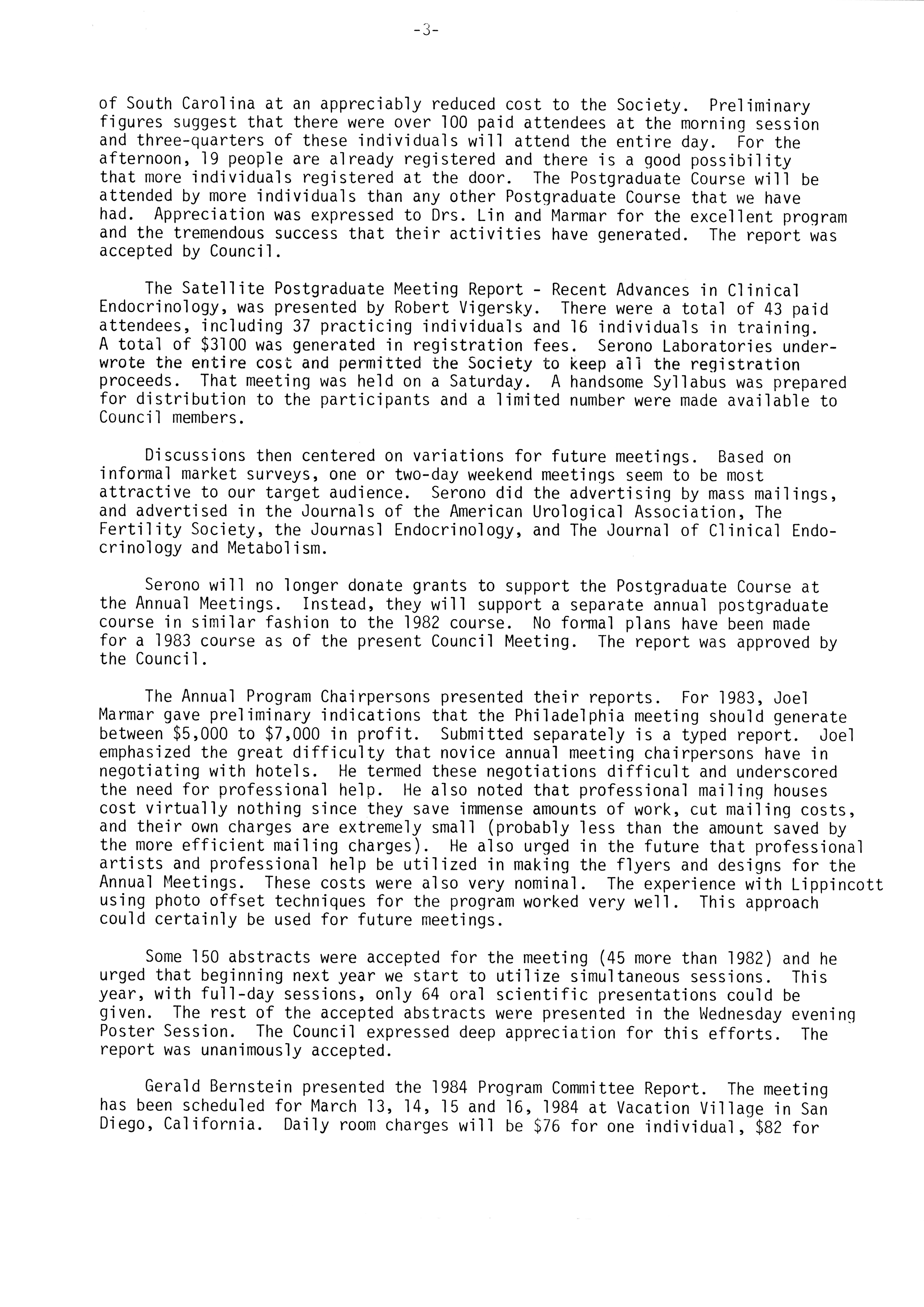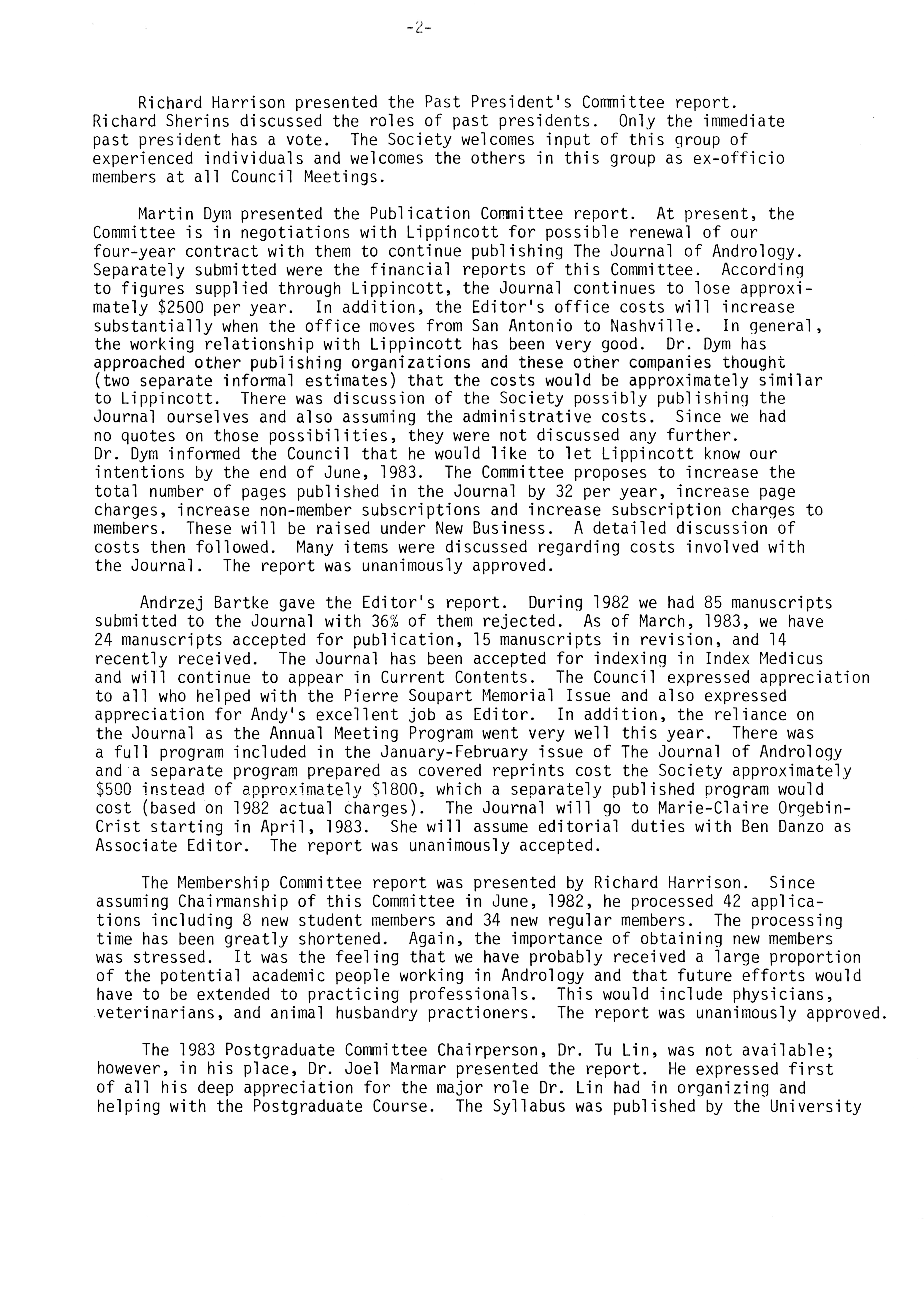 - Executive Council Meetings of the American Society of Andrology, 1983