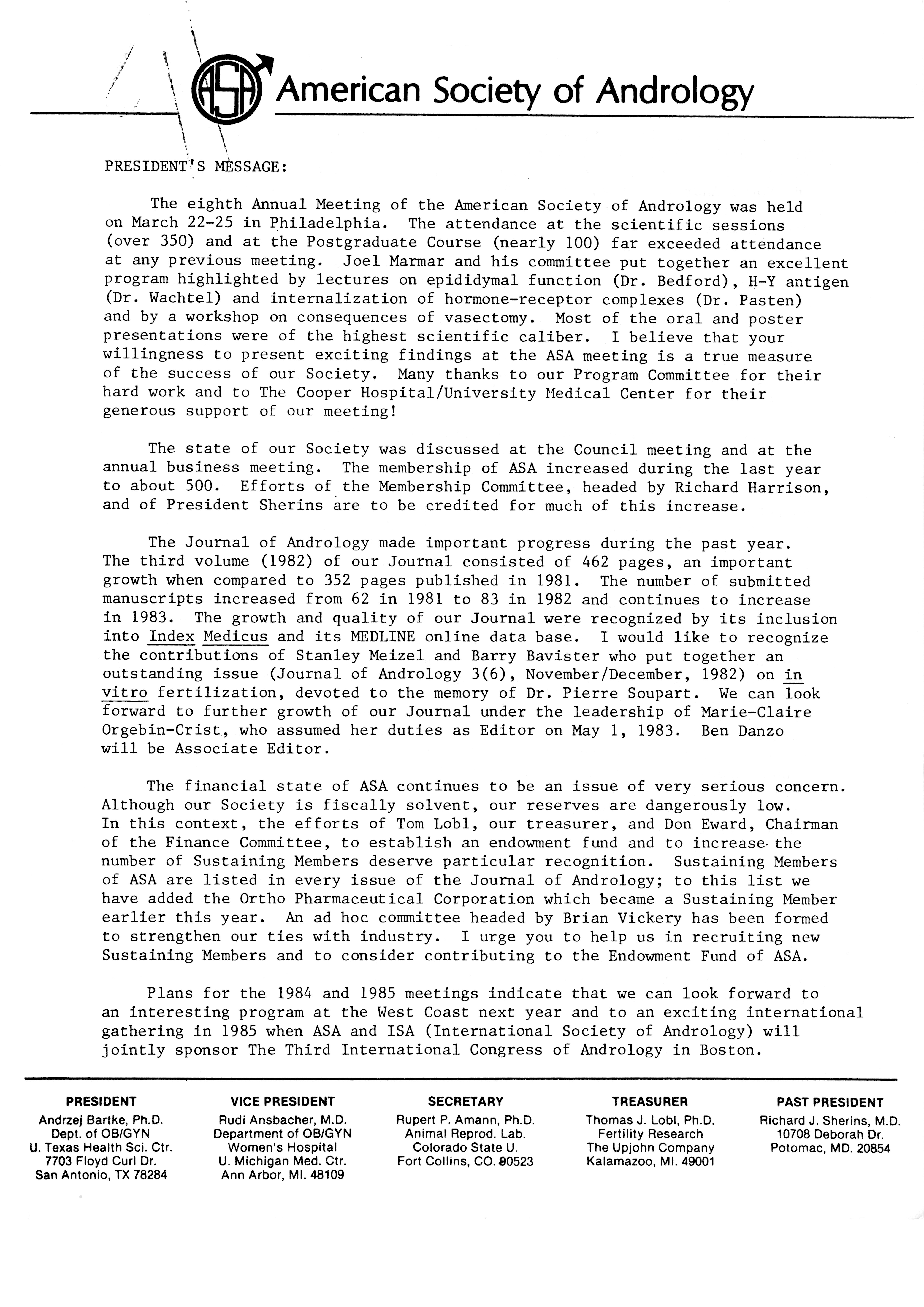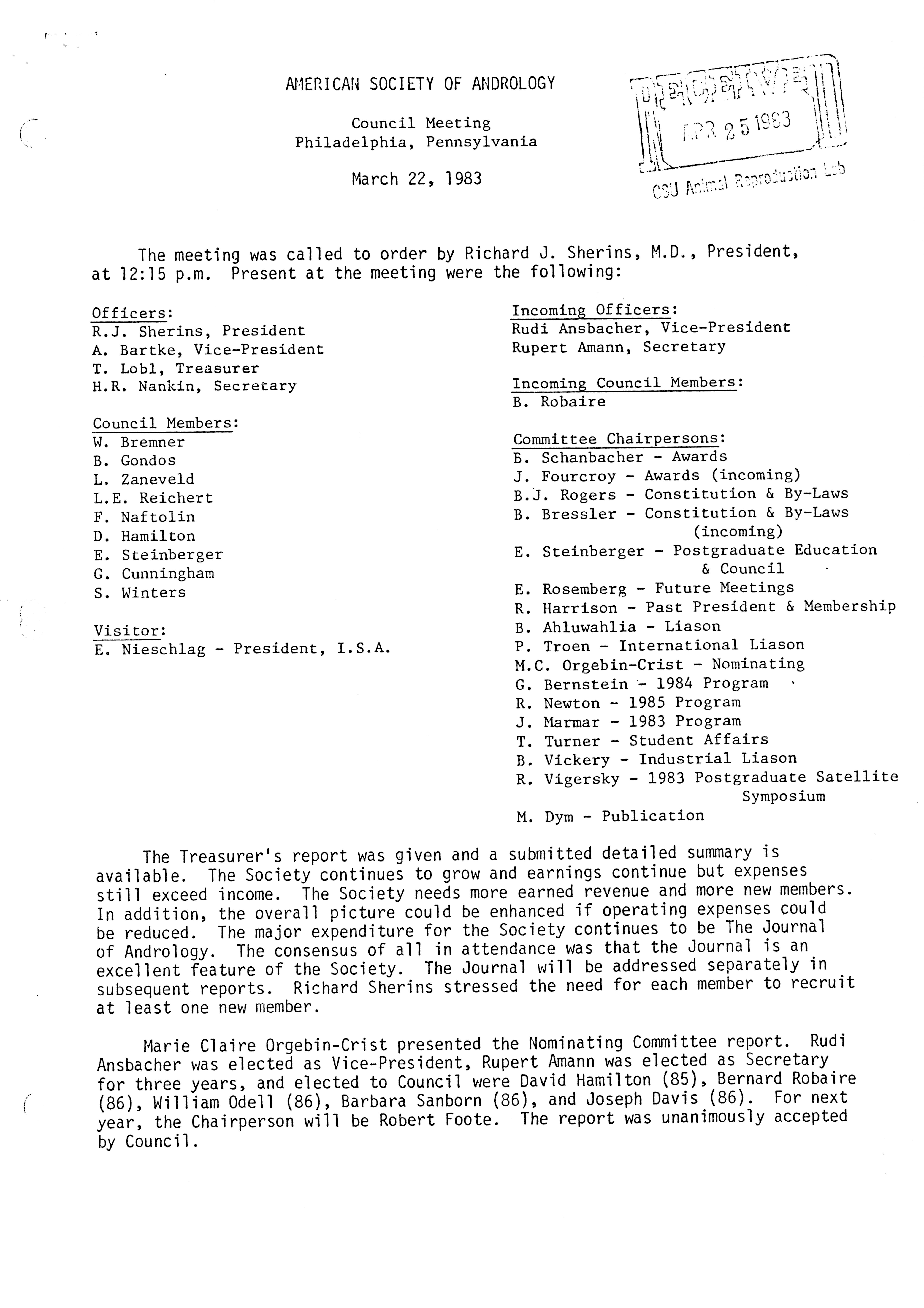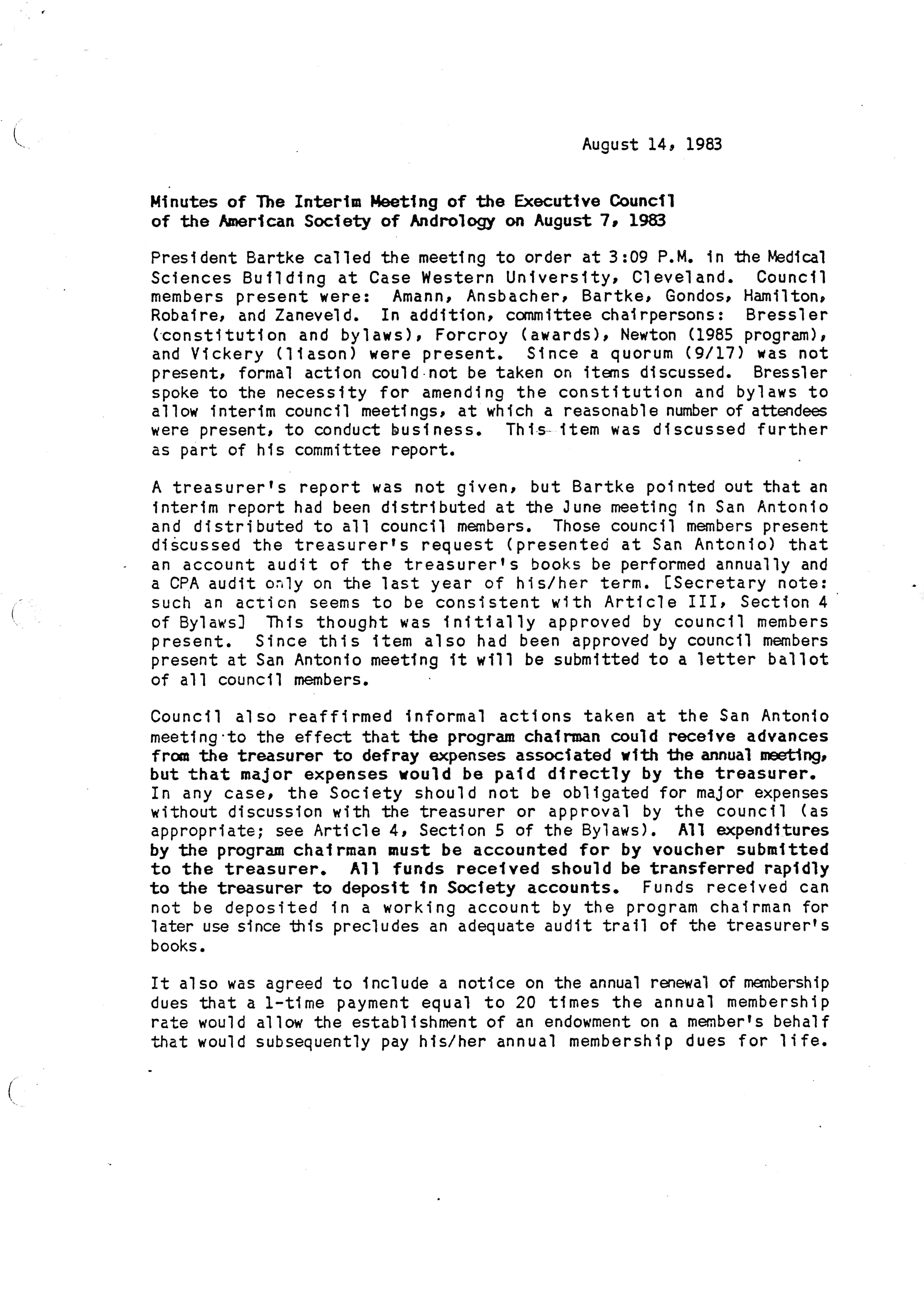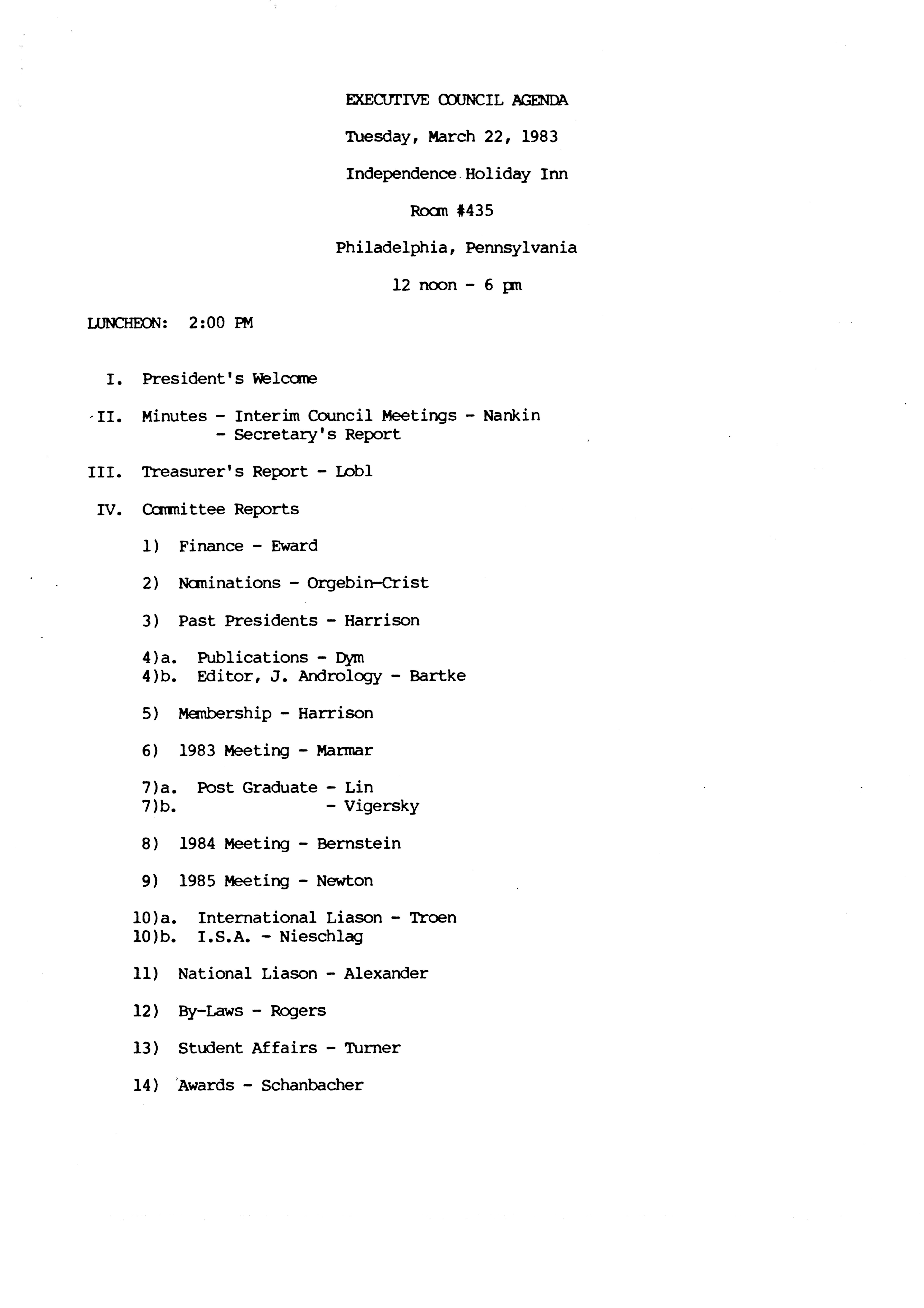 Executive Council Meetings of the American Society of Andrology, 1983