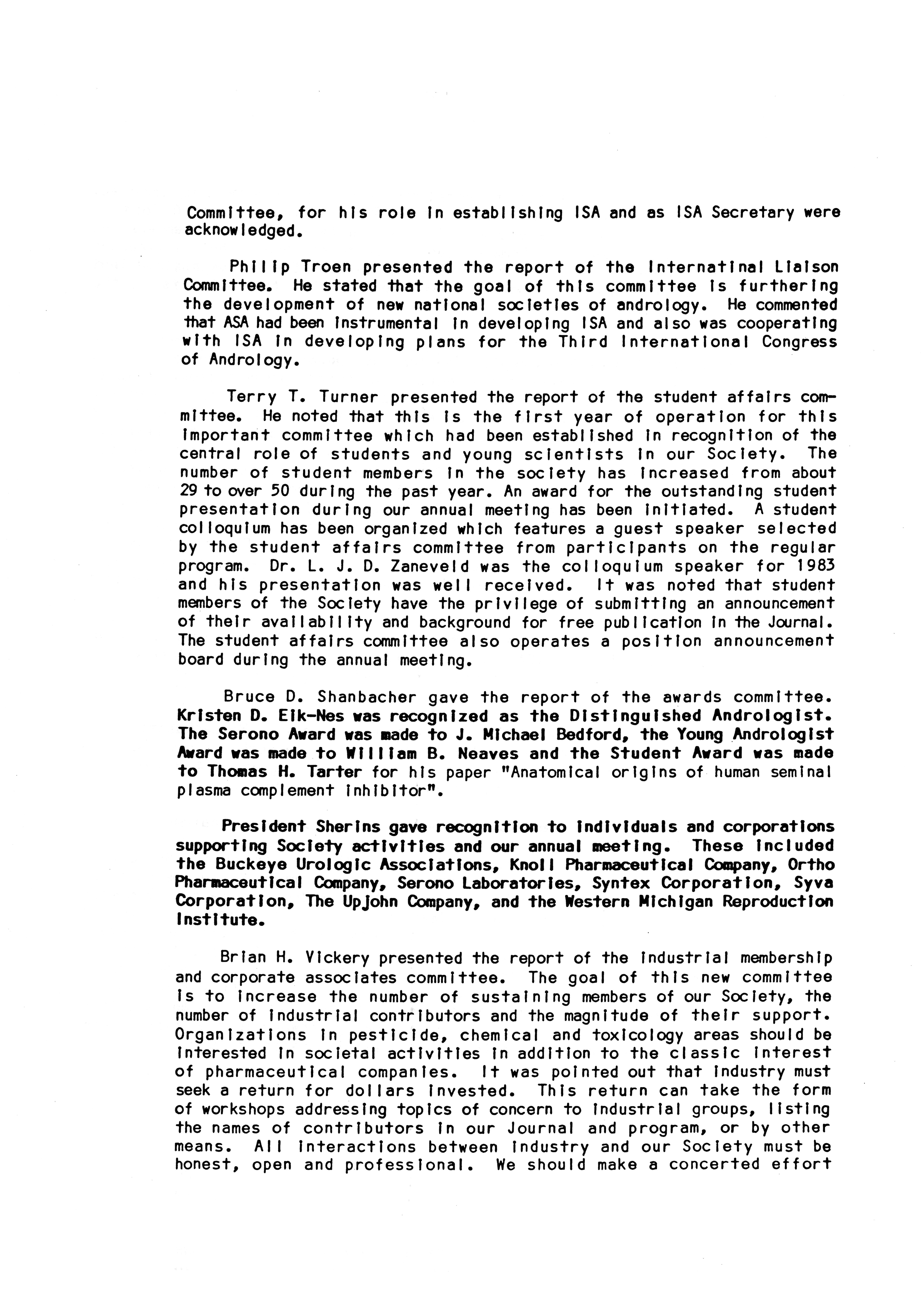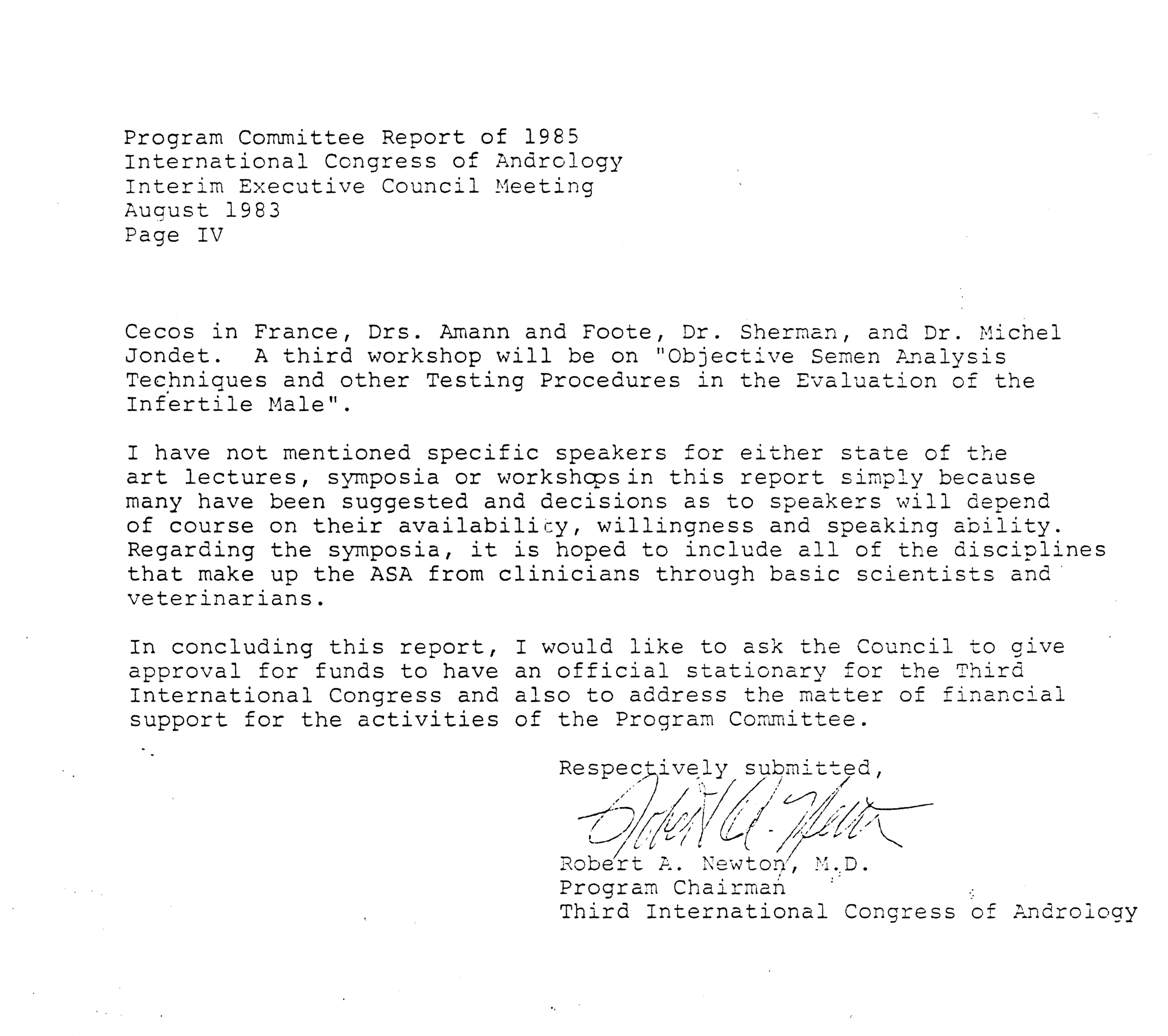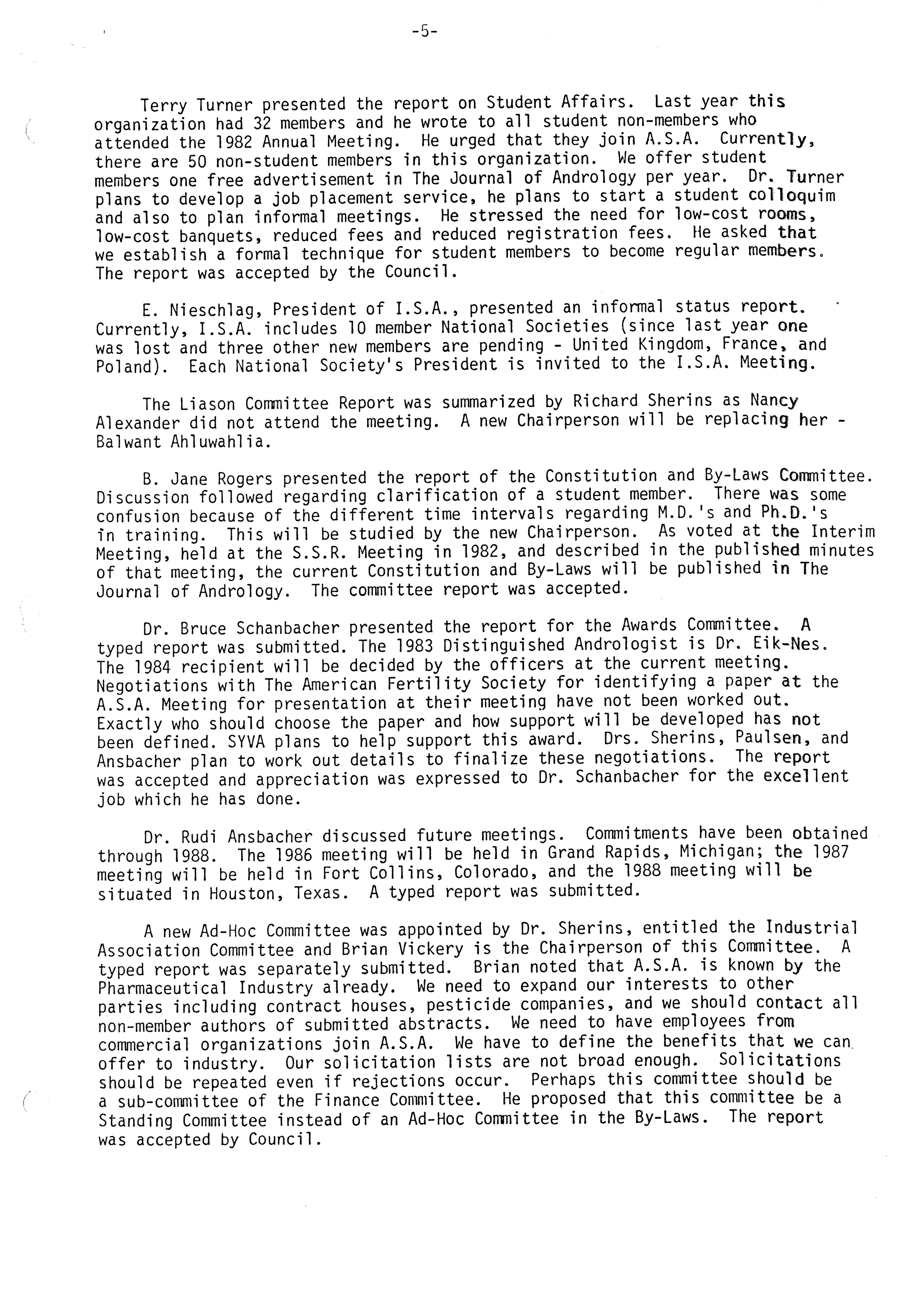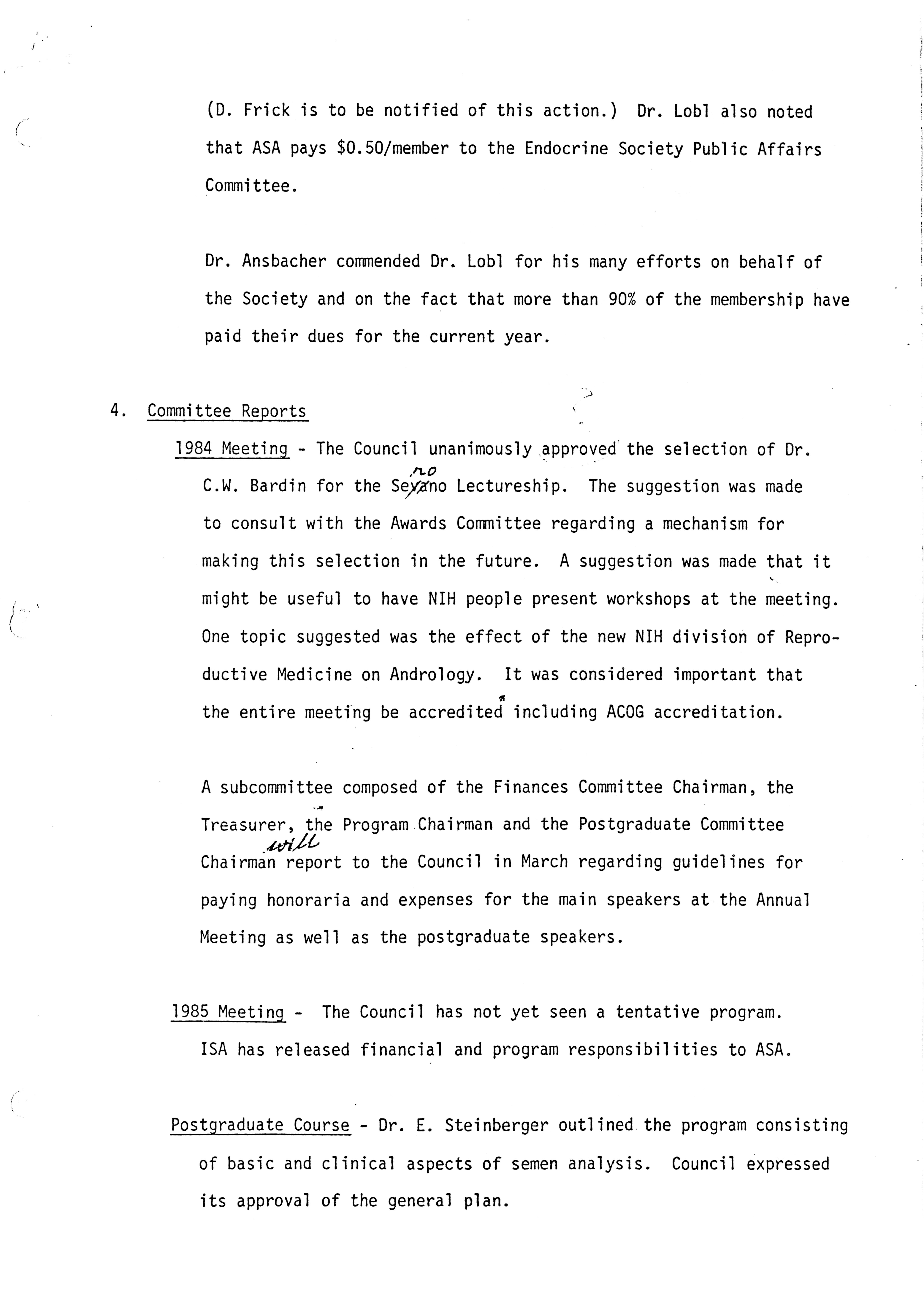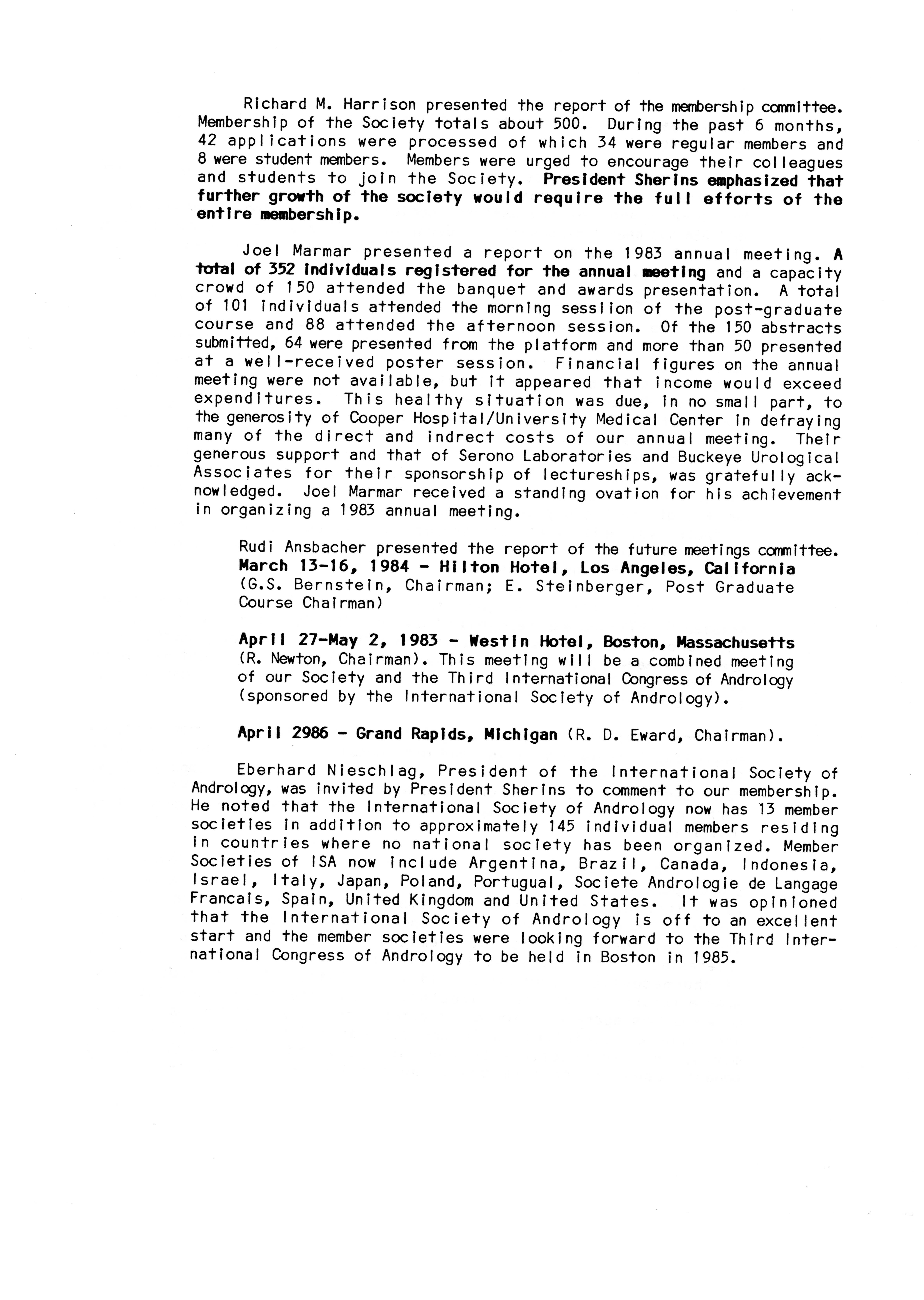 - "Executive Council Meetings of the American Society of Andrology, 1983", American Society of Andrology Collection, Iowa State University Library Digital Collections