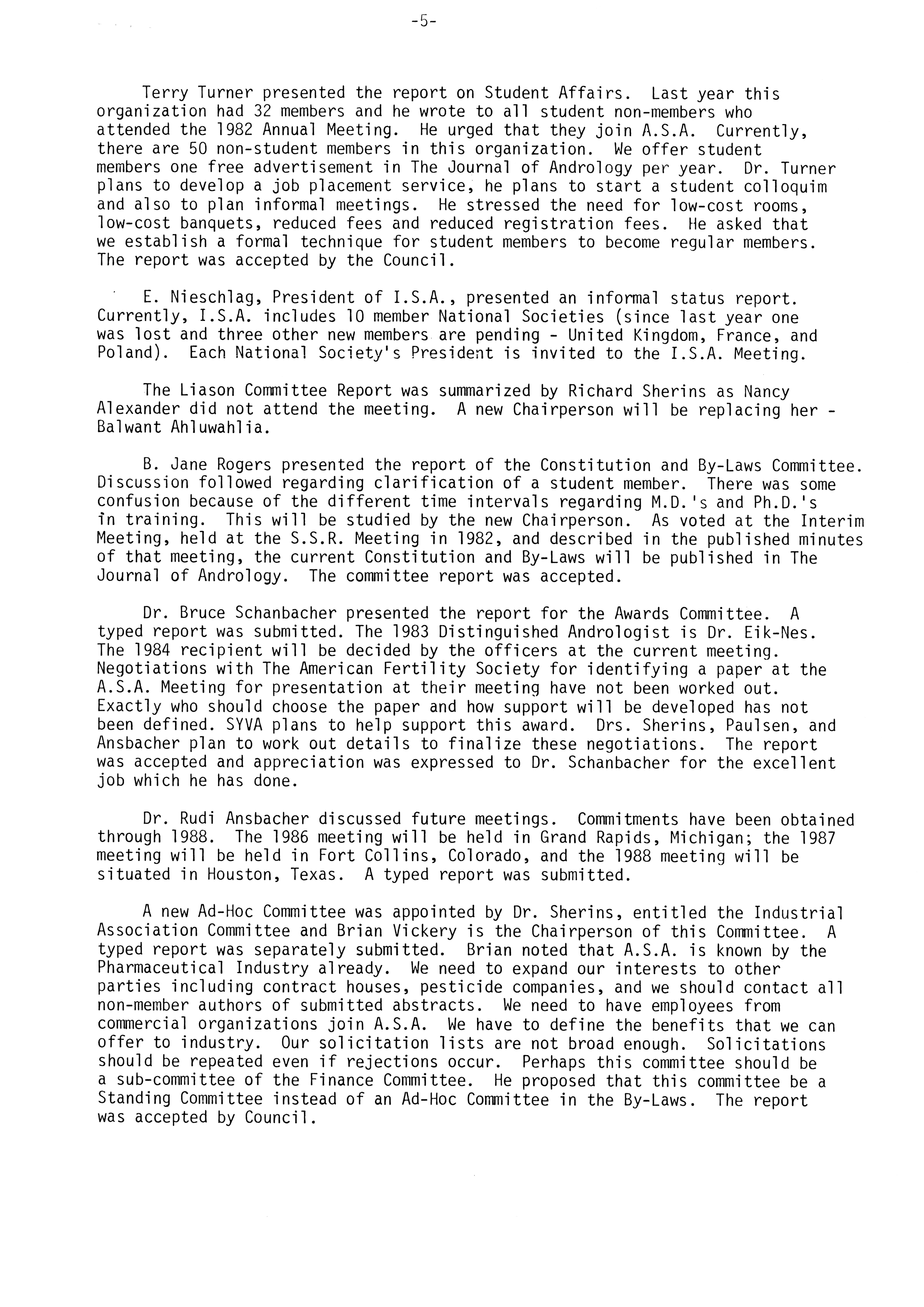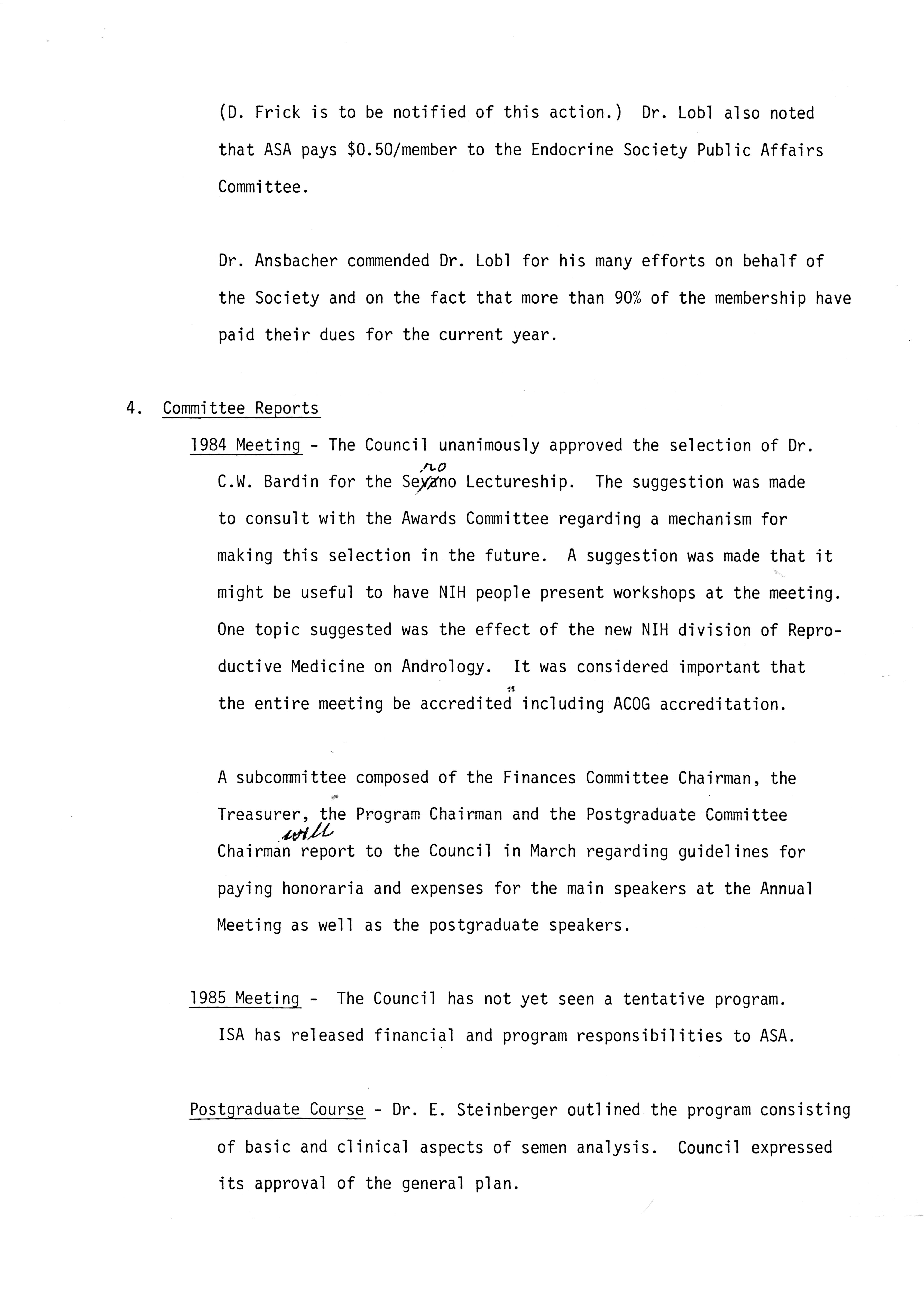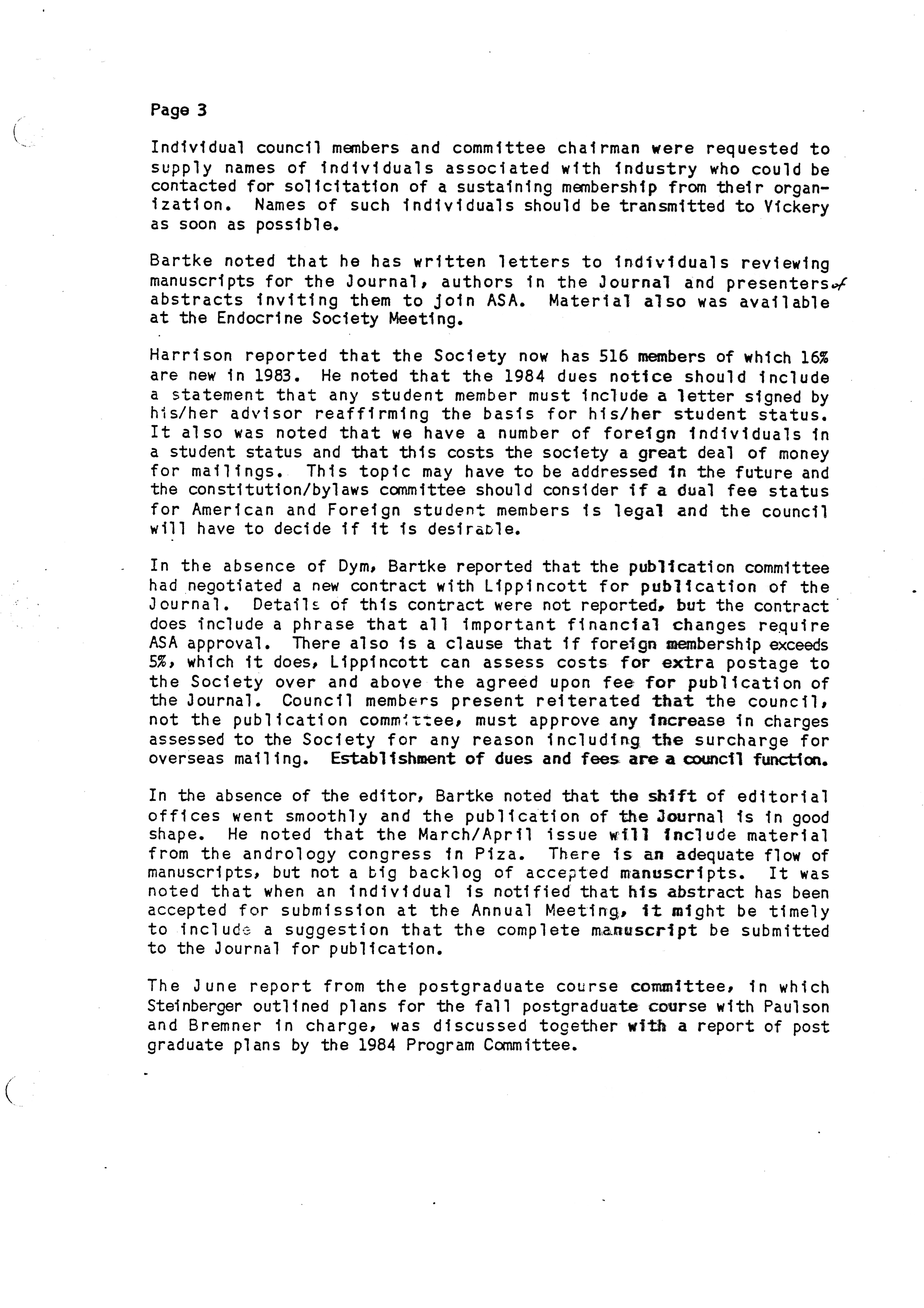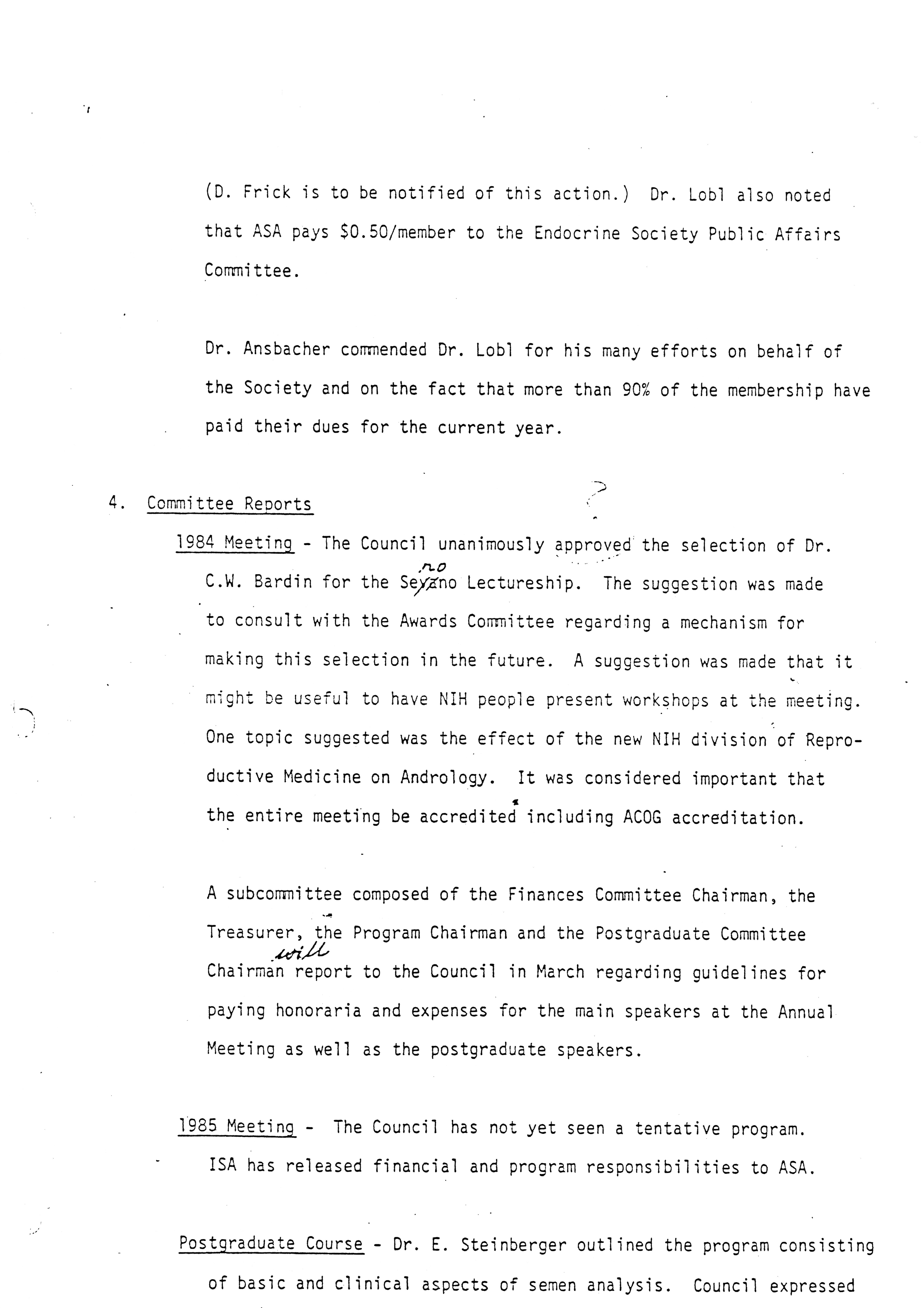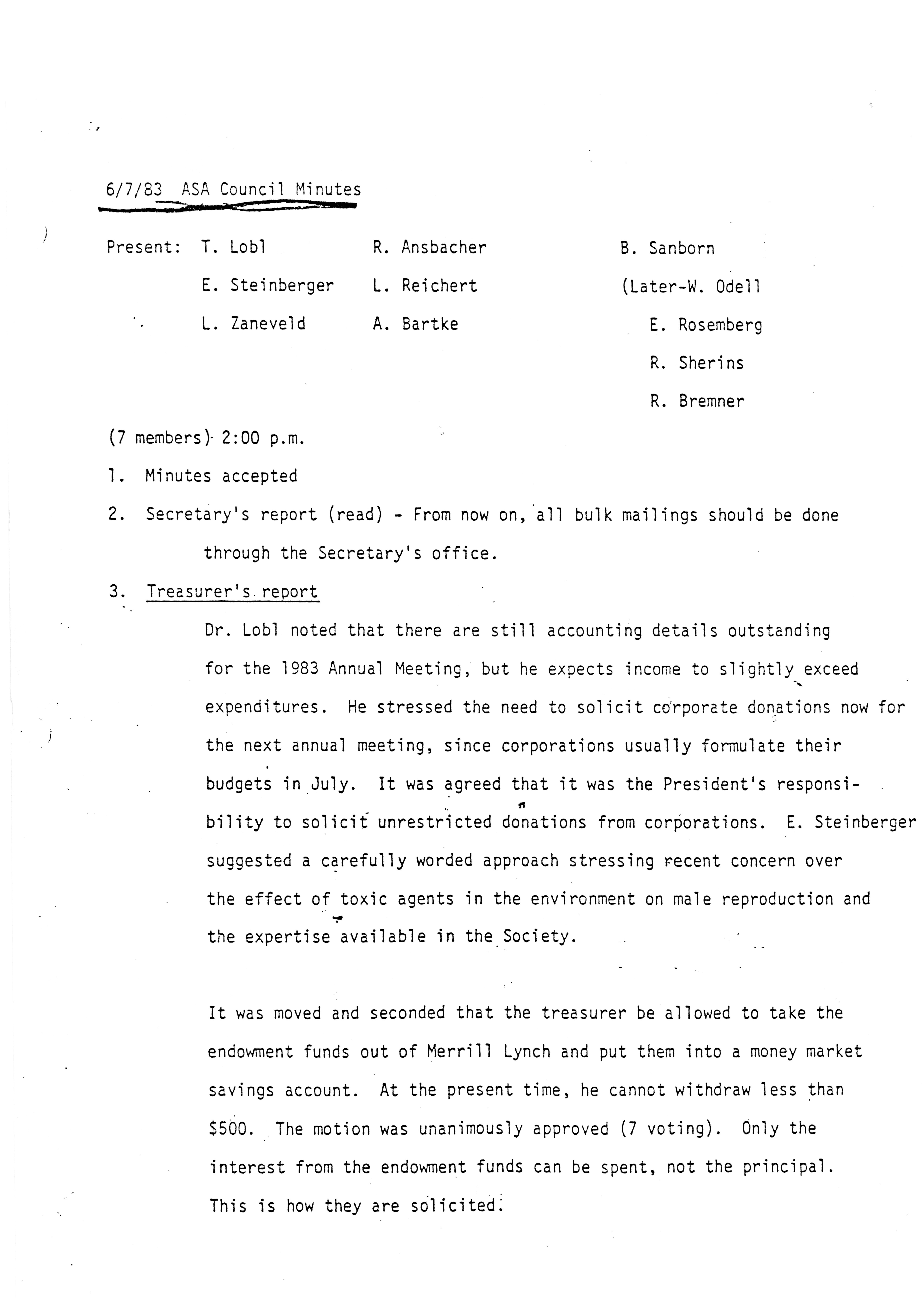 - "Executive Council Meetings of the American Society of Andrology, 1983", American Society of Andrology Collection, Iowa State University Library Digital Collections
