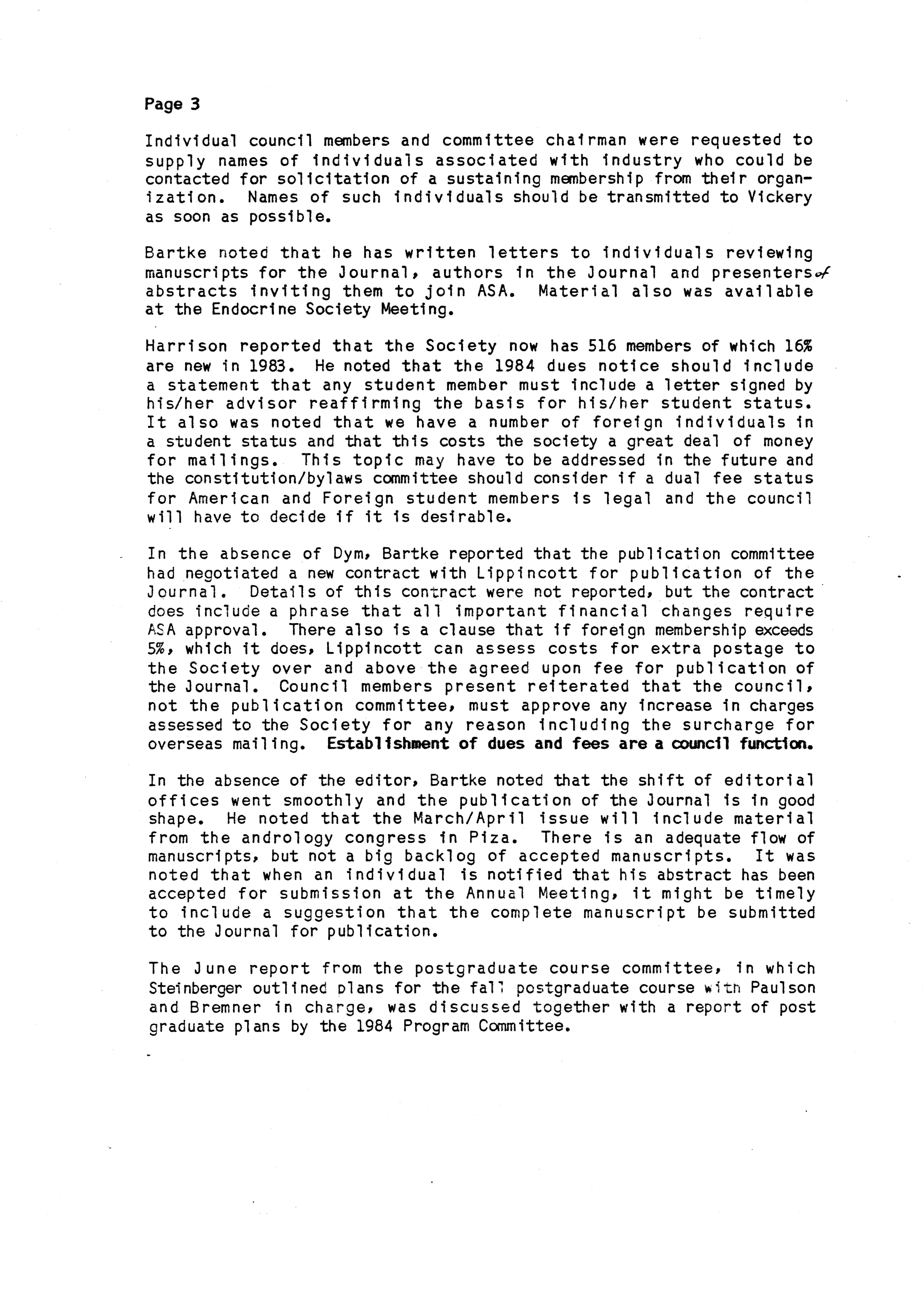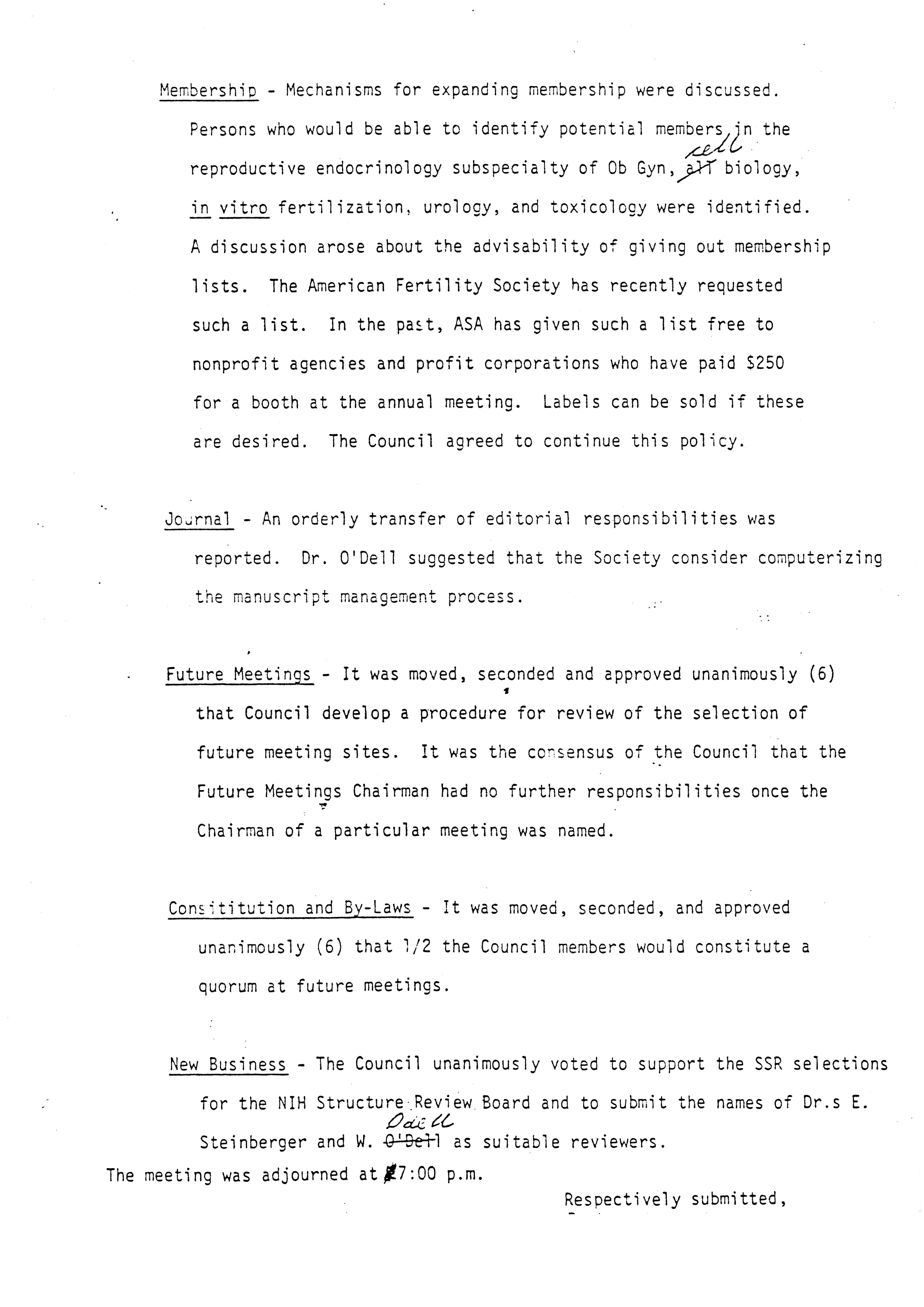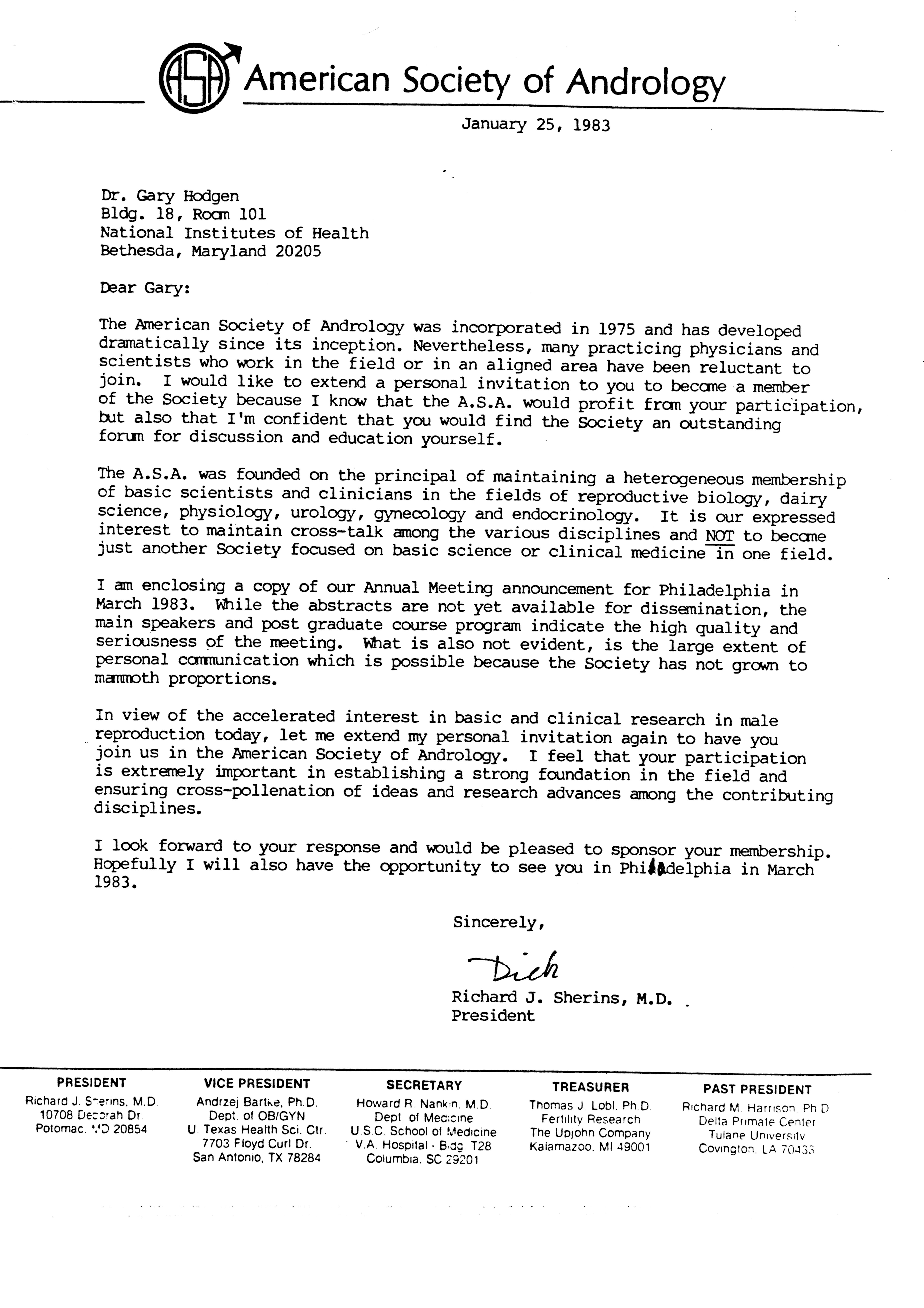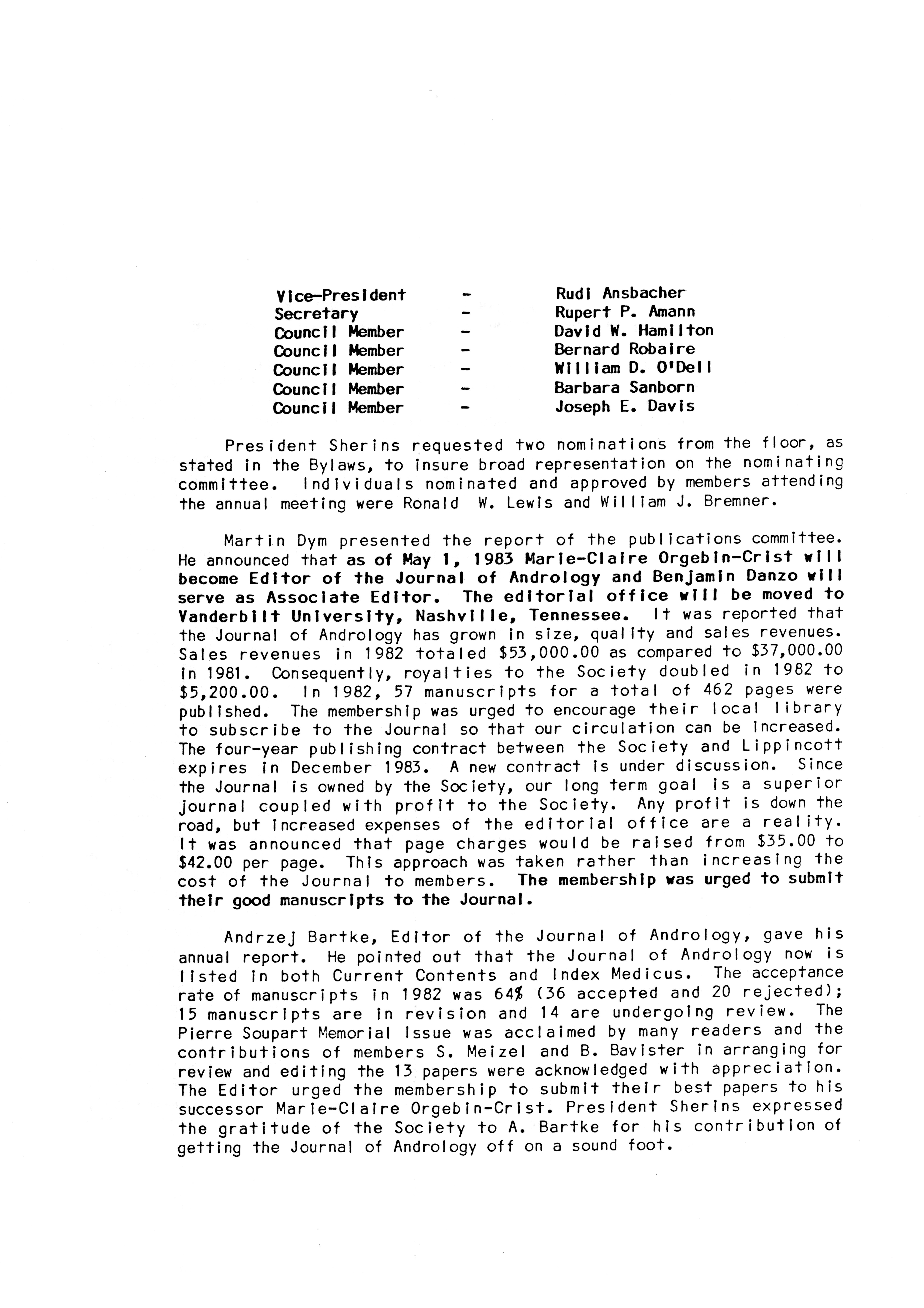 - "Executive Council Meetings of the American Society of Andrology, 1983", American Society of Andrology Collection, Iowa State University Library Digital Collections