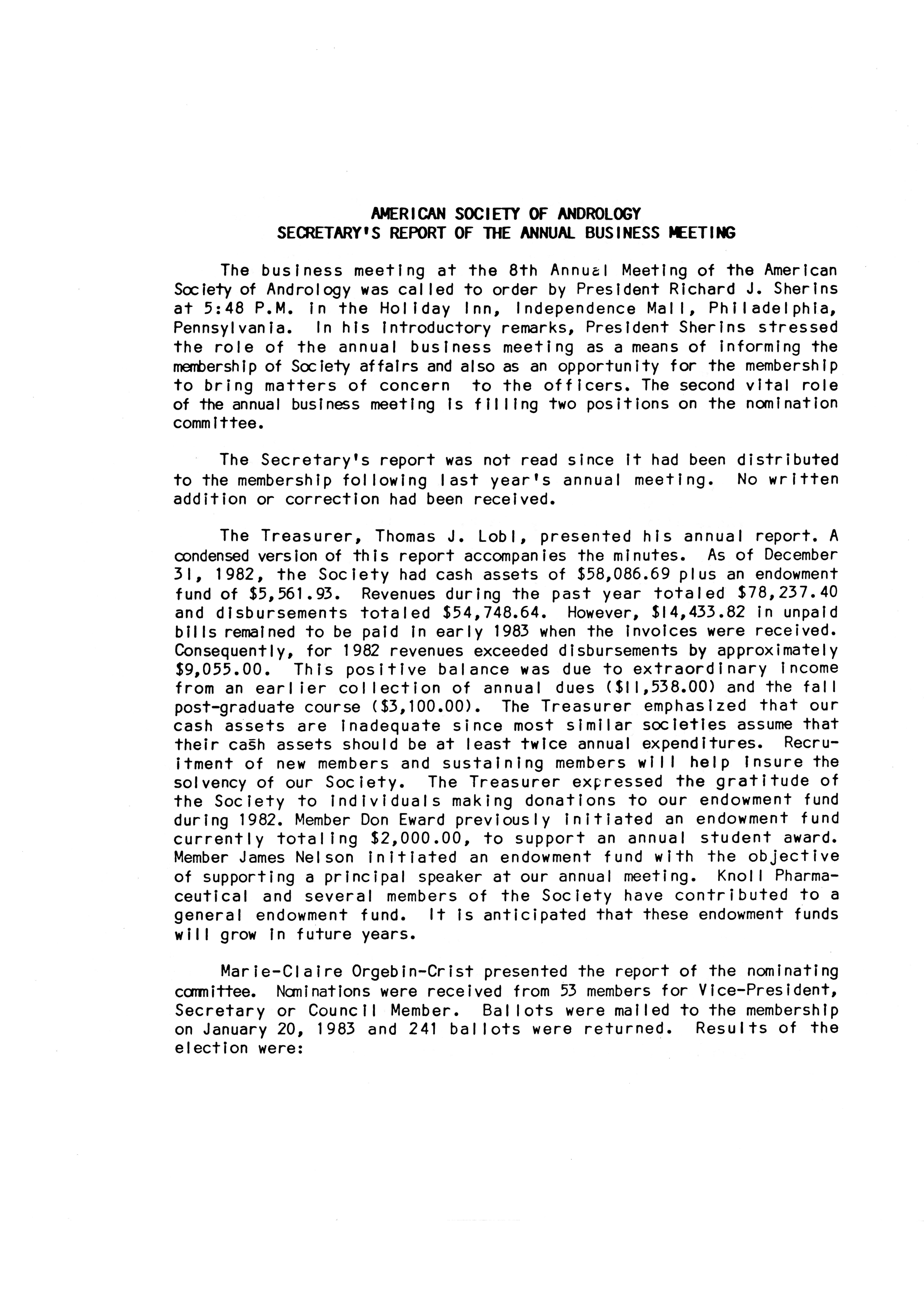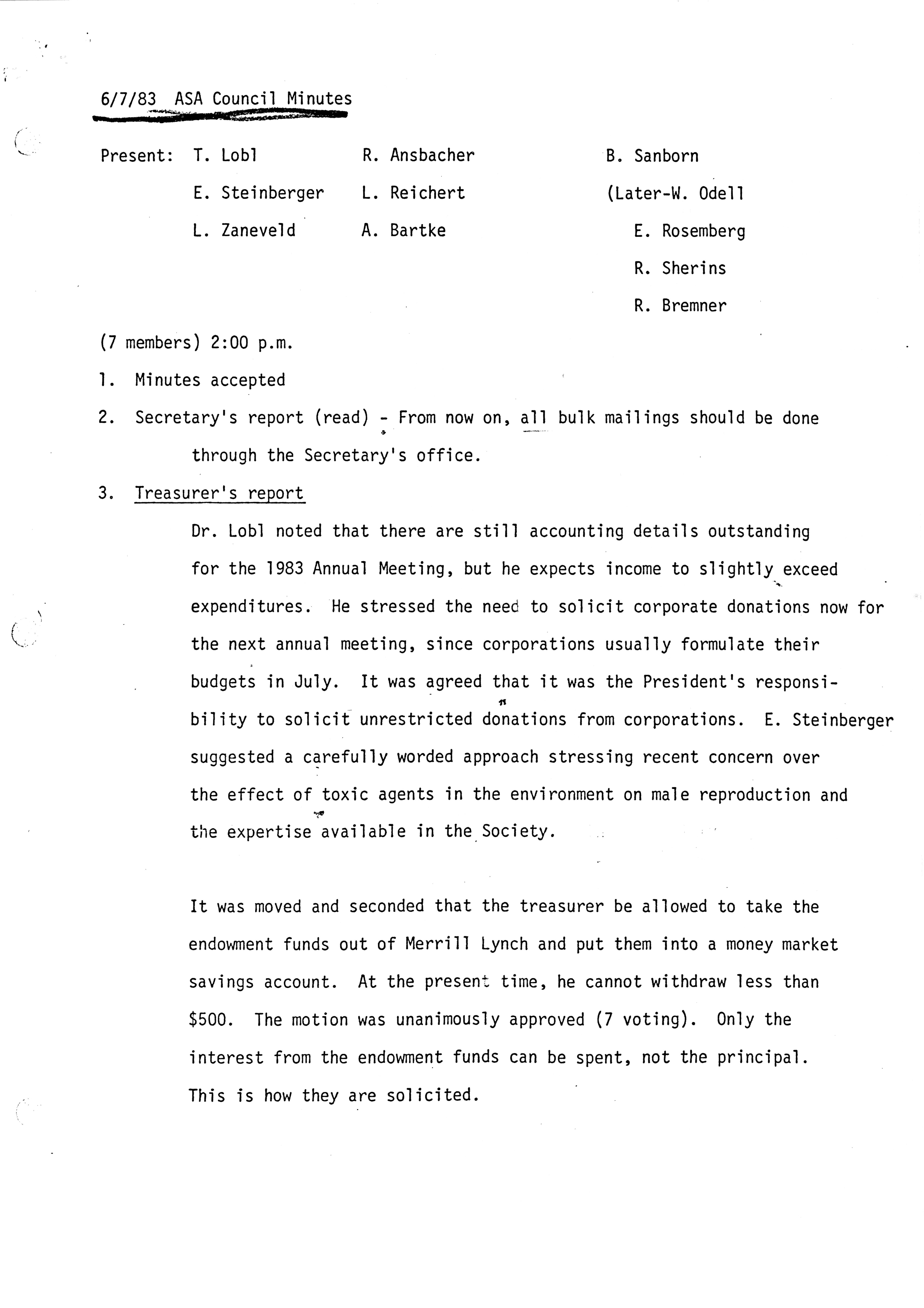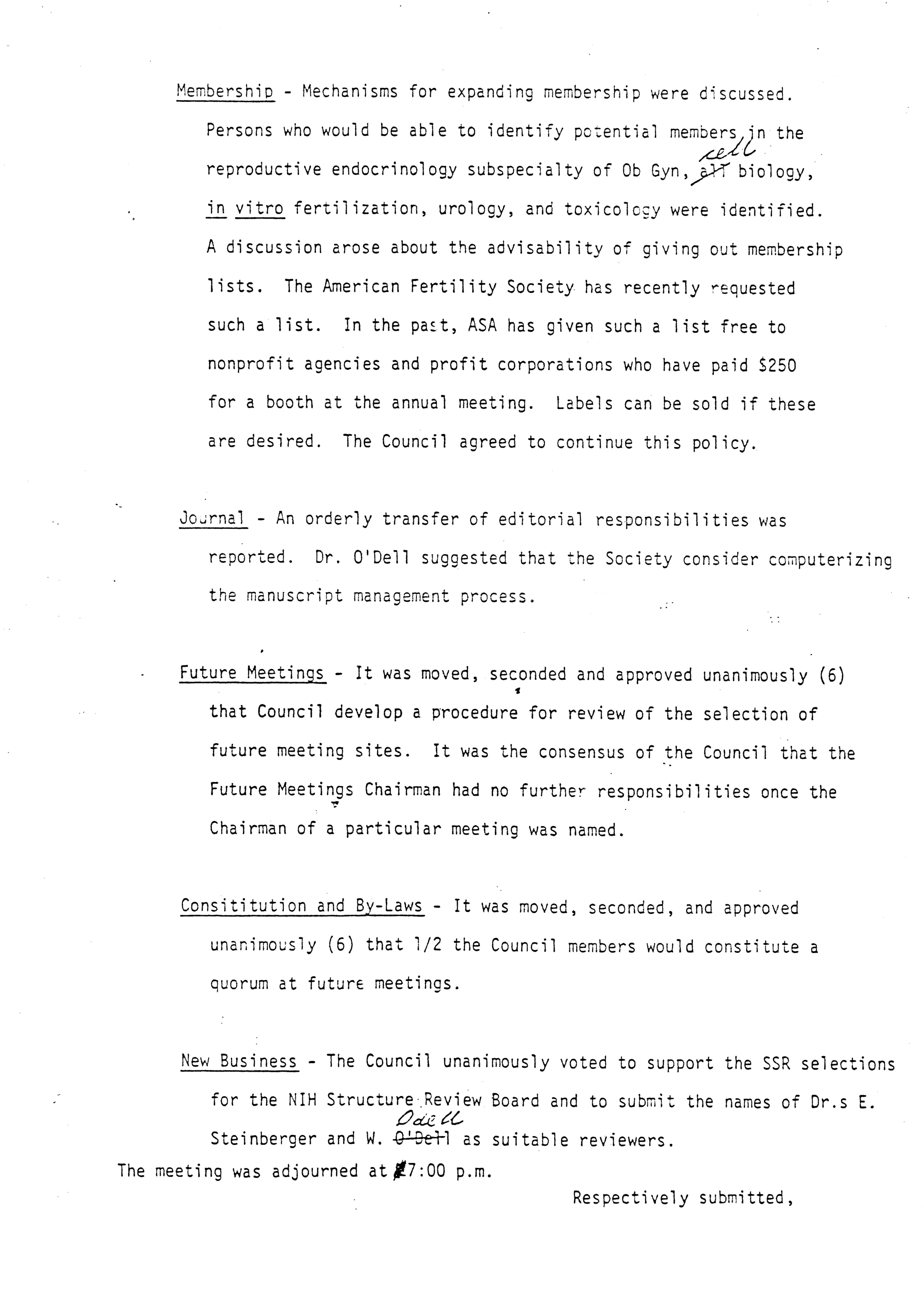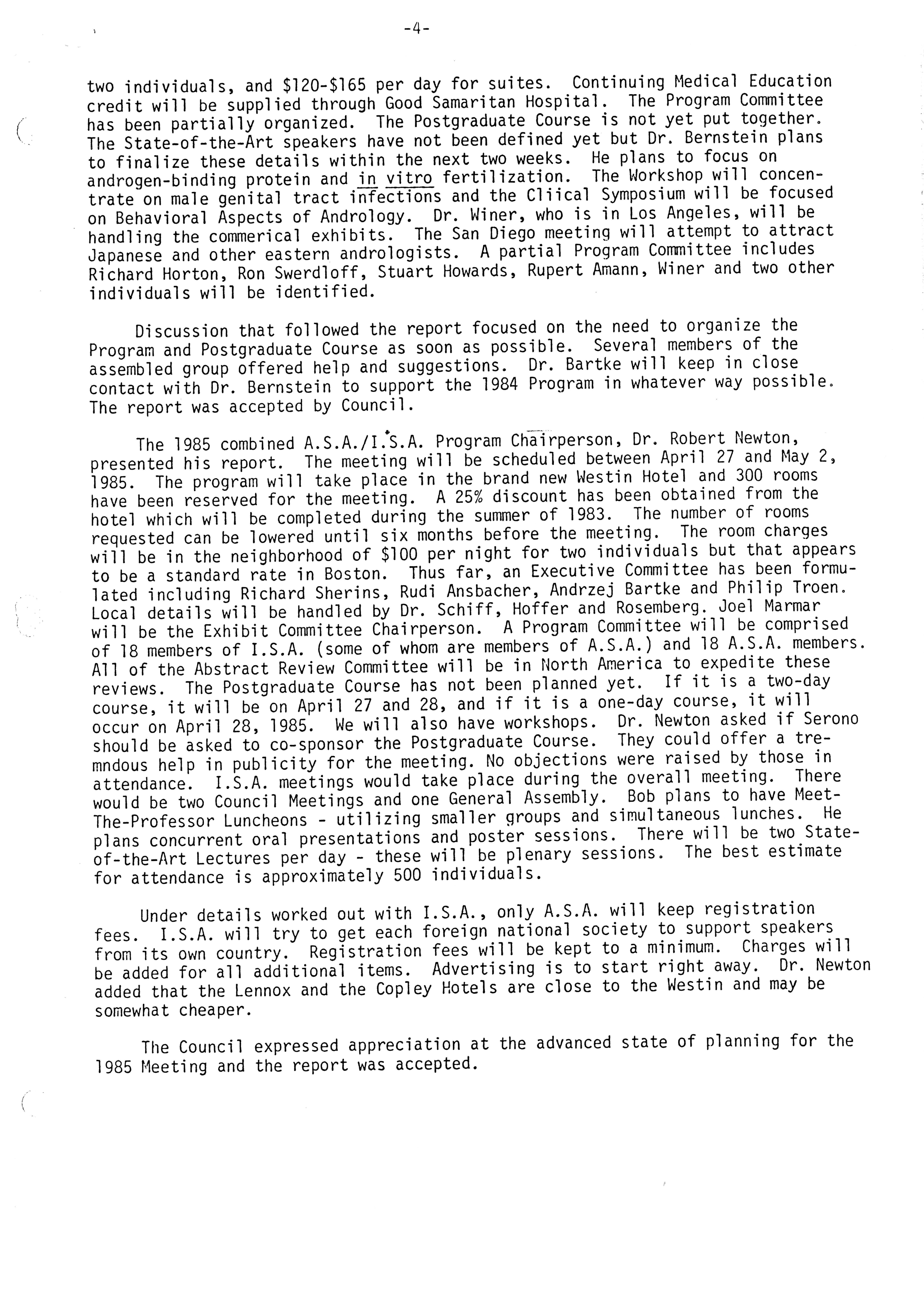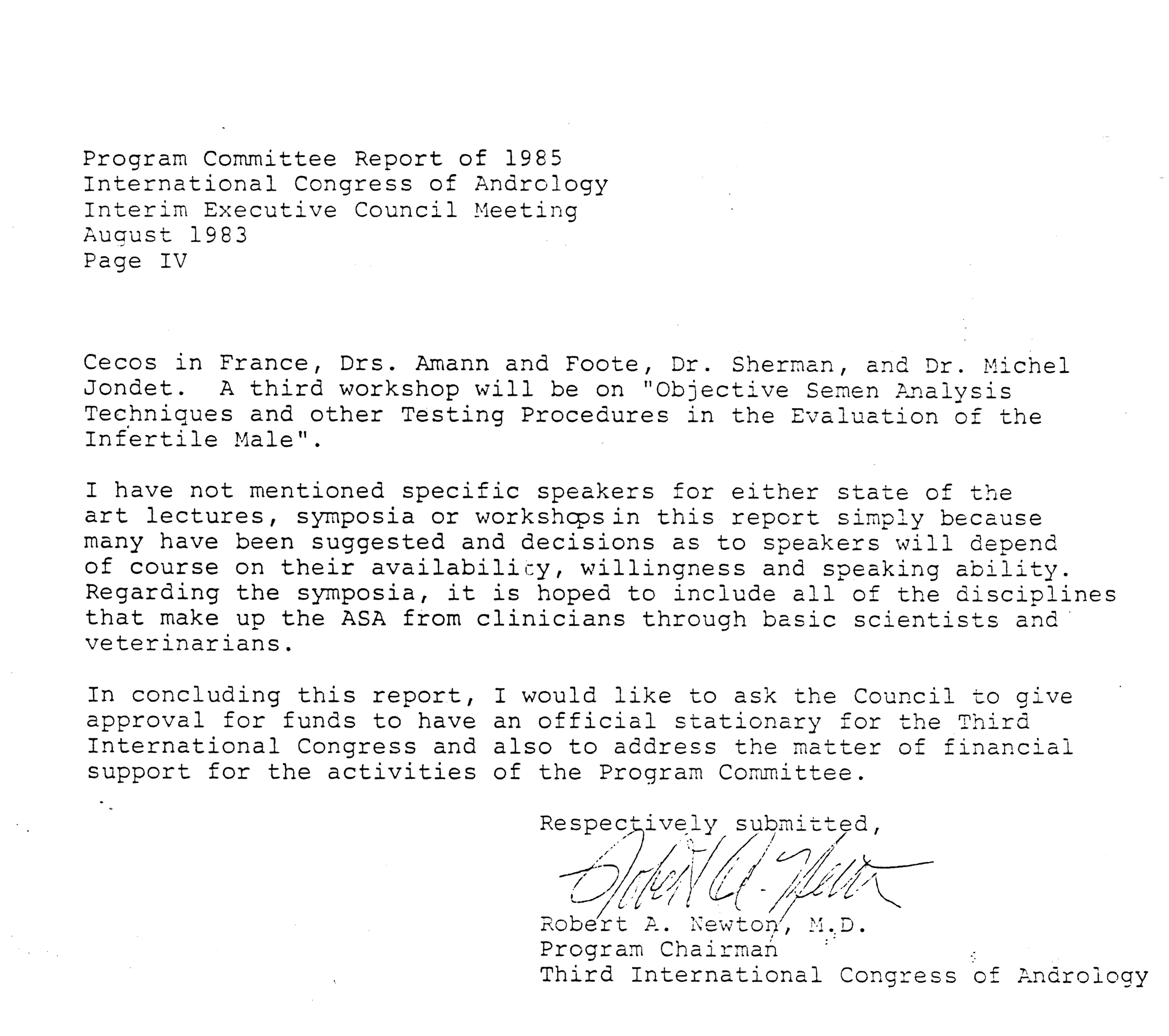 - "Executive Council Meetings of the American Society of Andrology, 1983", American Society of Andrology Collection, Iowa State University Library Digital Collections