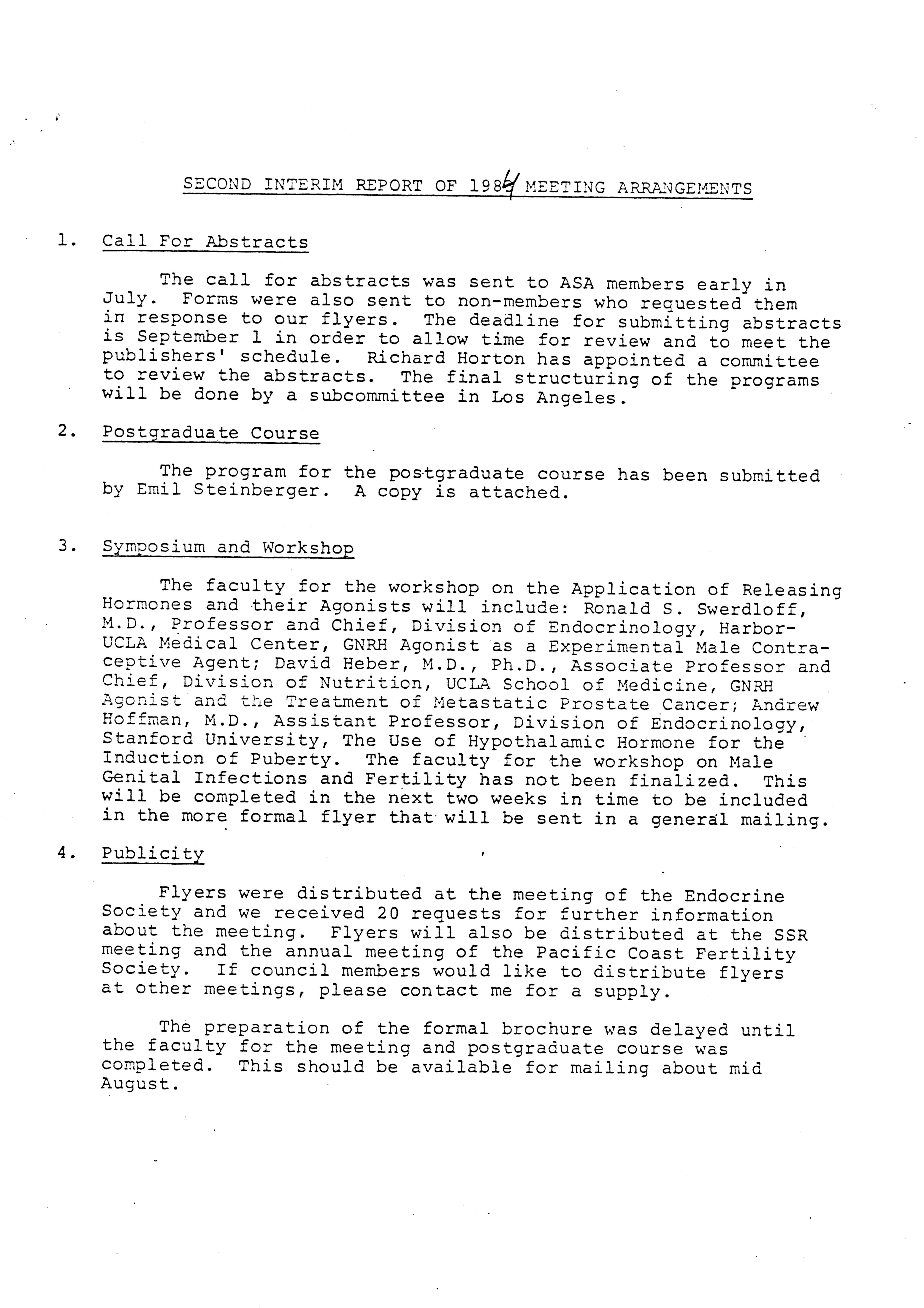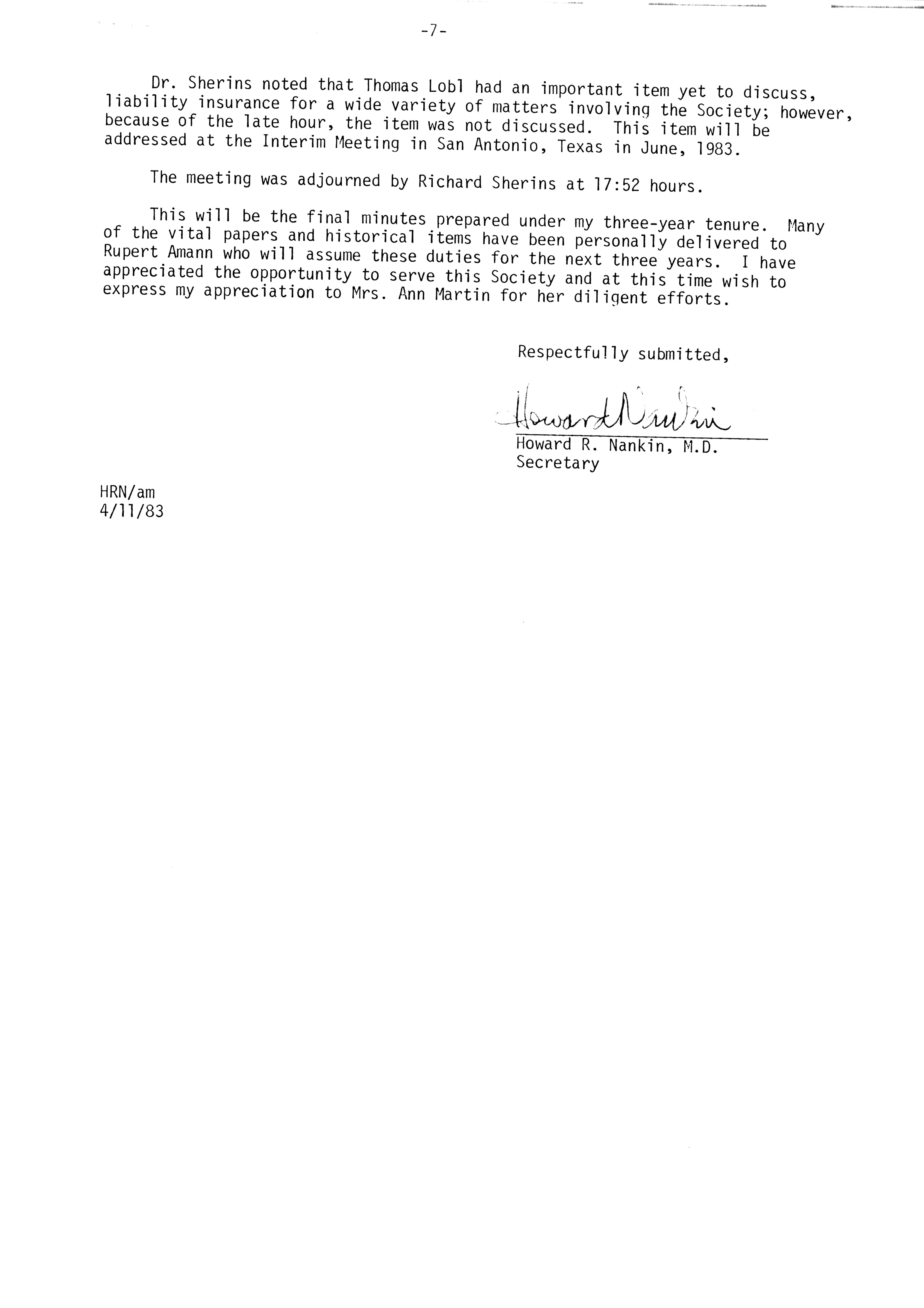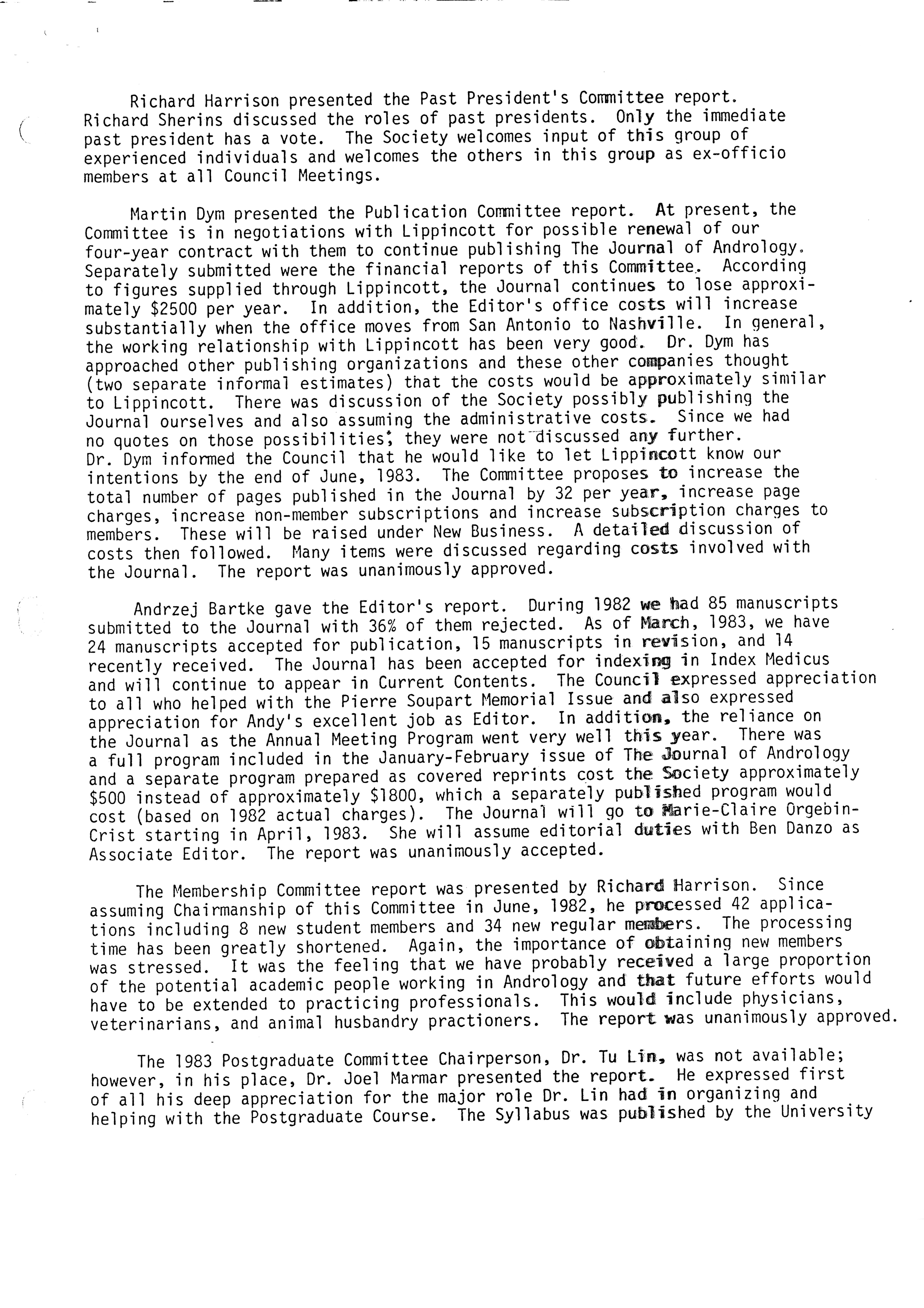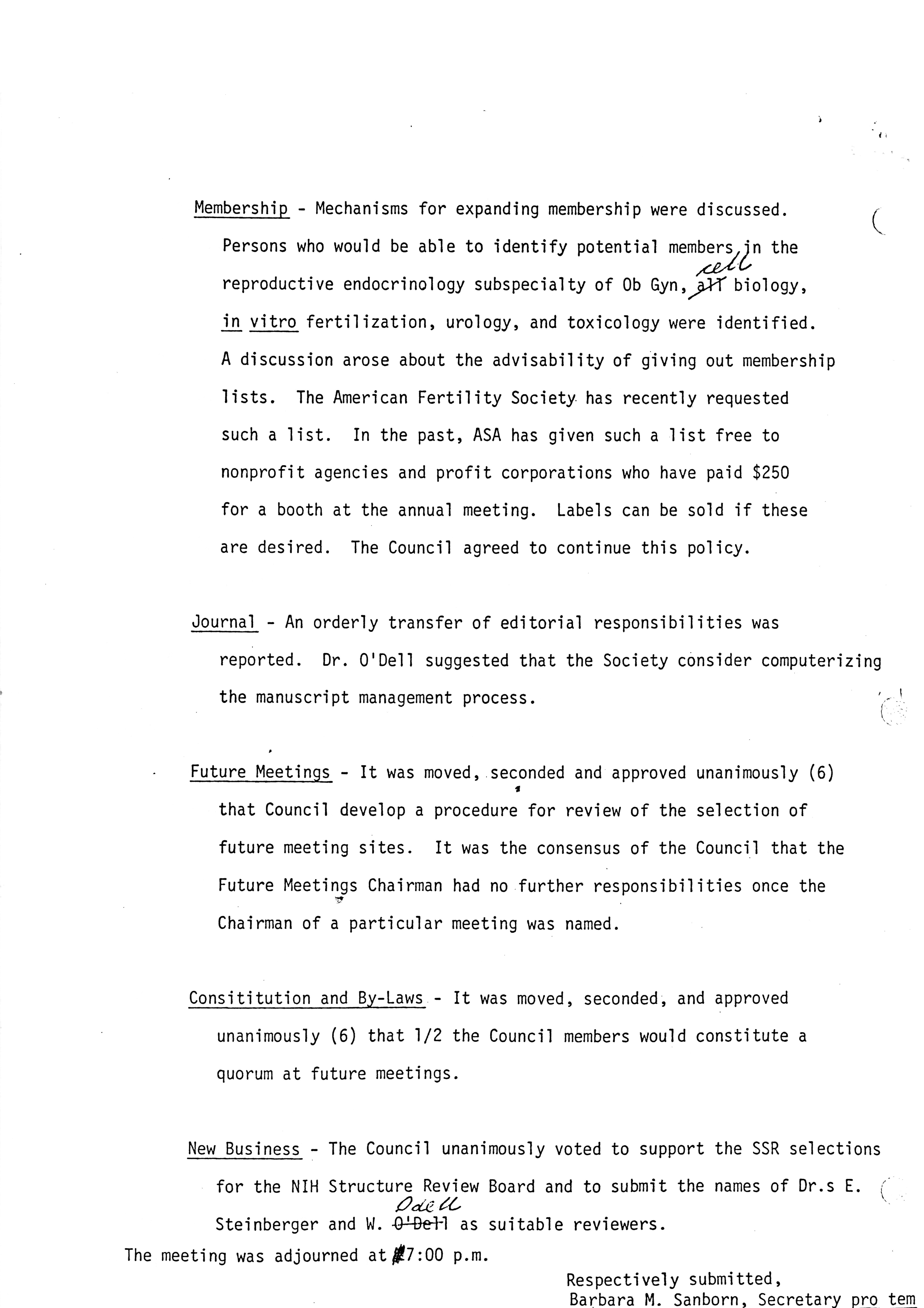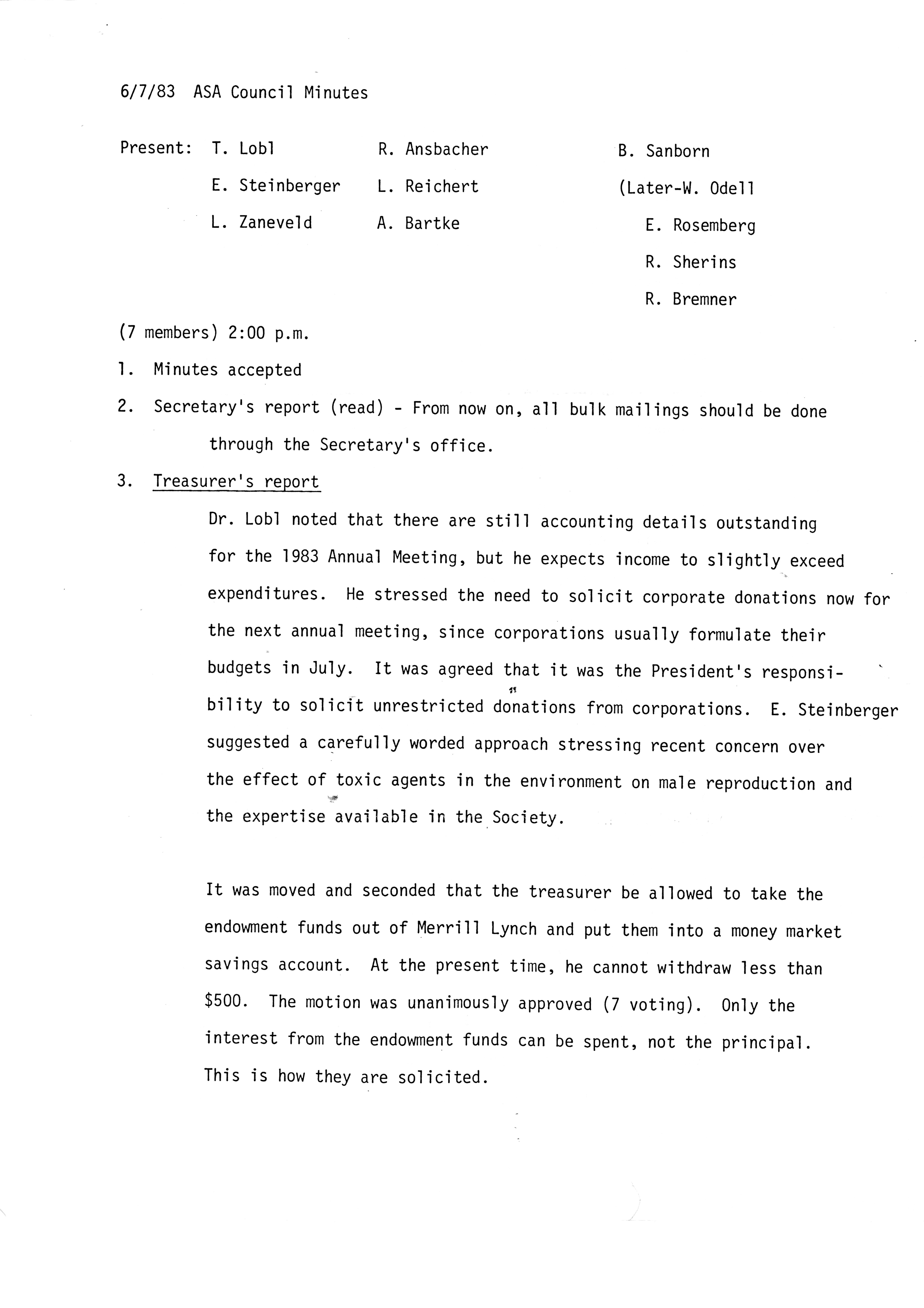 - "Executive Council Meetings of the American Society of Andrology, 1983", American Society of Andrology Collection, Iowa State University Library Digital Collections