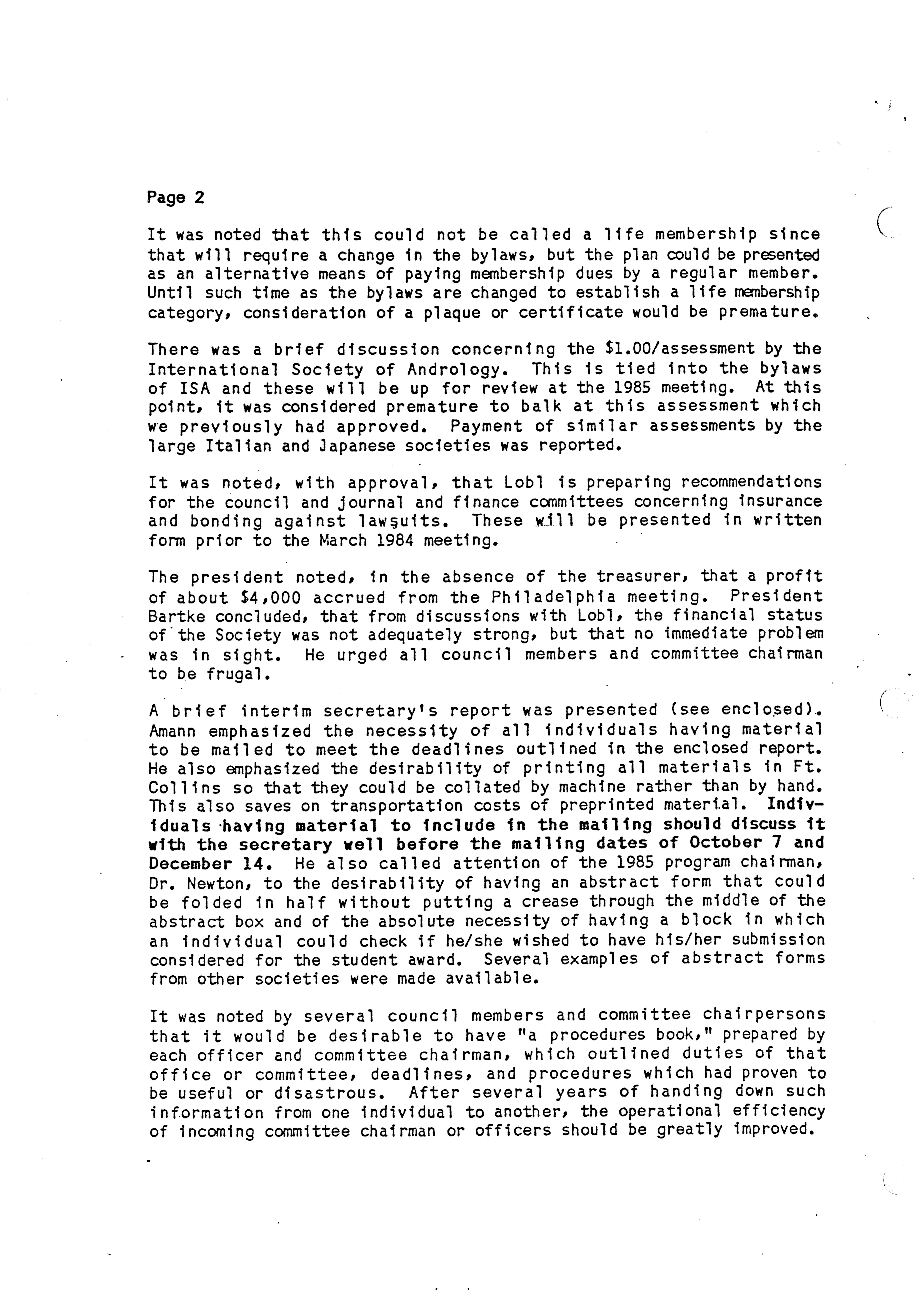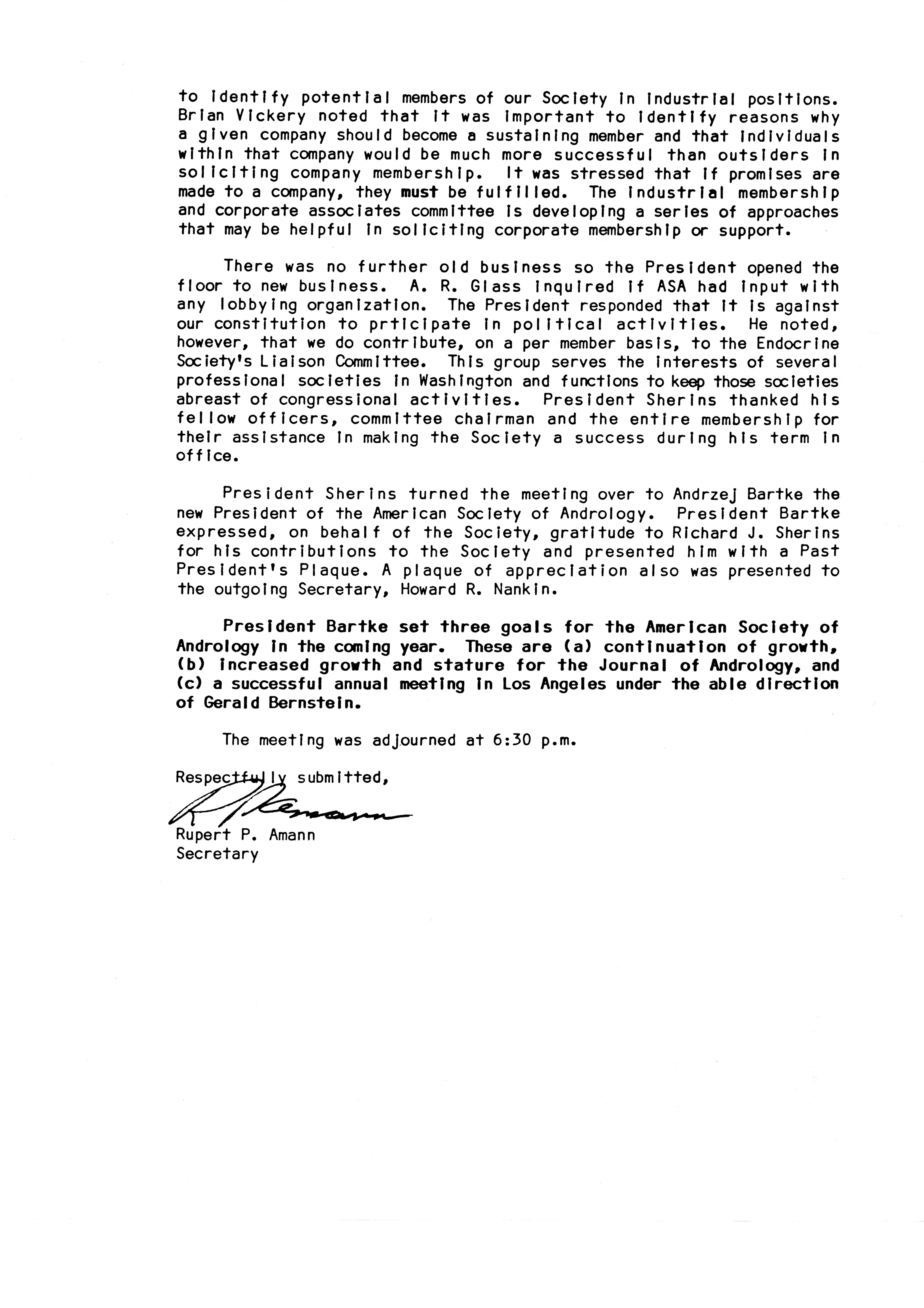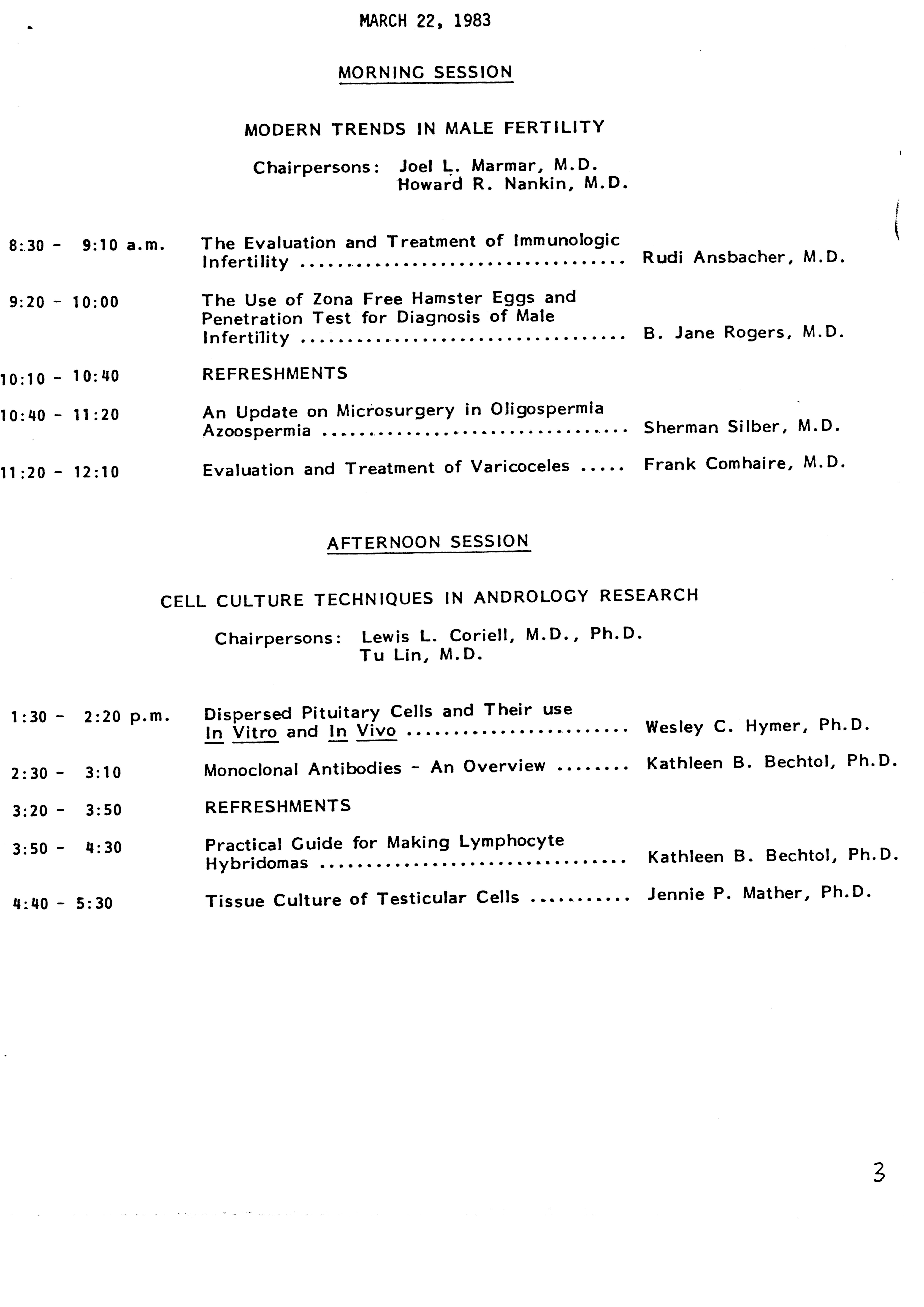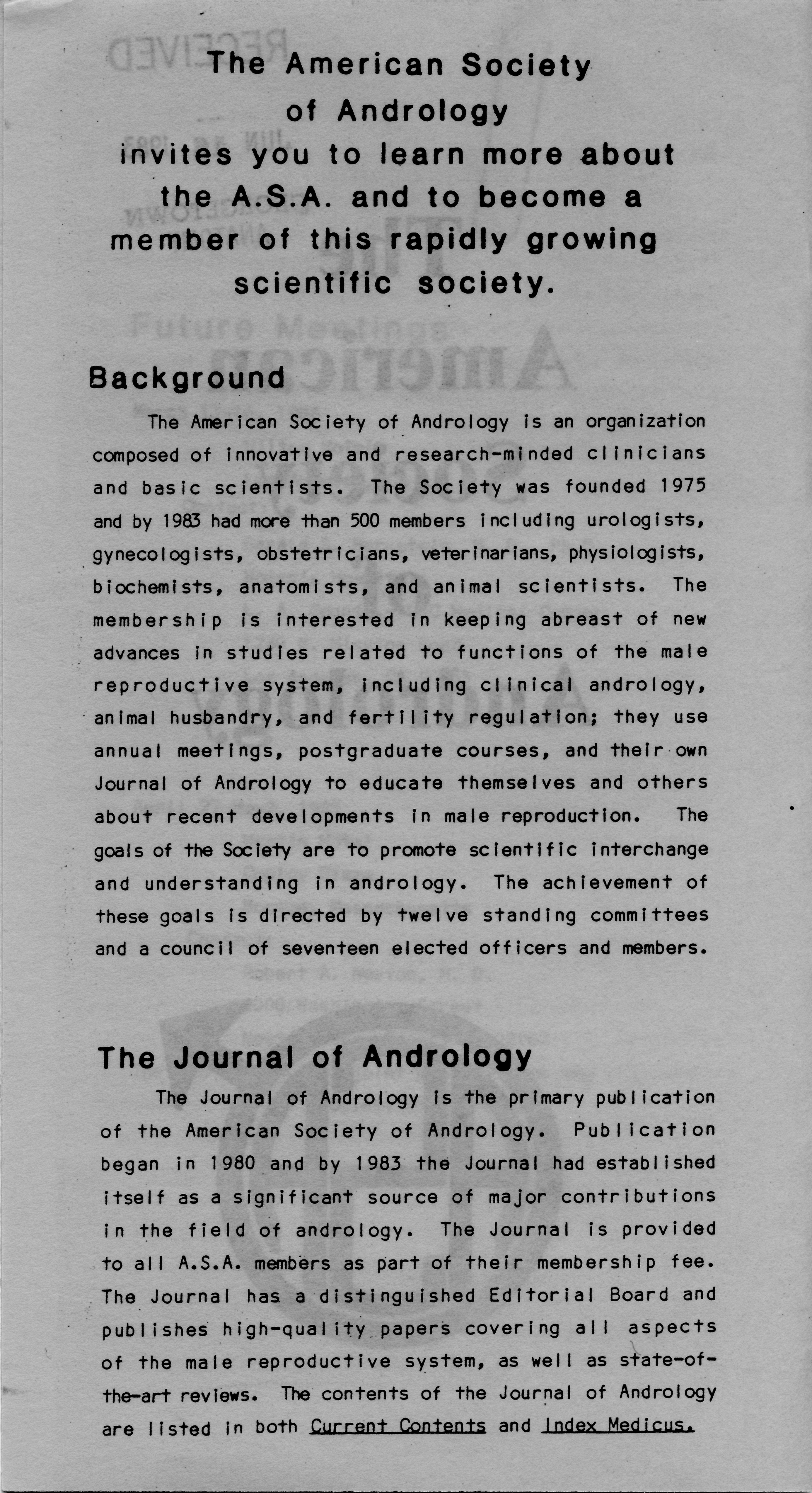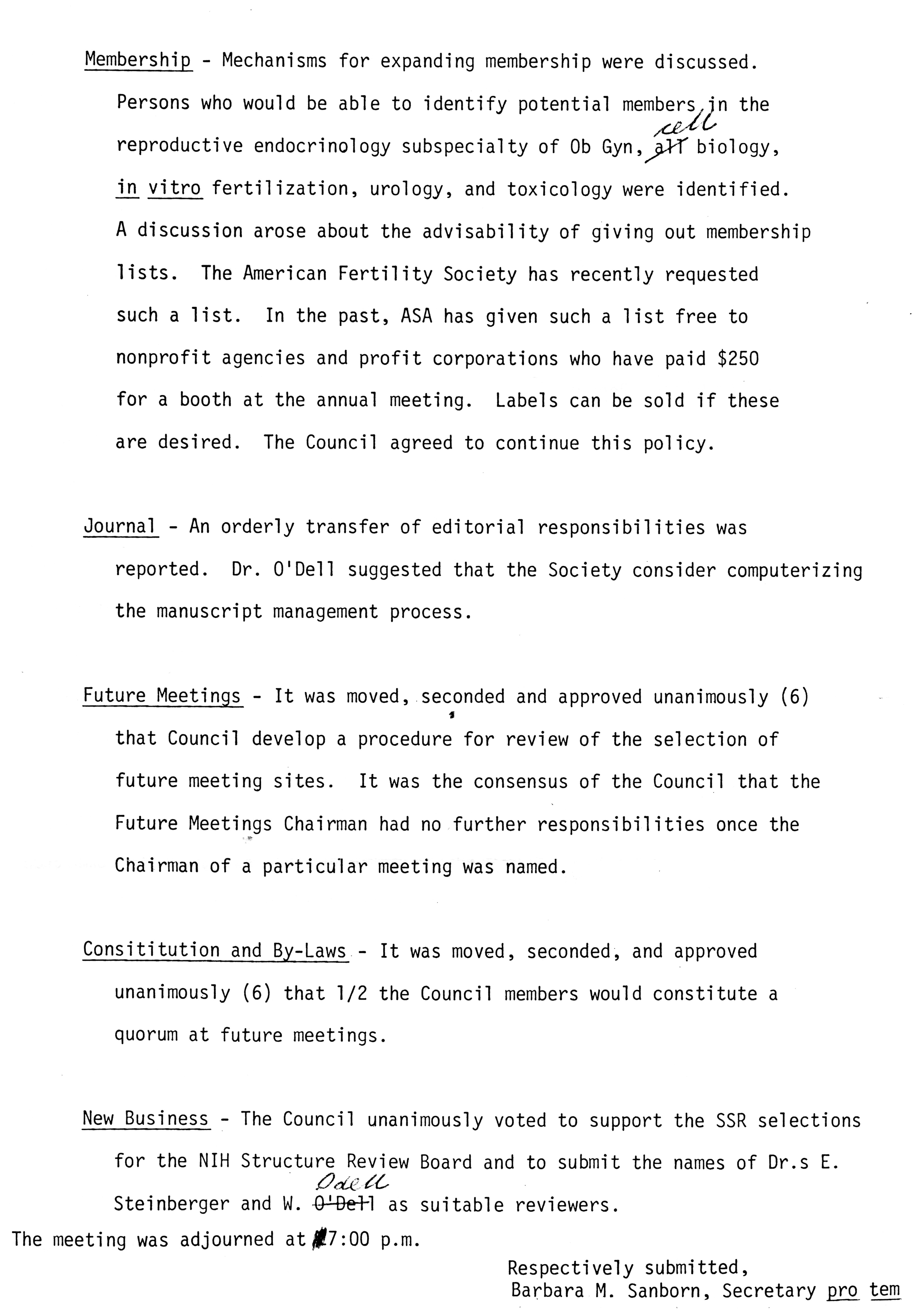 - "Executive Council Meetings of the American Society of Andrology, 1983", American Society of Andrology Collection, Iowa State University Library Digital Collections